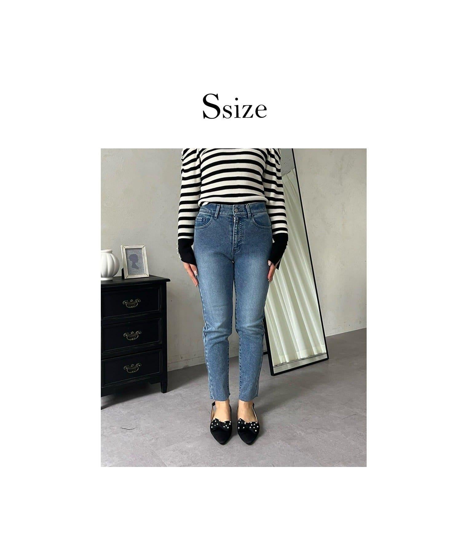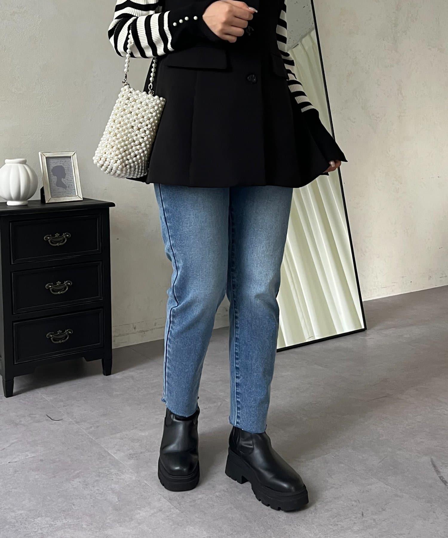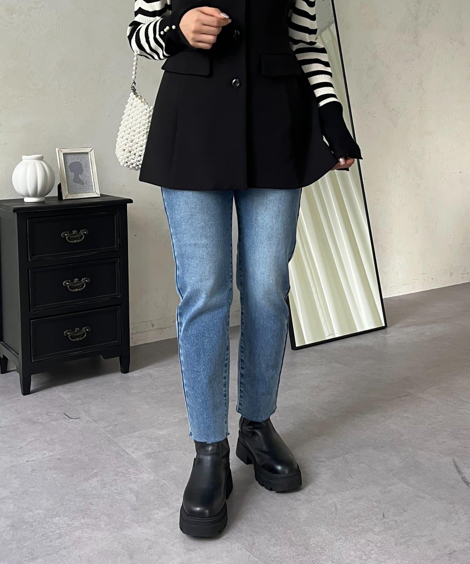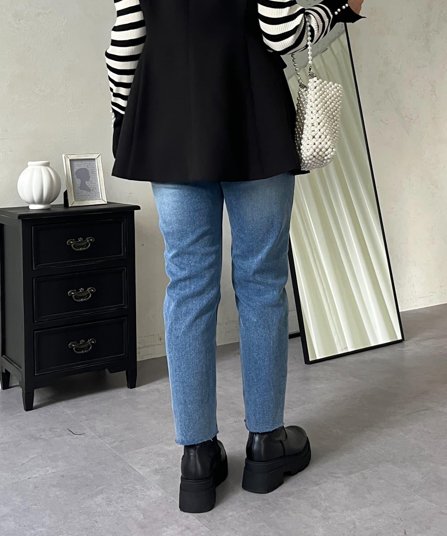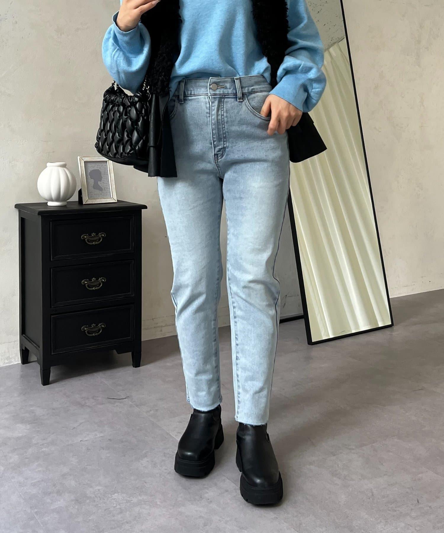 【MOMO】內層微絨彈力錐形牛仔褲