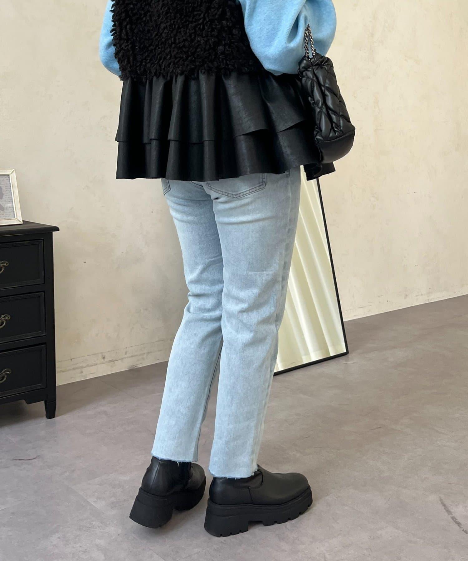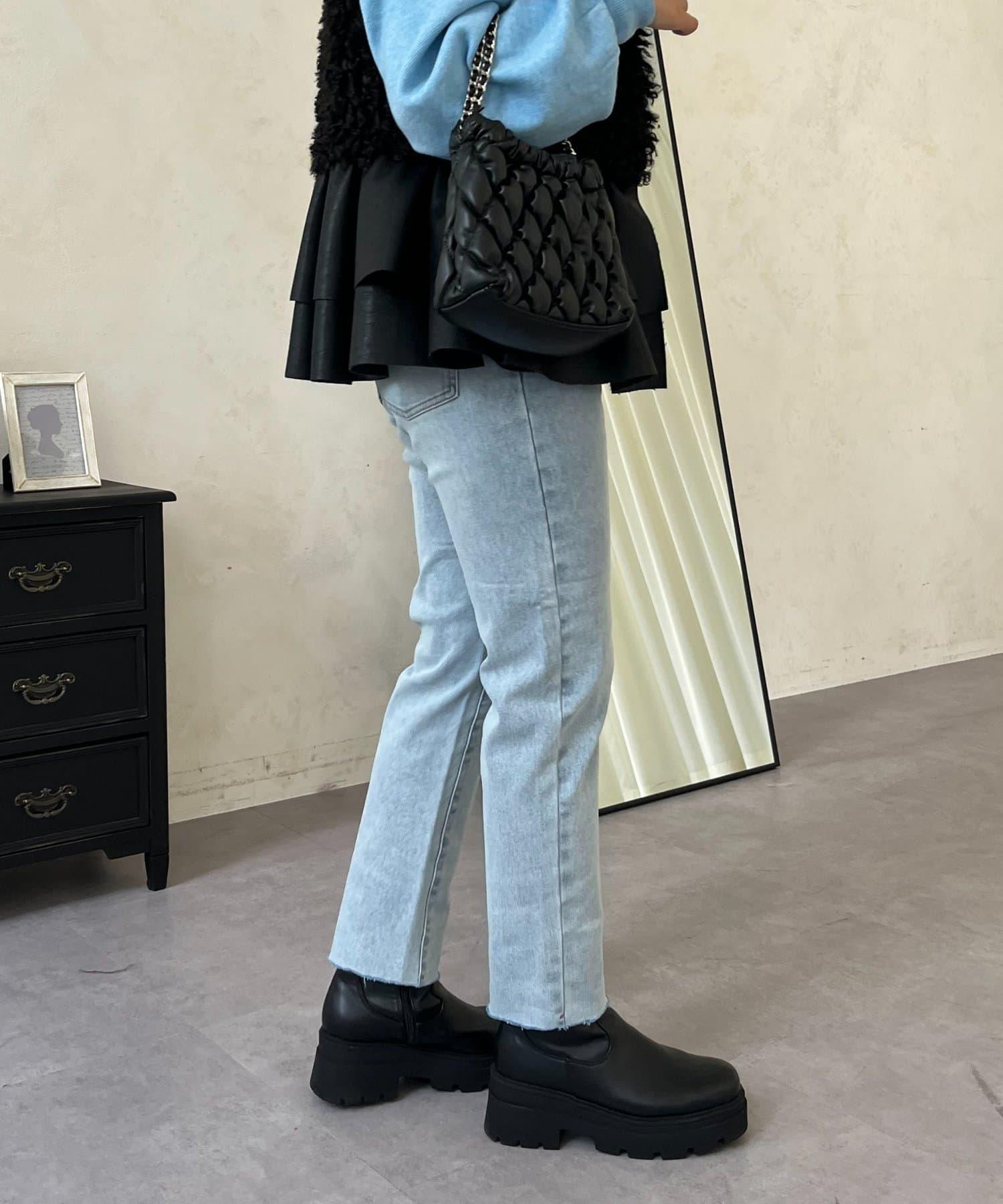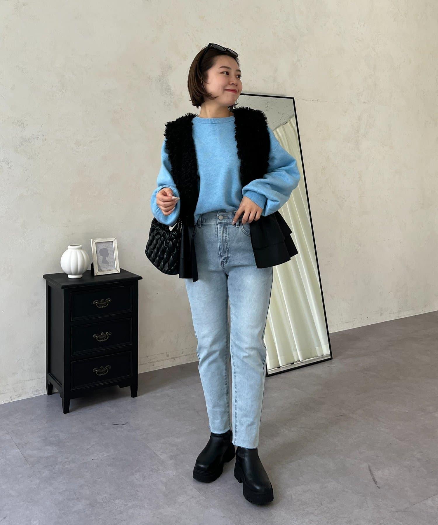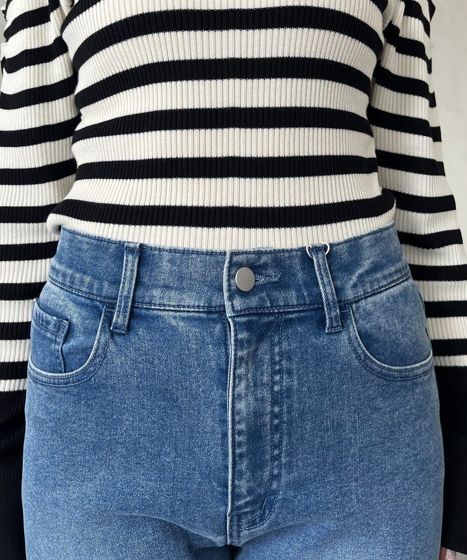 【MOMO】內層微絨彈力錐形牛仔褲