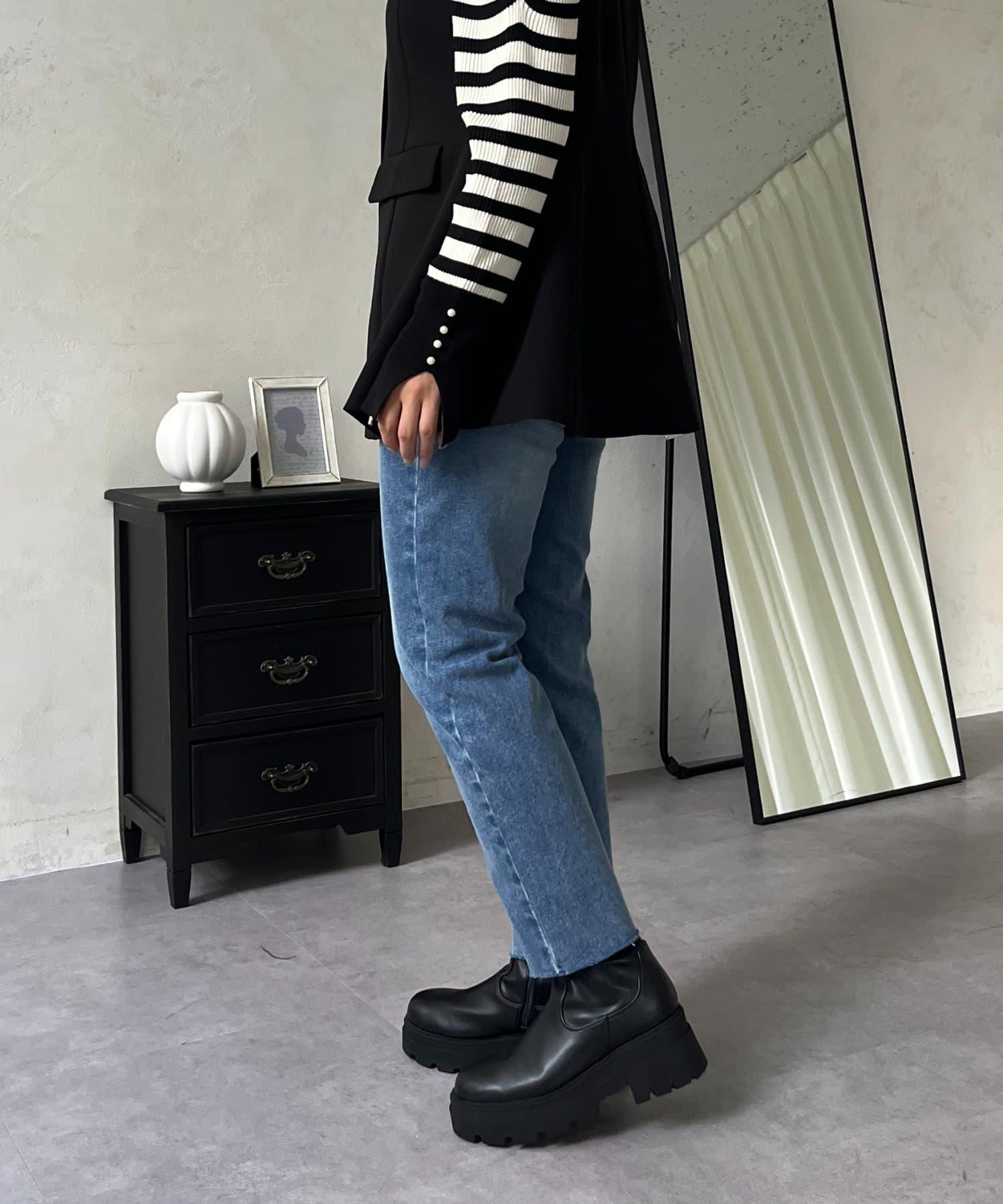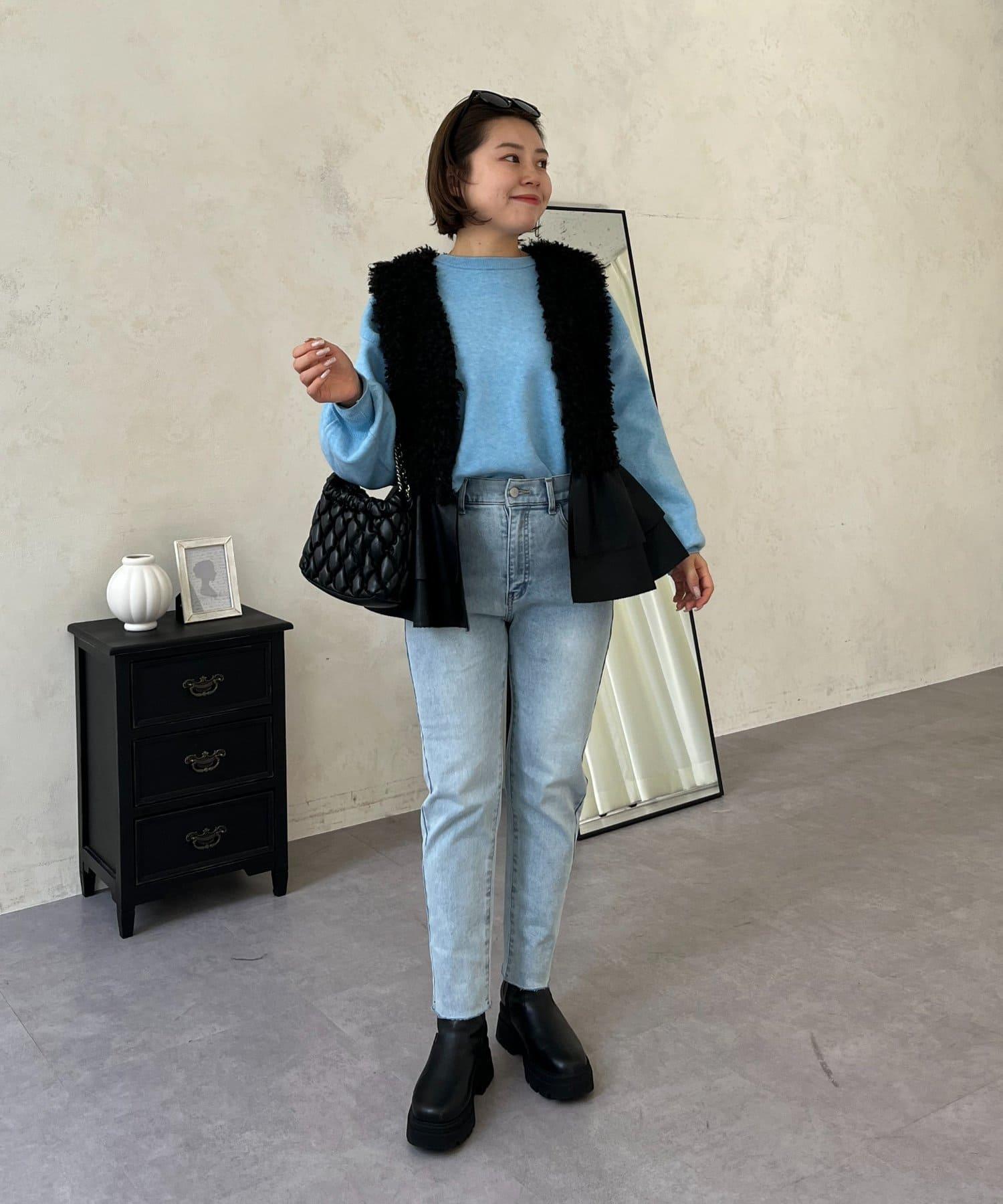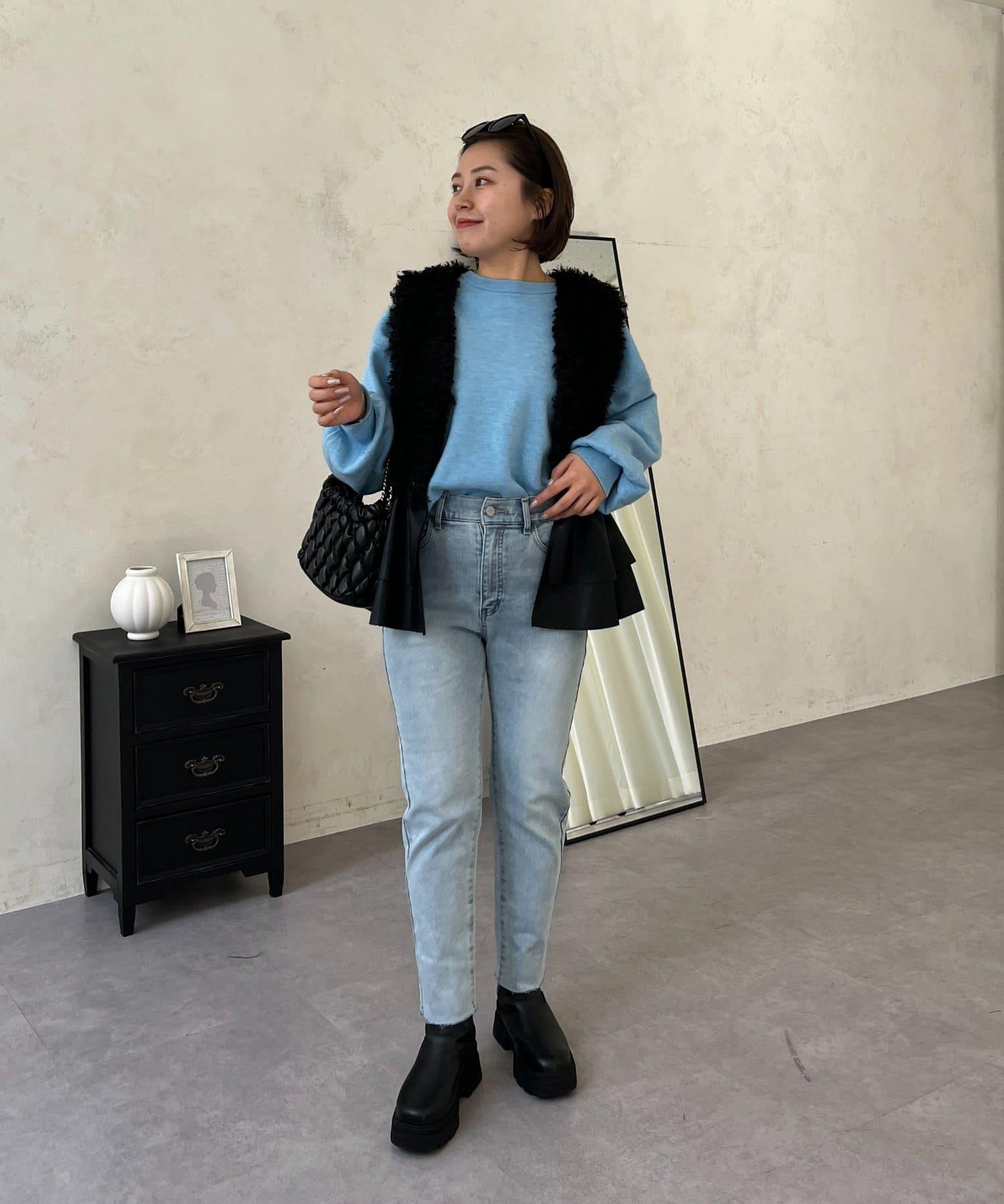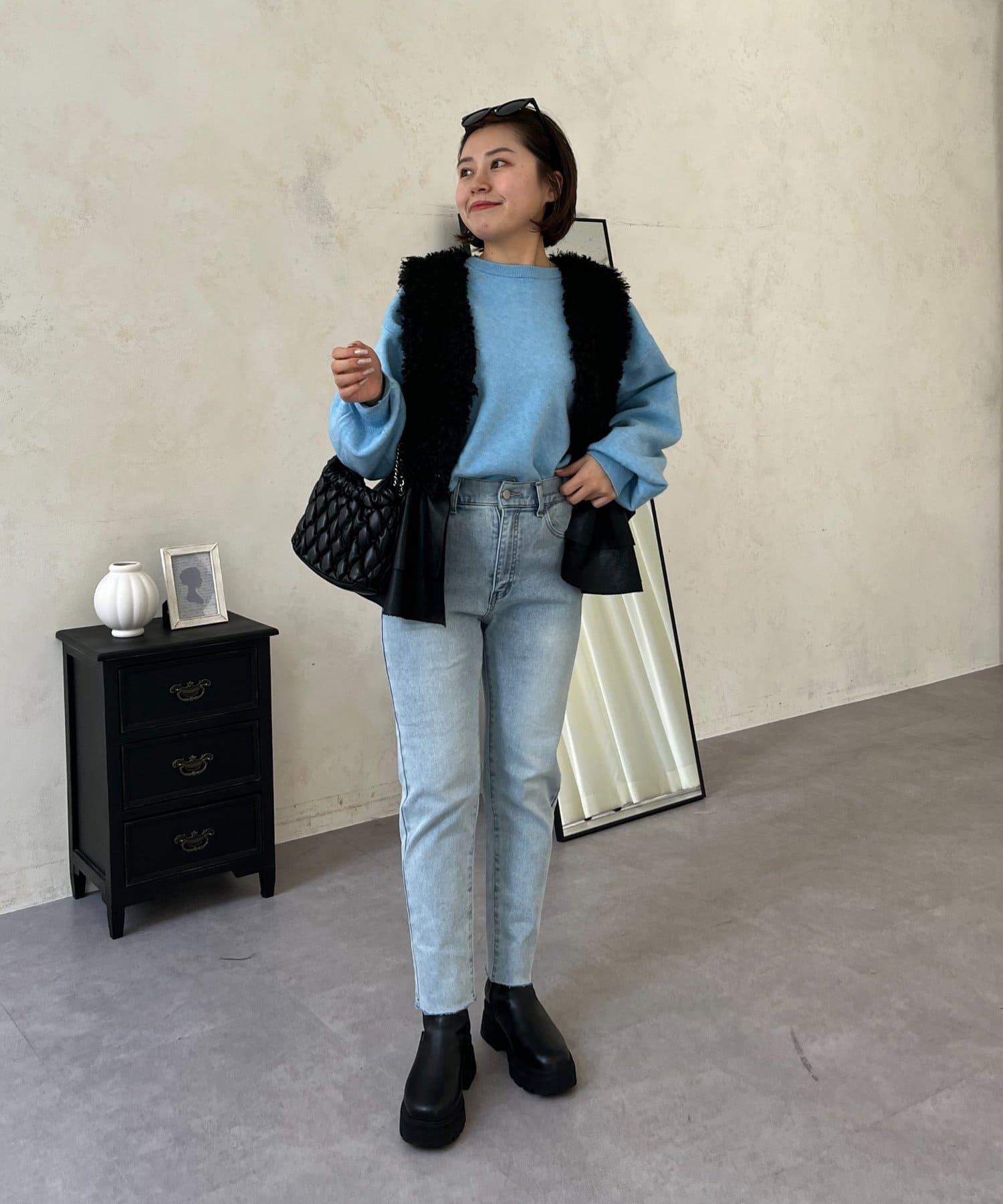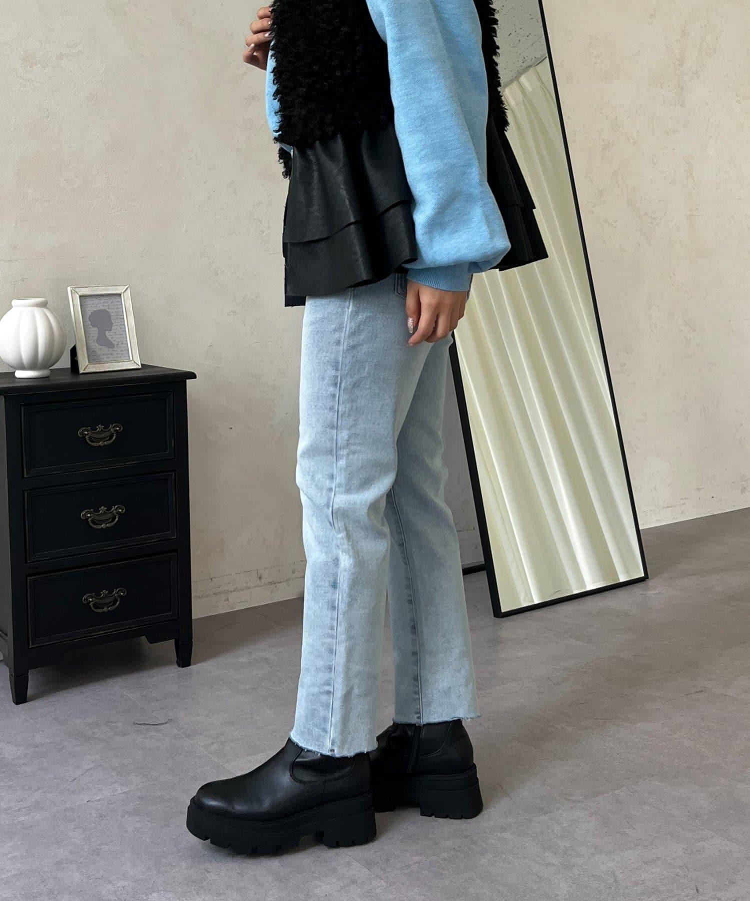 【MOMO】內層微絨彈力錐形牛仔褲