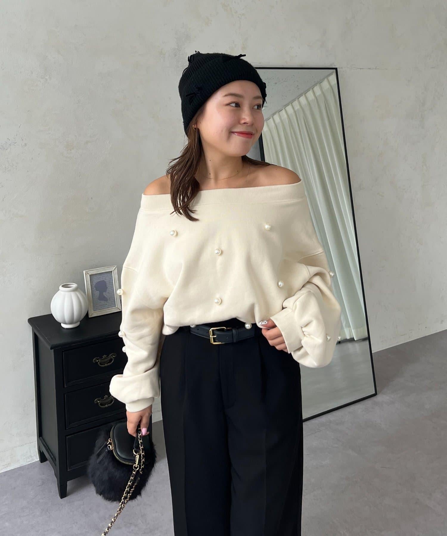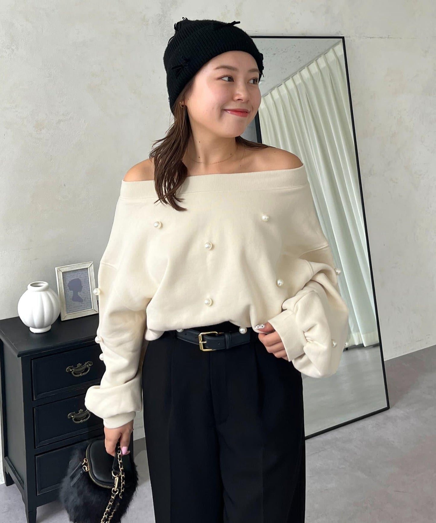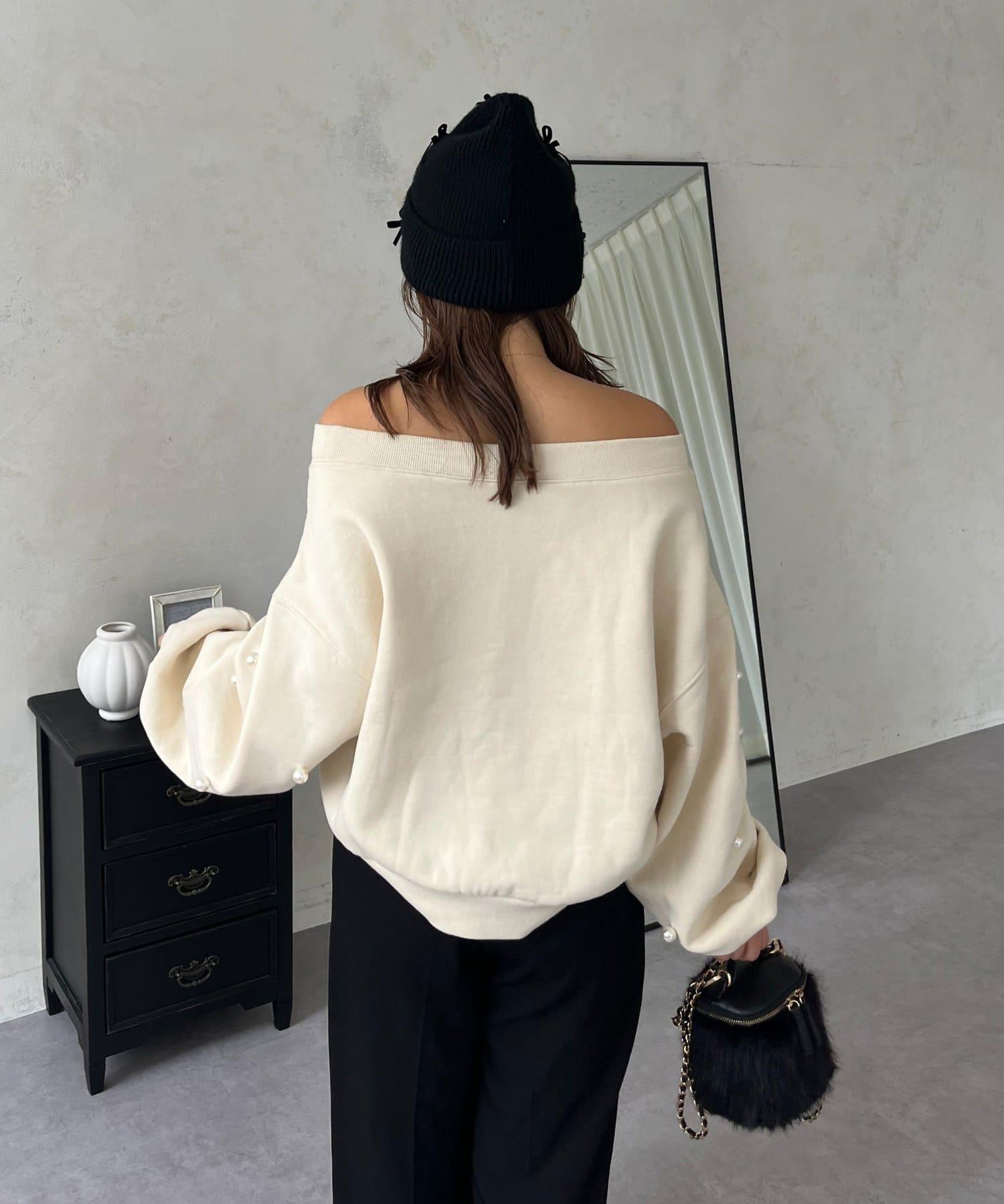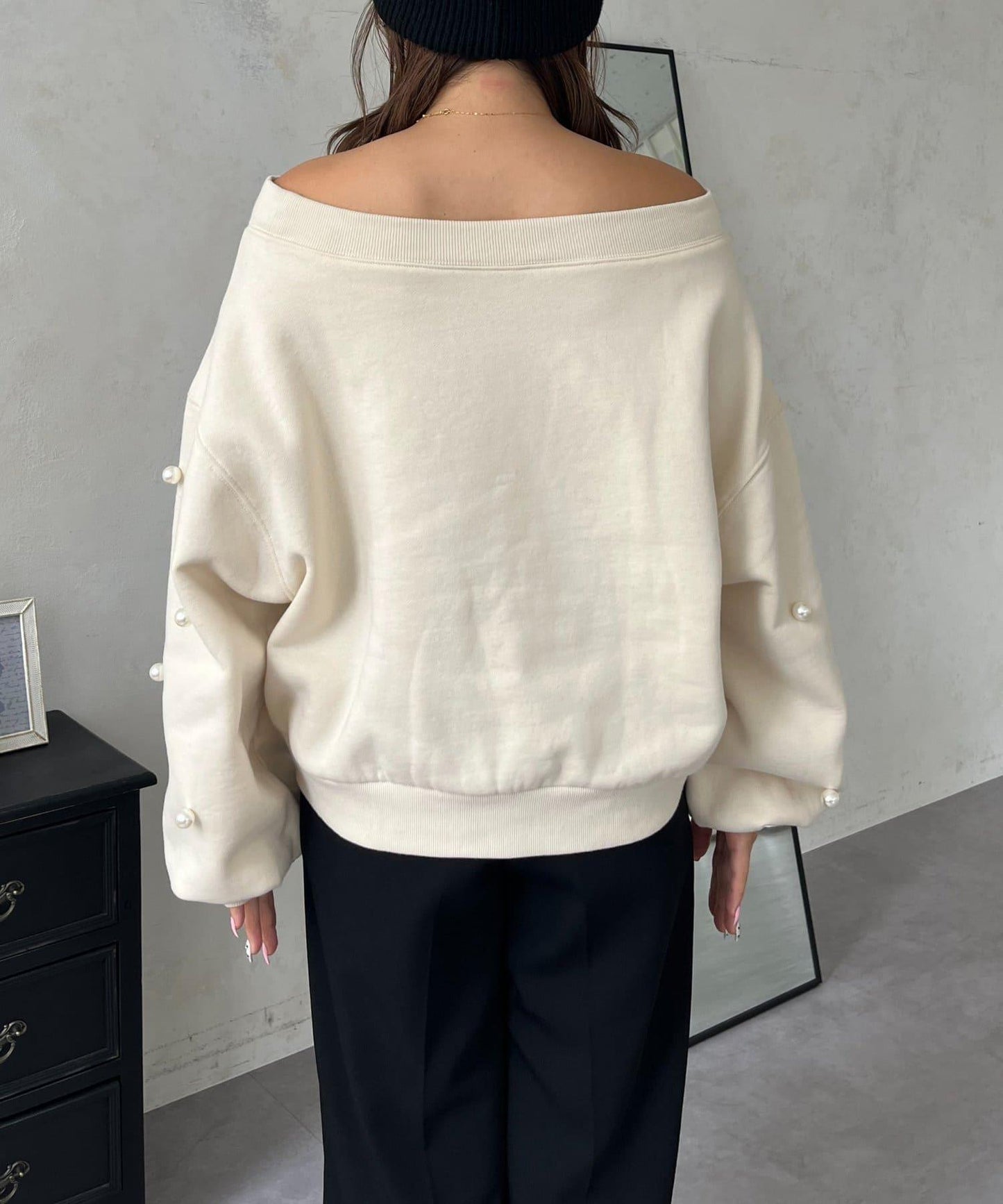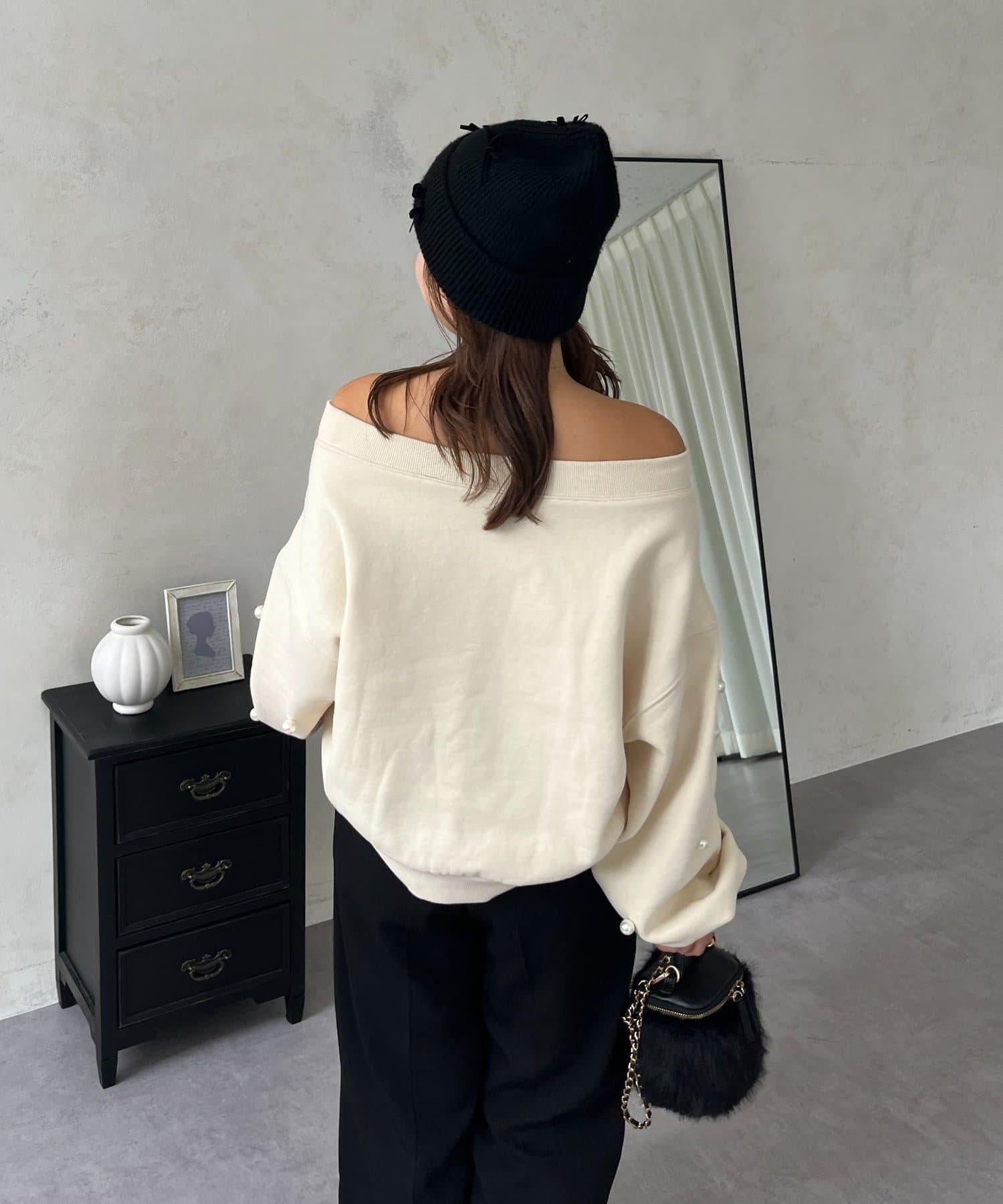 運動衫 / 珍珠 / 成人休閒 / 露肩 / 單肩
