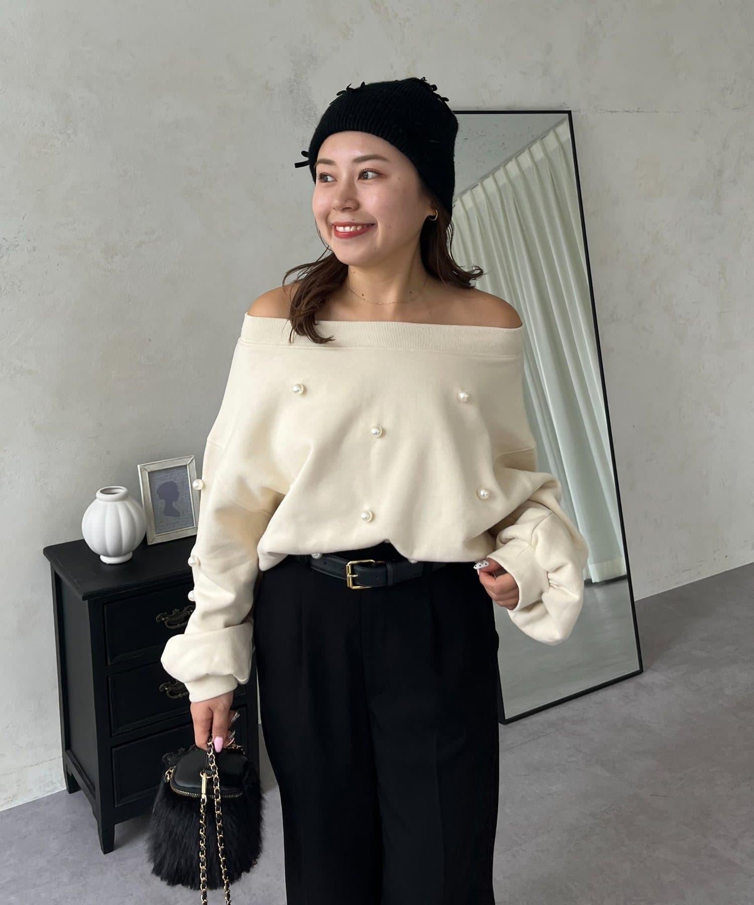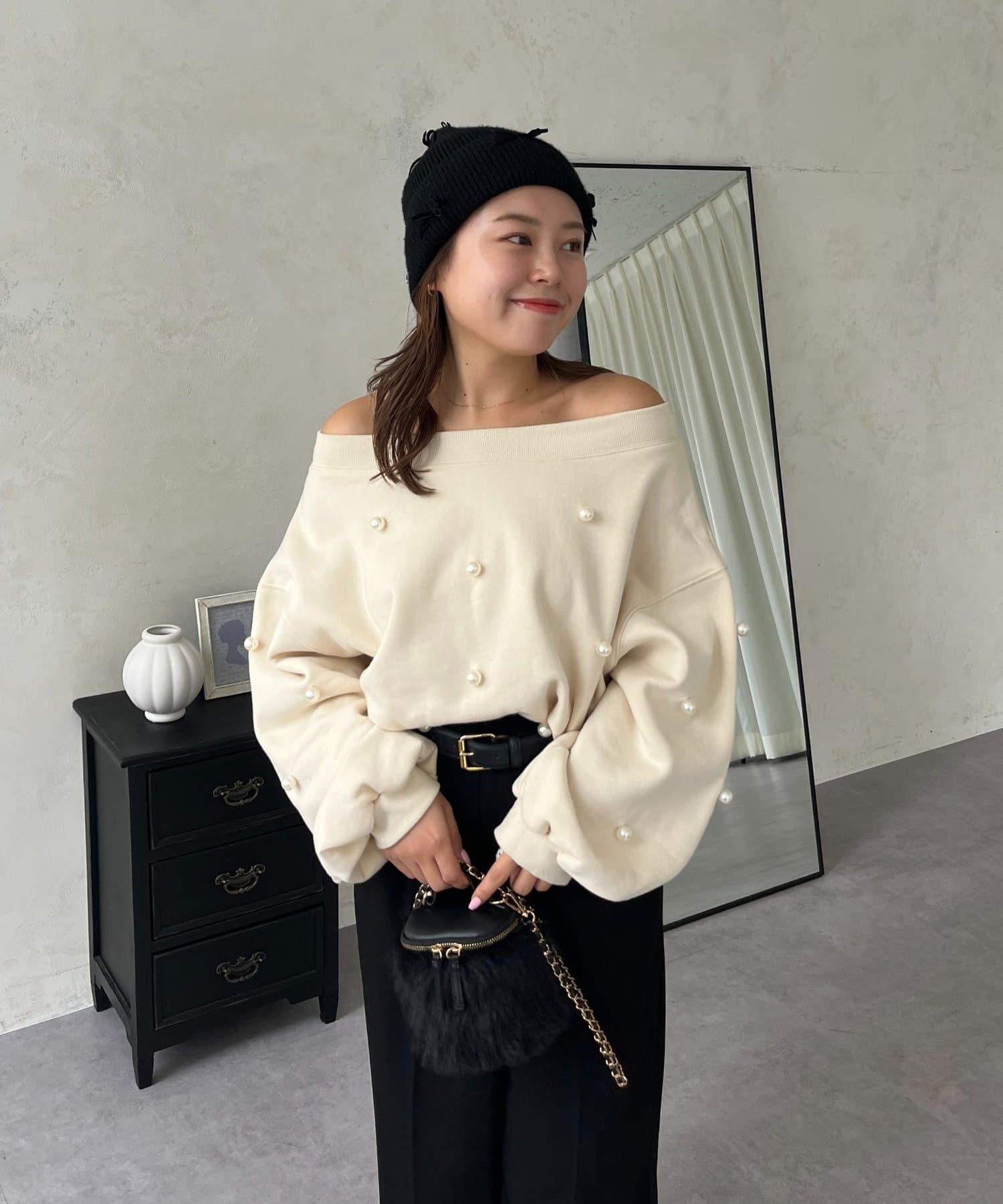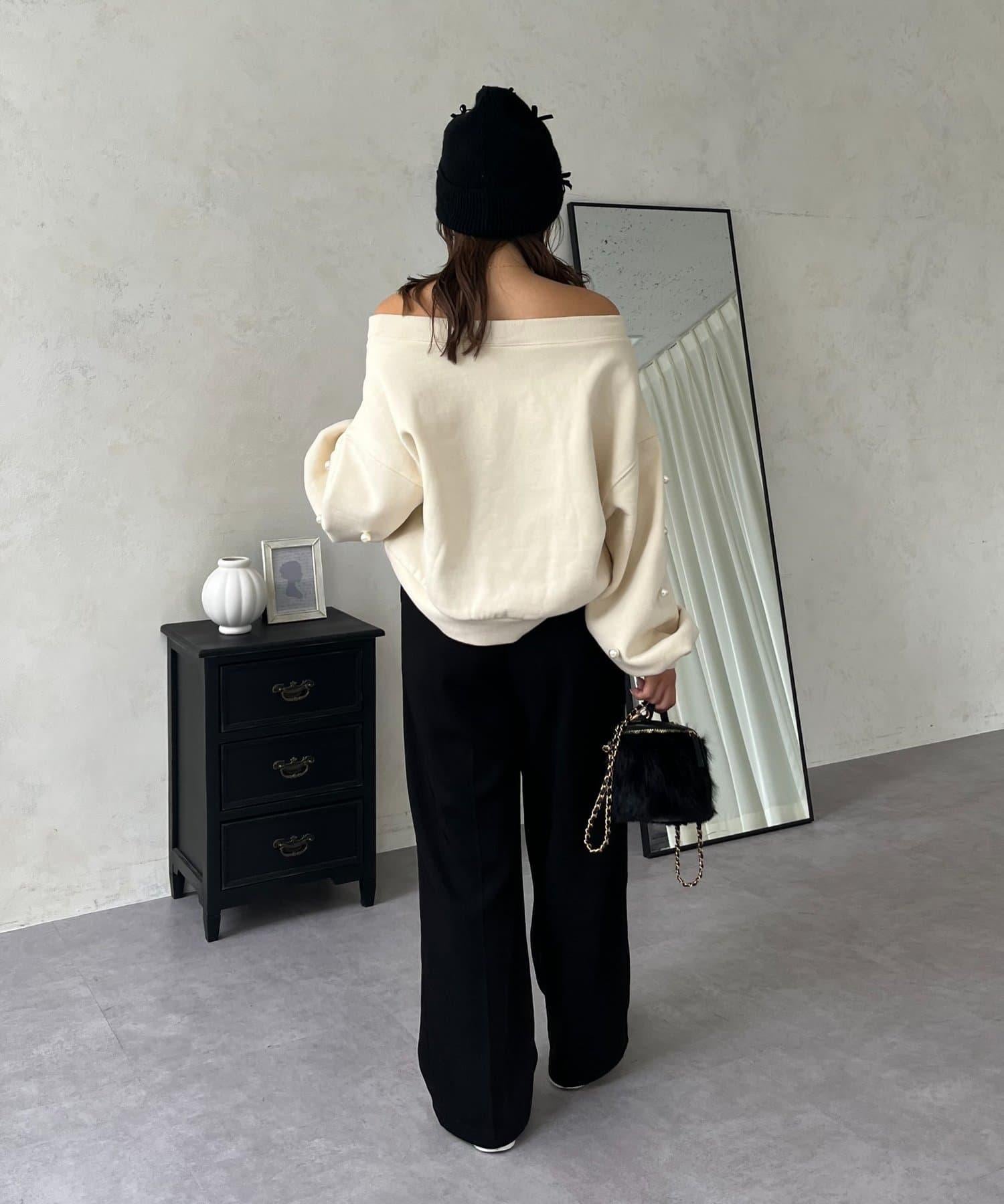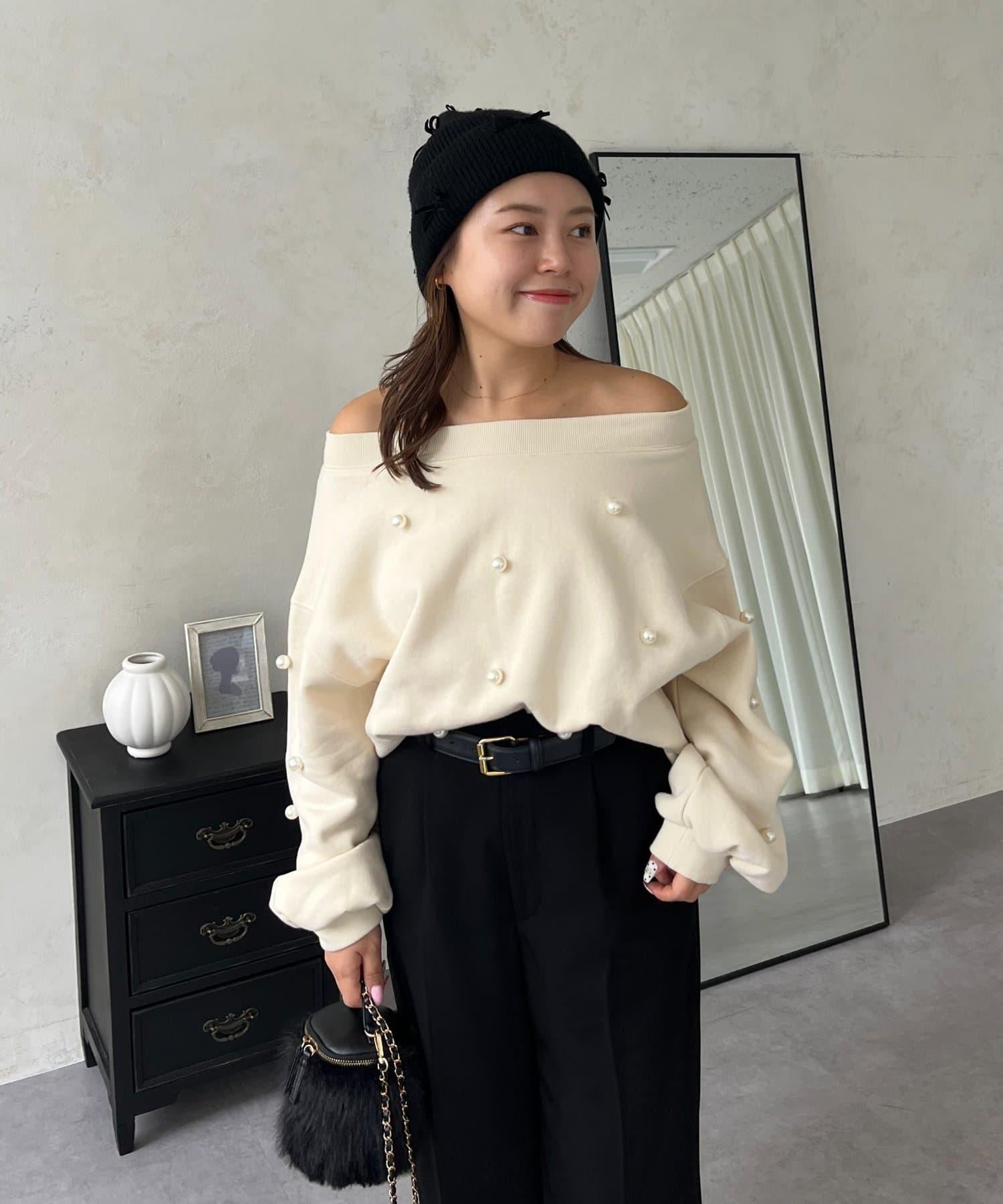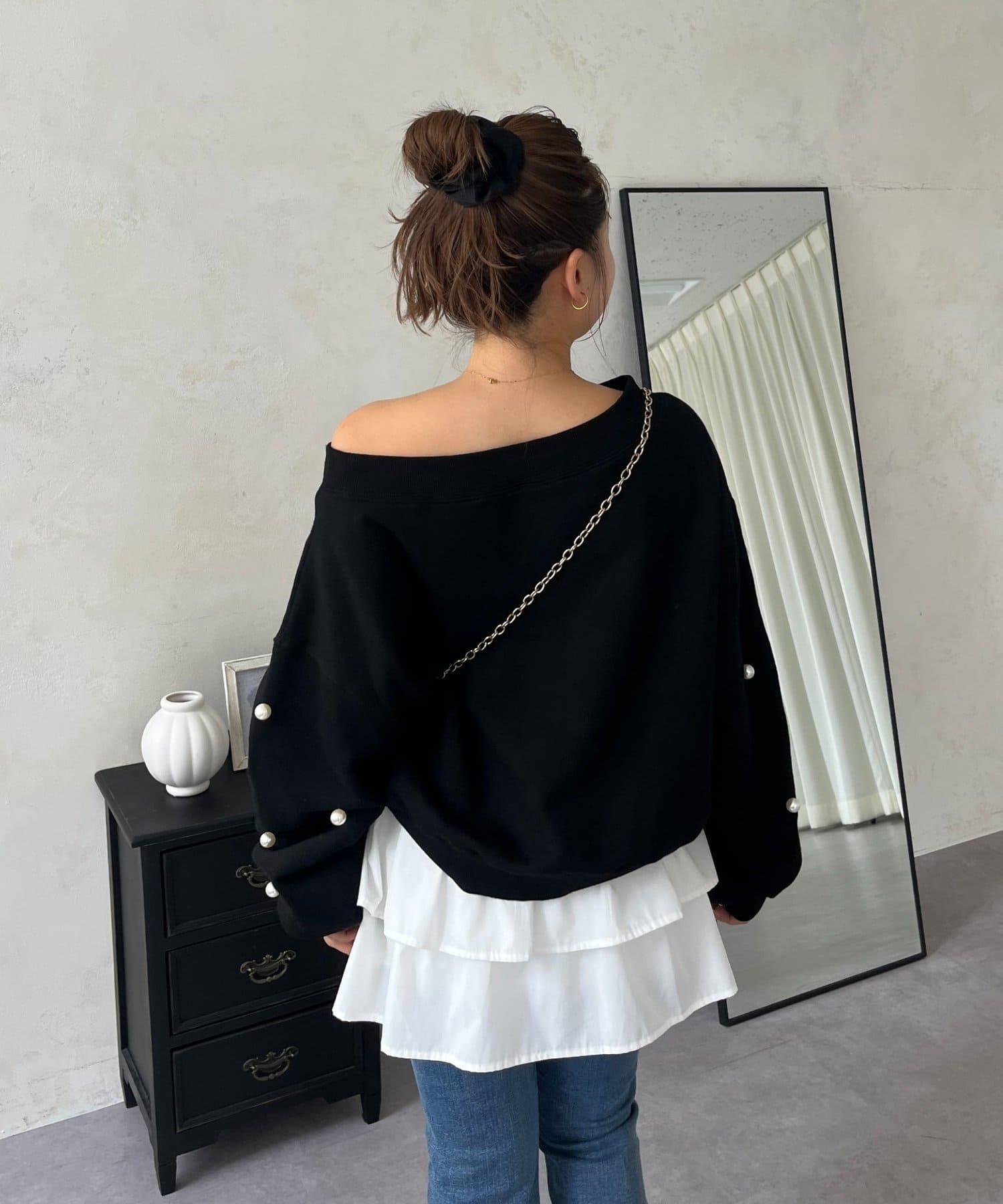 運動衫 / 珍珠 / 成人休閒 / 露肩 / 單肩