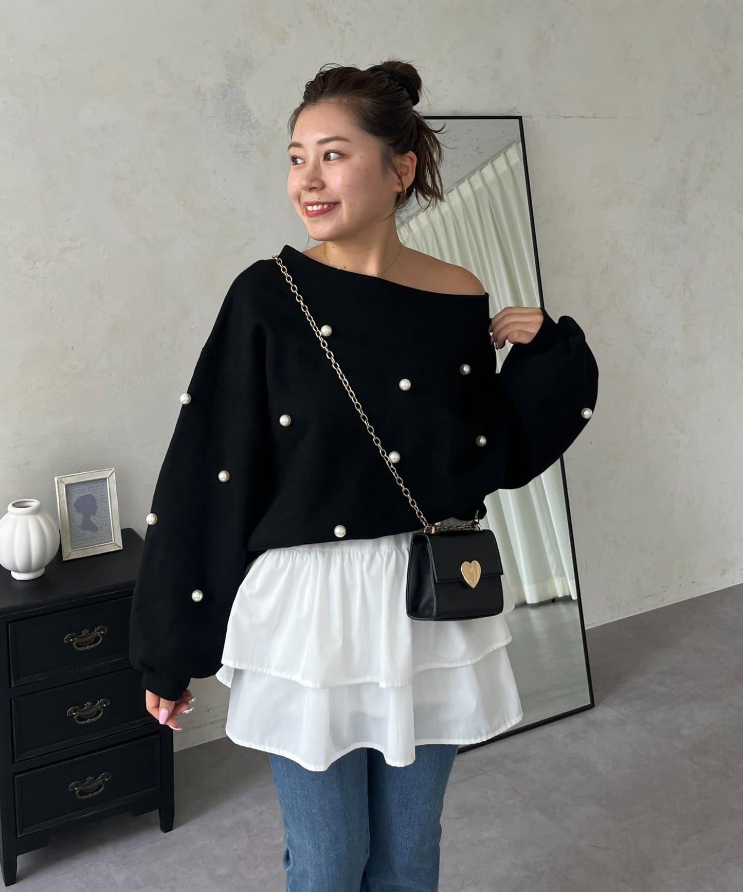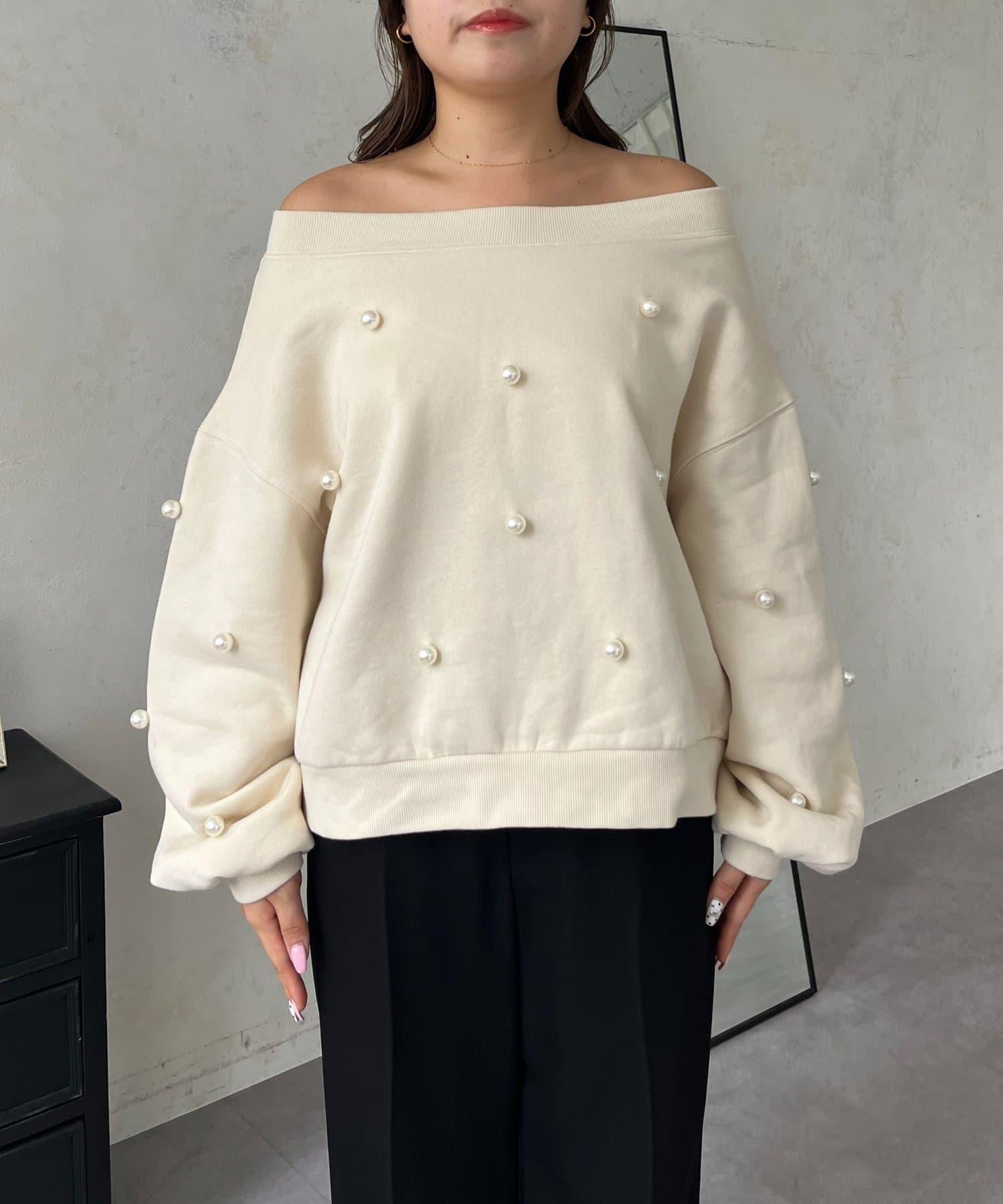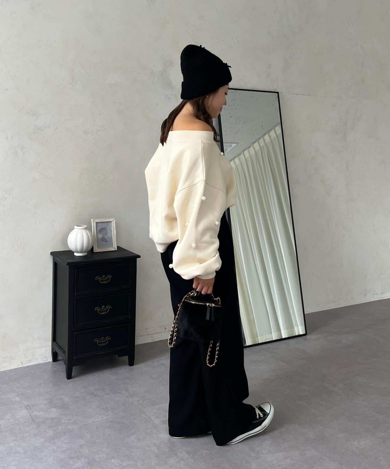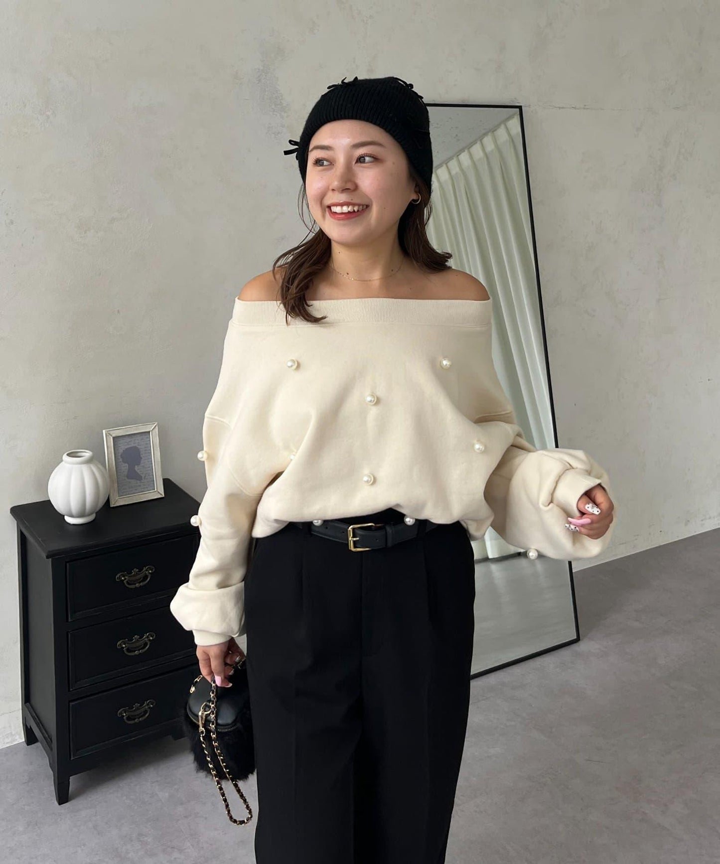 運動衫 / 珍珠 / 成人休閒 / 露肩 / 單肩