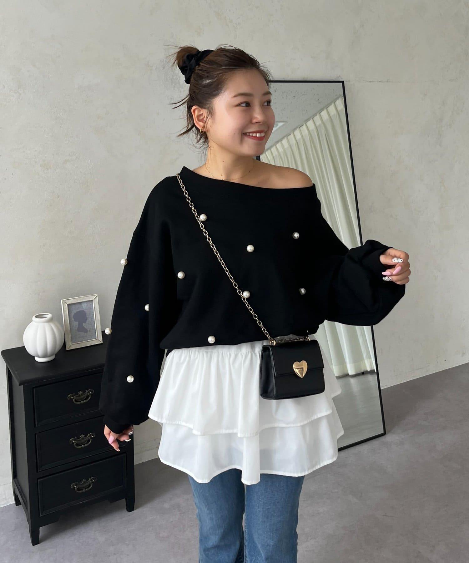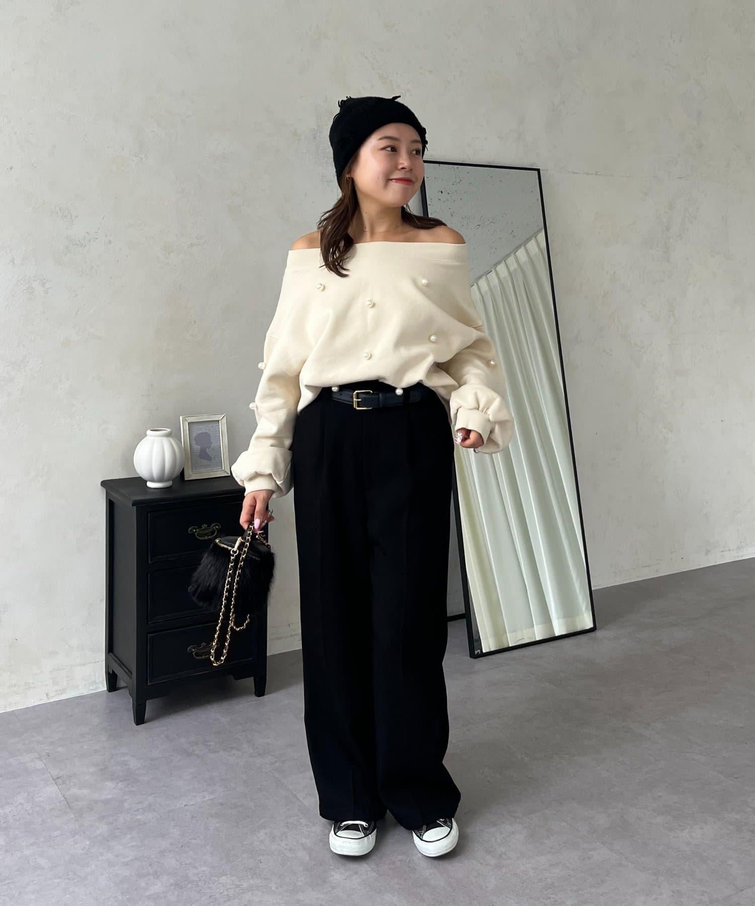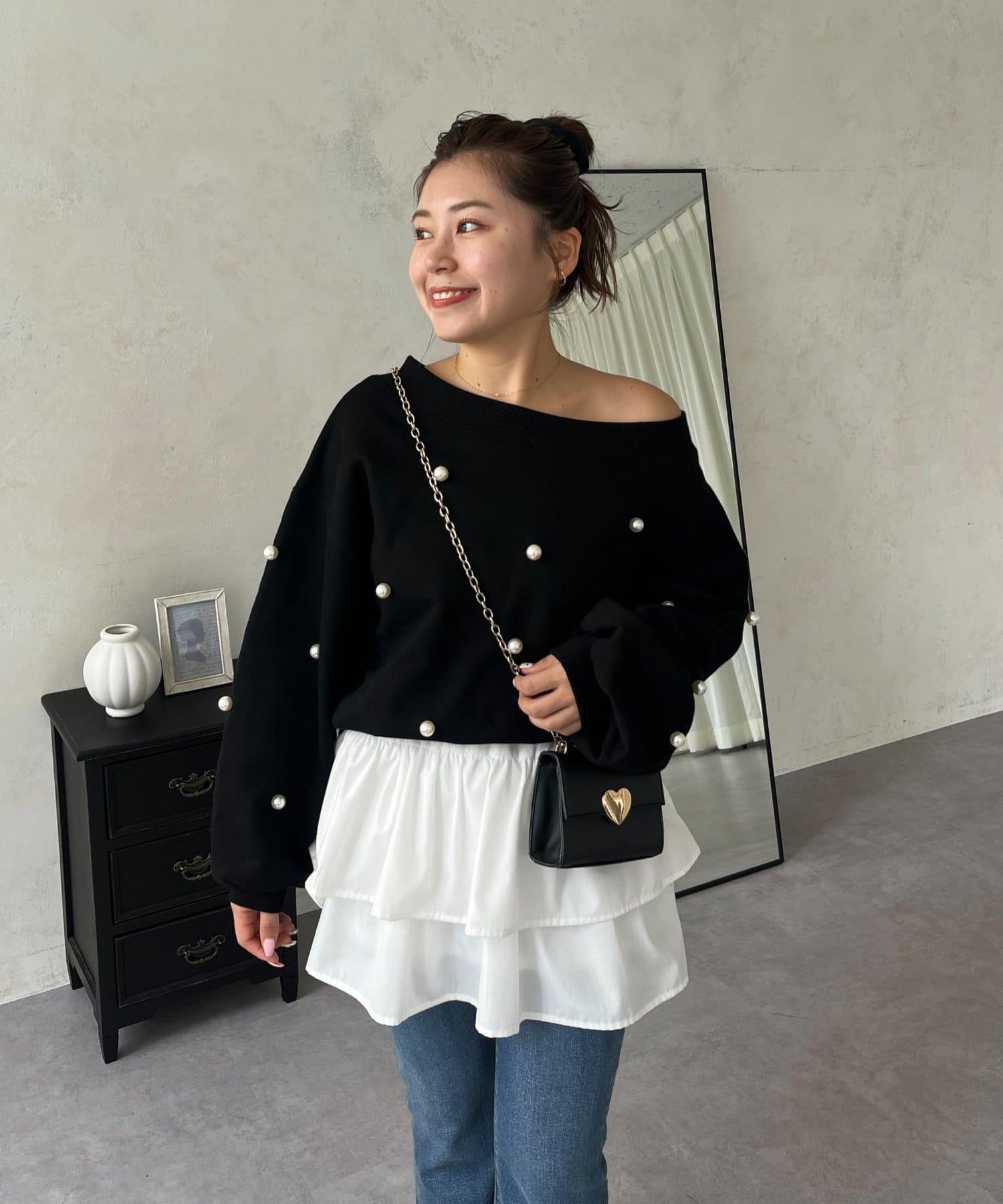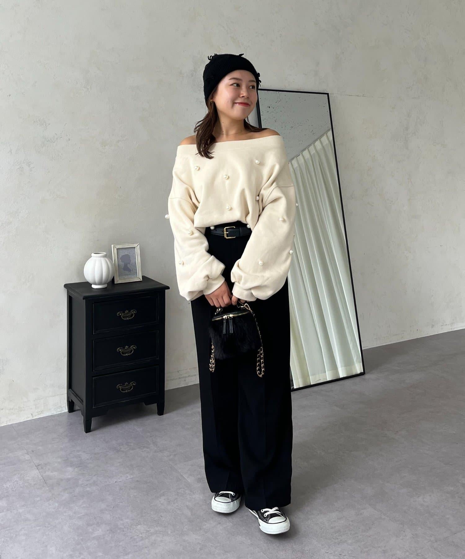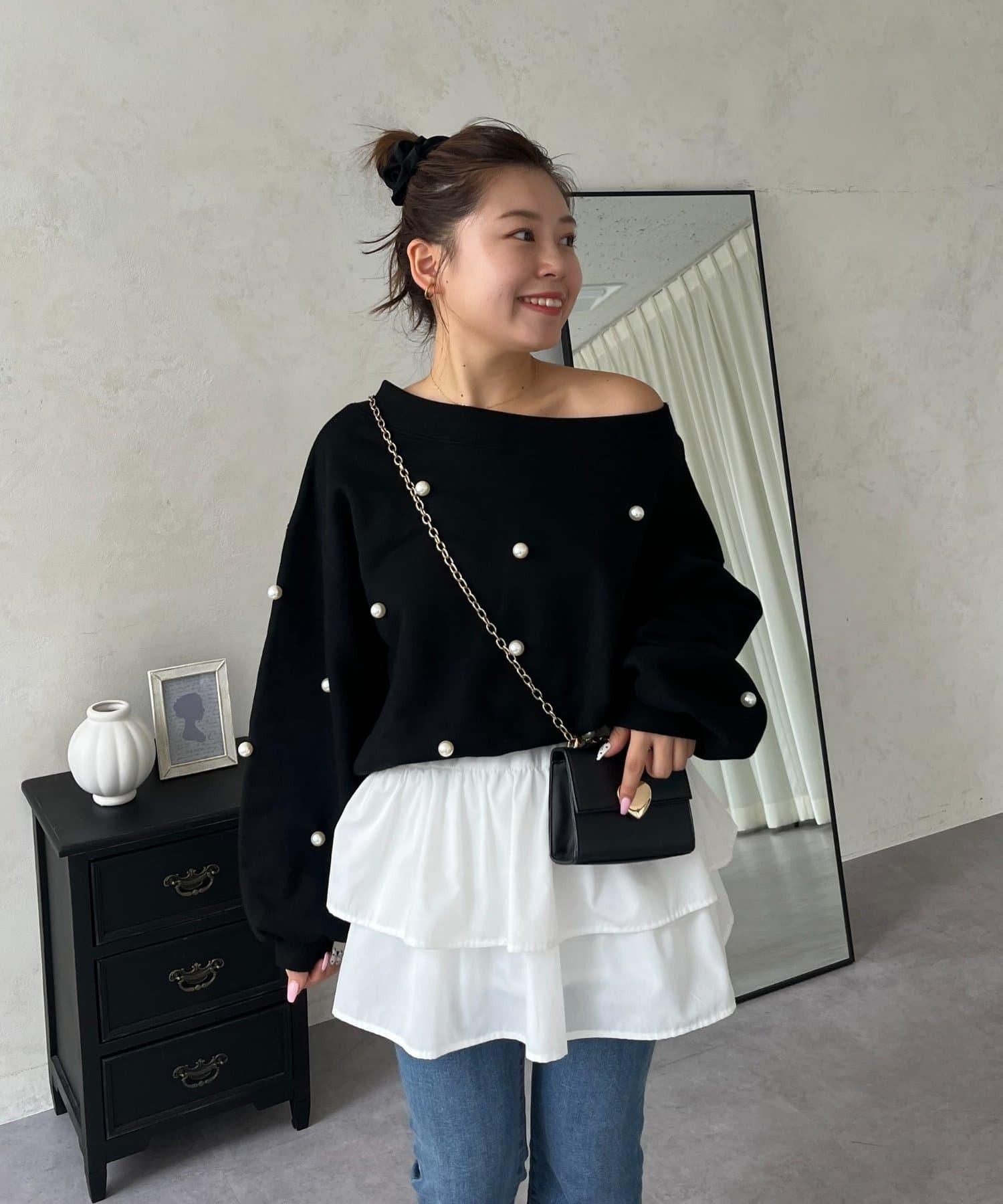 運動衫 / 珍珠 / 成人休閒 / 露肩 / 單肩
