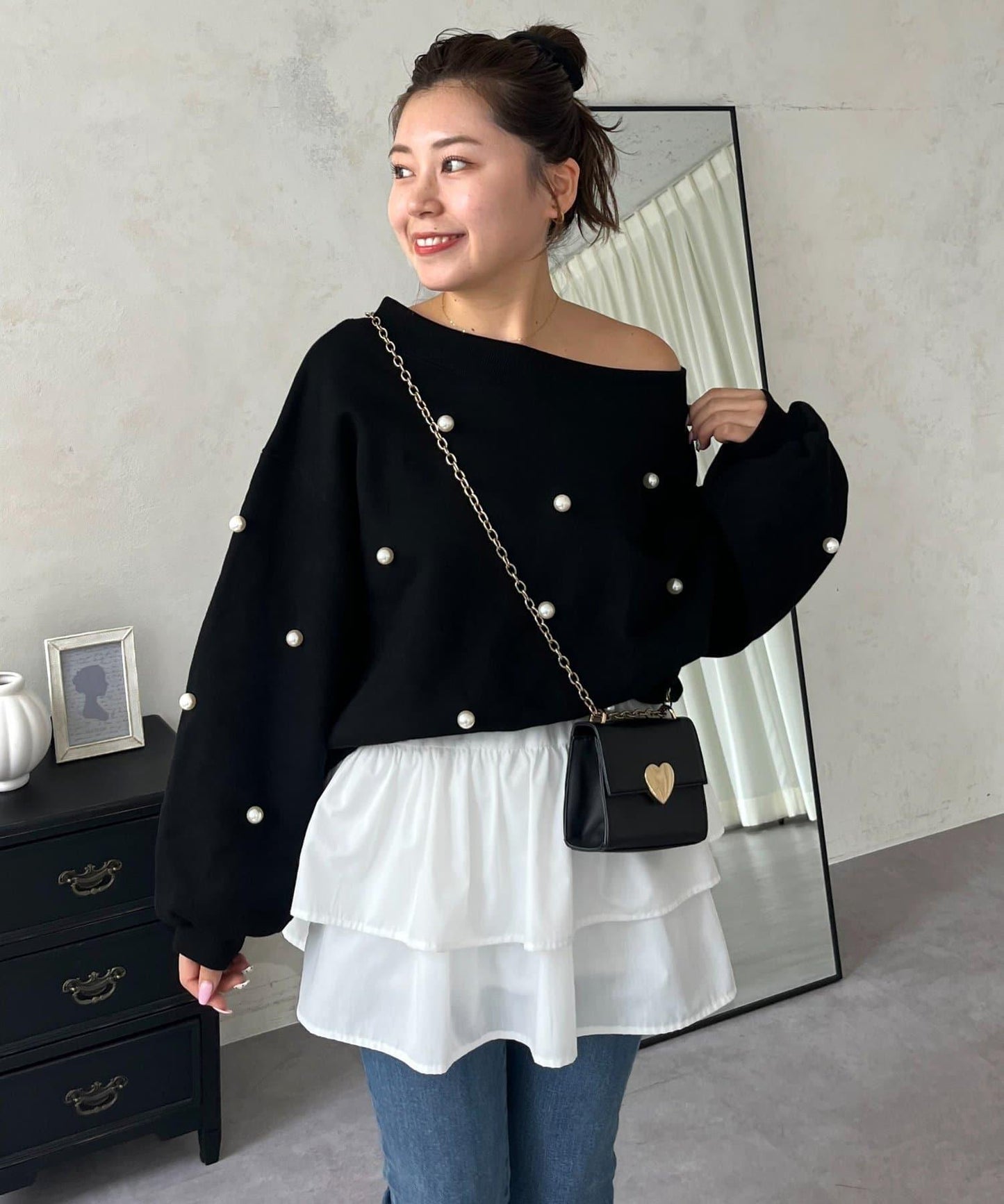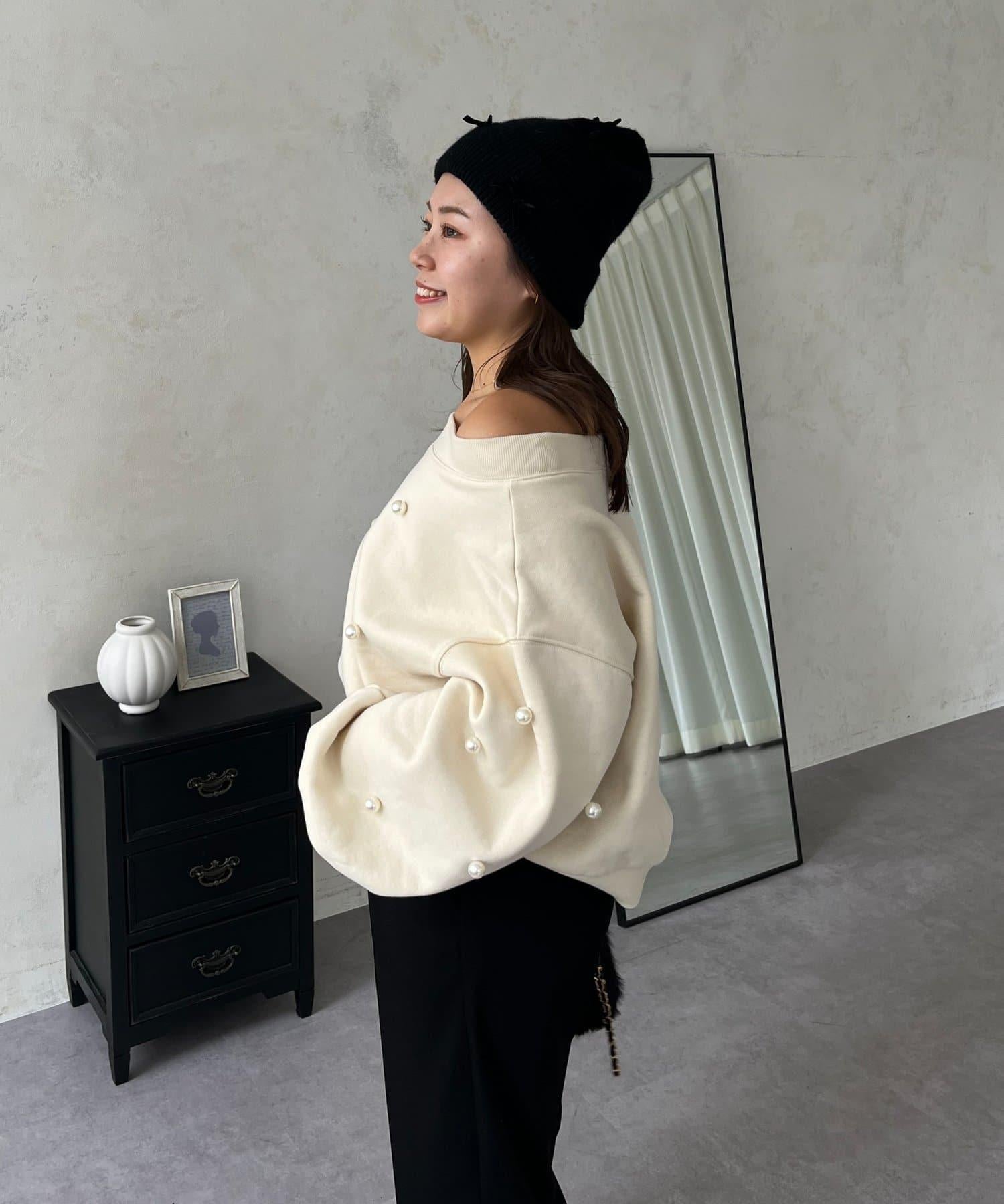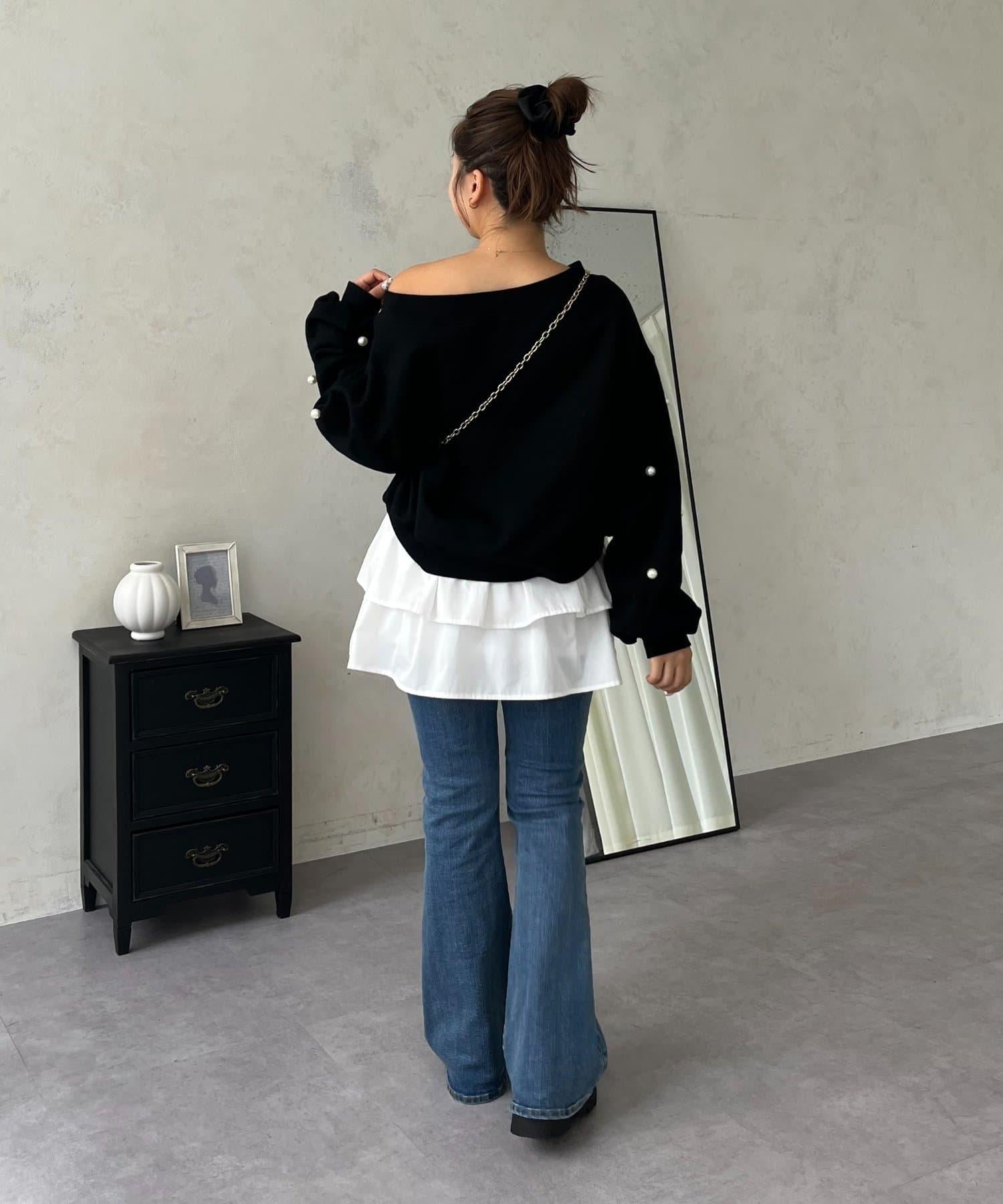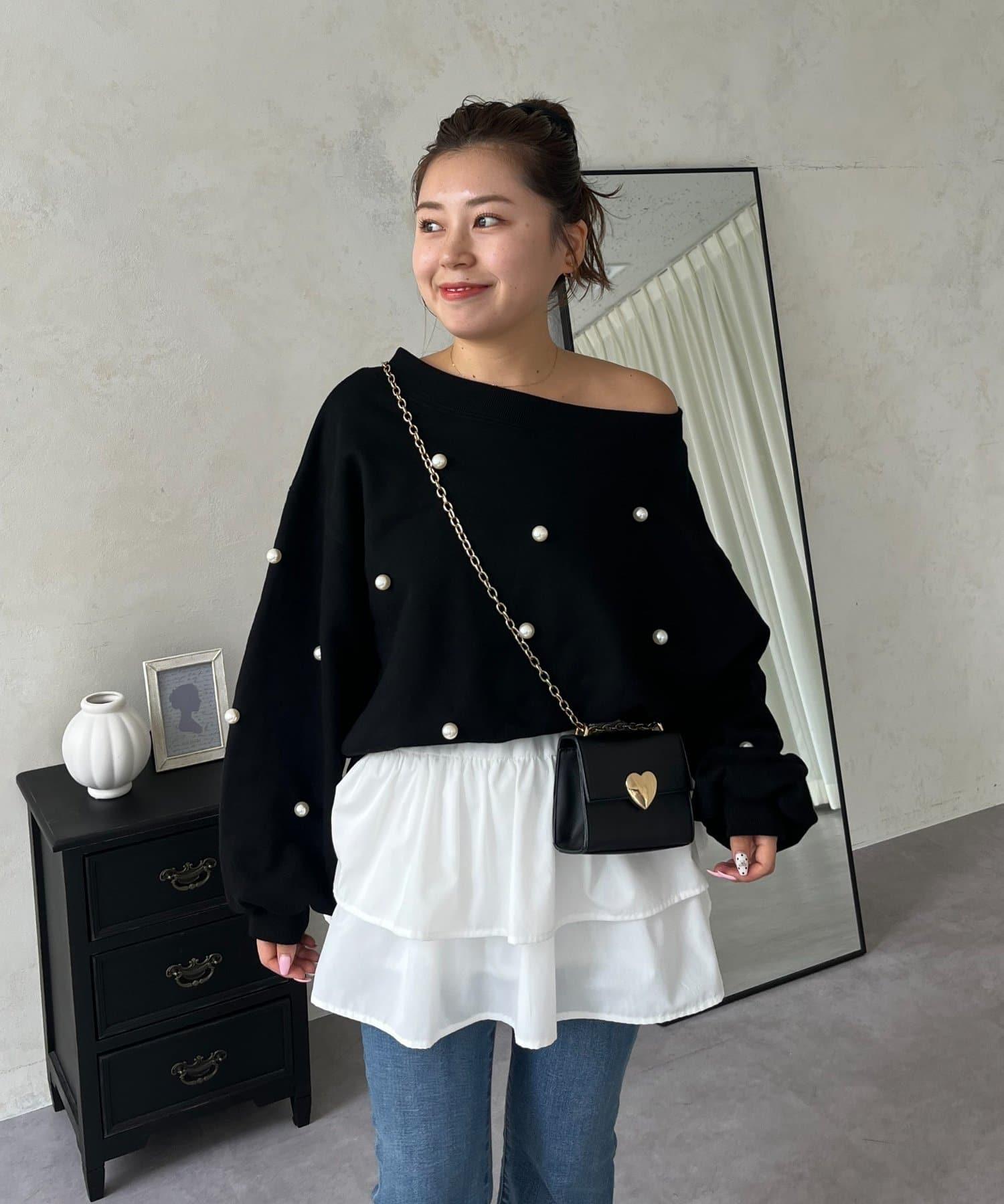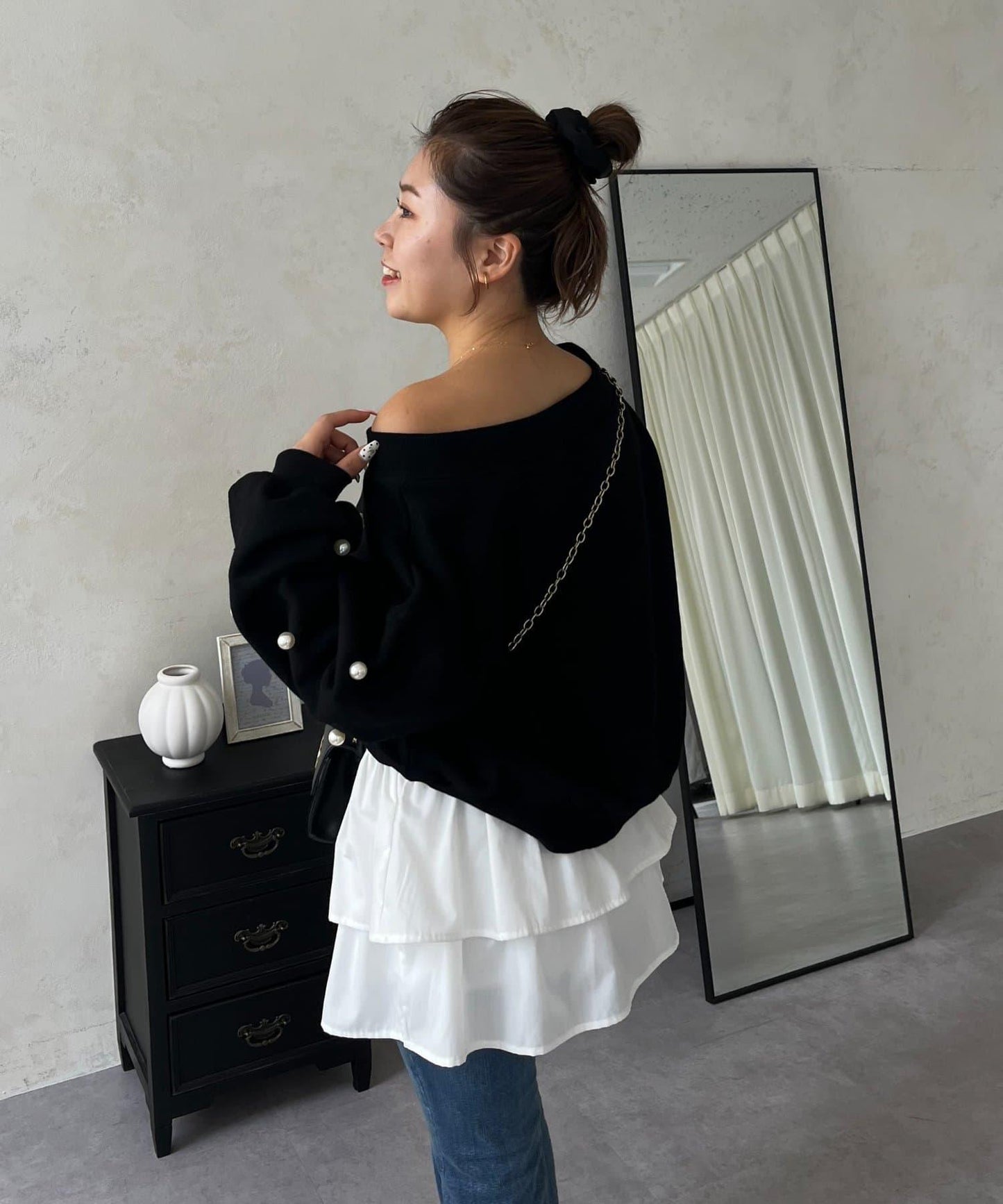 運動衫 / 珍珠 / 成人休閒 / 露肩 / 單肩