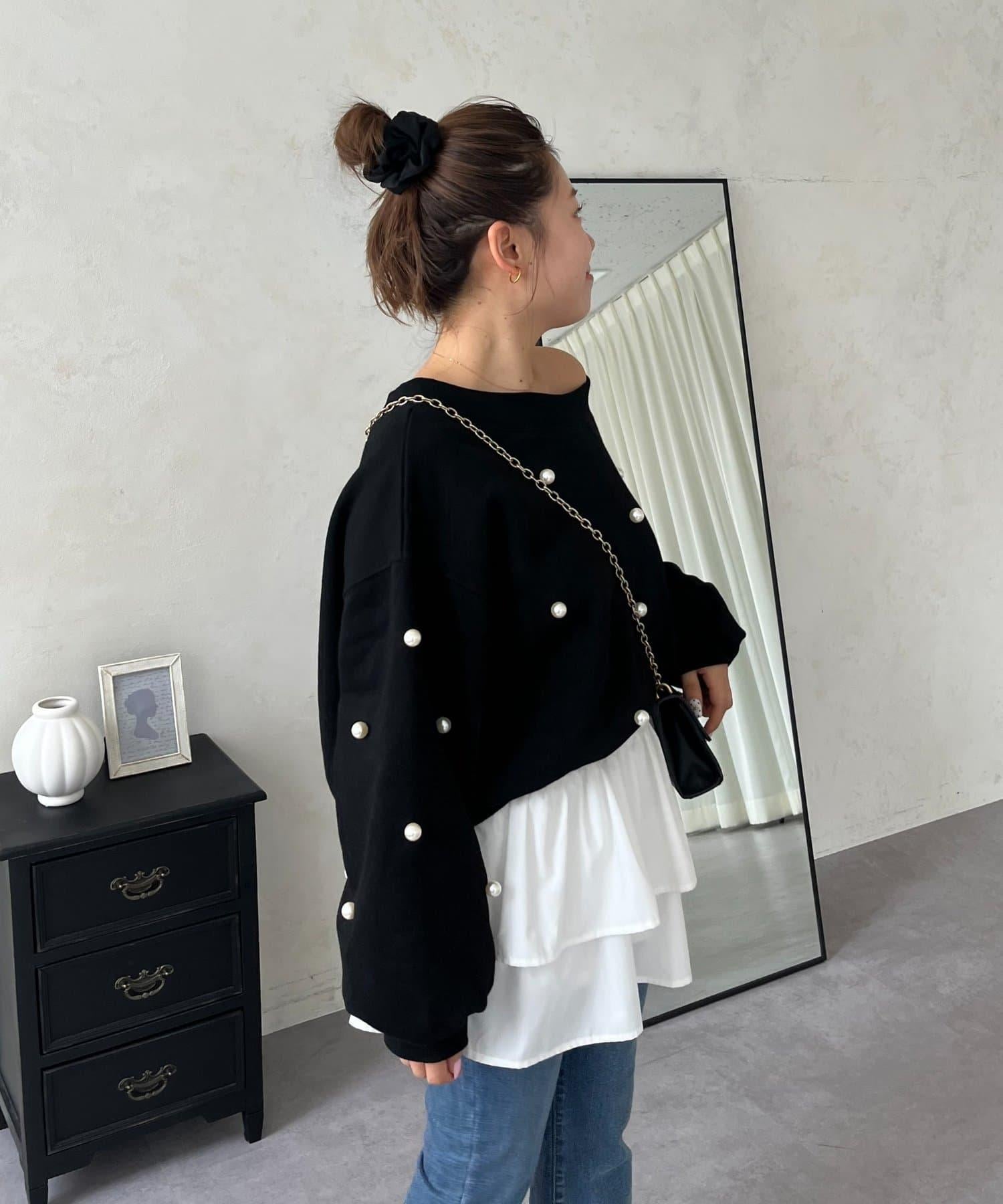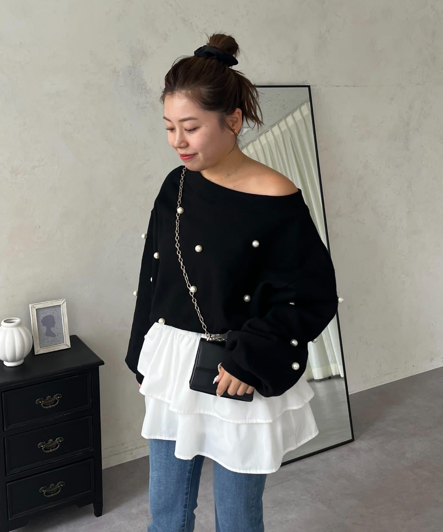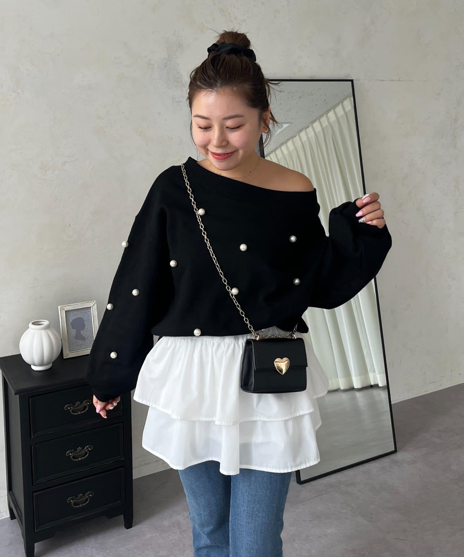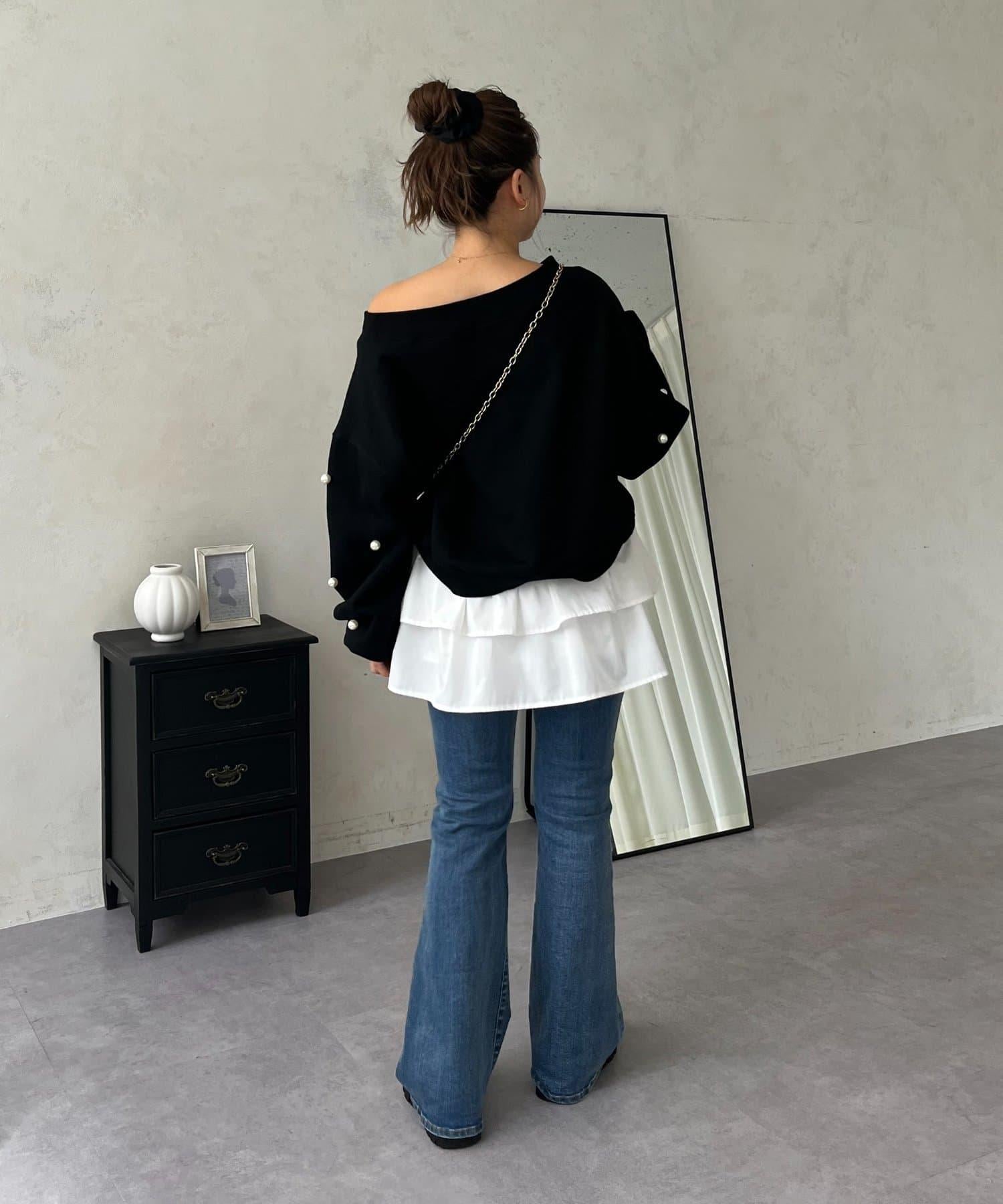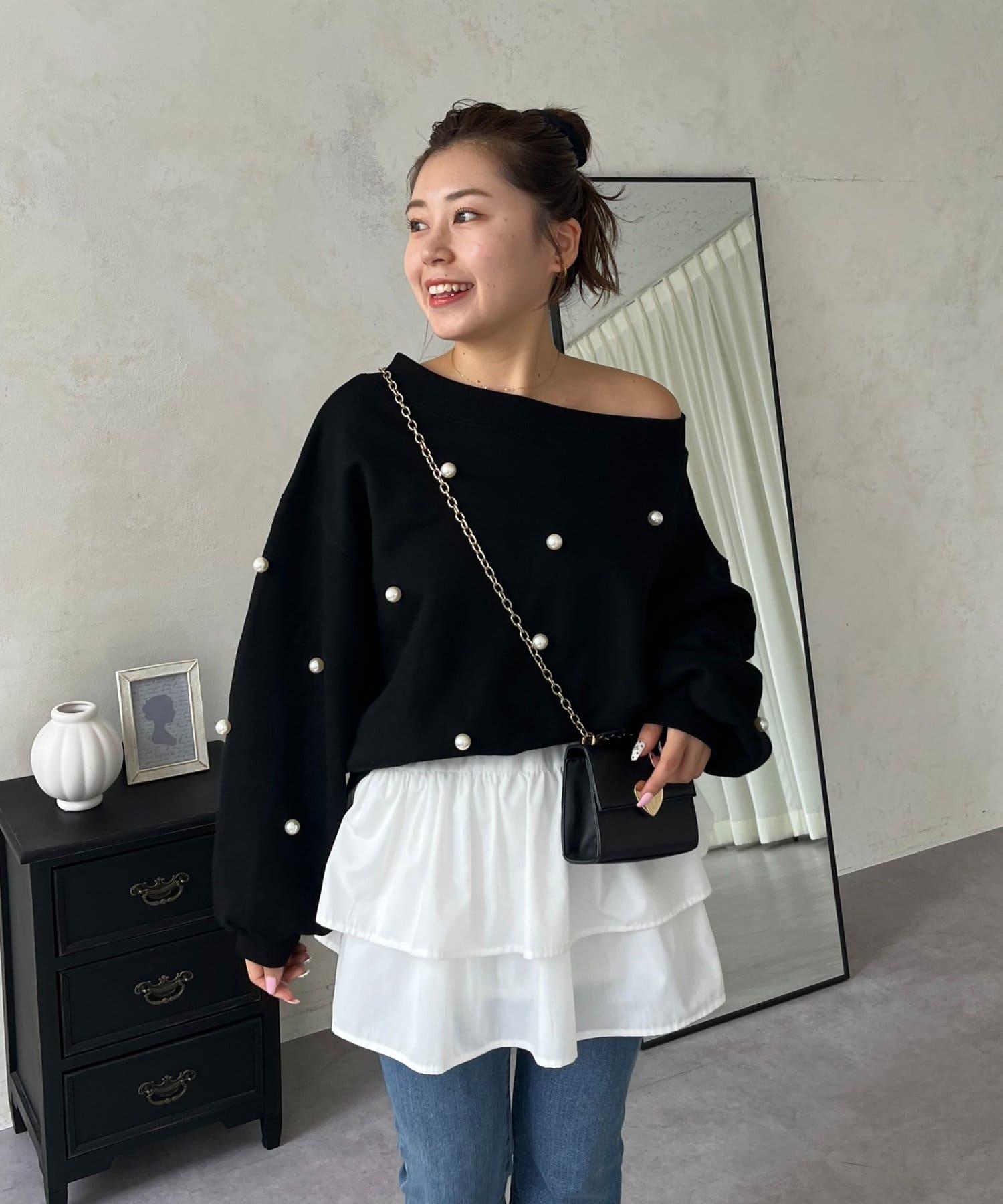 運動衫 / 珍珠 / 成人休閒 / 露肩 / 單肩