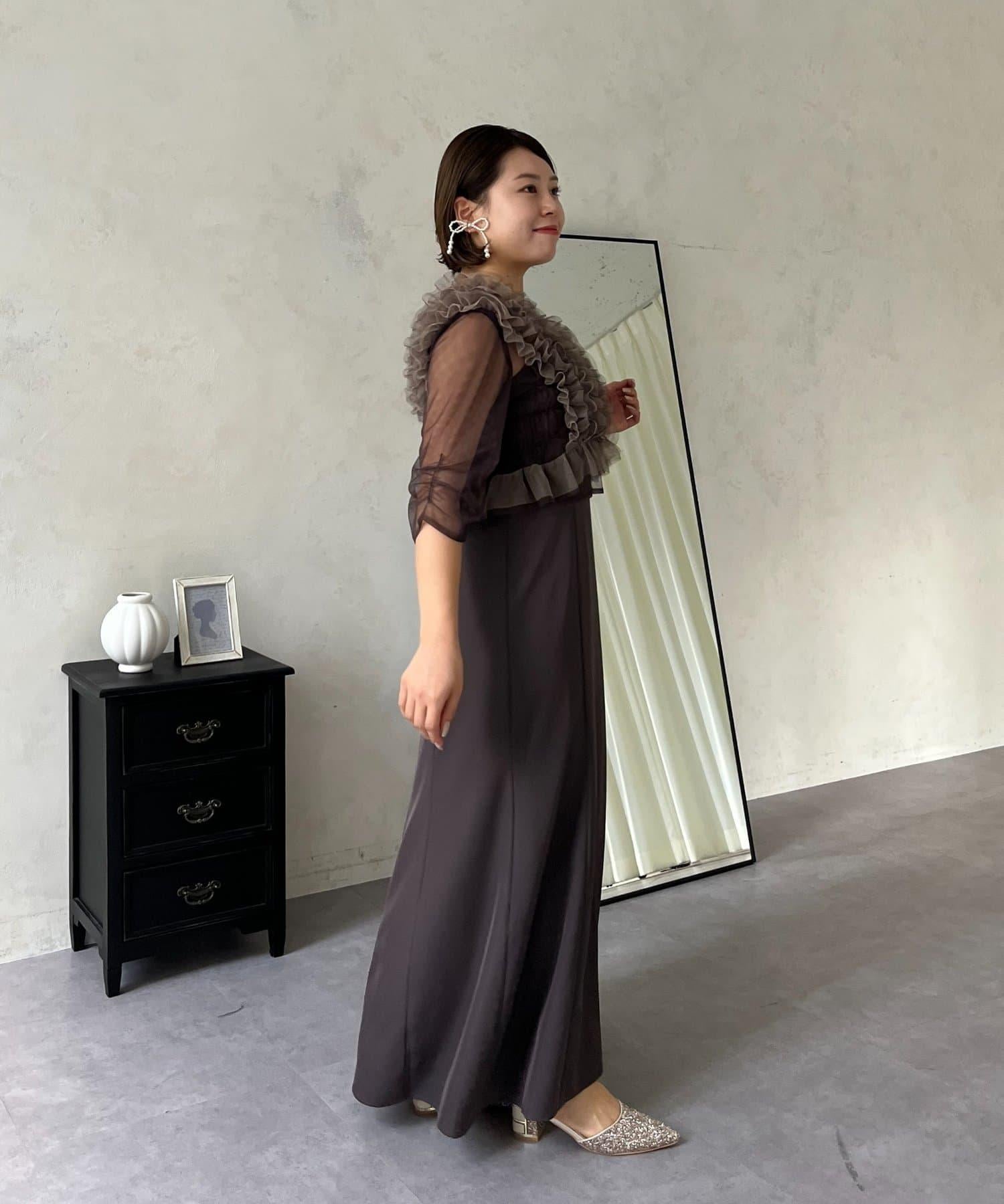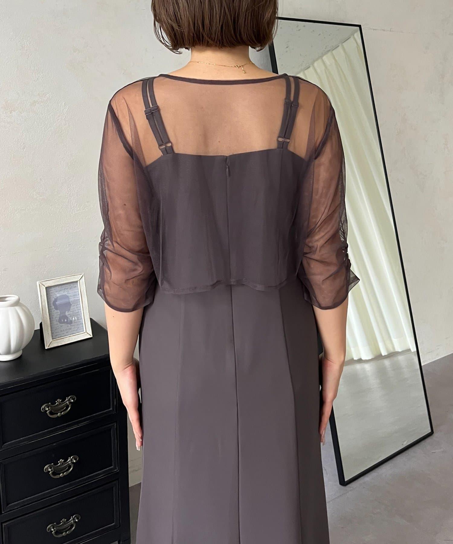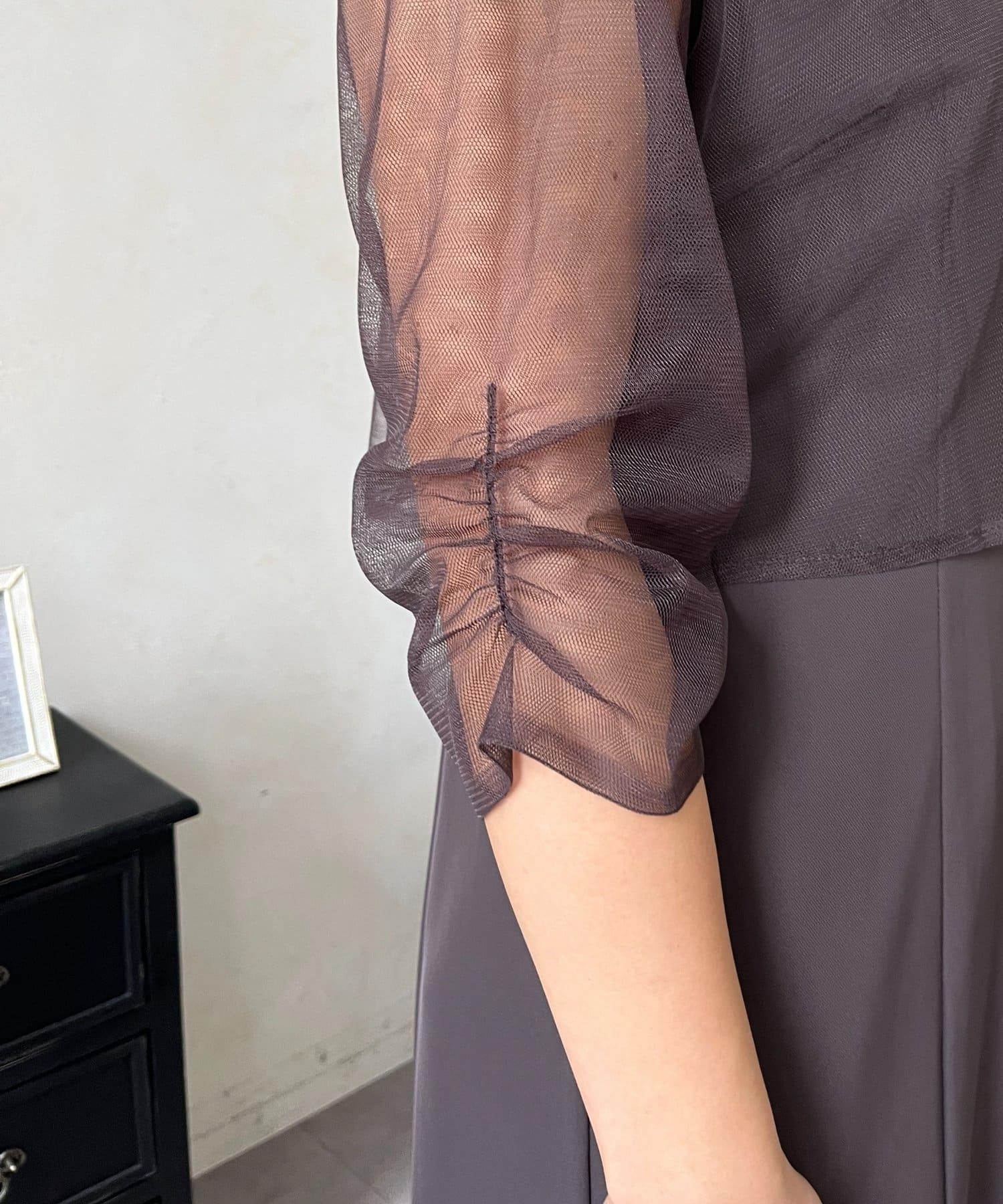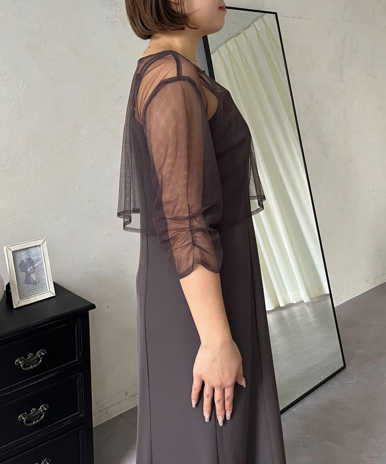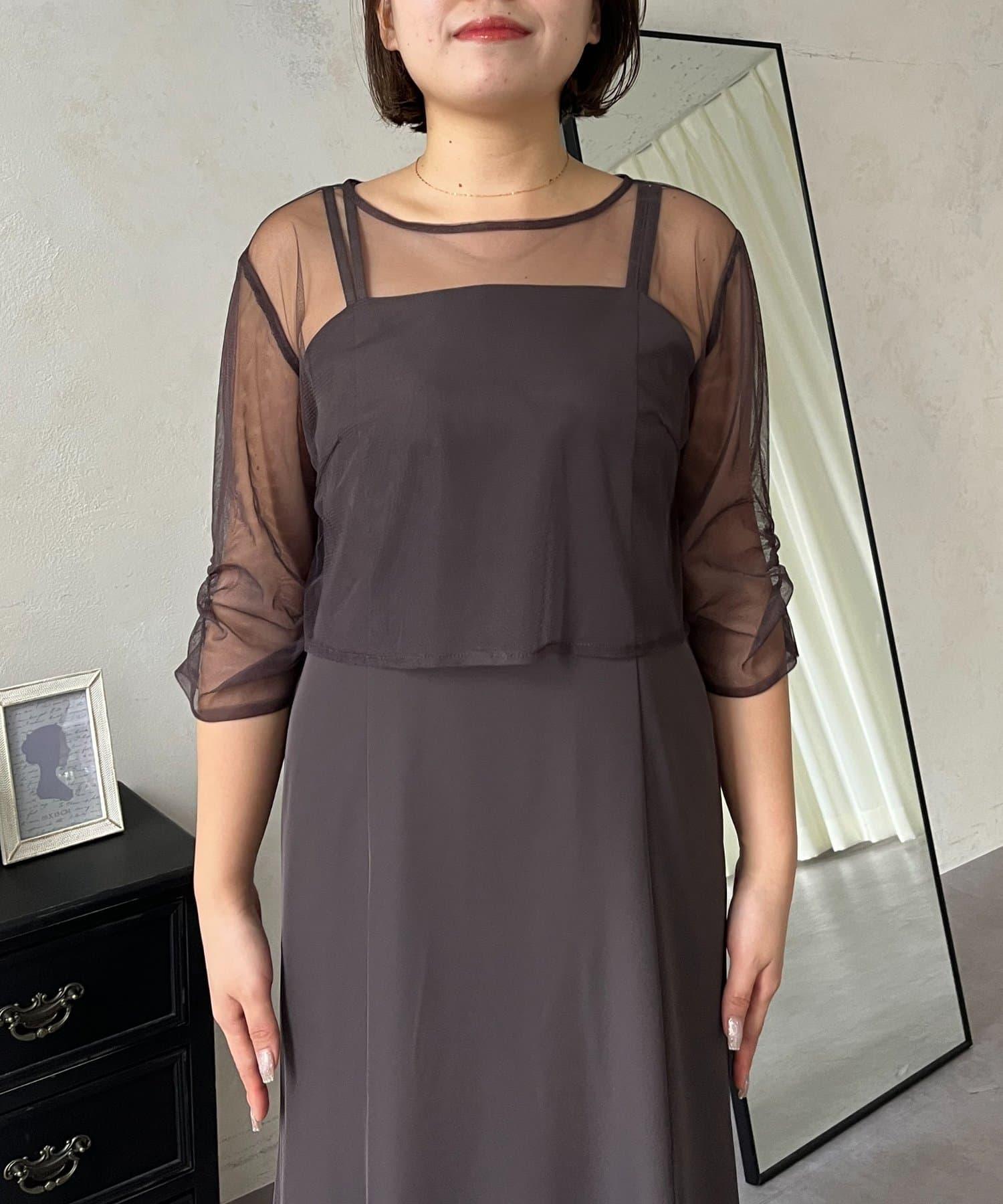 連衣裙/連衣裙/長裙/薄紗/薄紗上衣/鑰匙領/