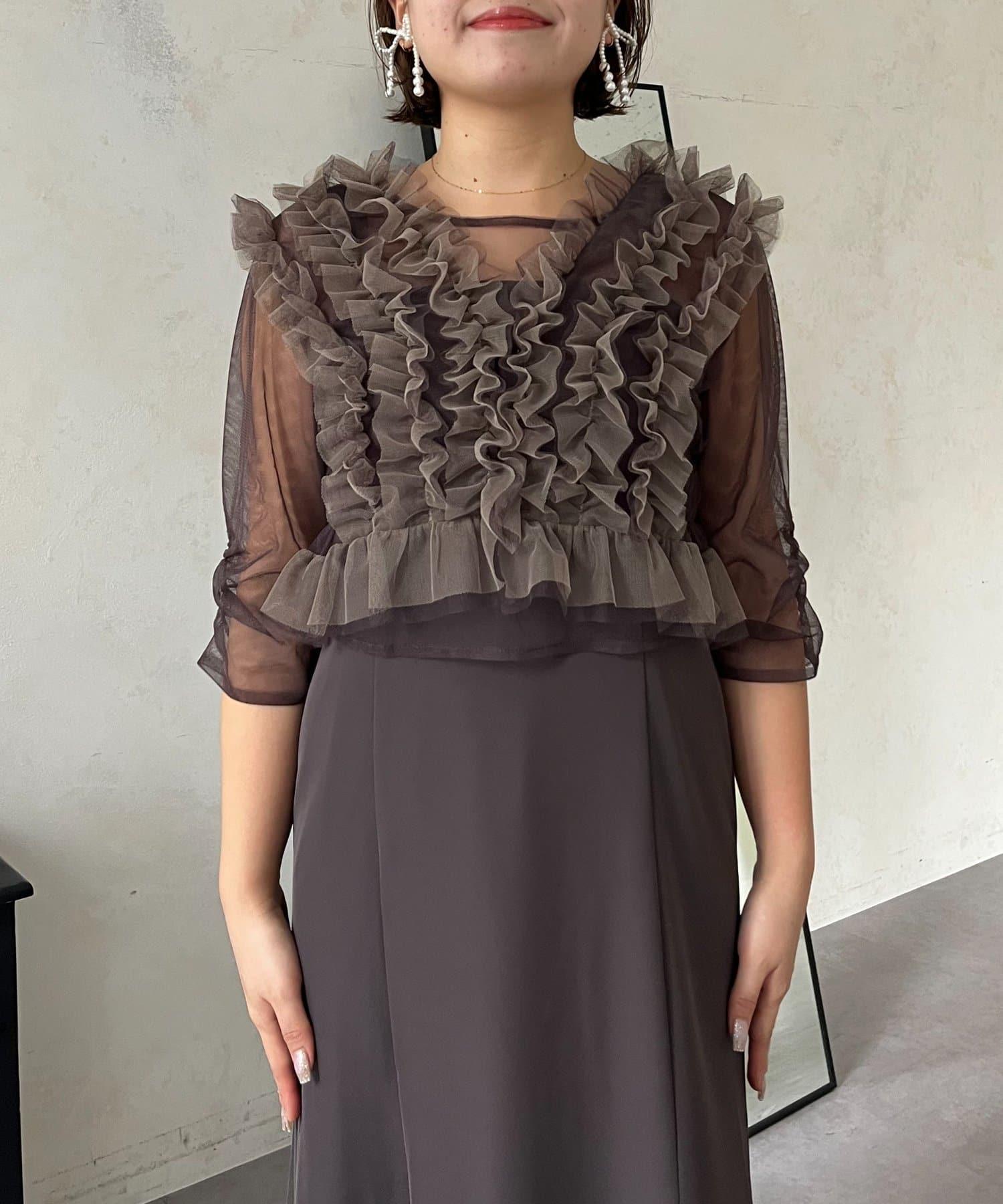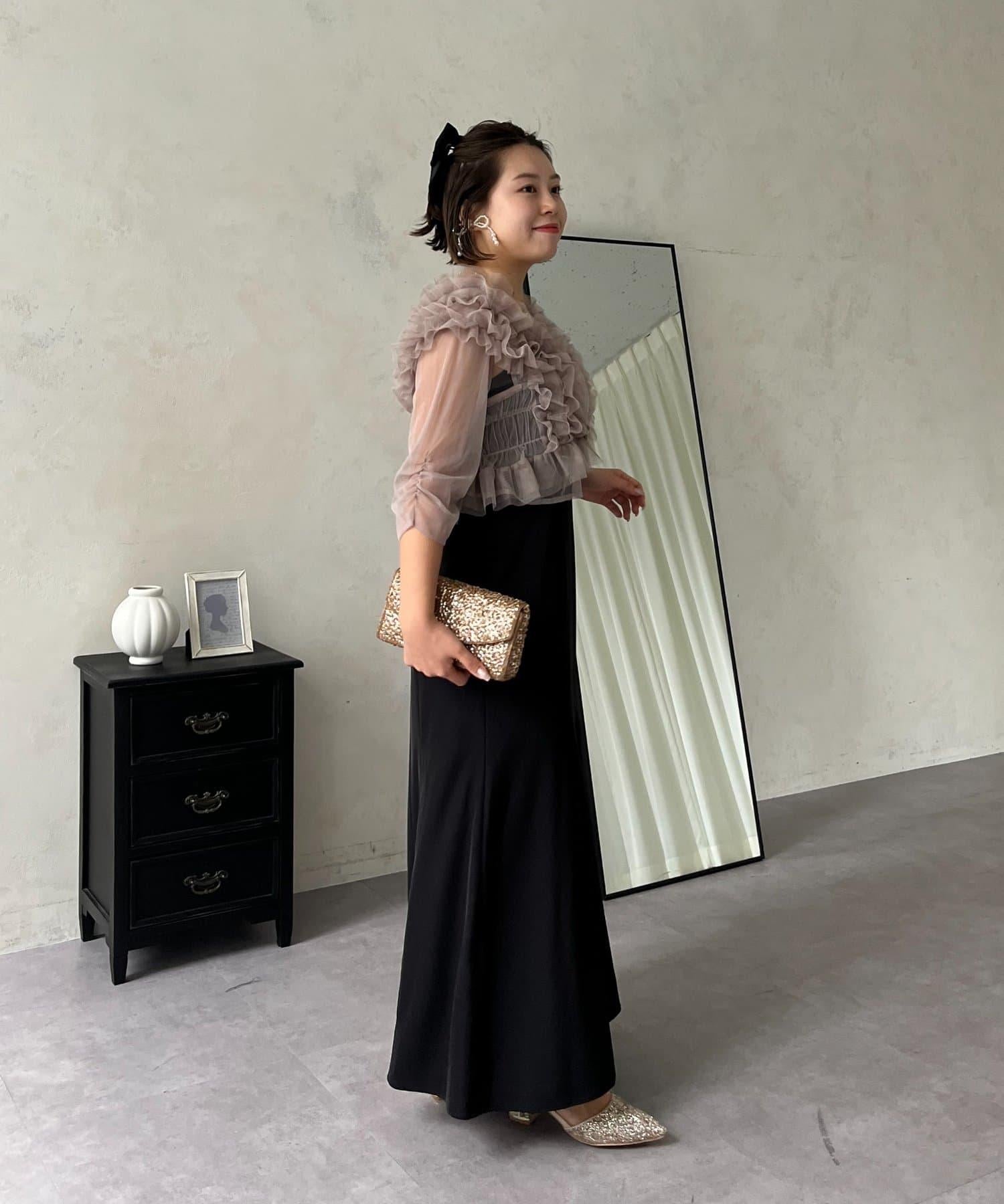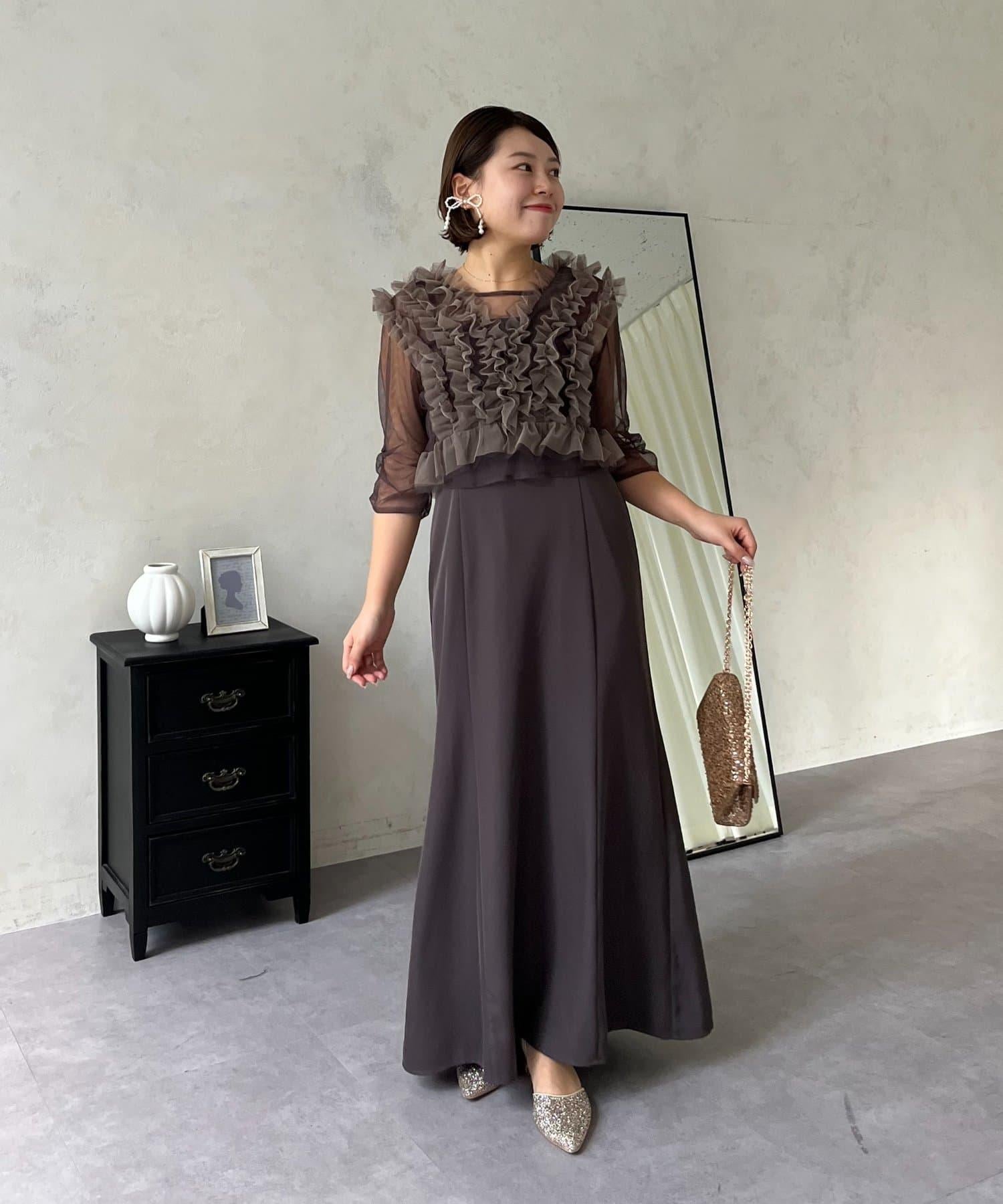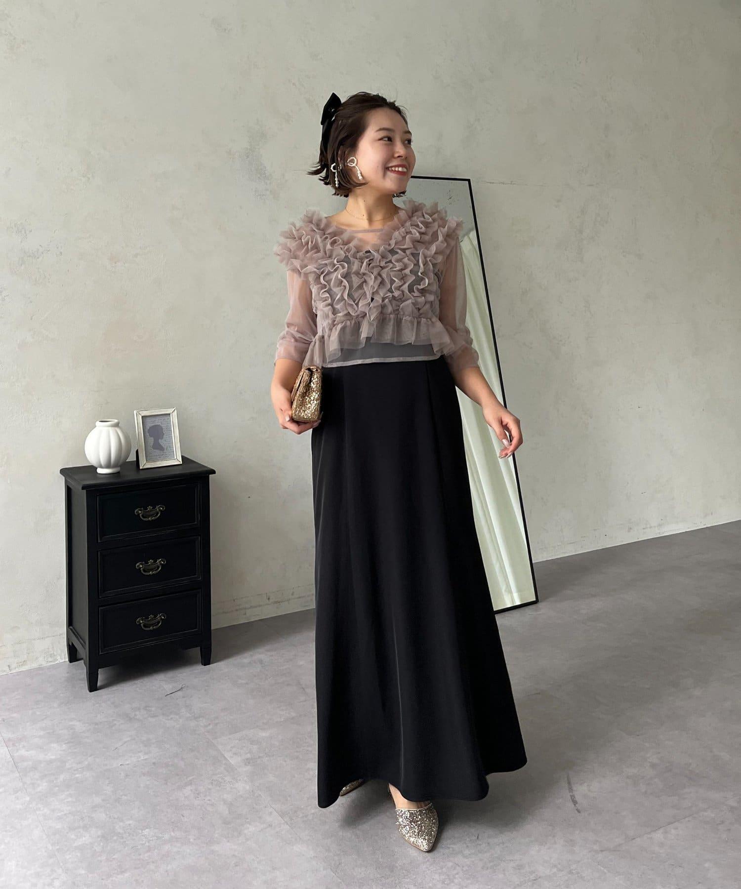 連衣裙/連衣裙/長裙/薄紗/薄紗上衣/鑰匙領/