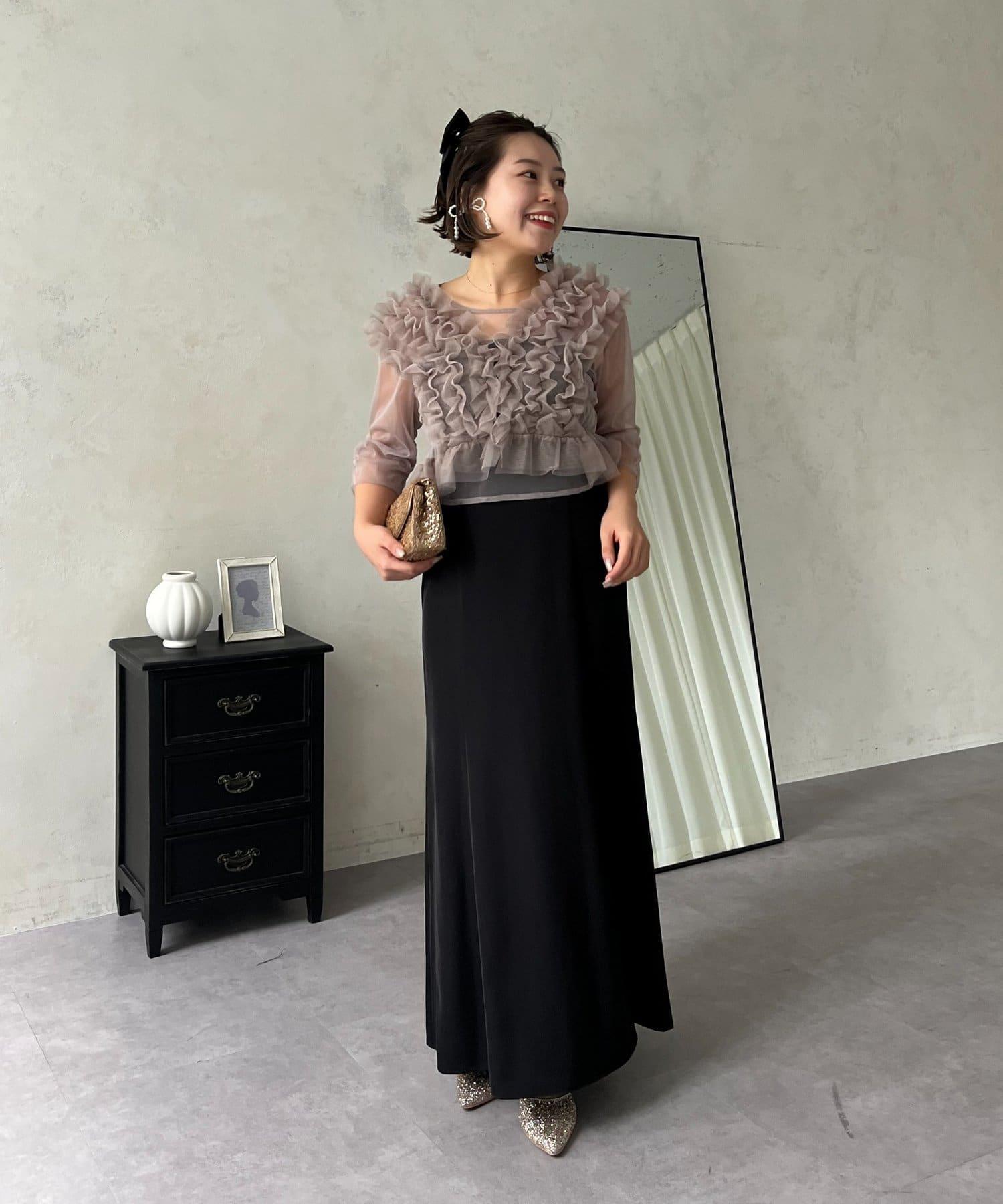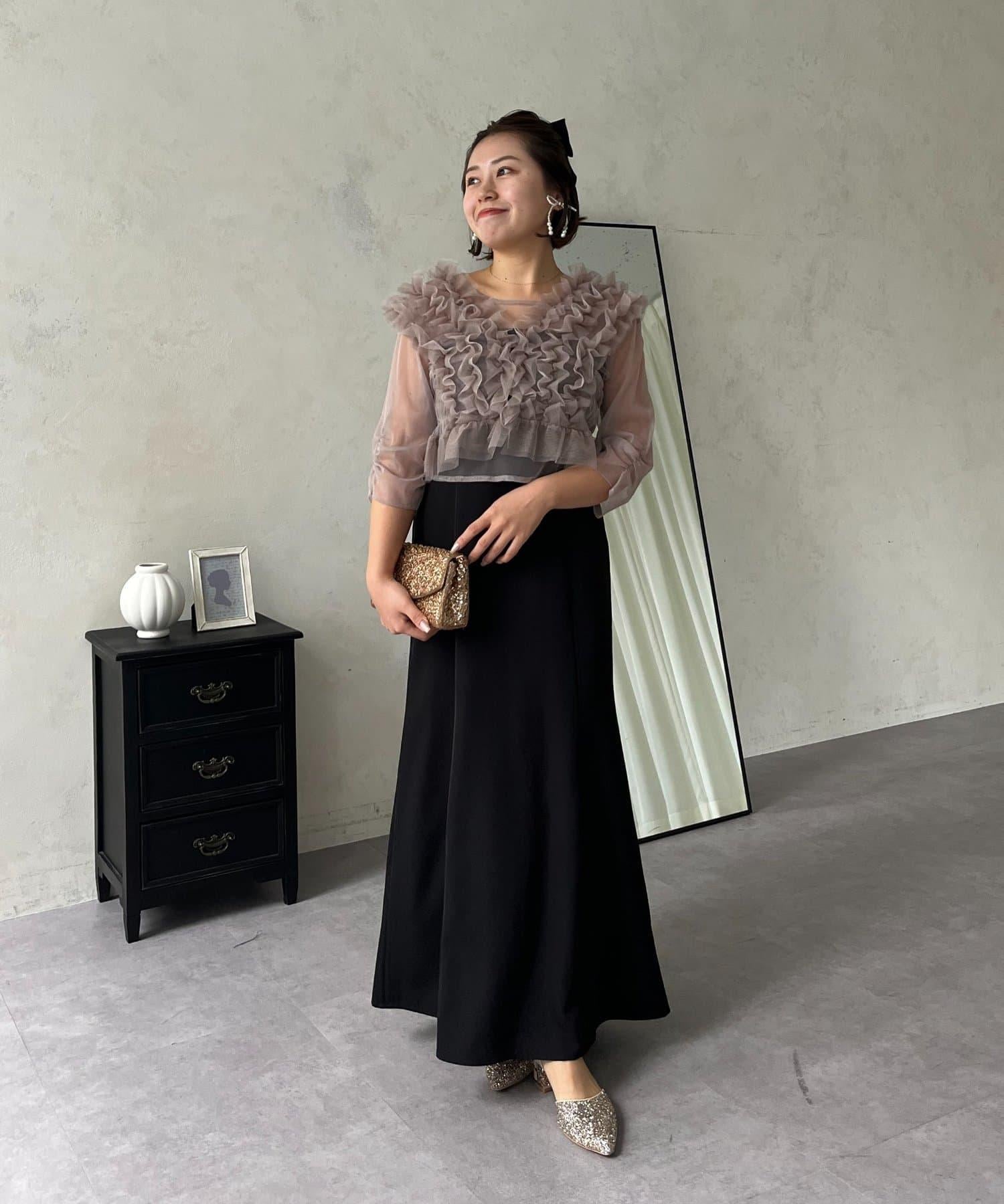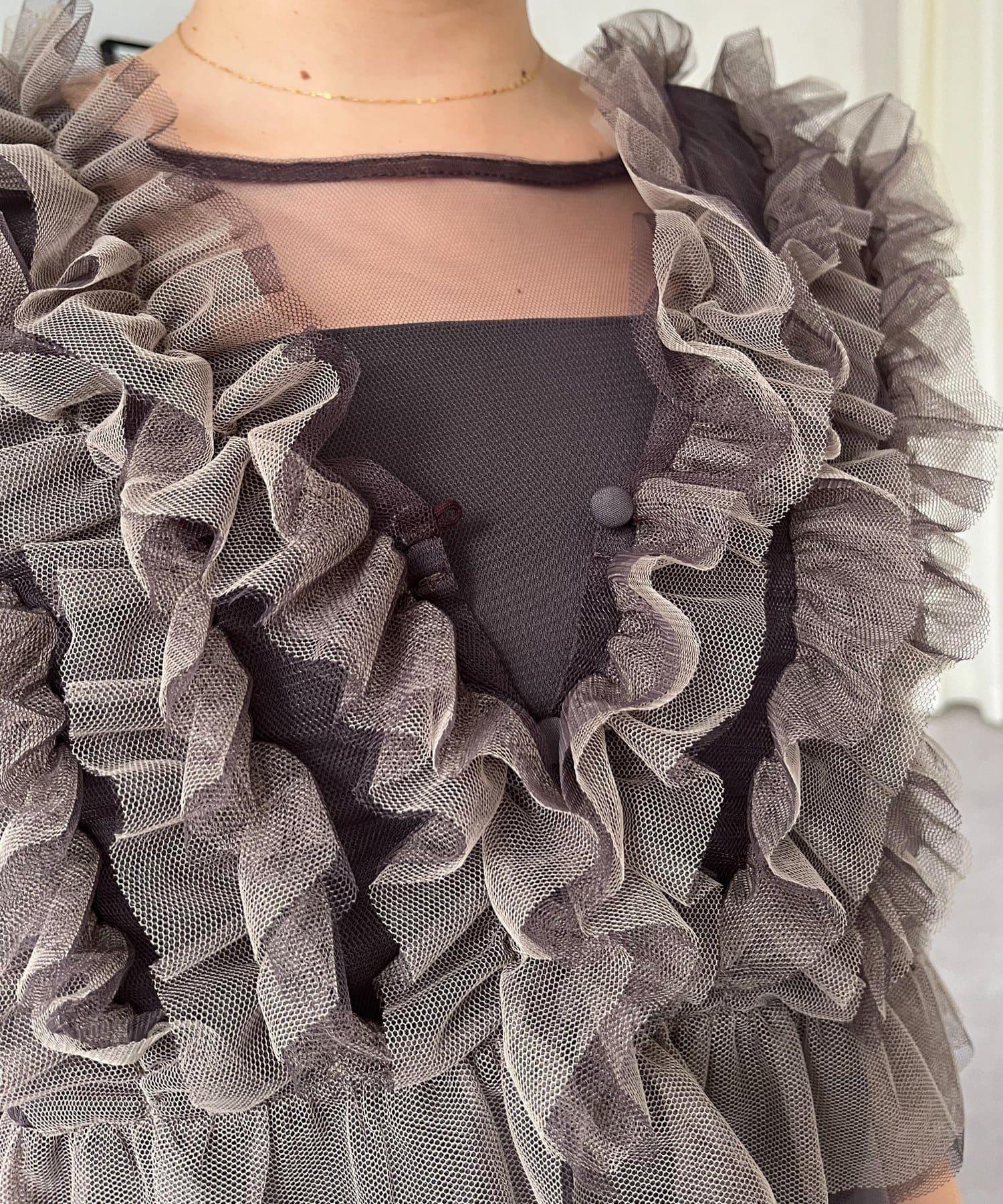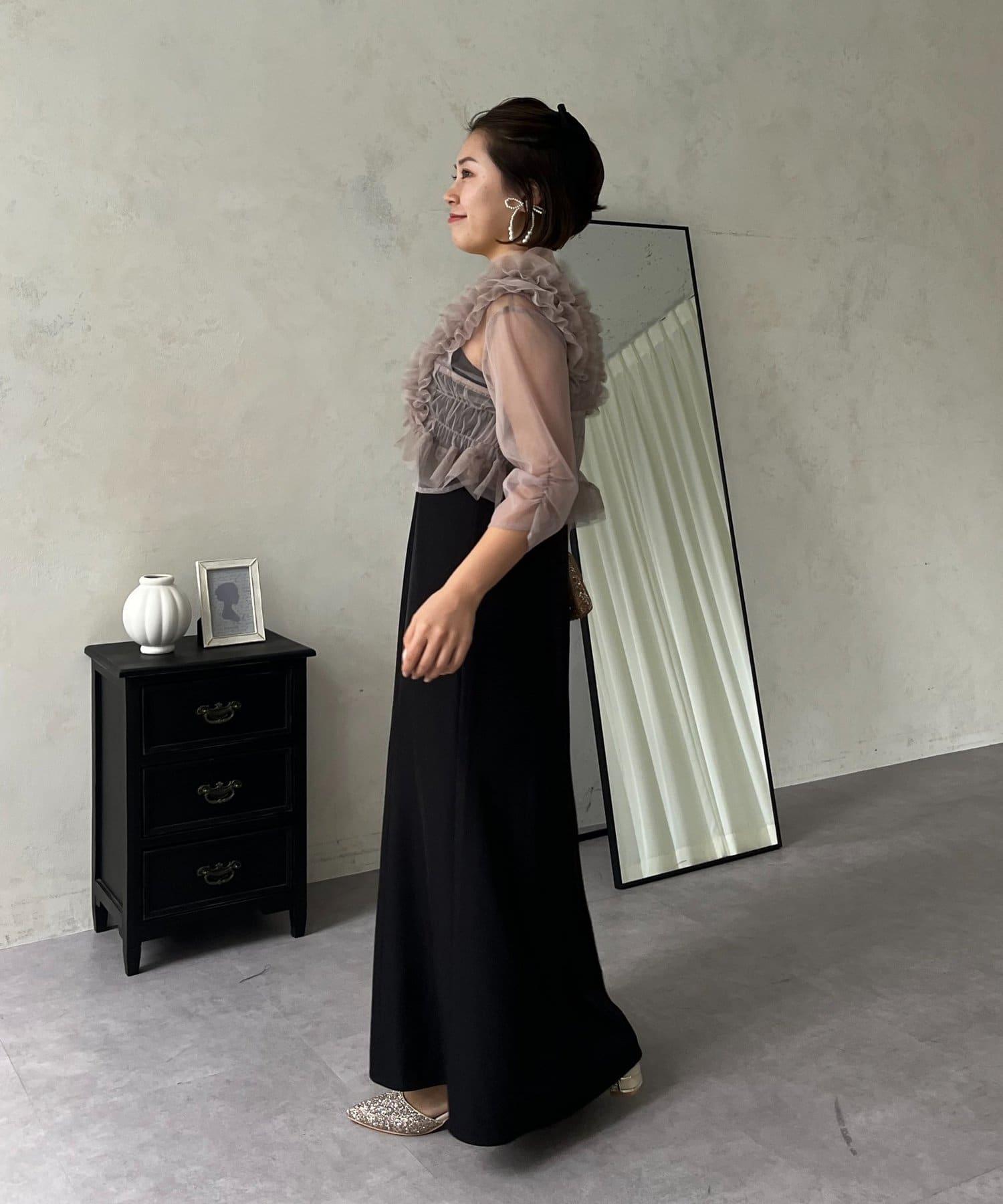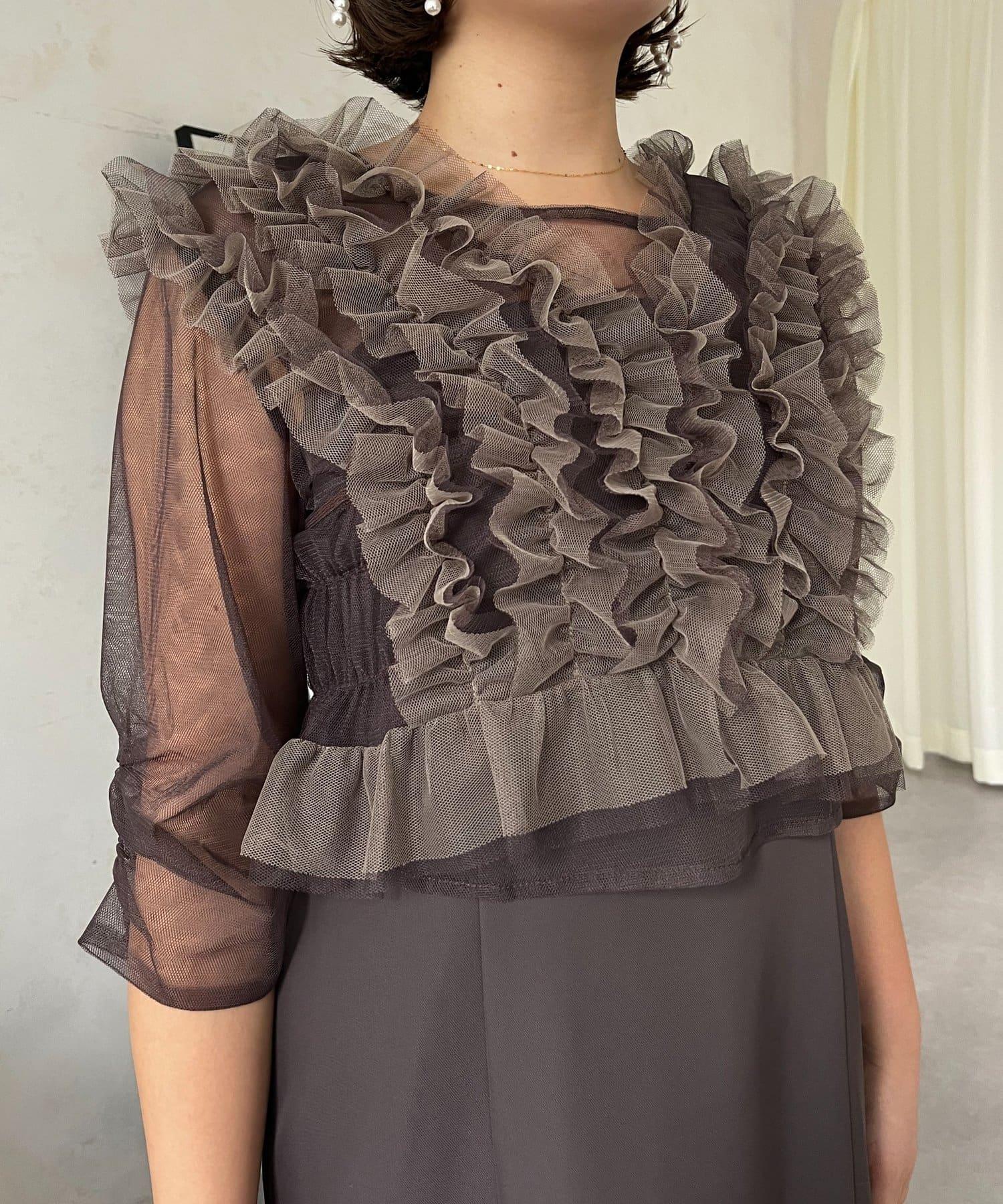連衣裙/連衣裙/長裙/薄紗/薄紗上衣/鑰匙領/
