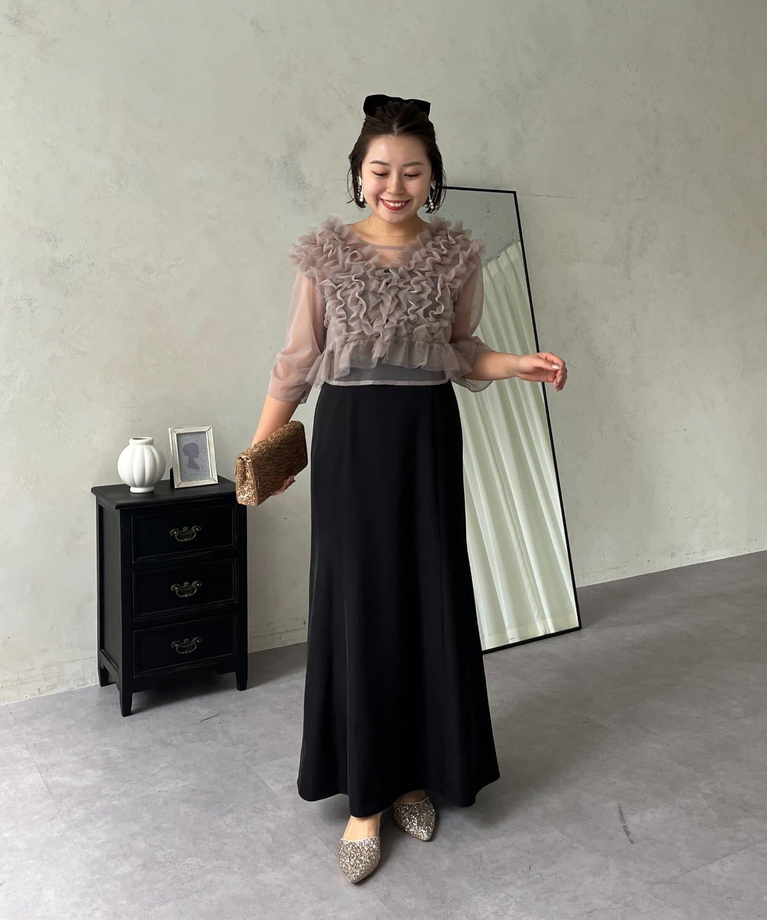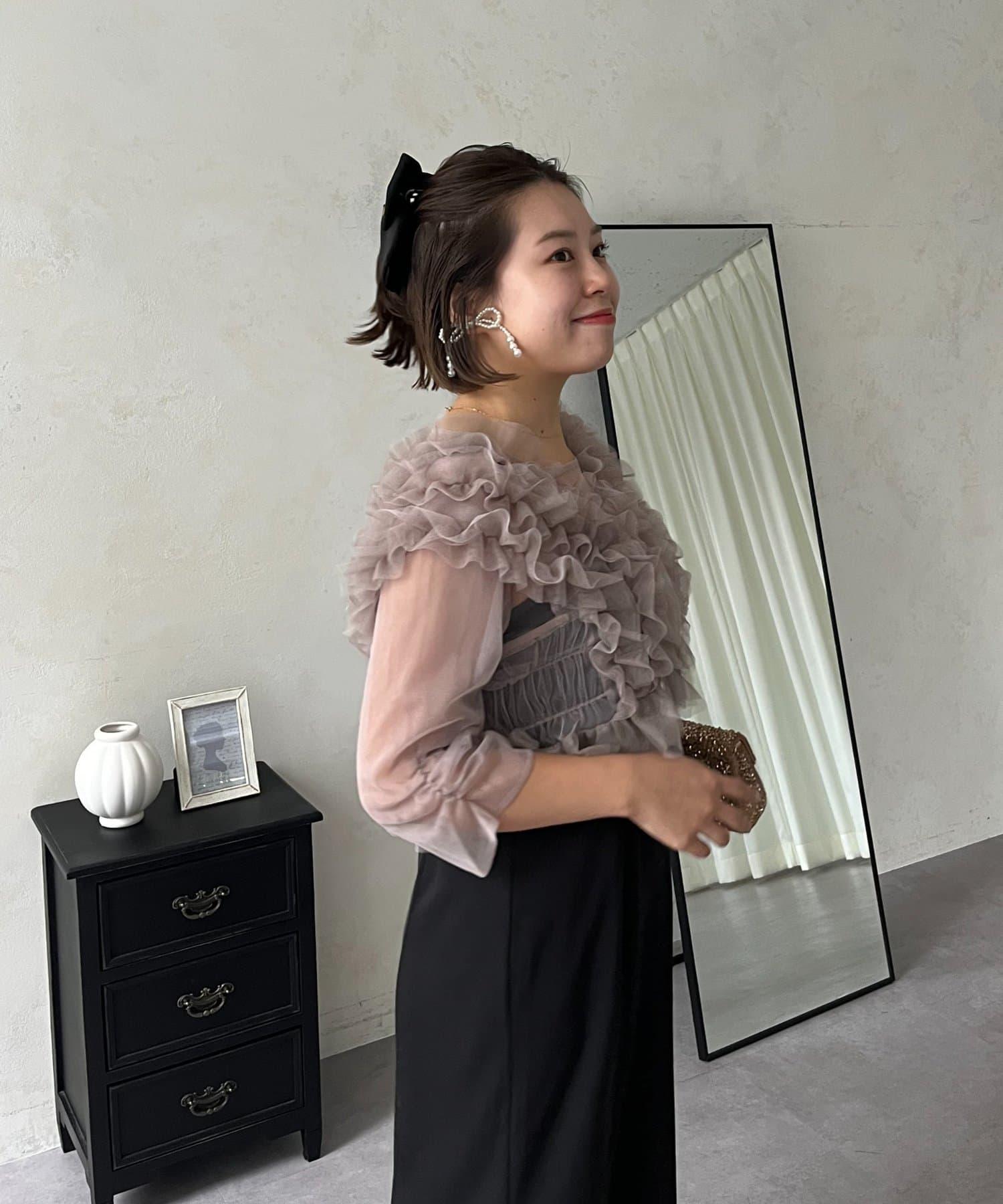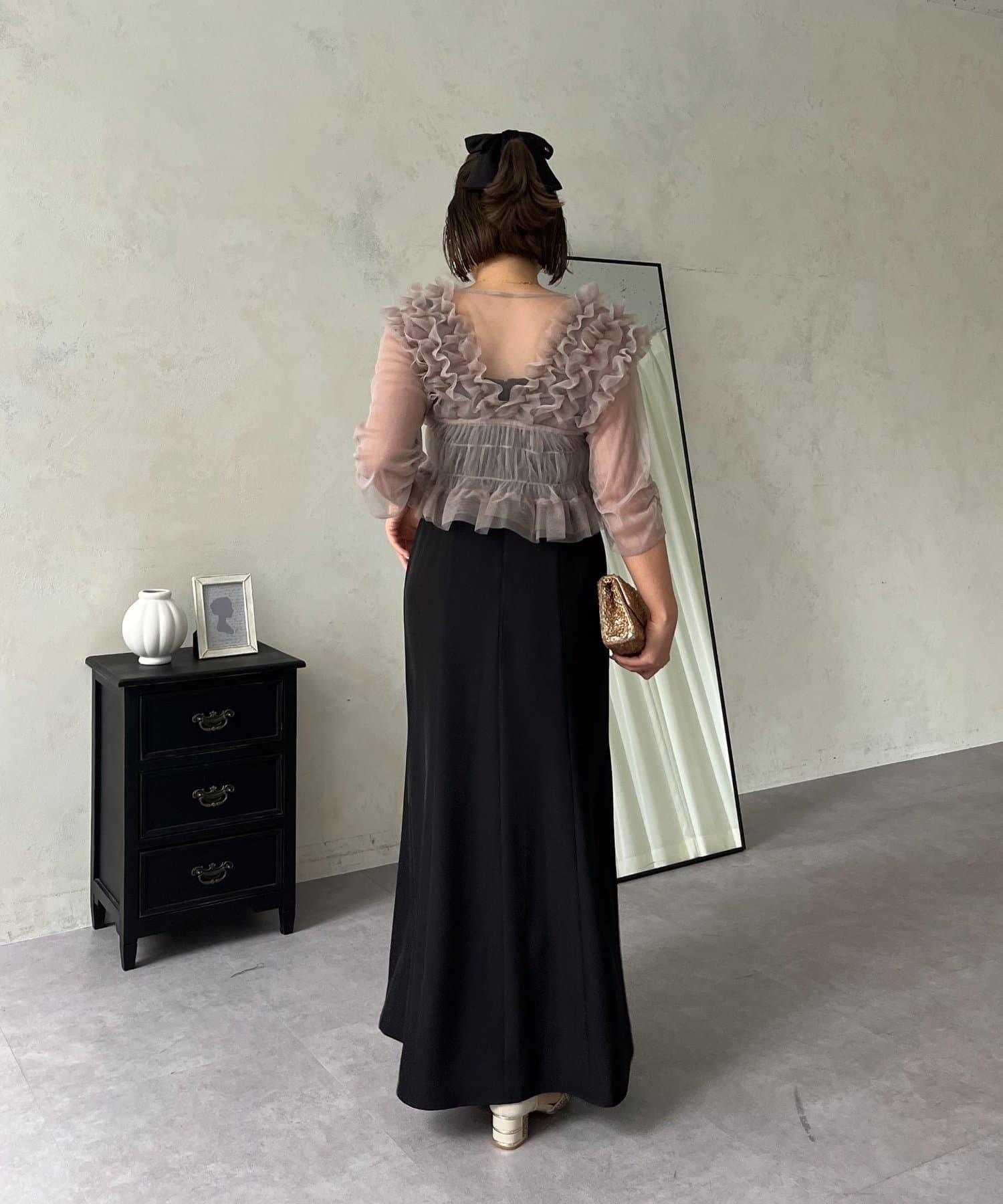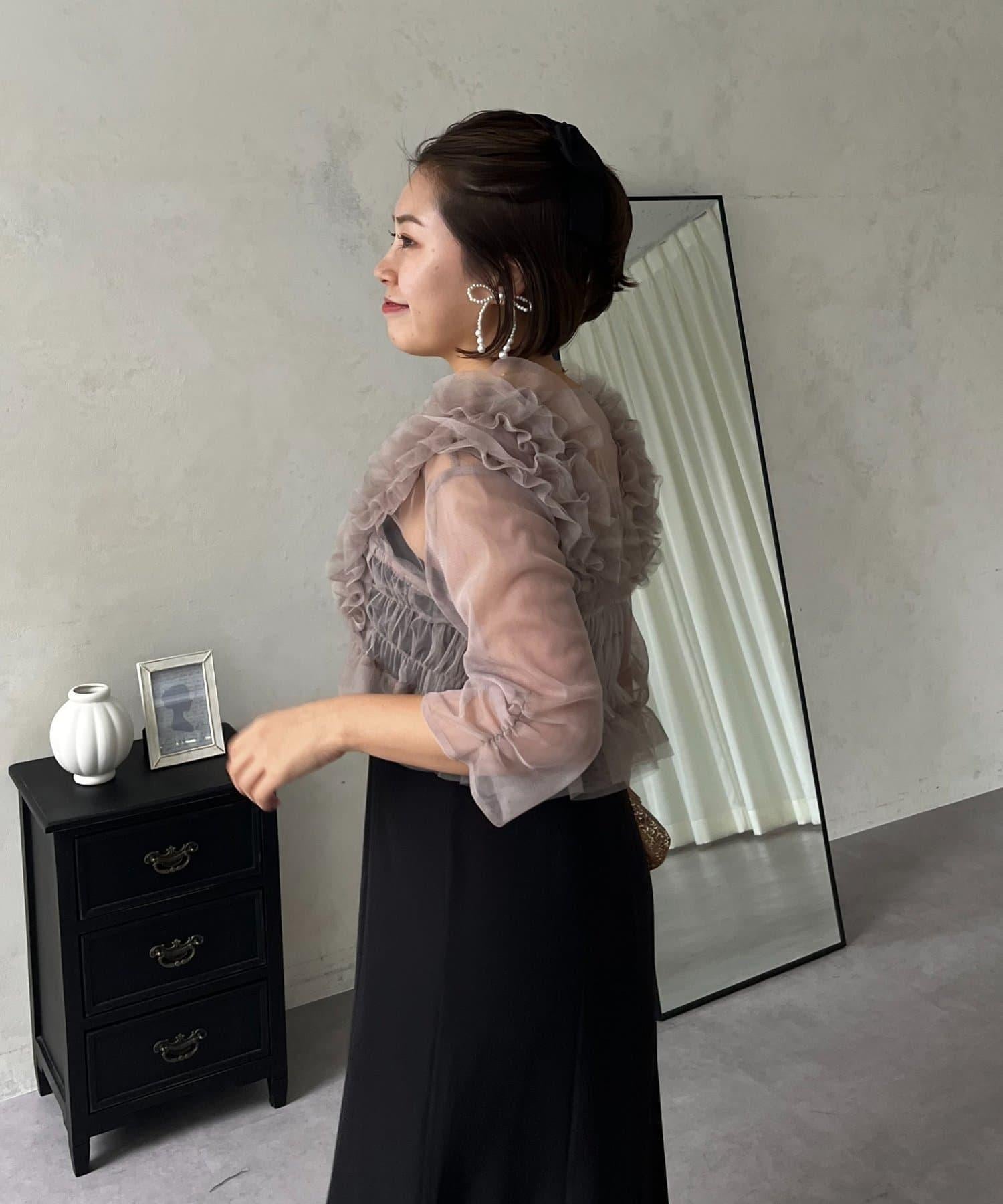 連衣裙/連衣裙/長裙/薄紗/薄紗上衣/鑰匙領/