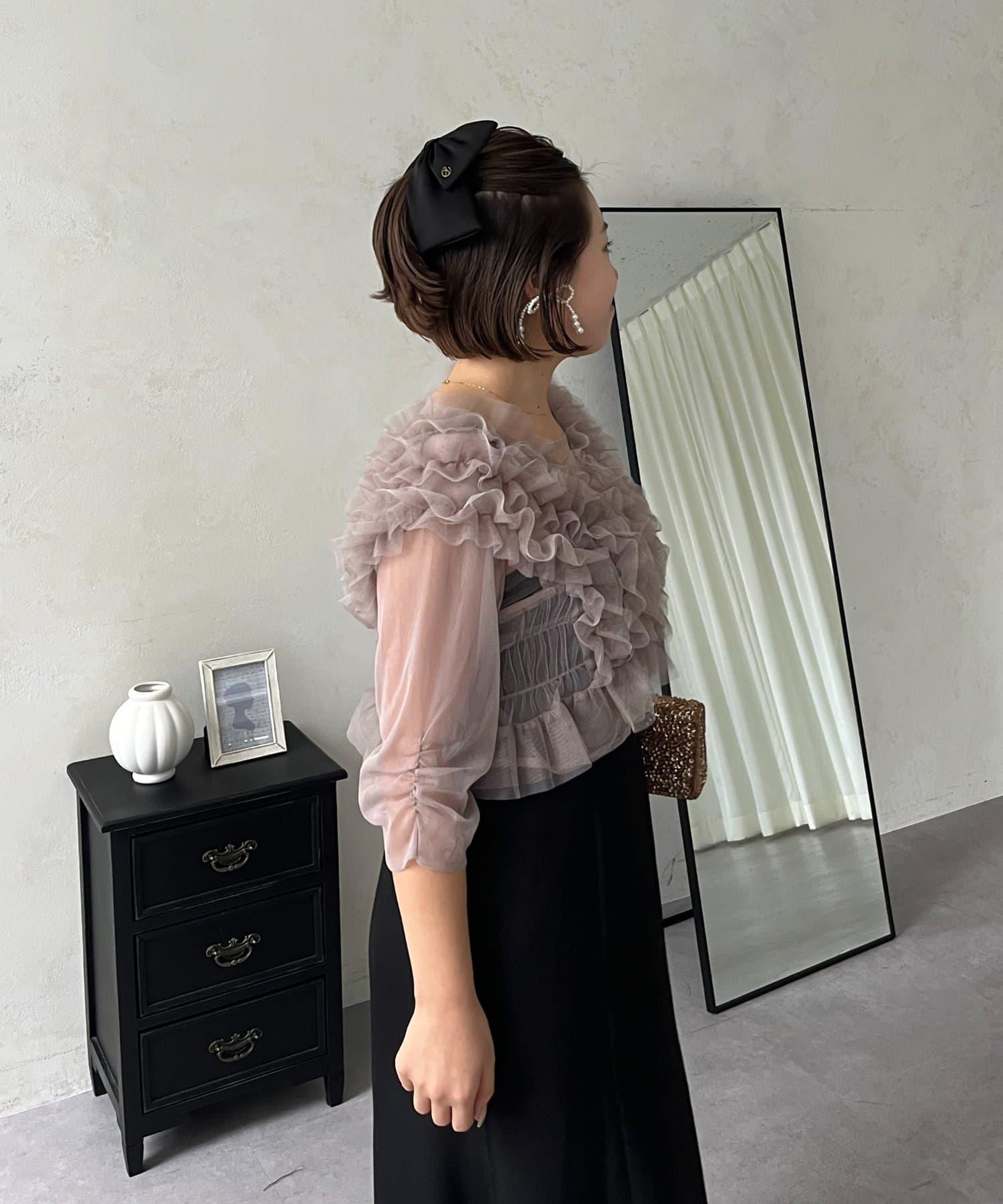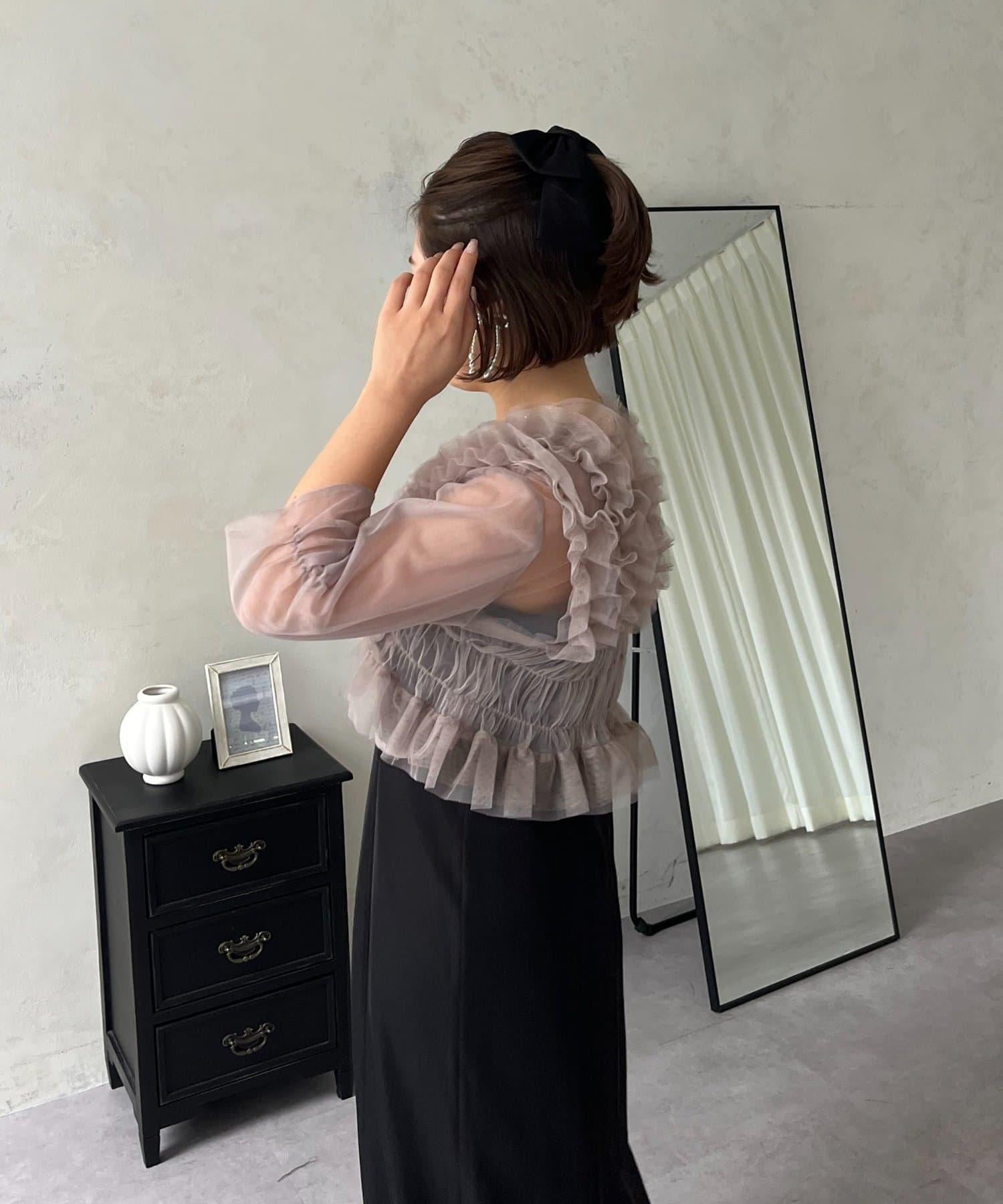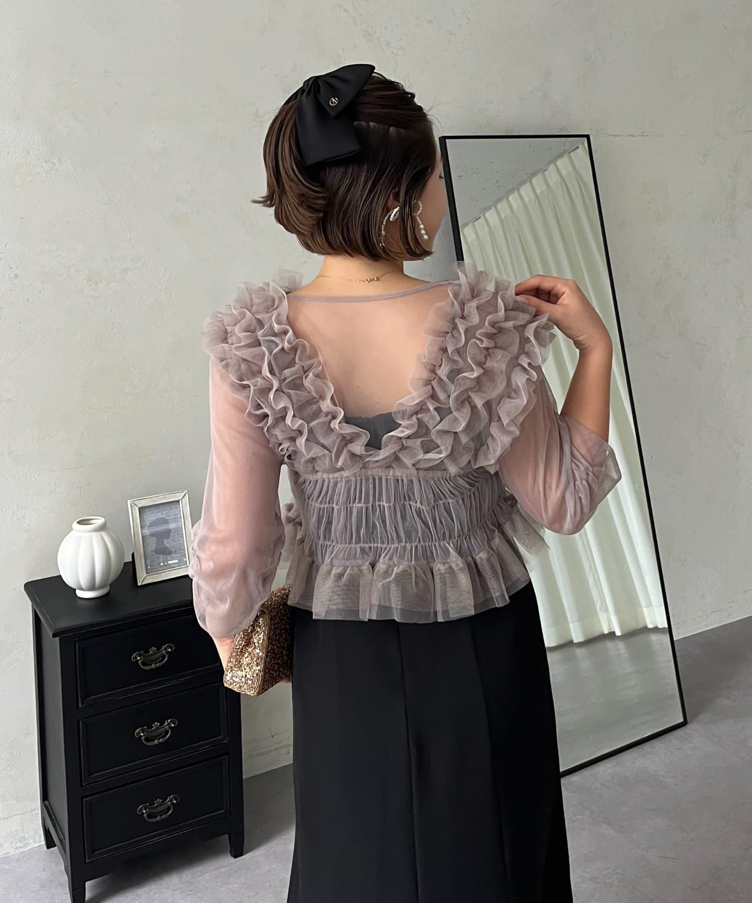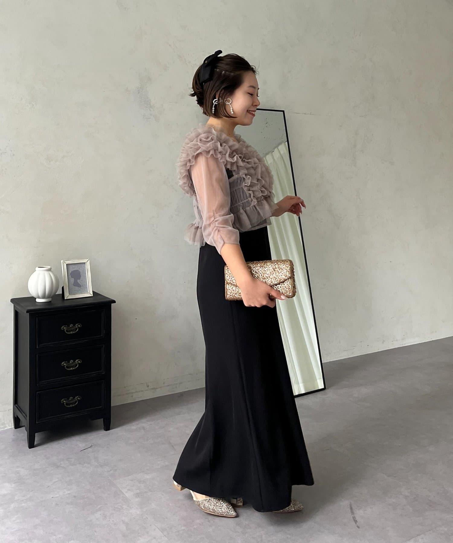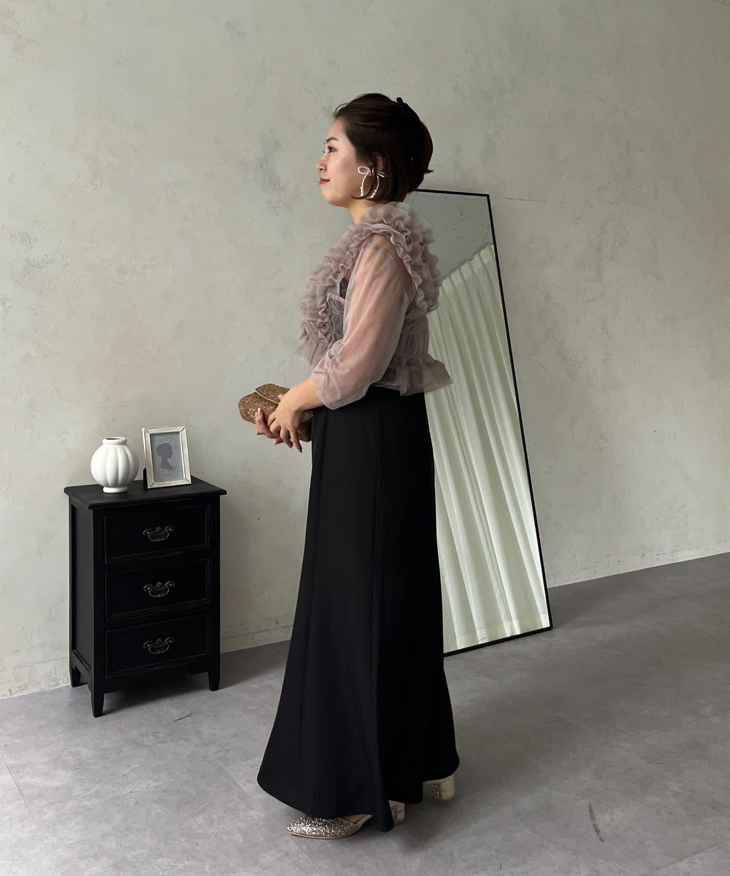 連衣裙/連衣裙/長裙/薄紗/薄紗上衣/鑰匙領/