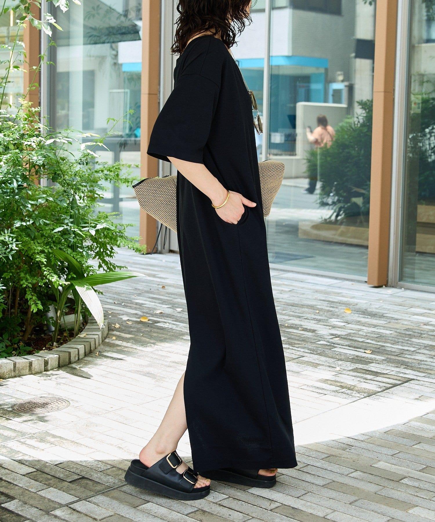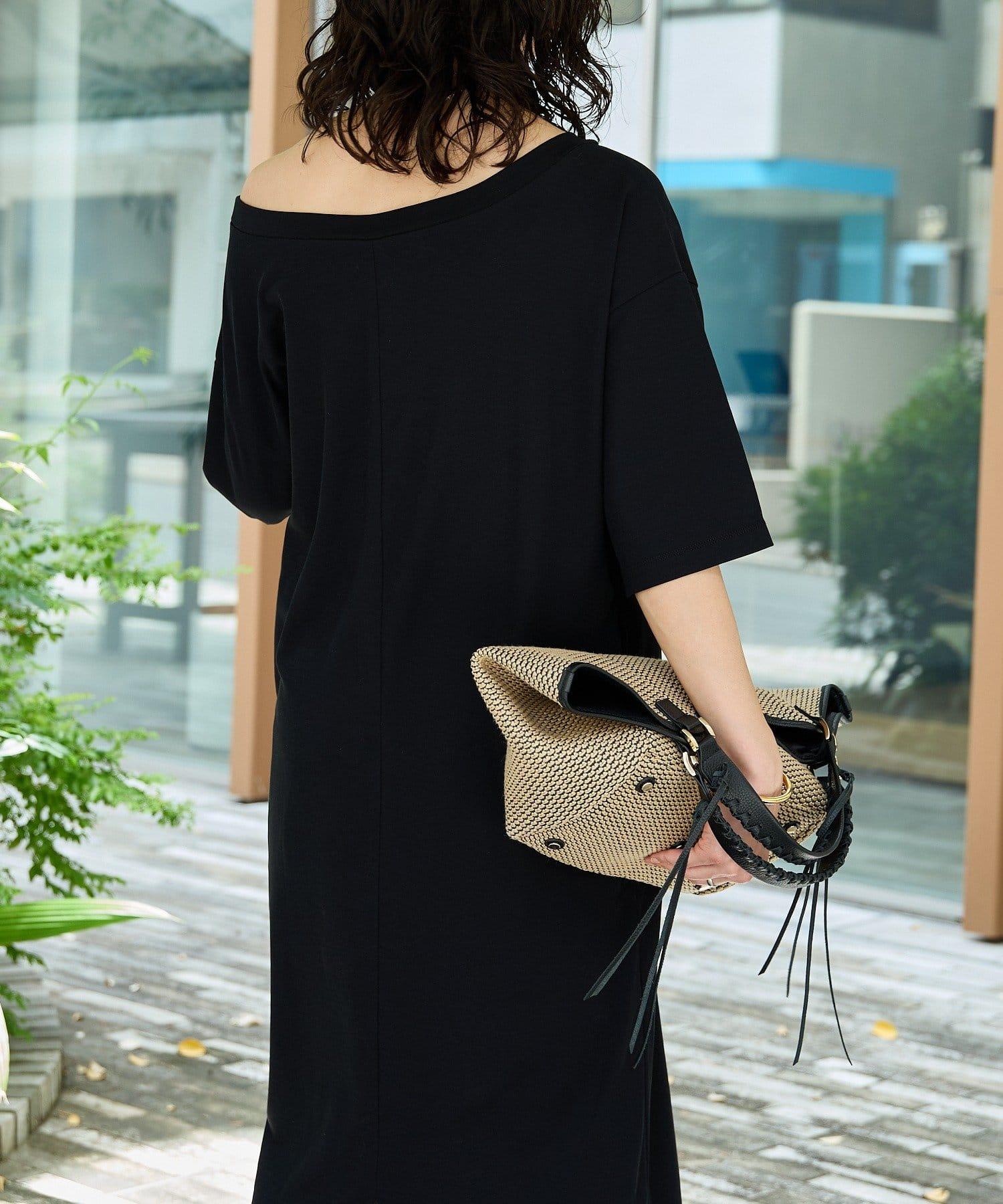 領口大而開闊,建議作為單肩連衣裙穿著。