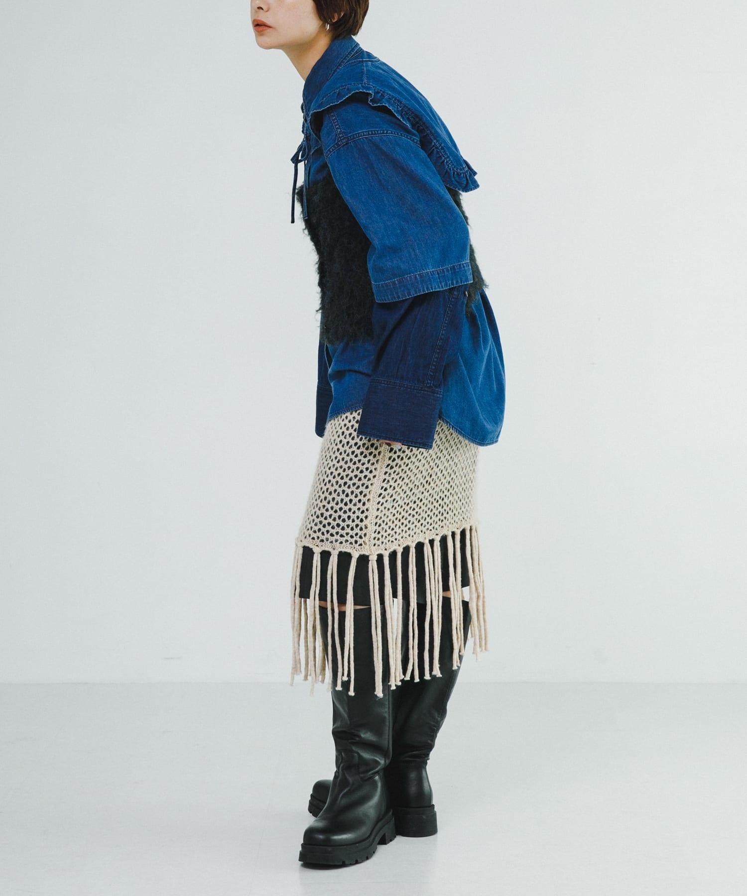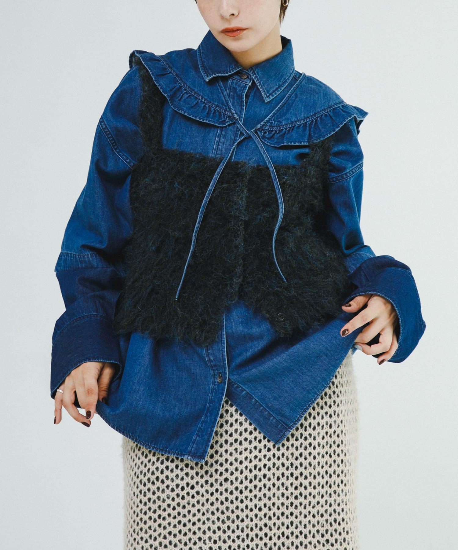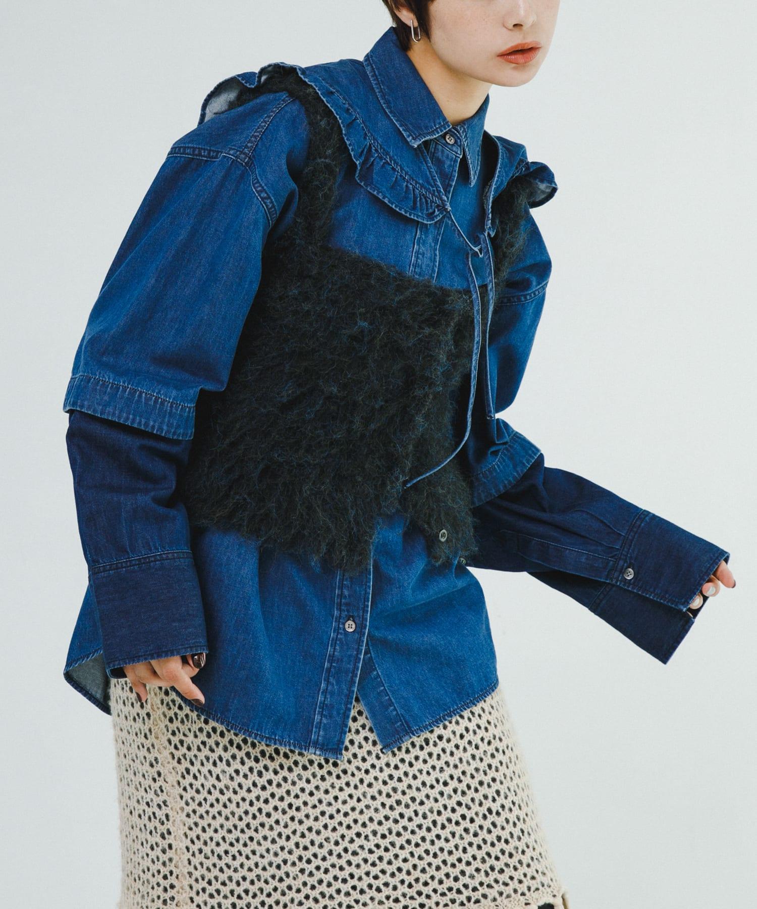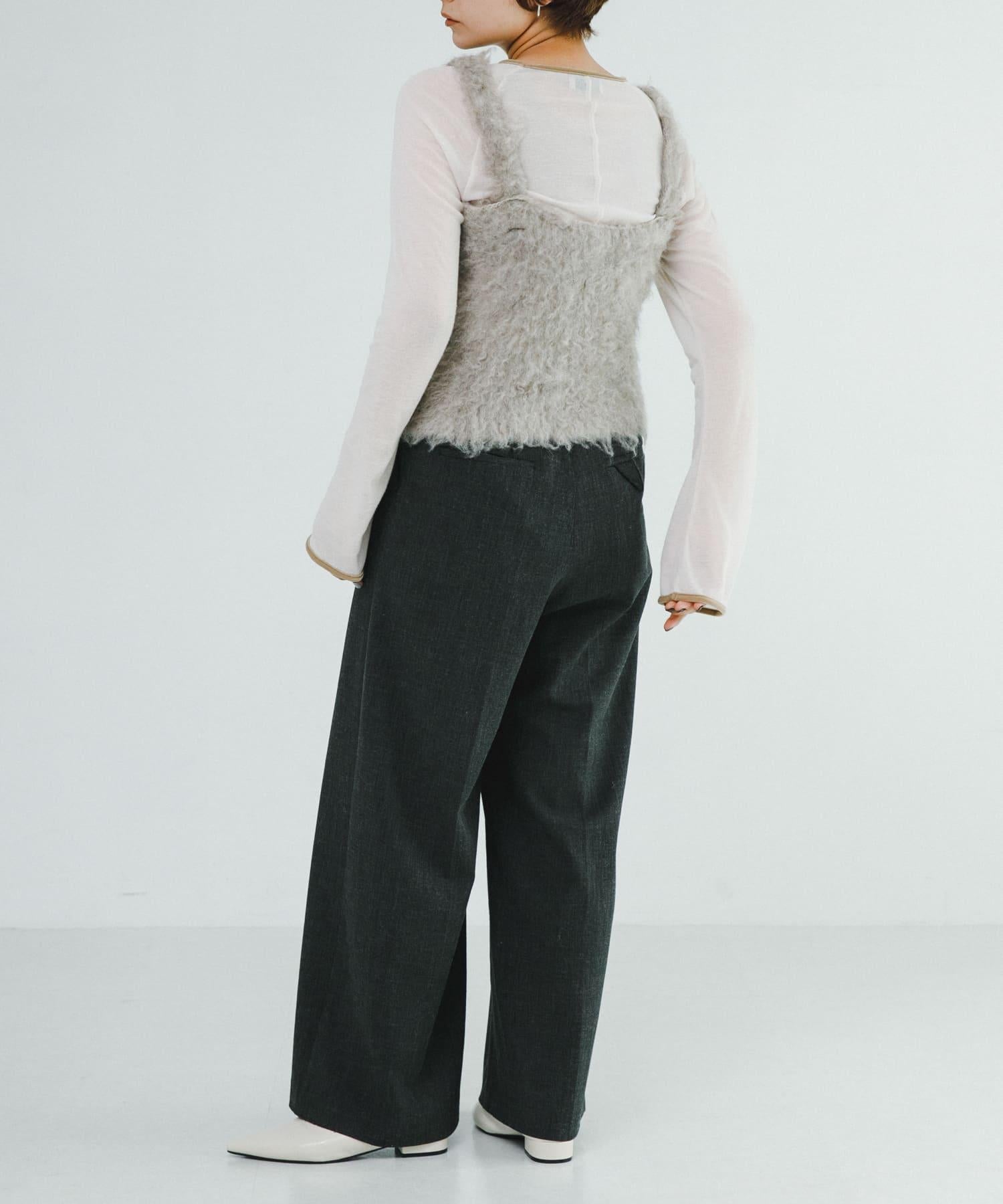 針織吊帶衫👍適合節日季節穿著。除了沒有令人不快的刺痛感和無壓力感外,由於使用了具有特殊拉毛效果的長毛紗線,它還具有柔軟蓬鬆的觸感。這款連衣裙雖然小巧,但氣場十足,只需疊加在剪裁縫製、襯衫和連衣裙等現有單品上即可。前後雙向設計讓您可以在不同的環境中盡情穿著。還有與開衫型 mosamosa 短開衫 [WB47-22N502] 材質相同的款式可供選擇。也推薦吊帶衫和開衫的分層搭配。