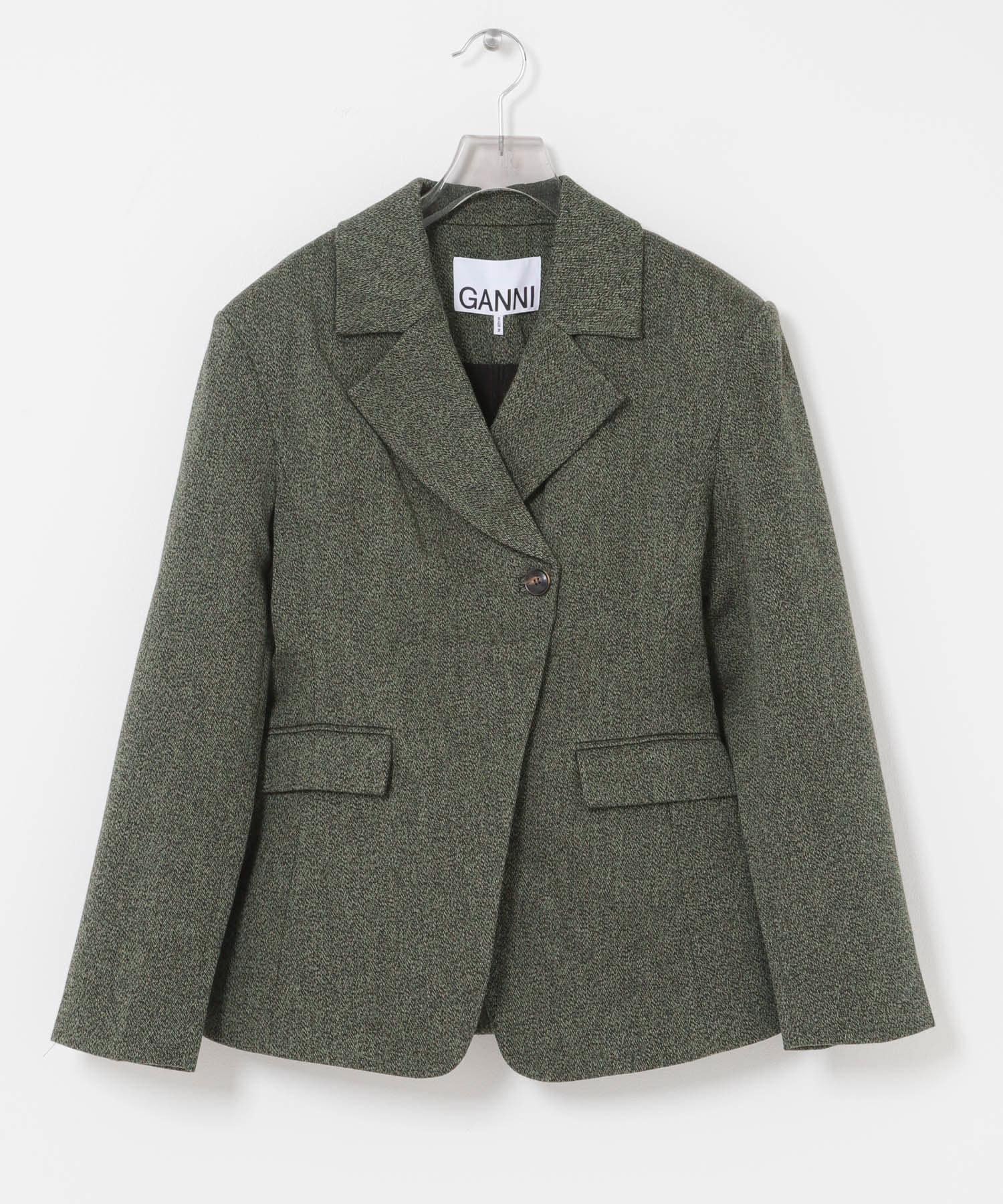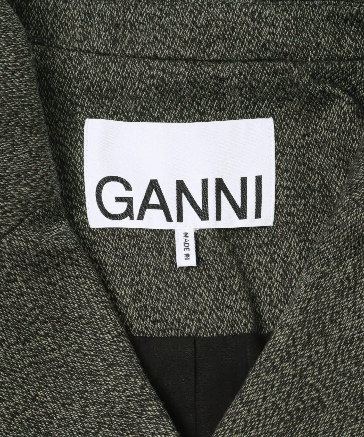在傳統剪裁夾克款式的基礎上,前面的紐扣略微不對稱,增添了 GANNI 的獨特風格。
