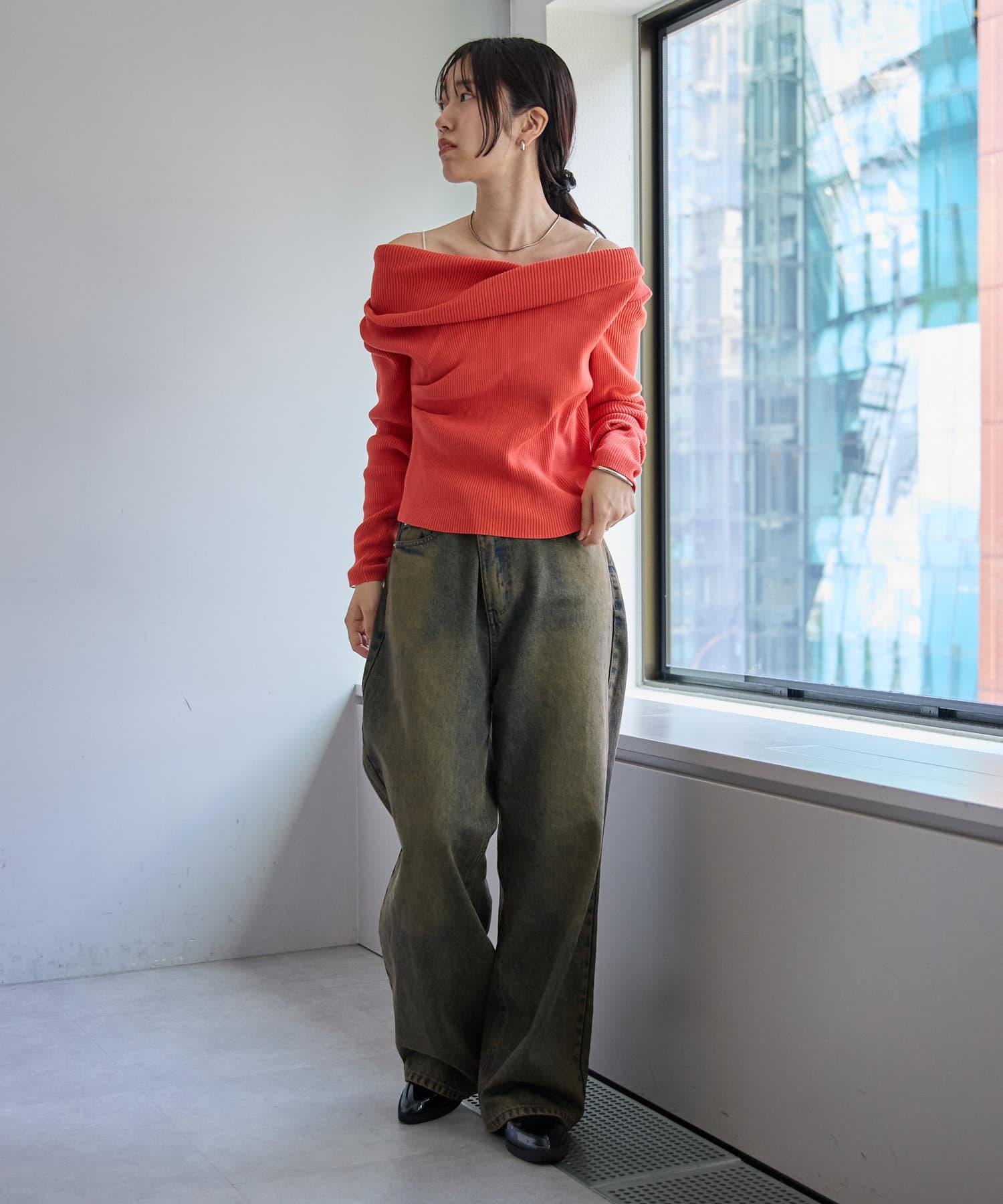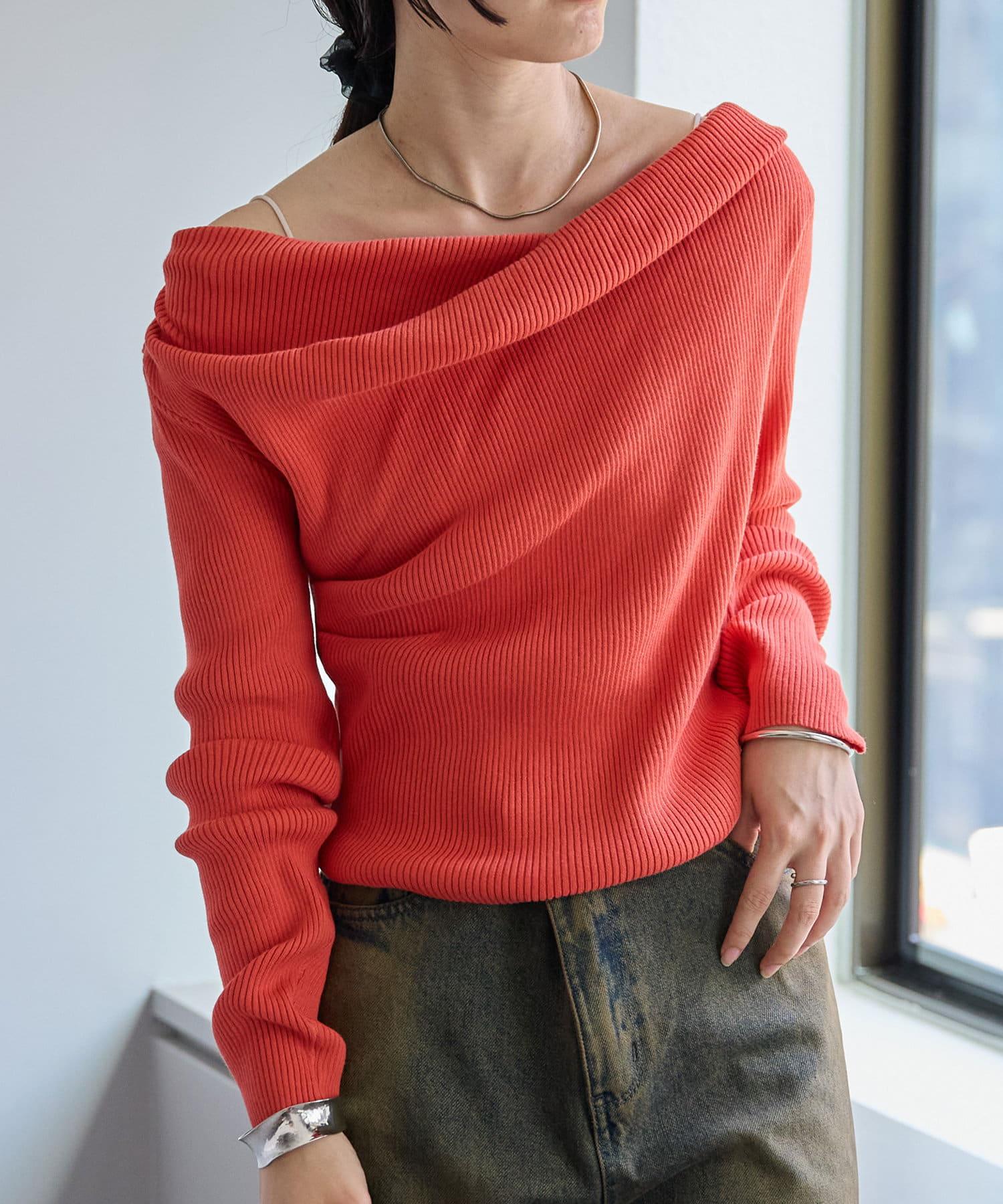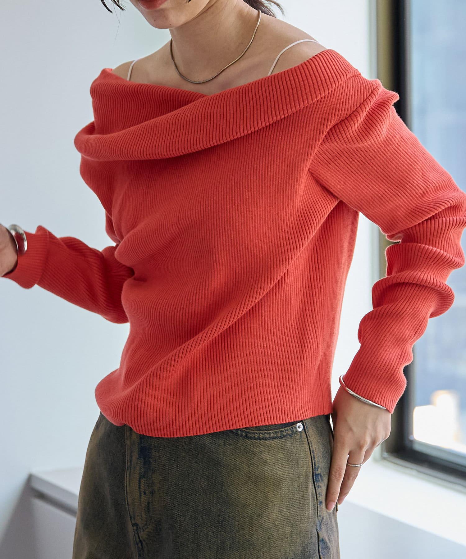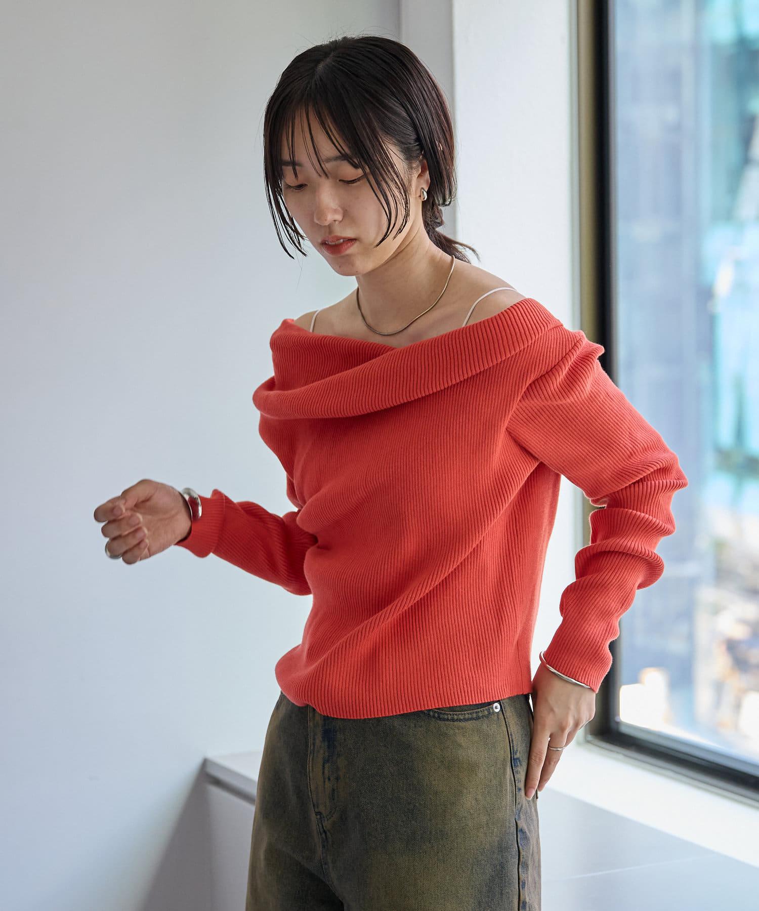 【mystic】一字肩羅紋針織衫