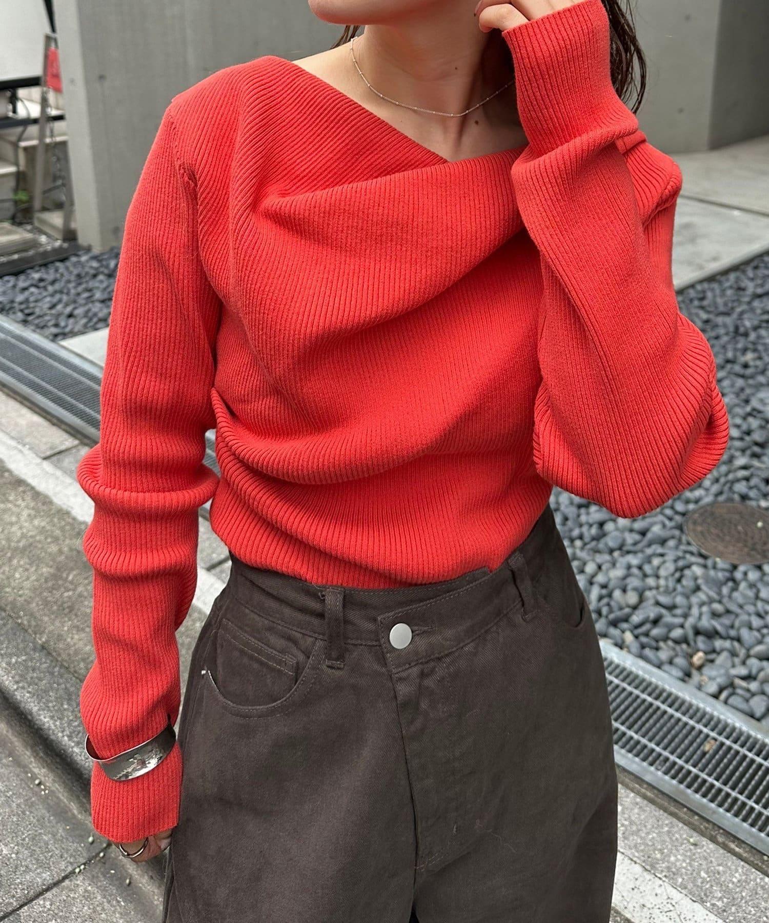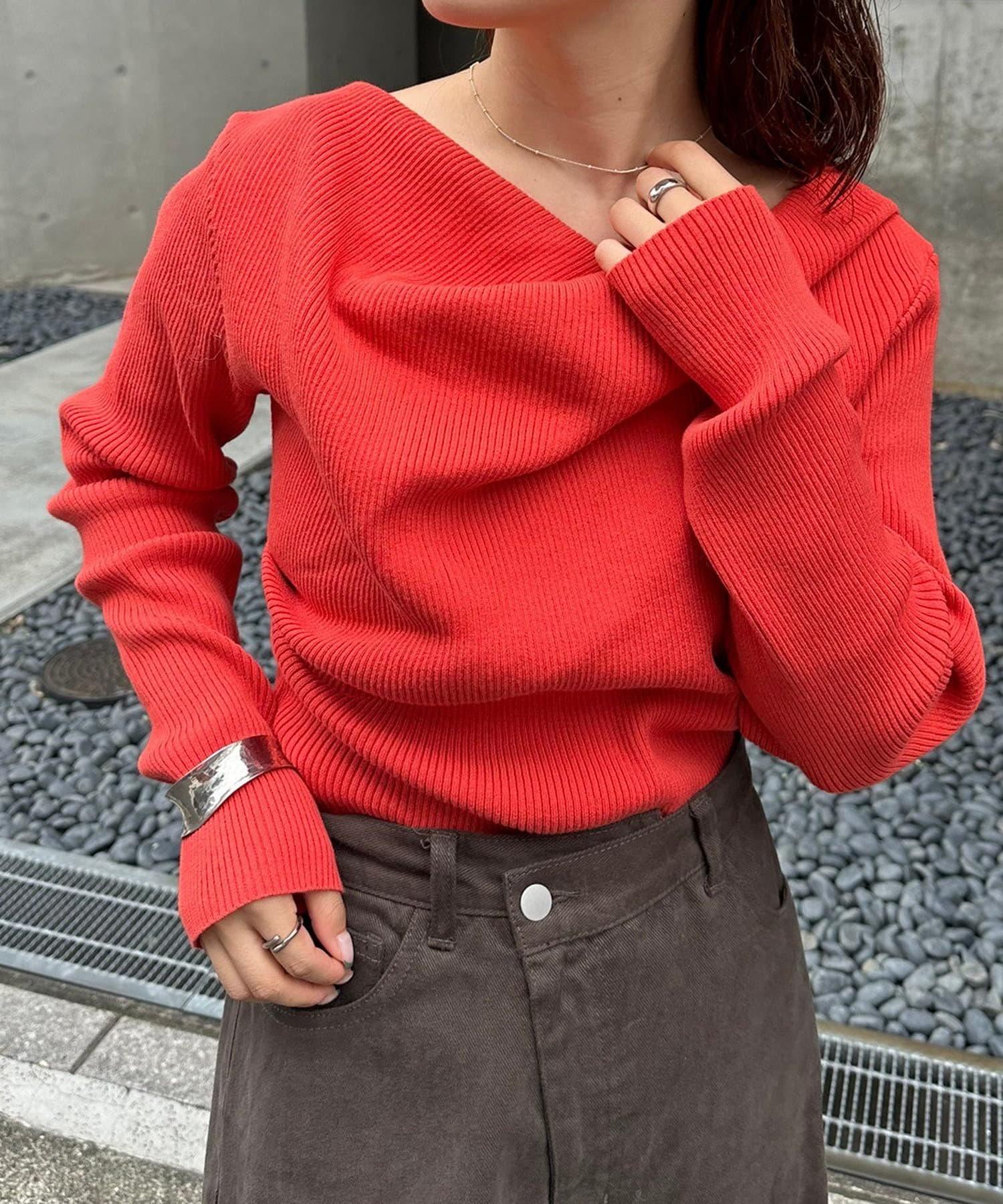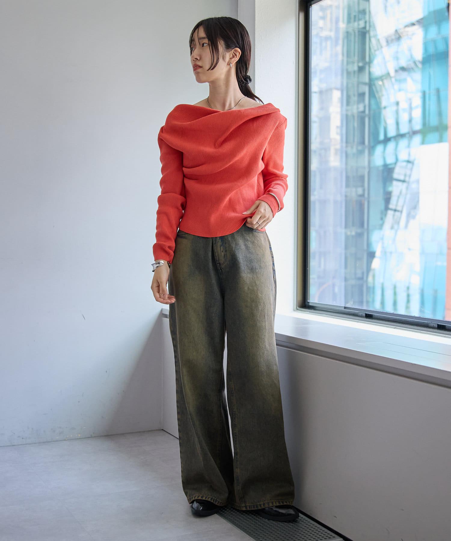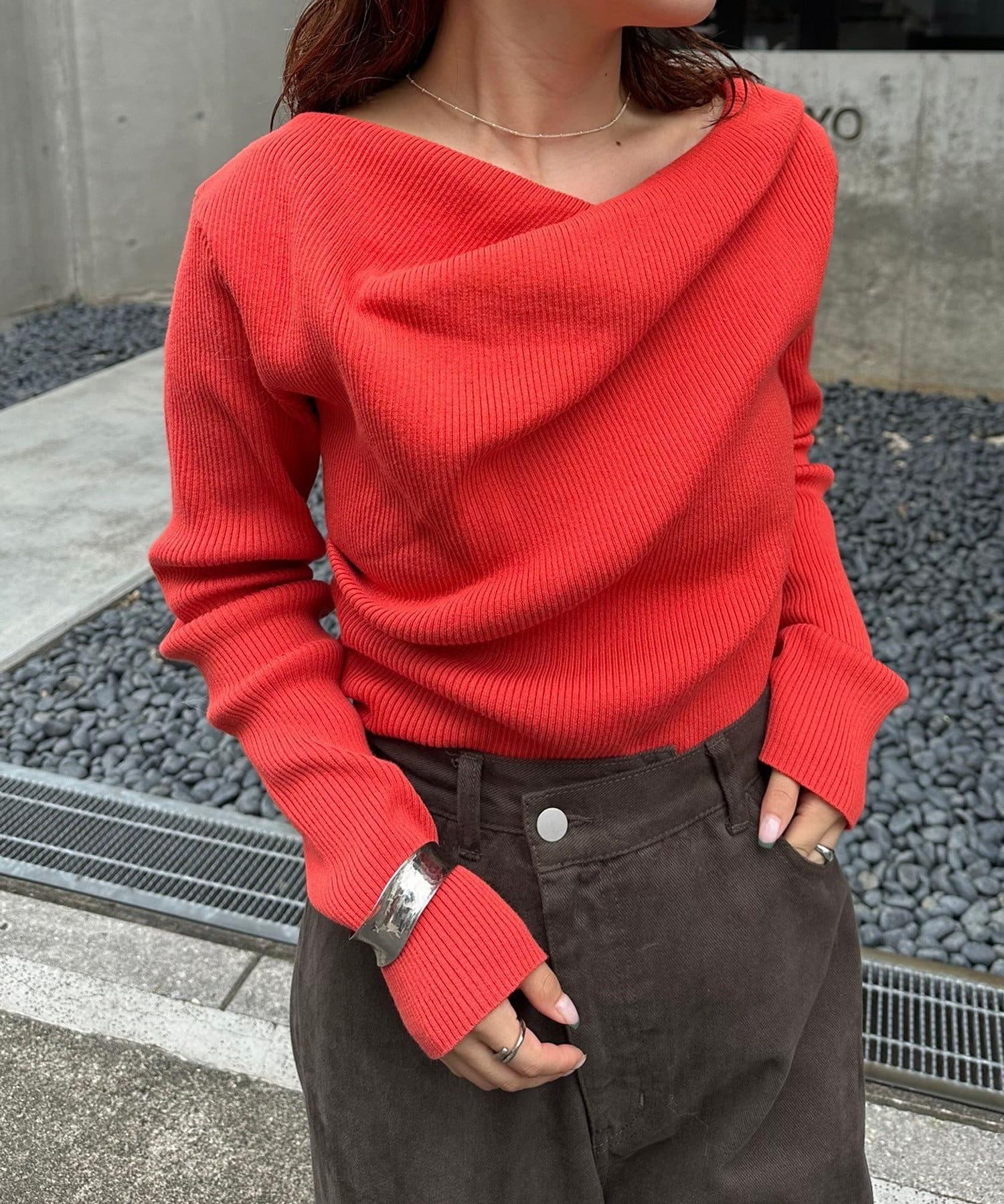 【mystic】一字肩羅紋針織衫