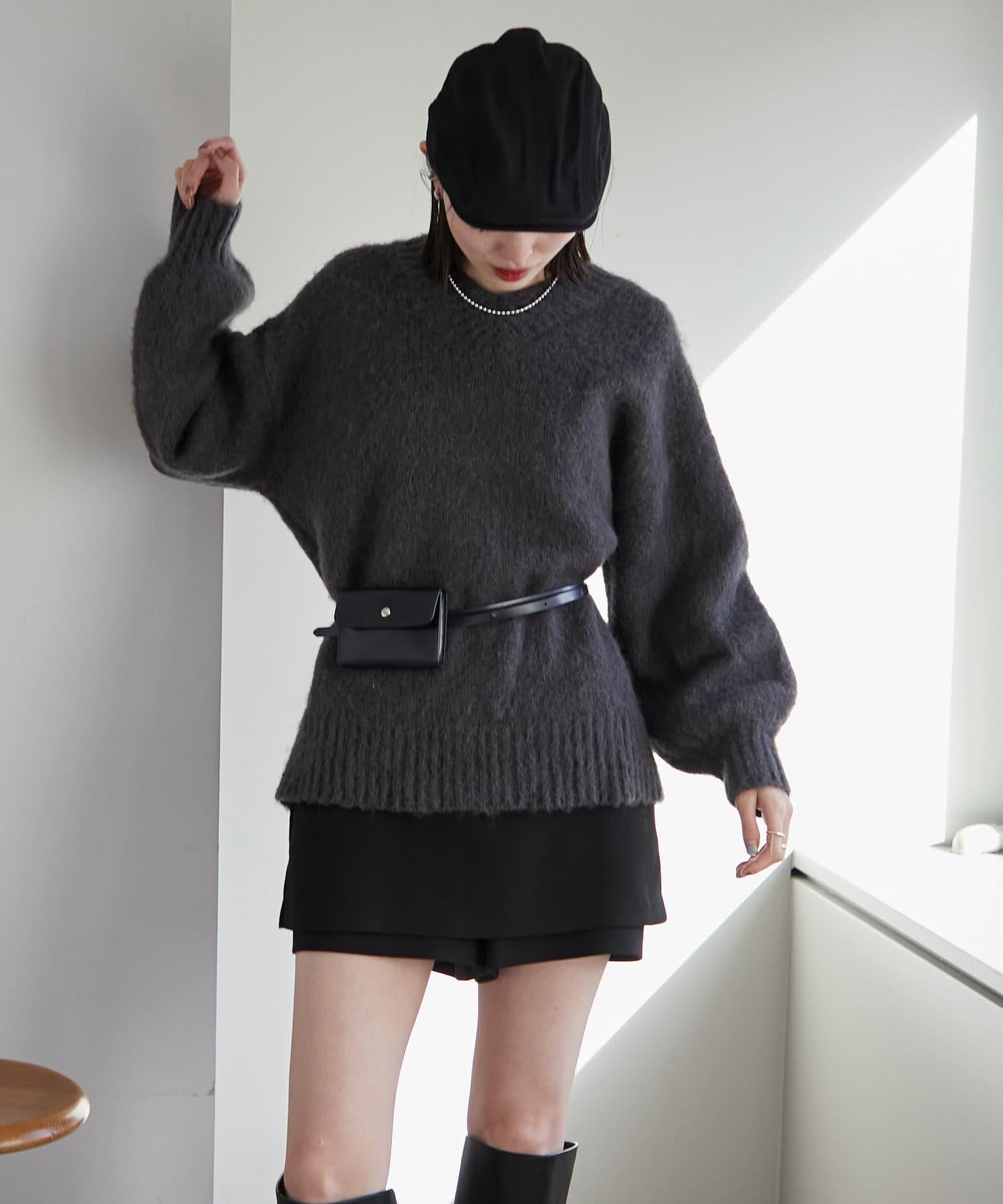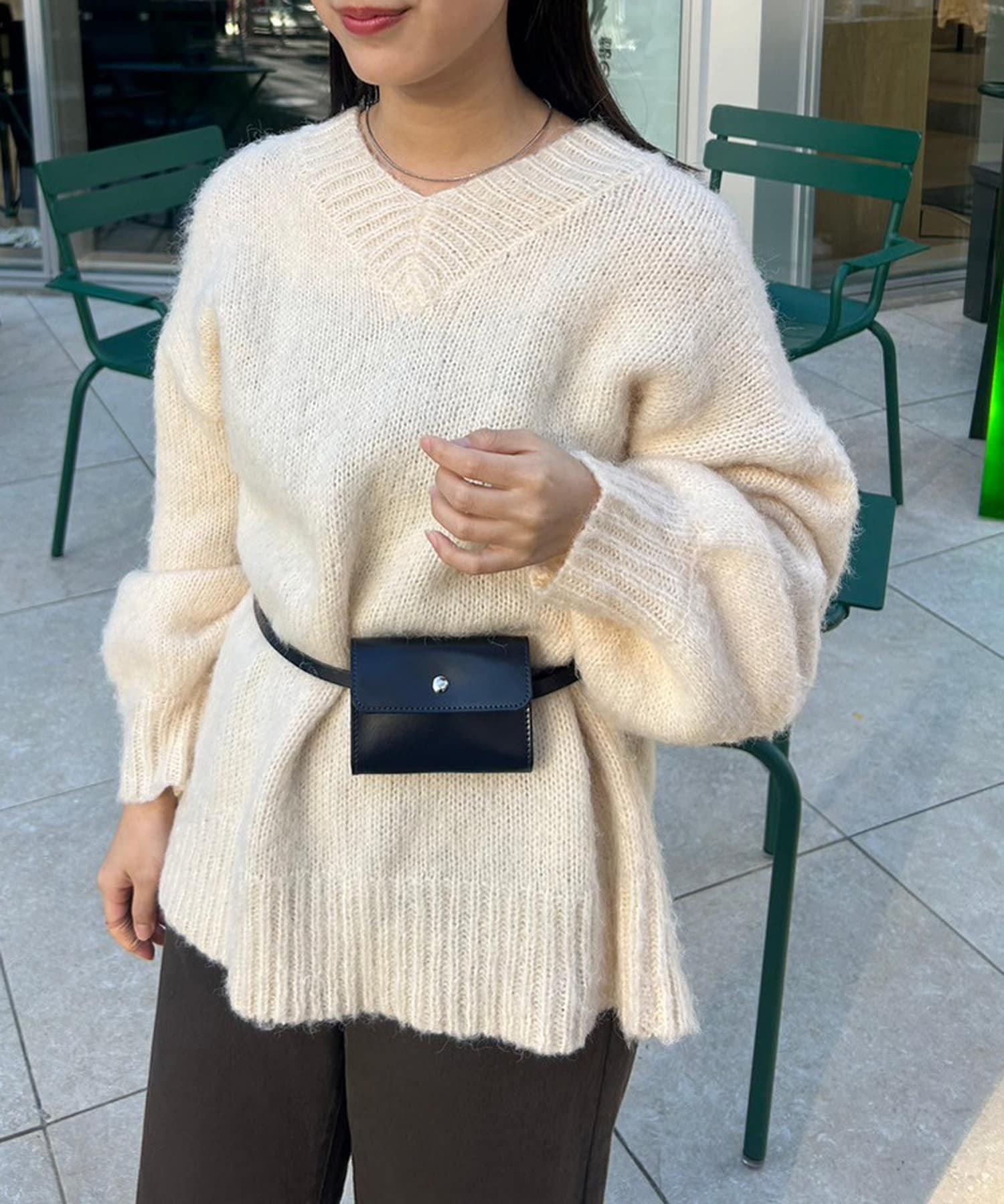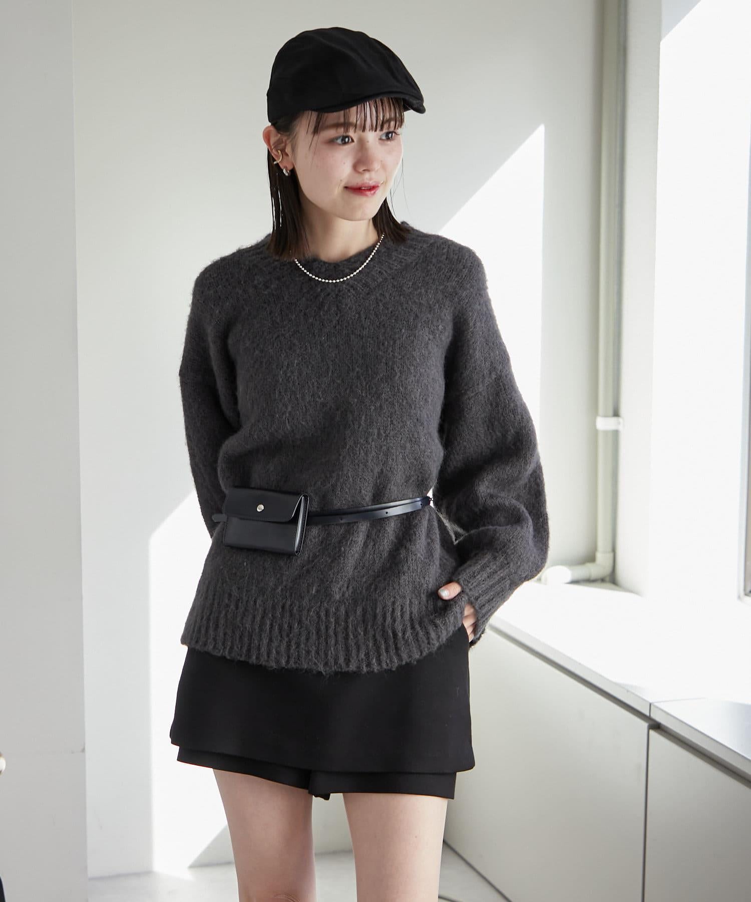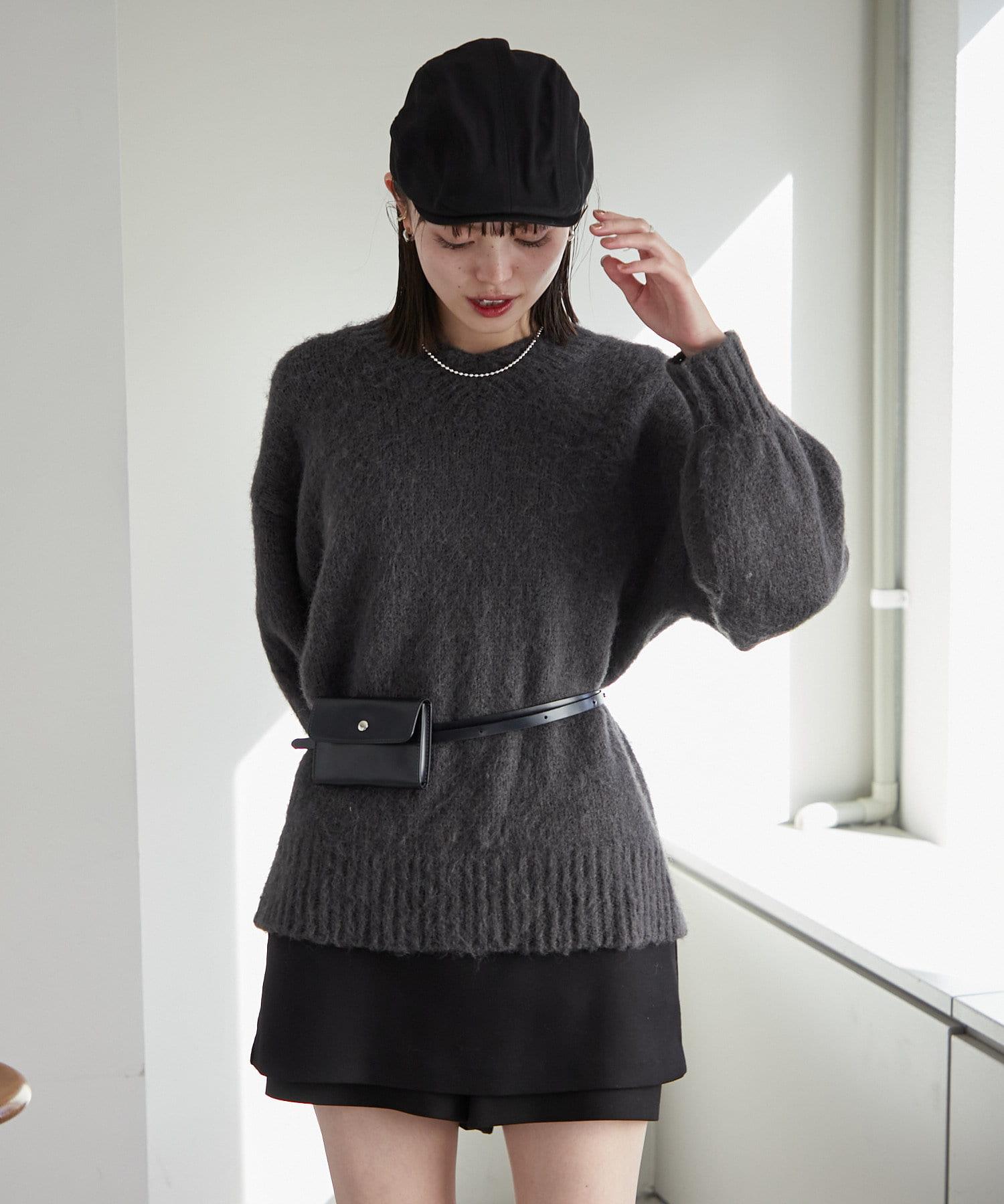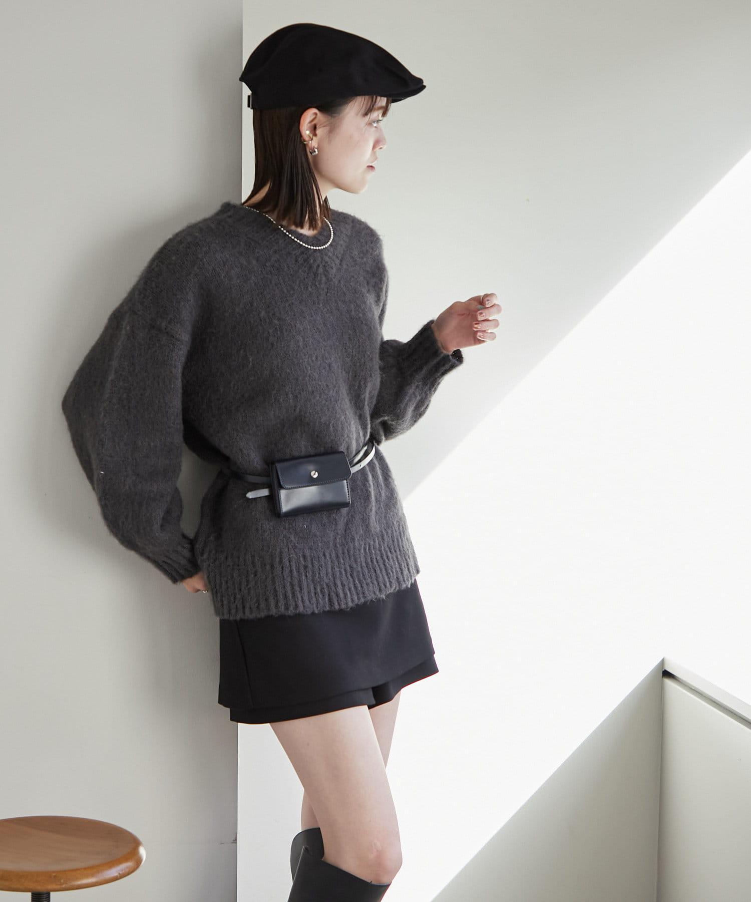 【mystic】仿馬海毛配腰帶小包針織衫