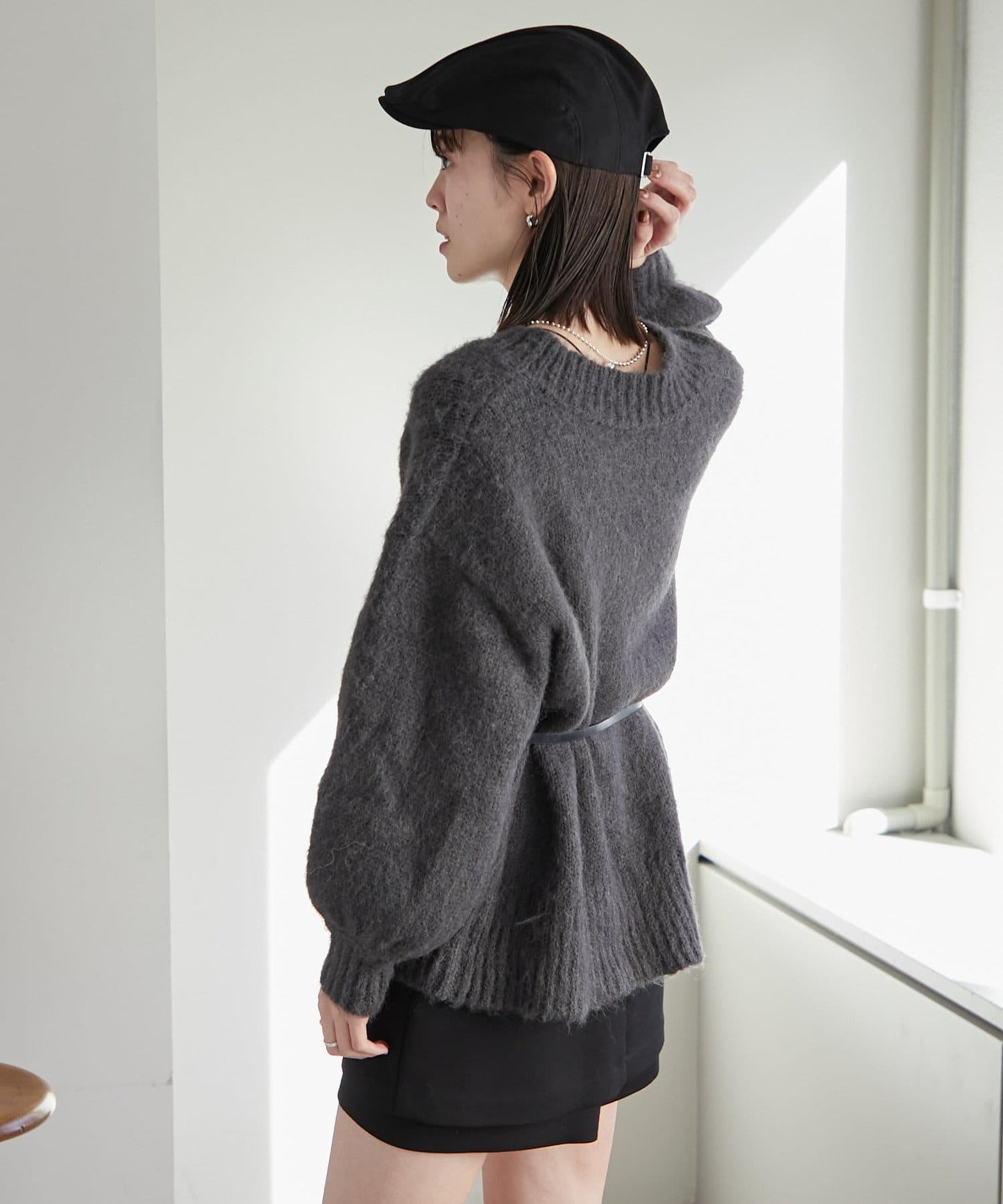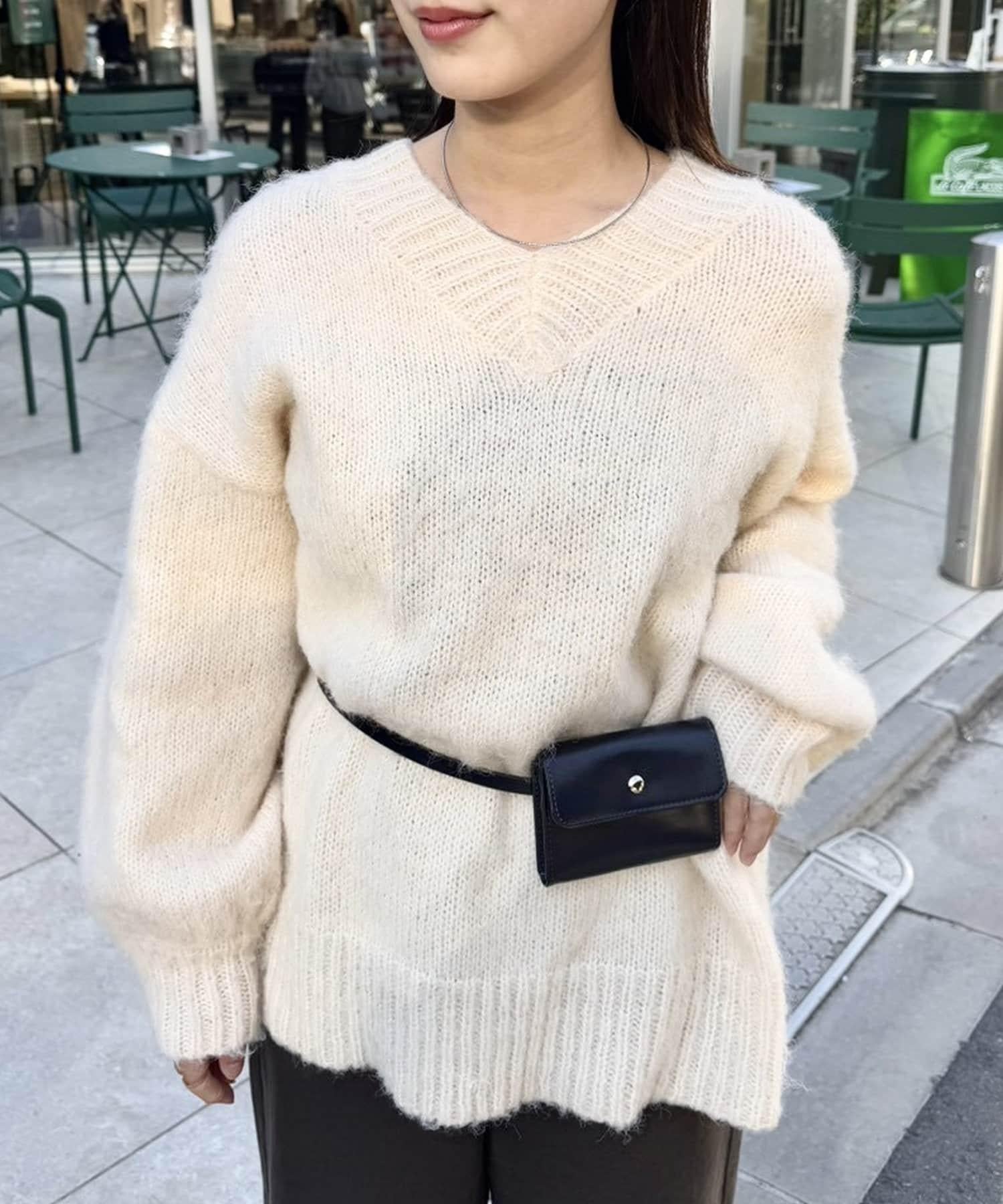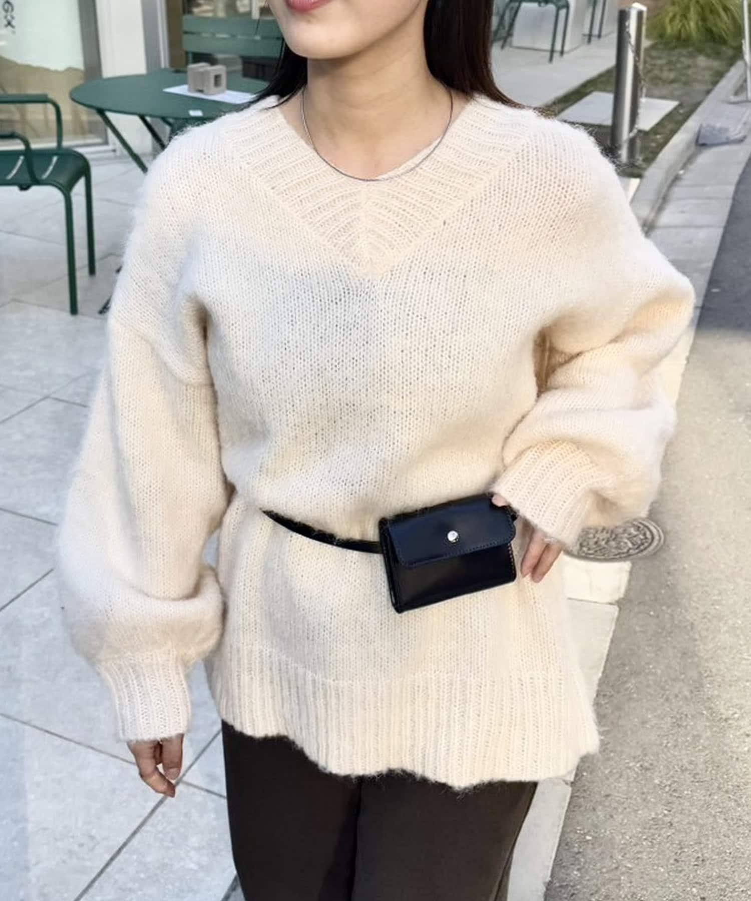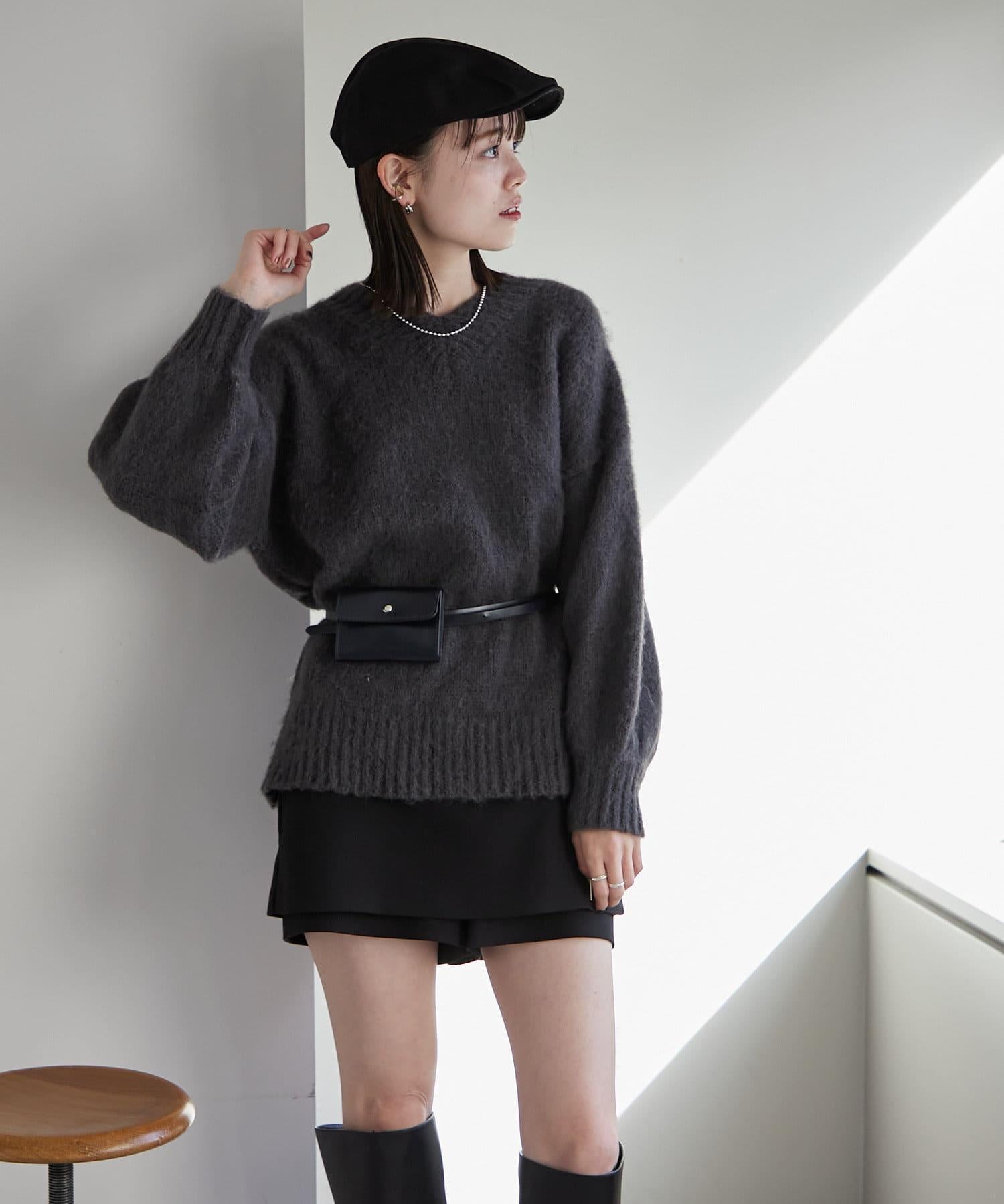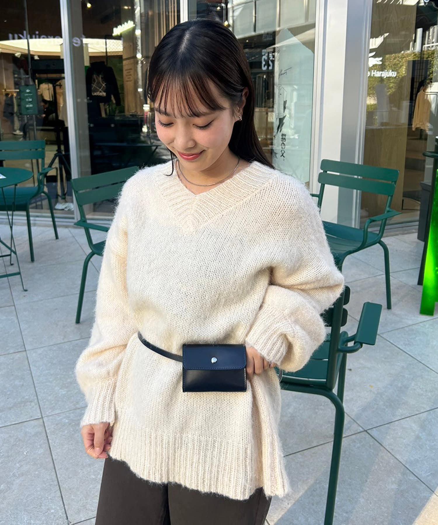 【mystic】仿馬海毛配腰帶小包針織衫