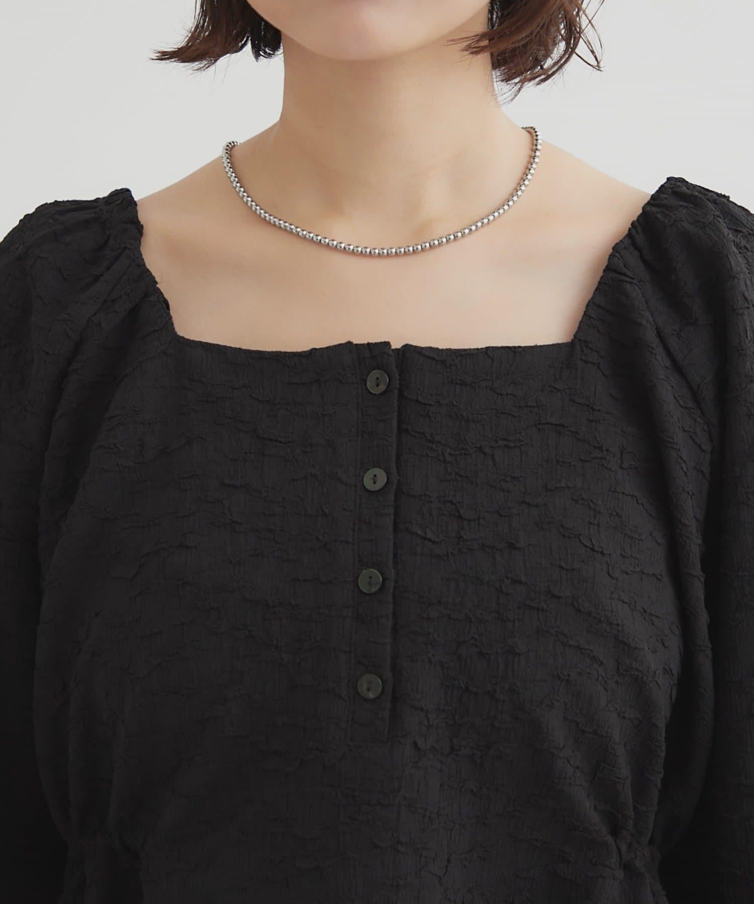 頸部的方形領口勾勒出優美的肩部線條,給人以乾淨利落的印象。