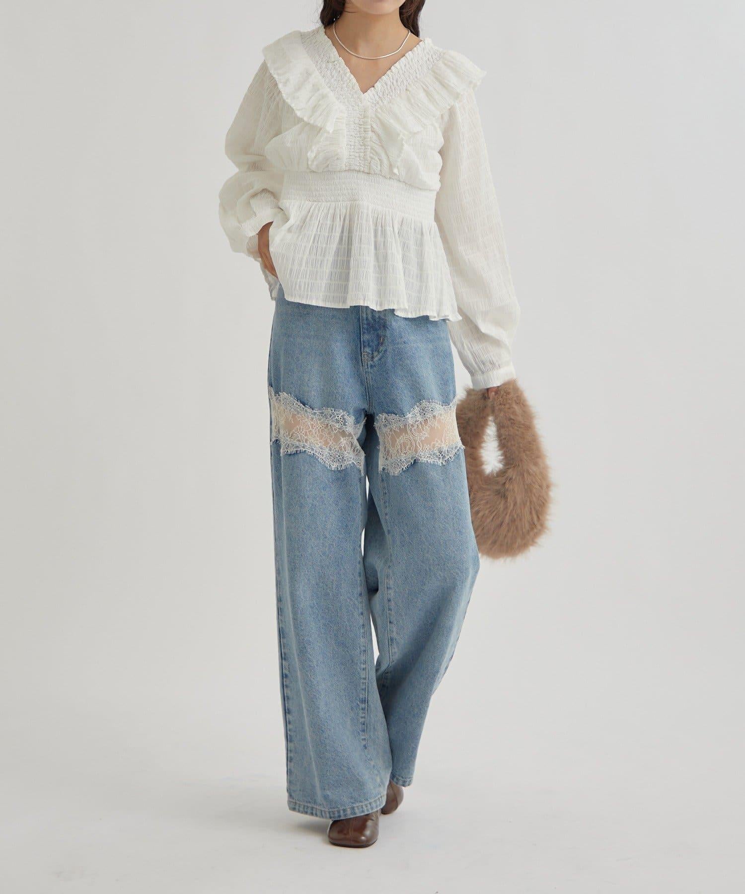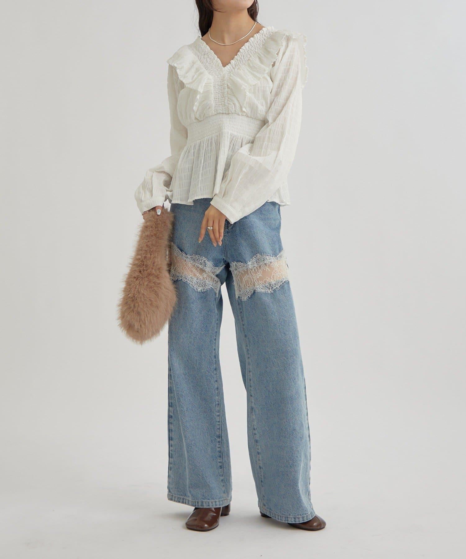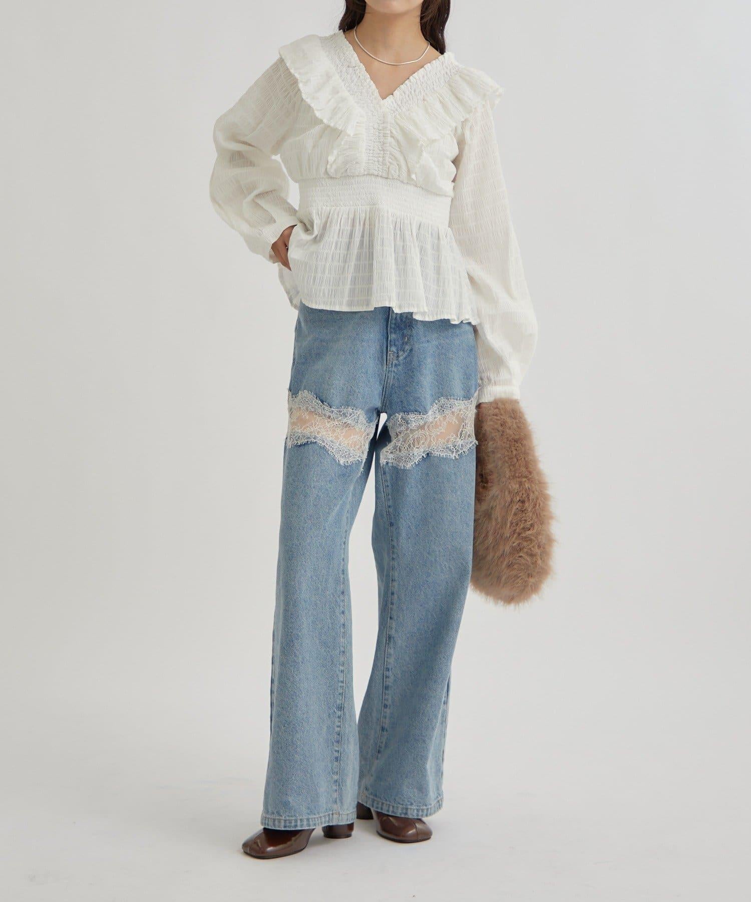 蕾絲鏤空牛仔褲 [9/19 新色 BLK 預購 START!