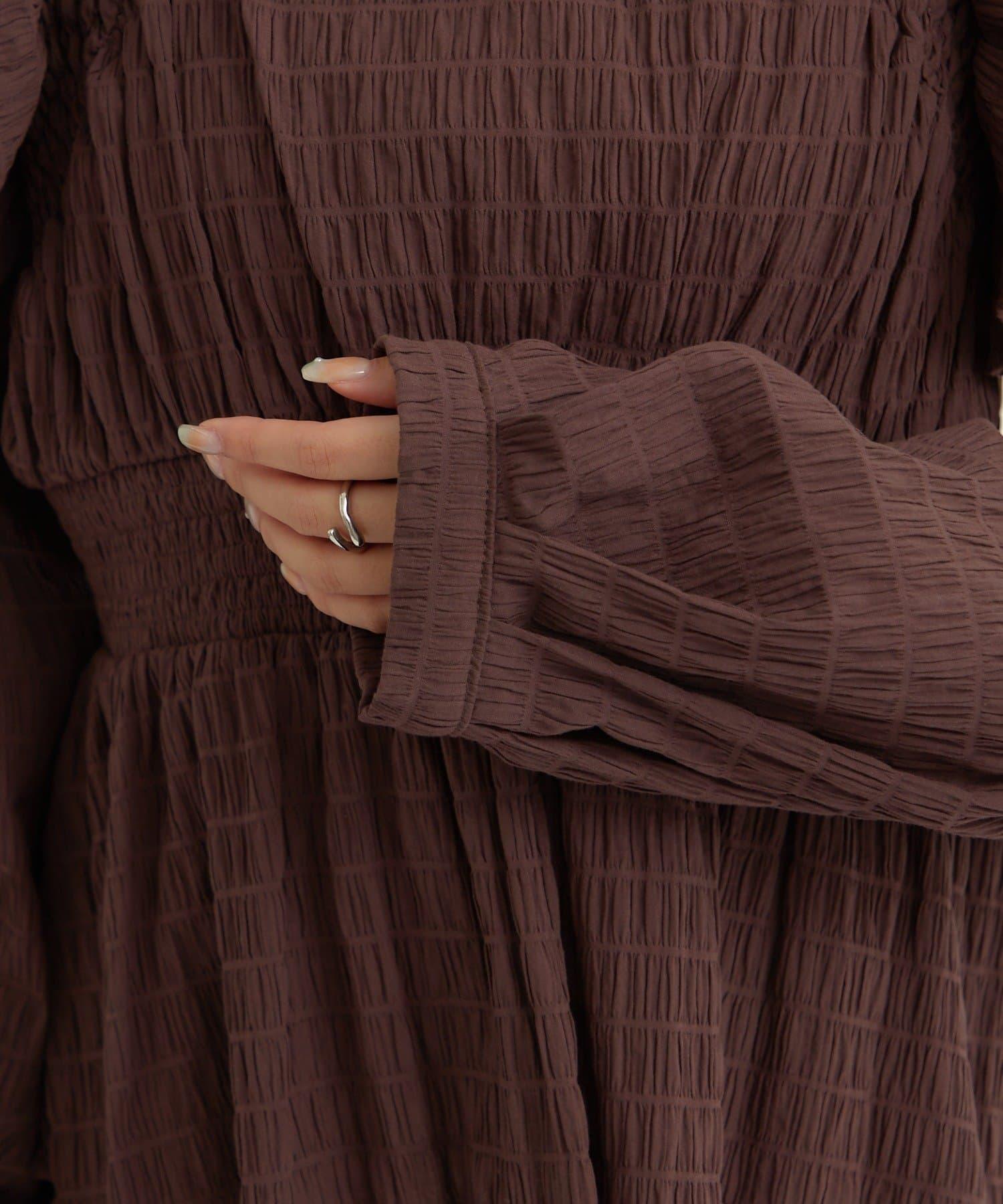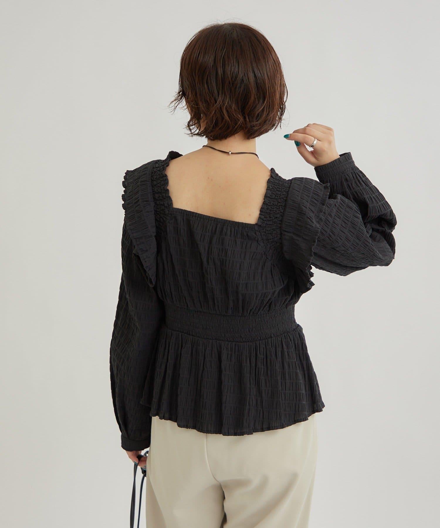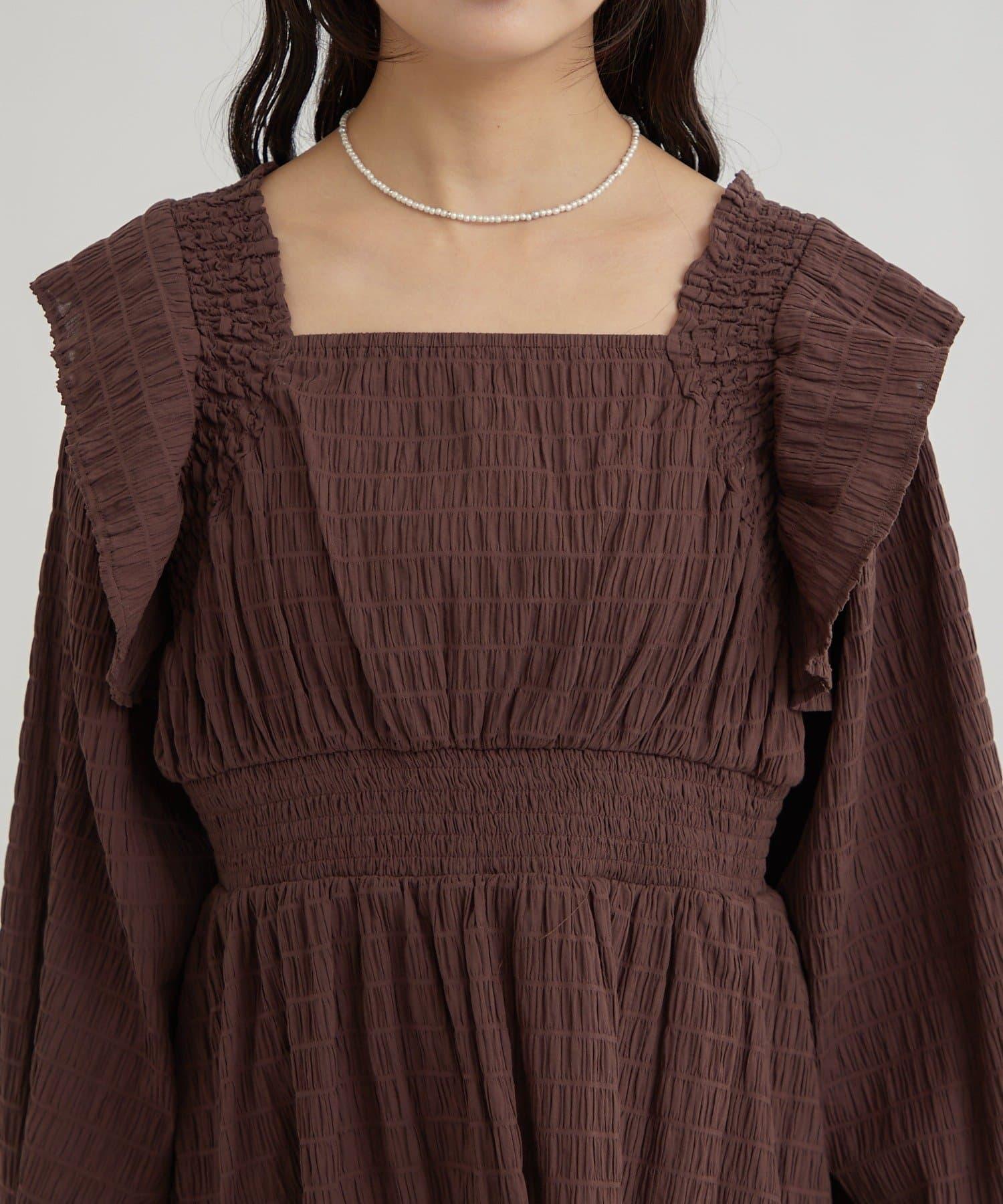 腰部的碎花較高,因此也有提升氣質的效果 ◎方形領口使頸部顯得圓潤迷人,給人以纖細的印象。