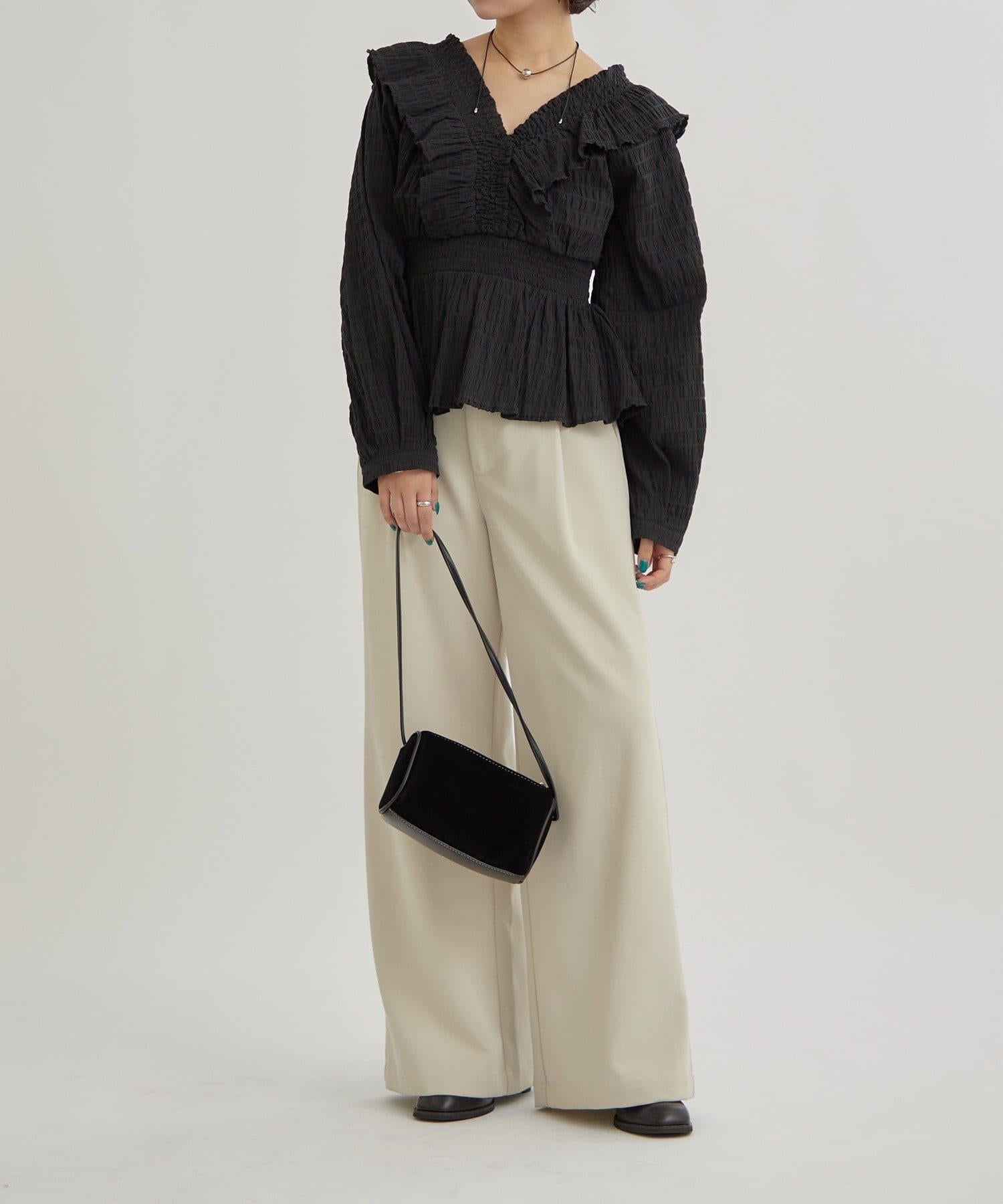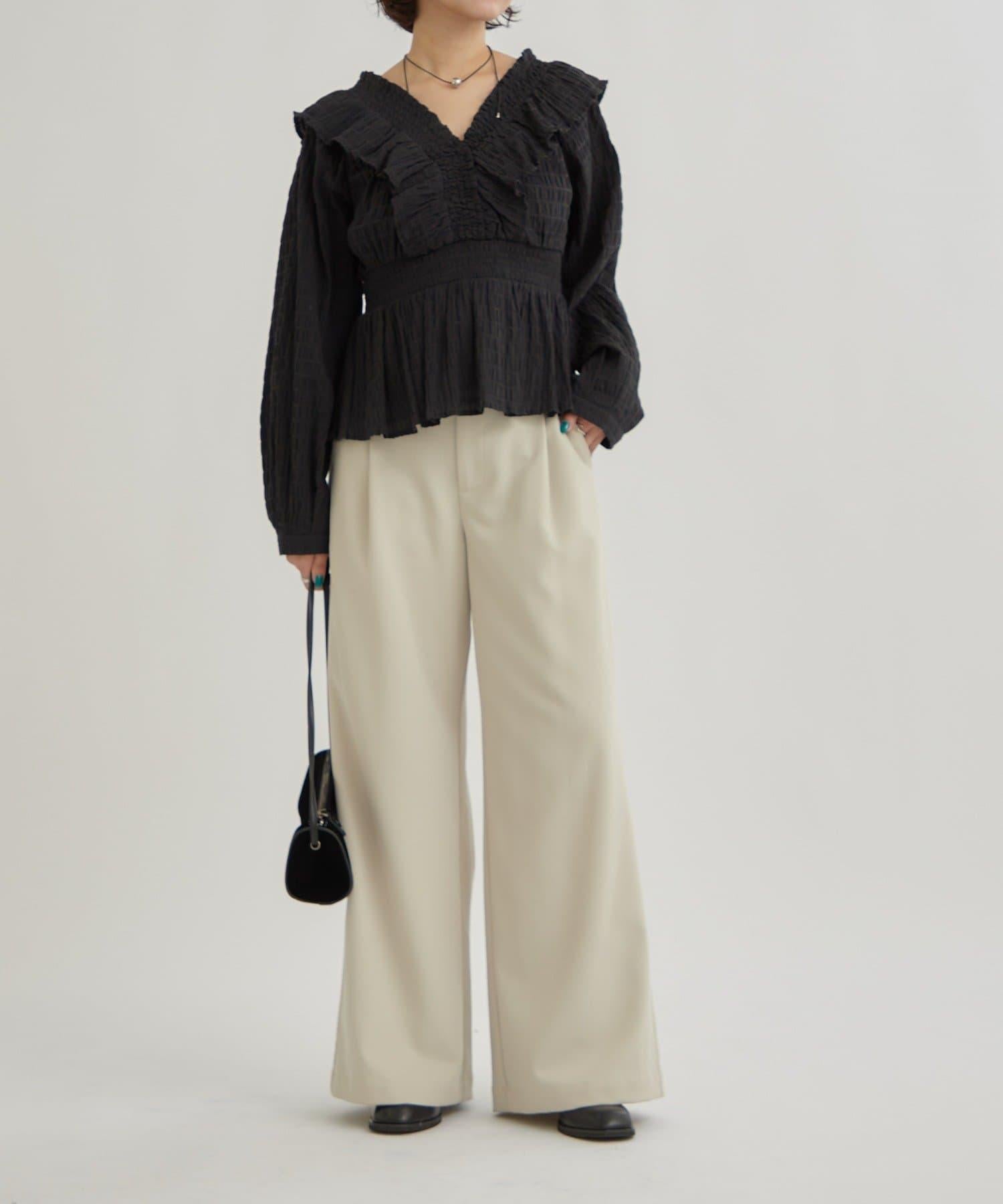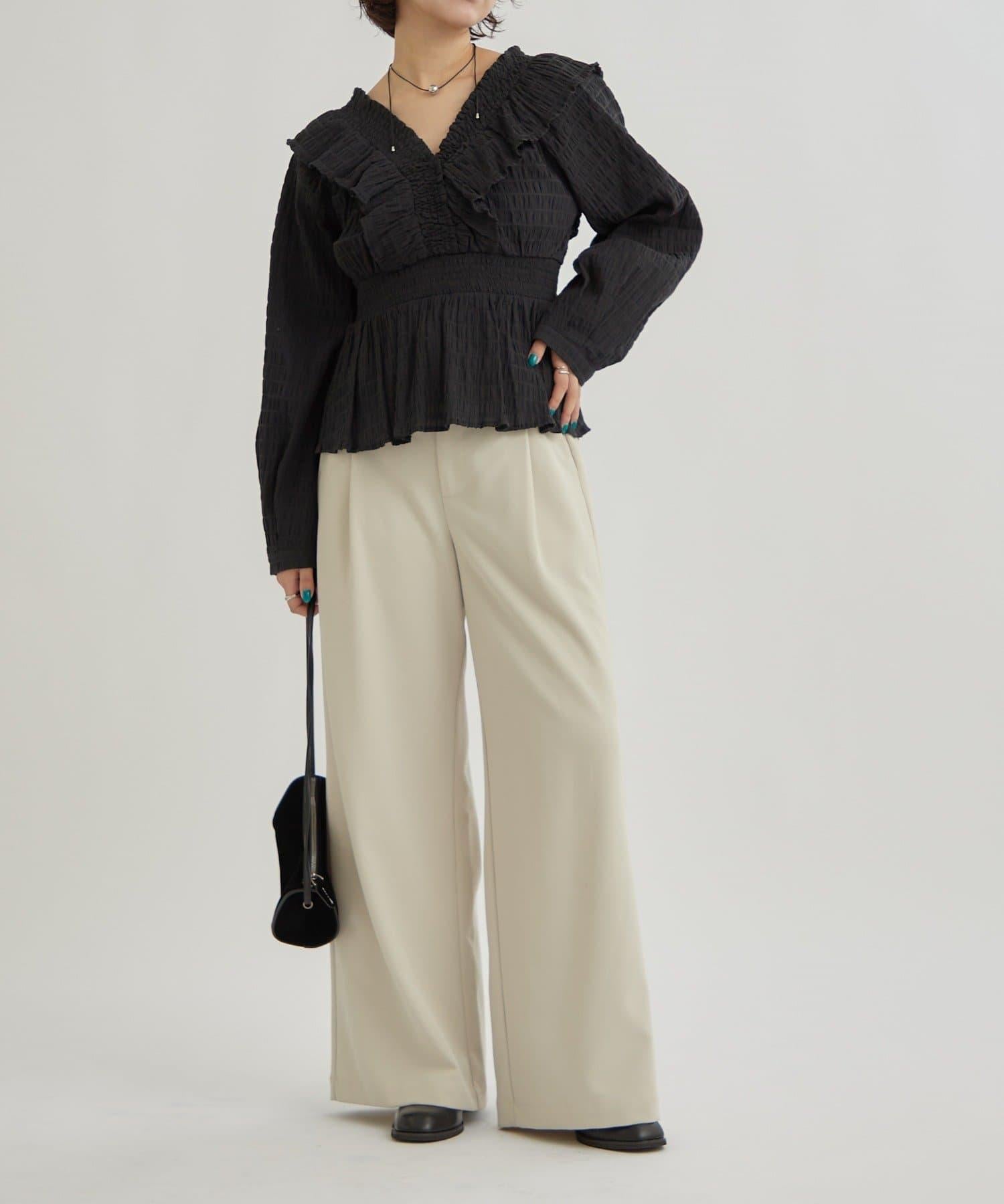波浪腰帶休閒褲 [廓形優美 / 防皺材質 ◎] 波浪腰帶休閒褲