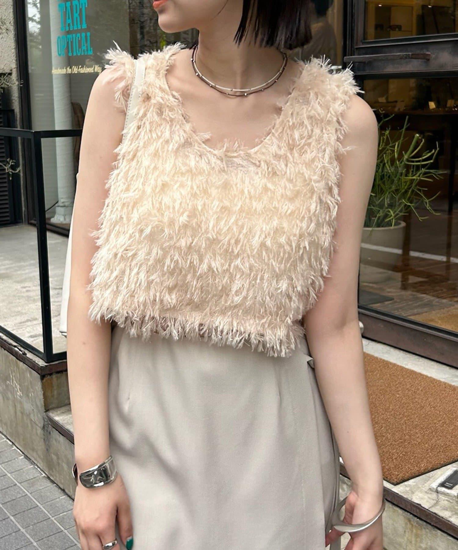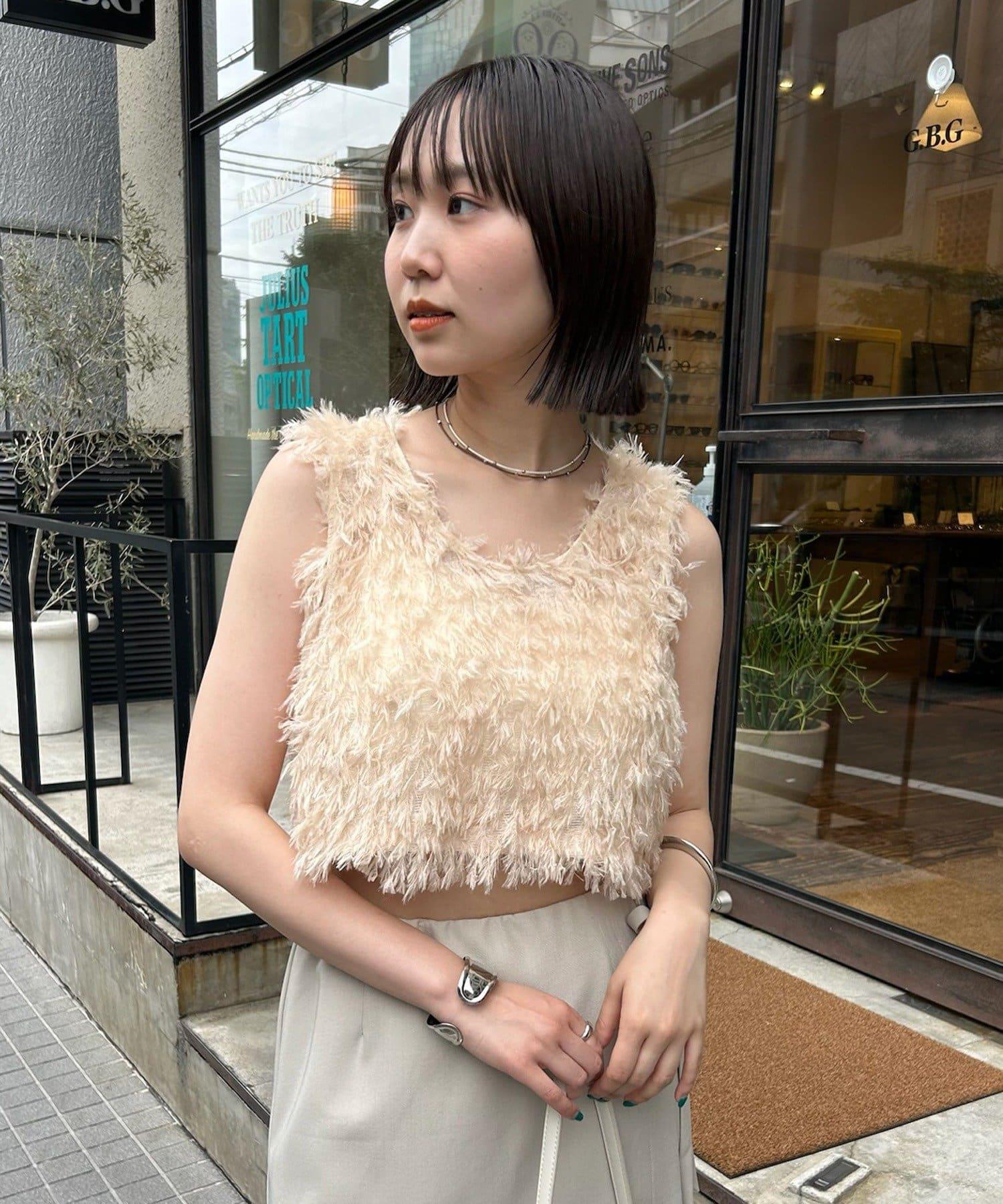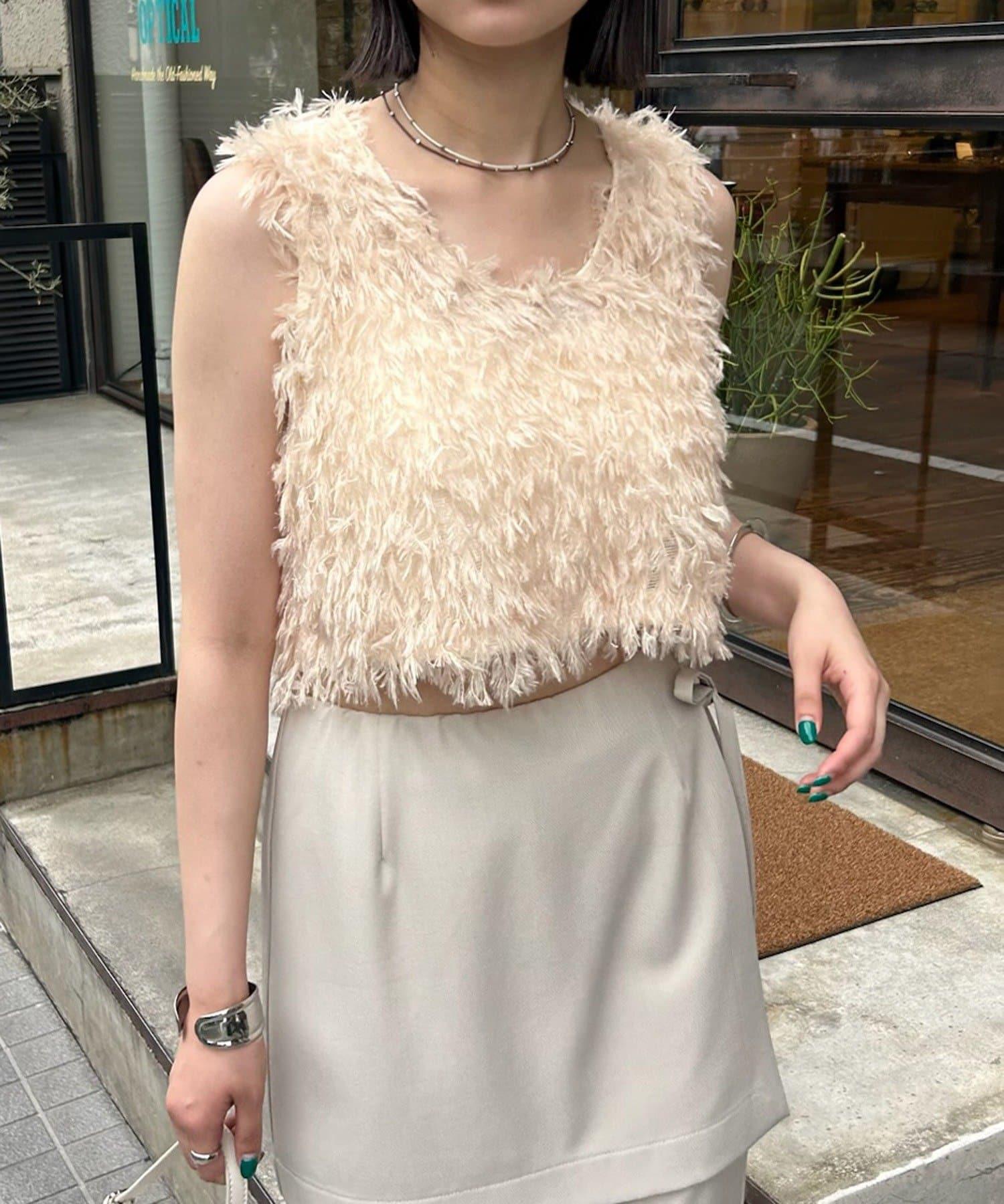 閃爍著微妙光澤的薄片和長毛絨面料,一定會讓你看起來更漂亮的糖馬甲。
