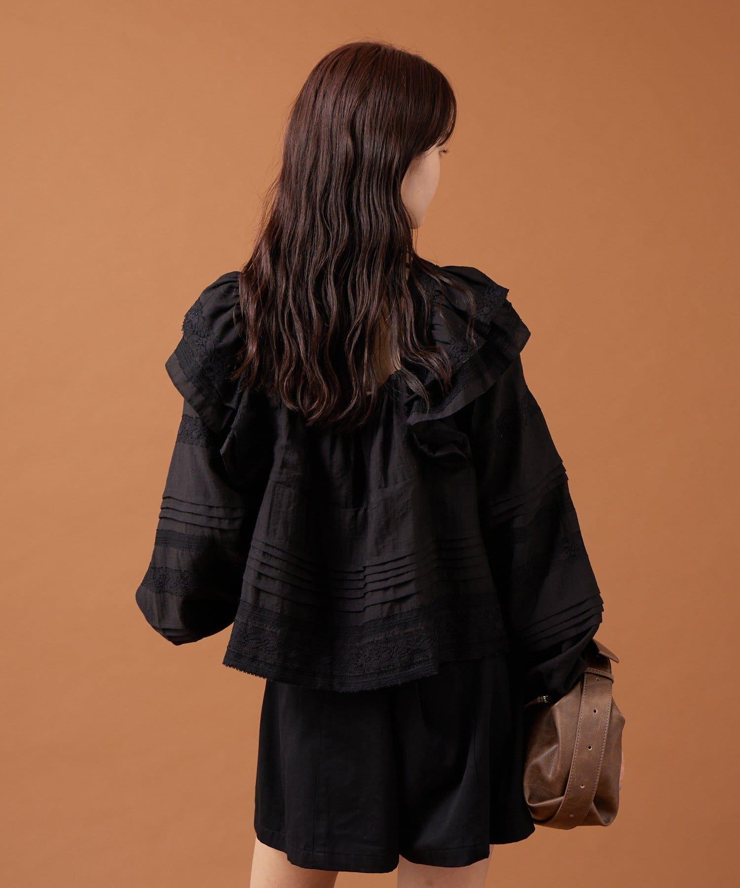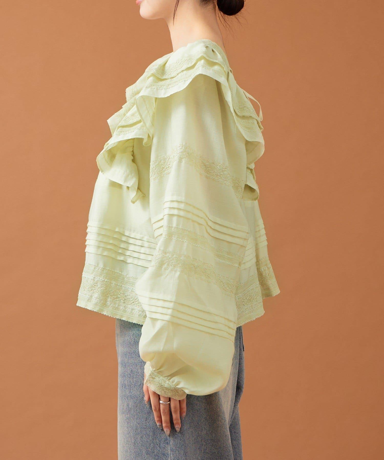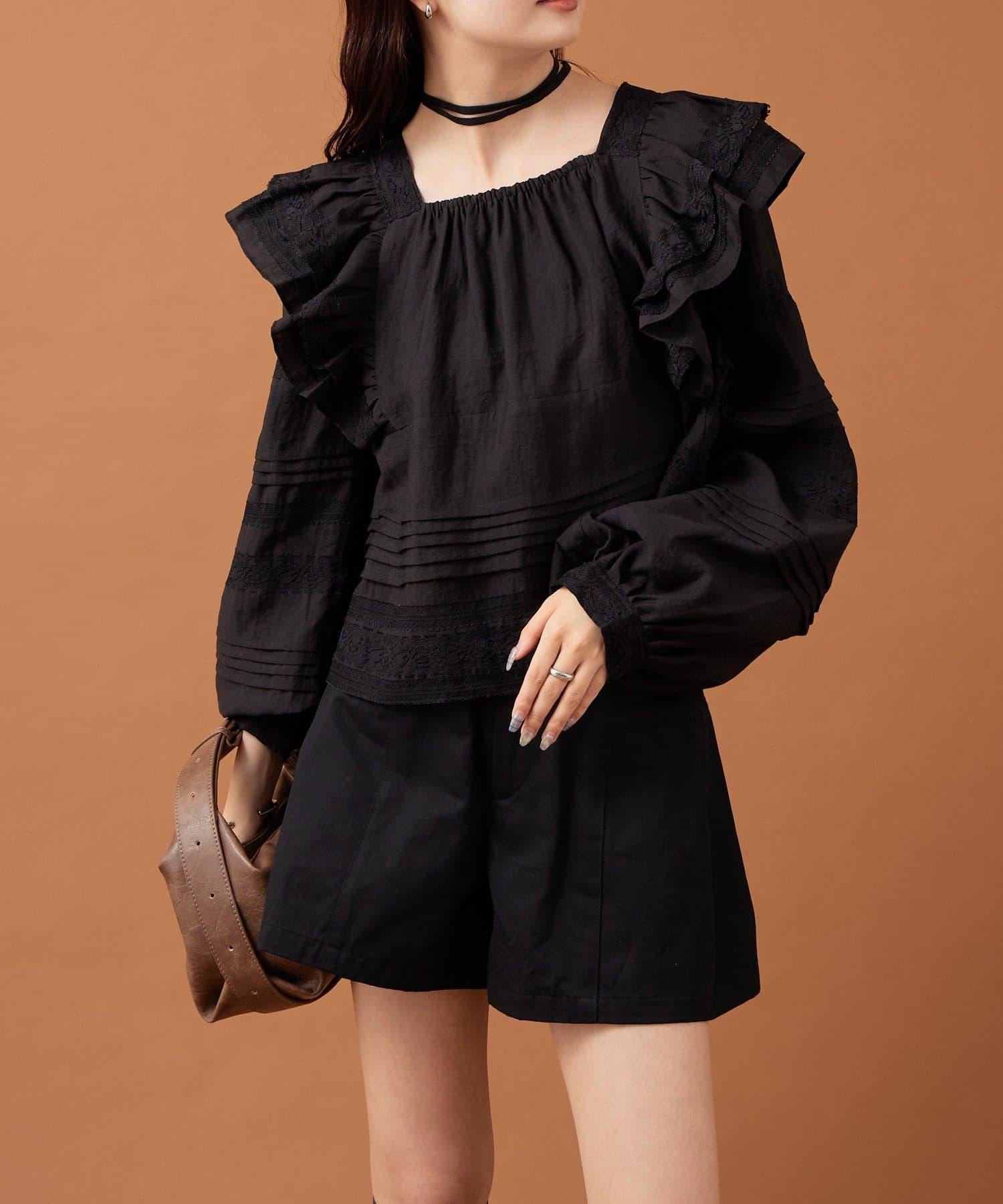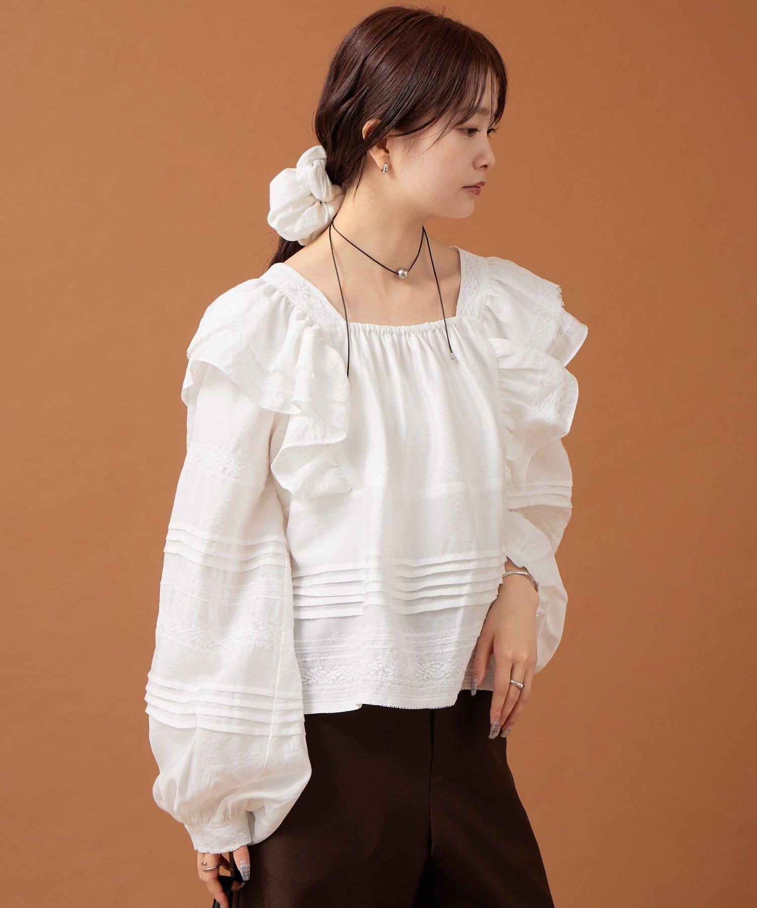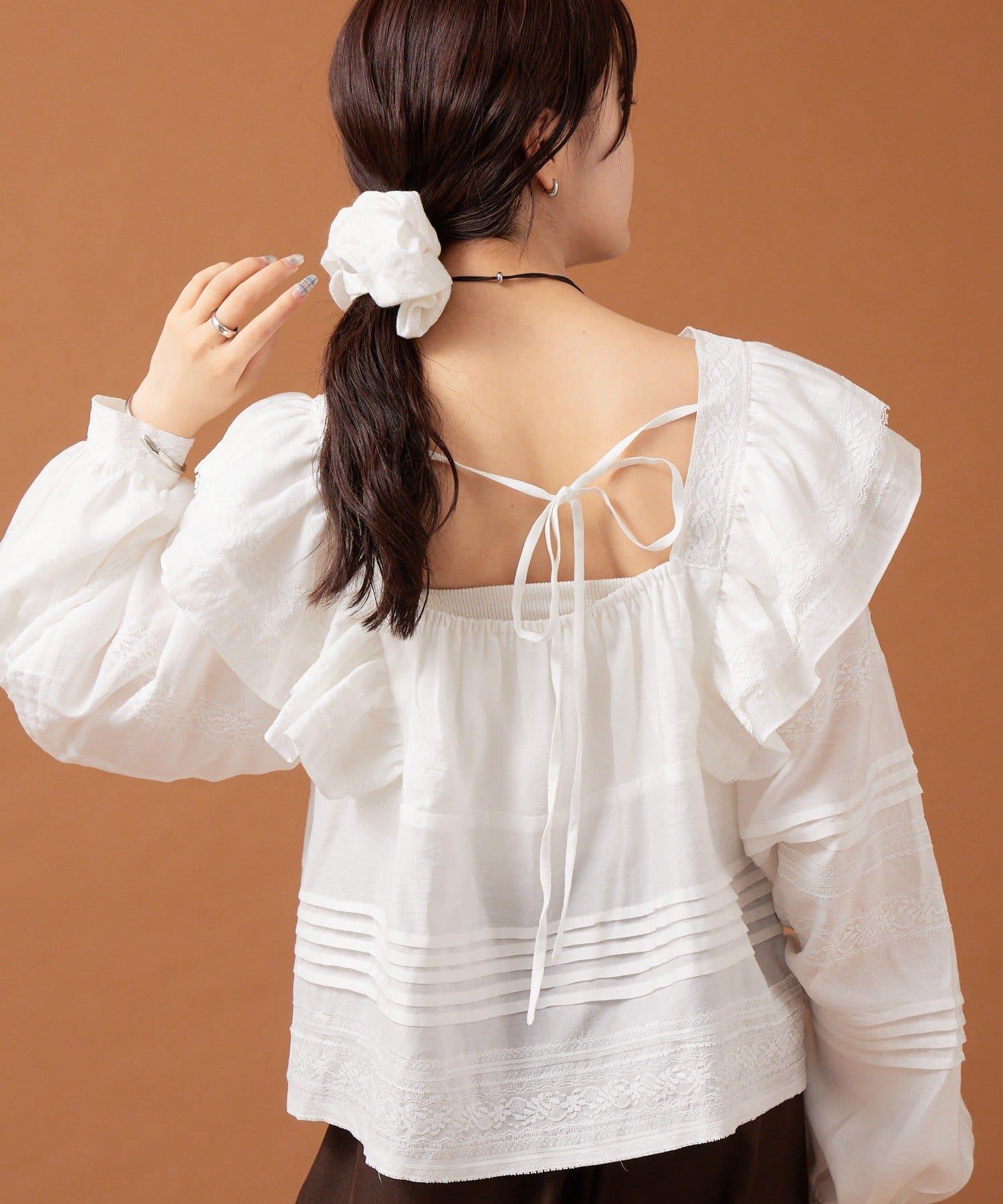 【mystic】荷葉邊肩部襯衫