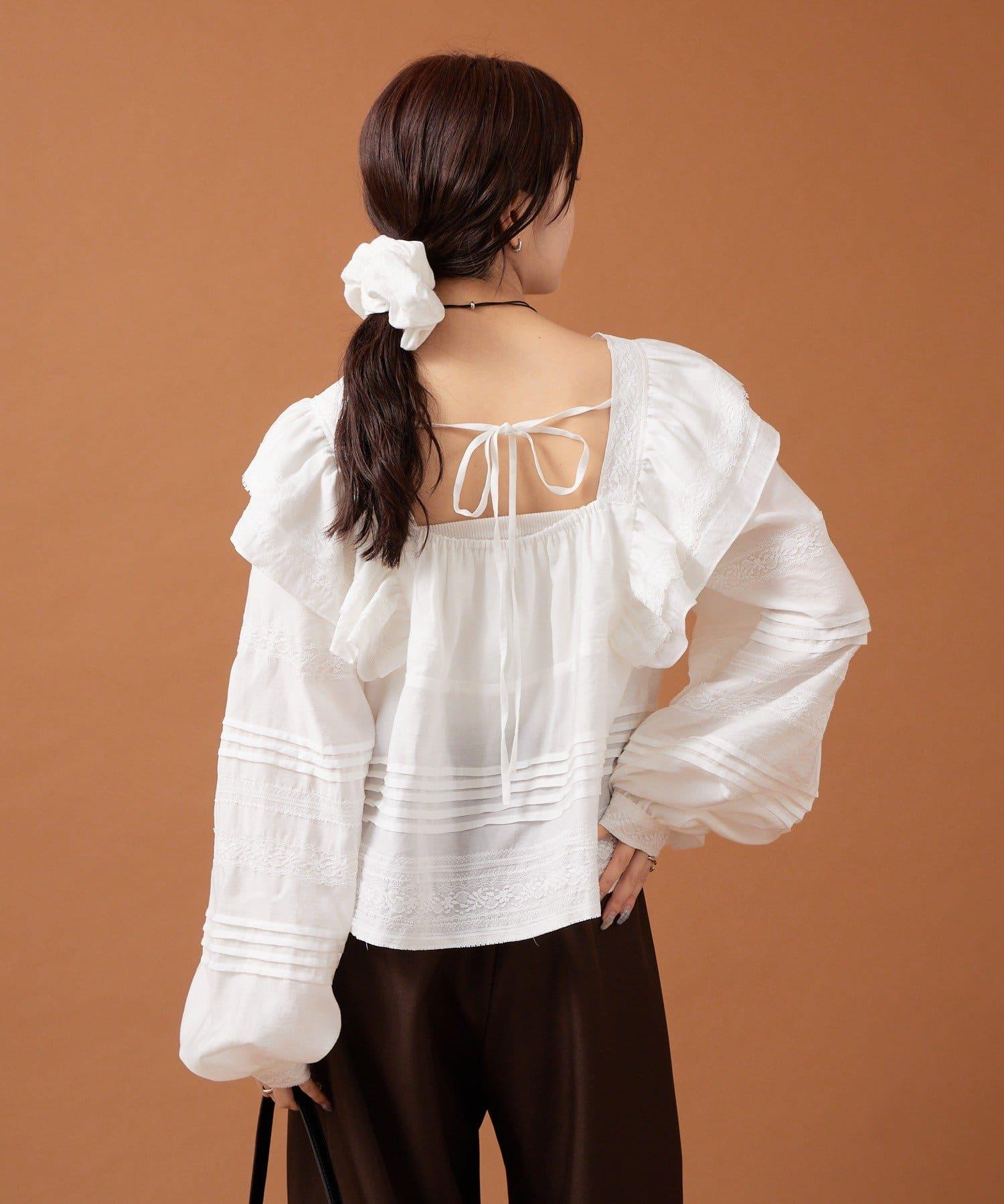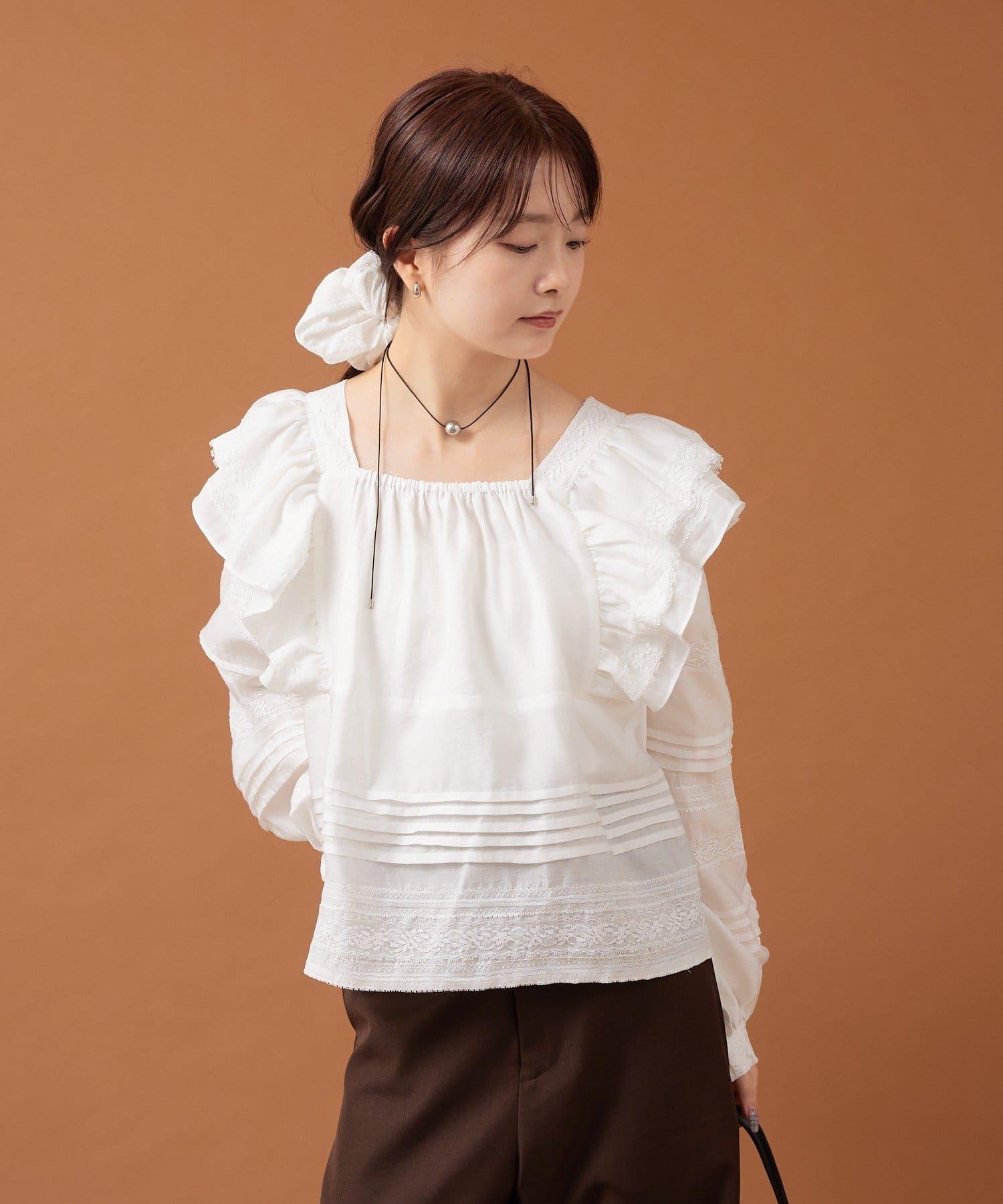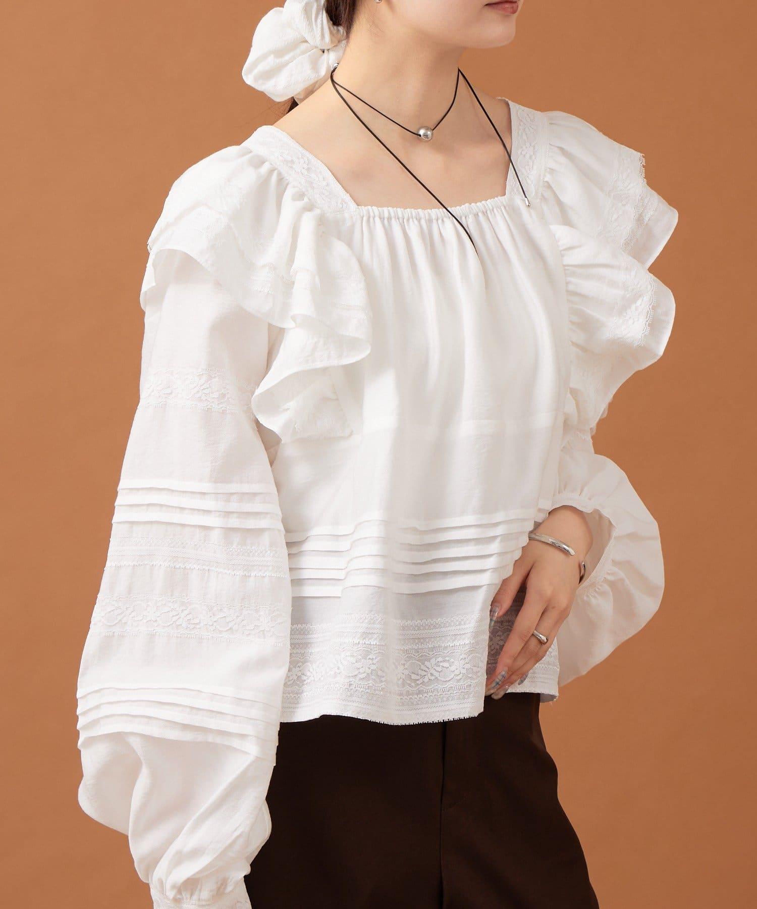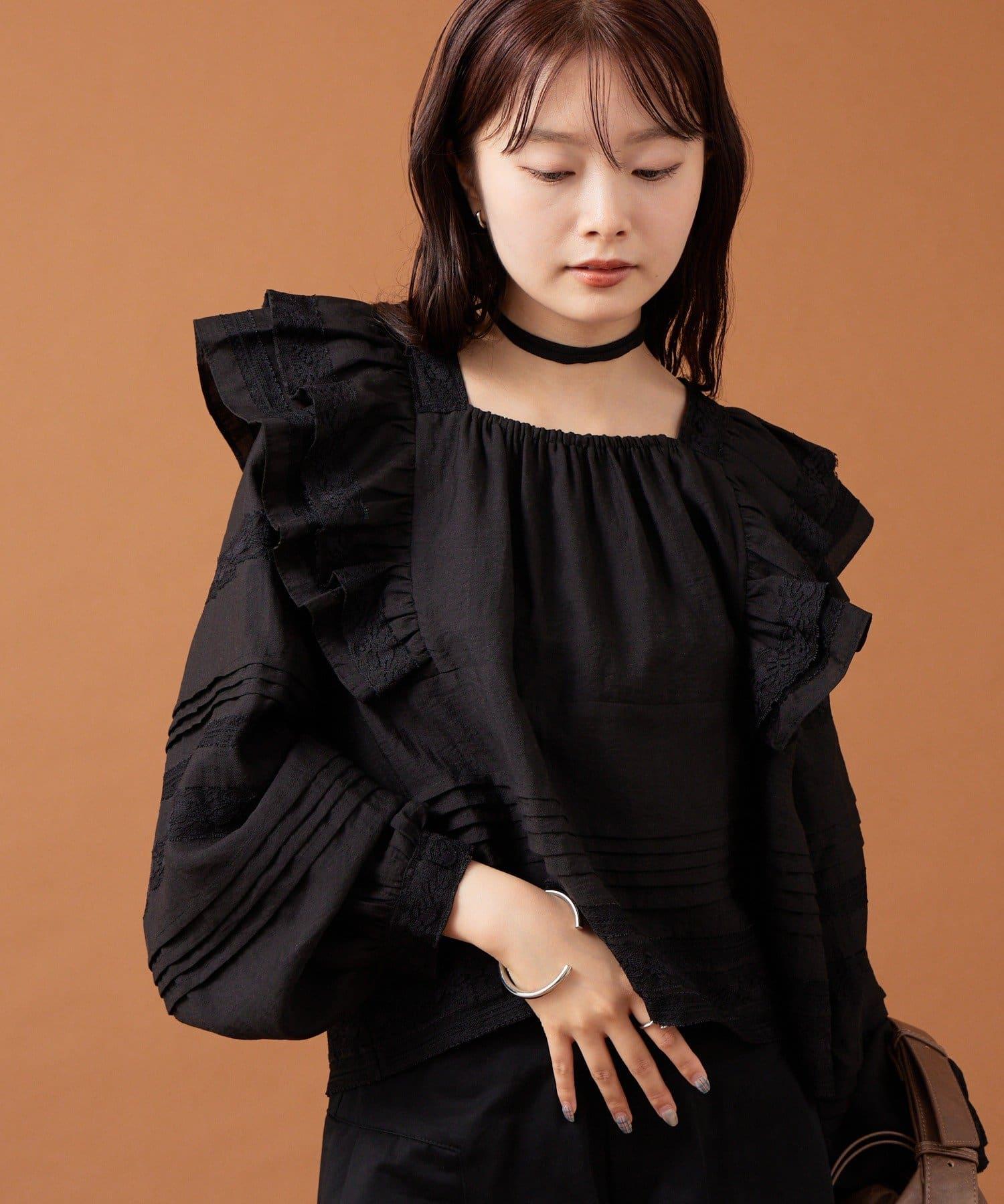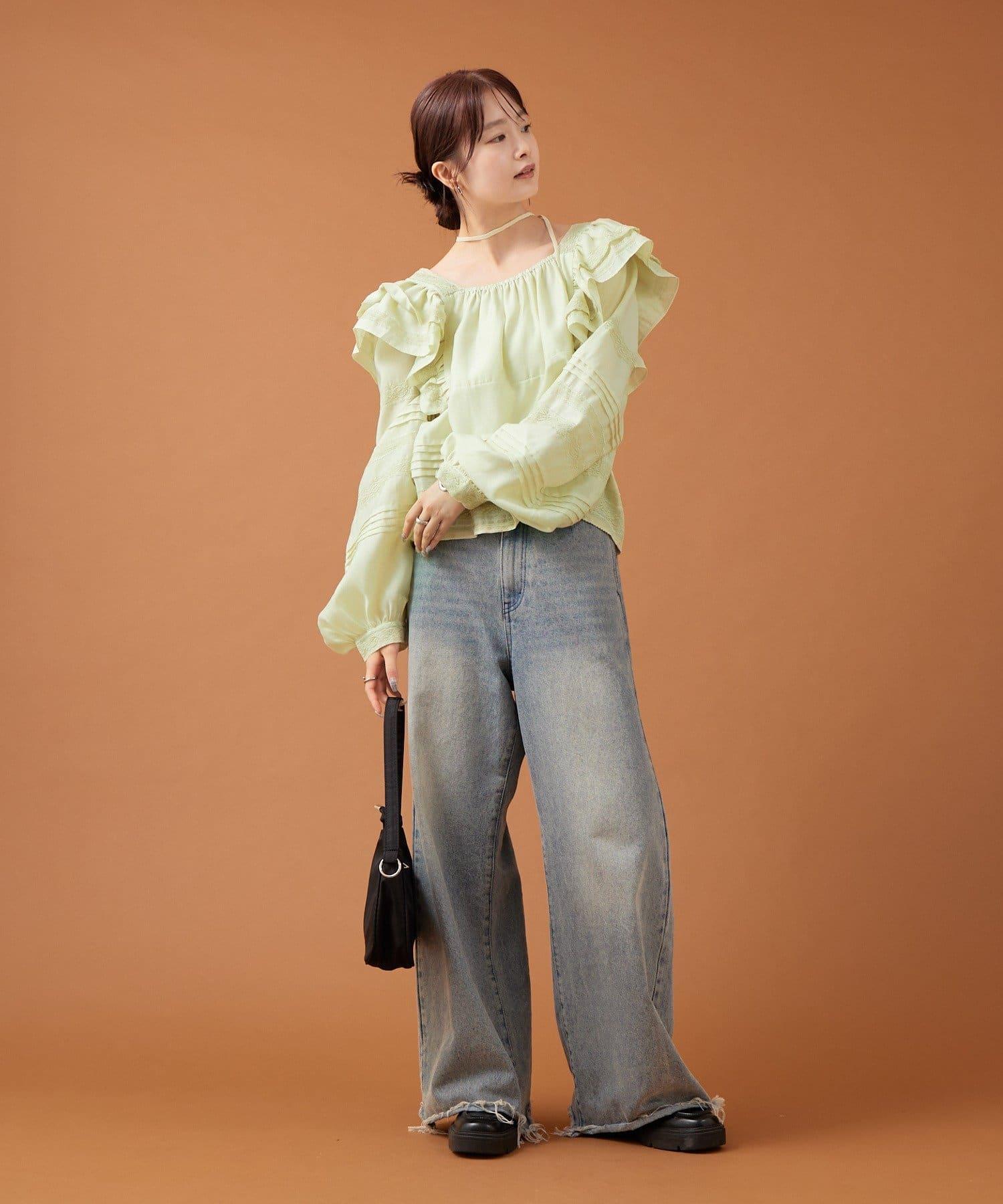 【mystic】荷葉邊肩部襯衫