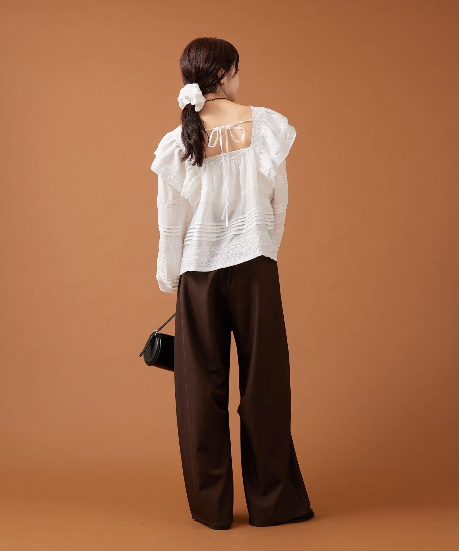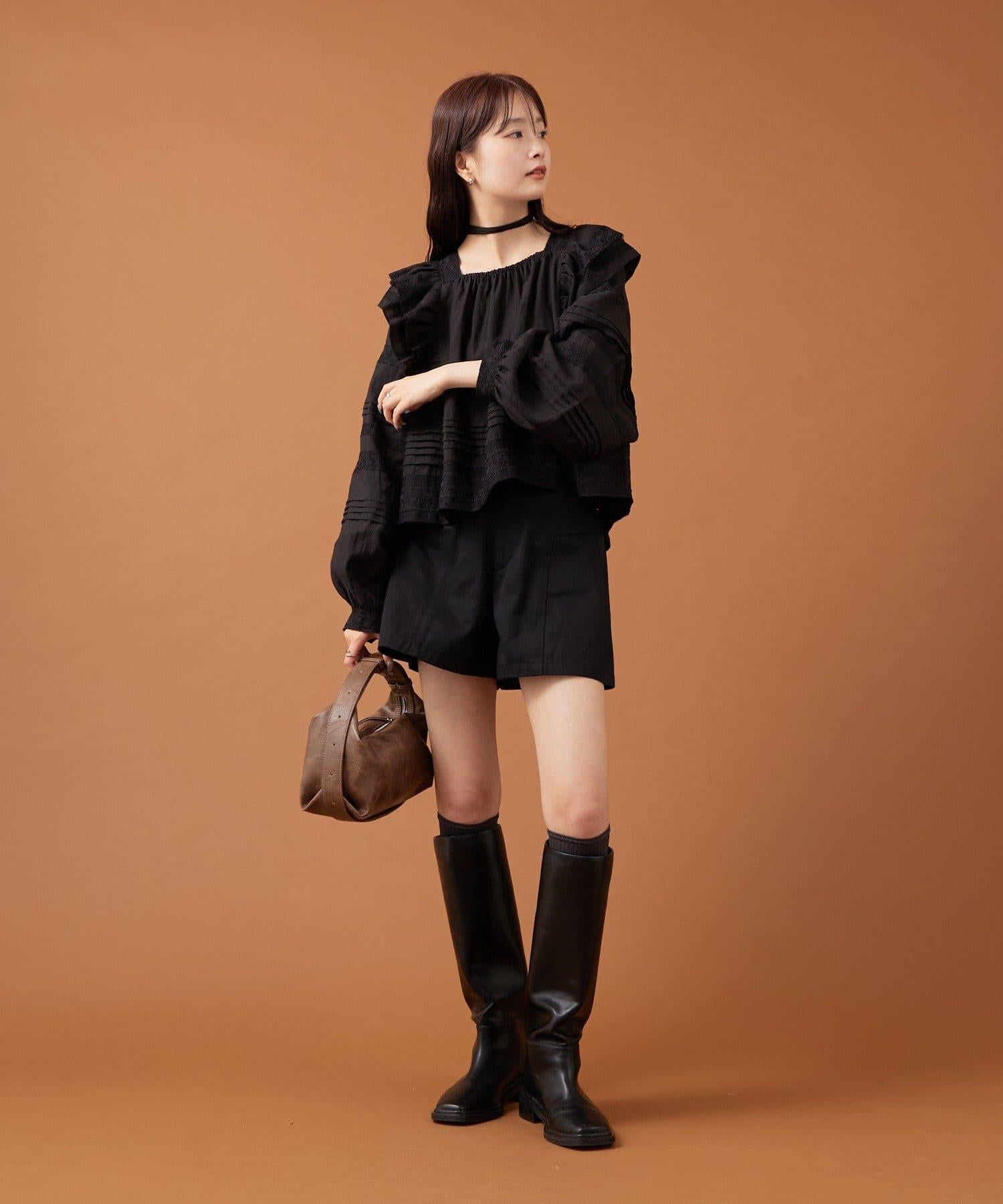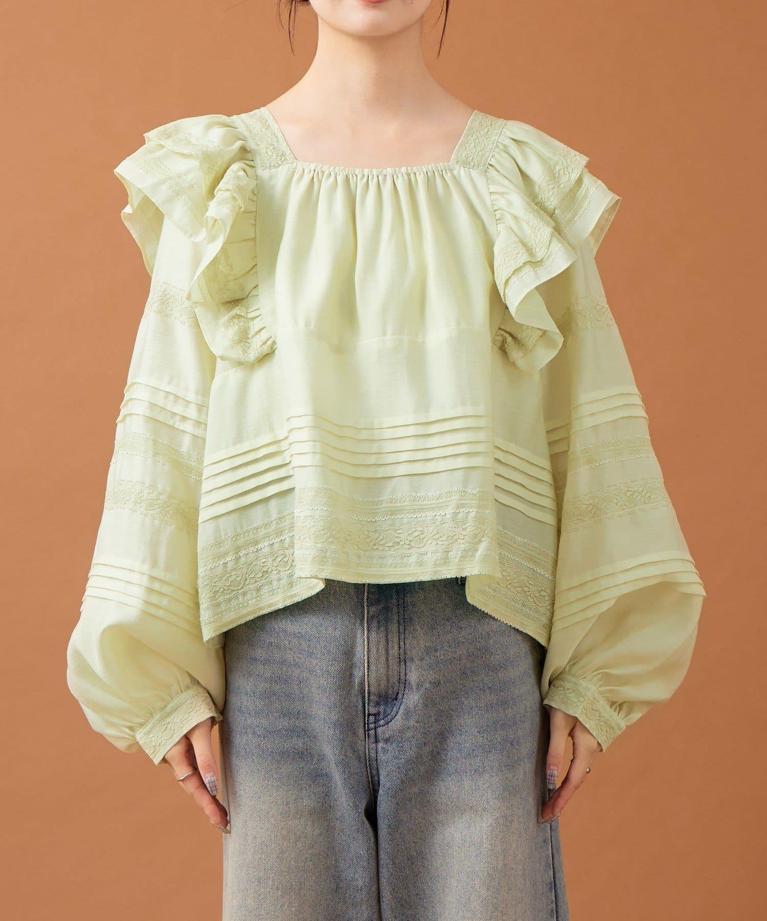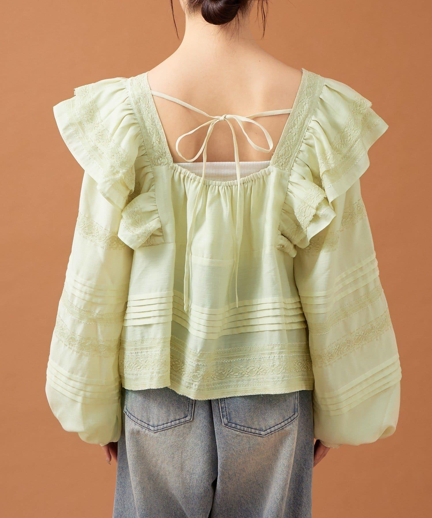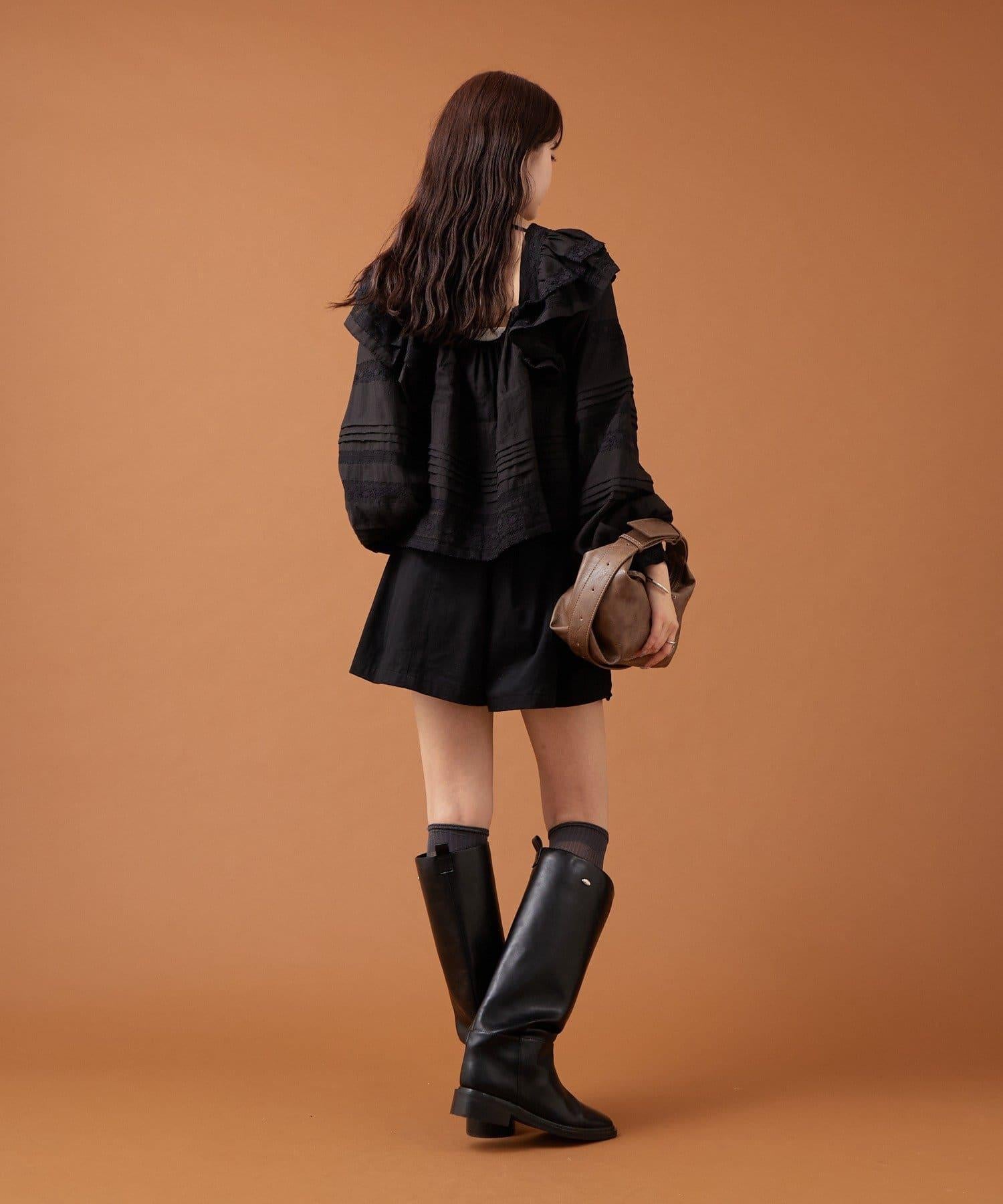 【mystic】荷葉邊肩部襯衫