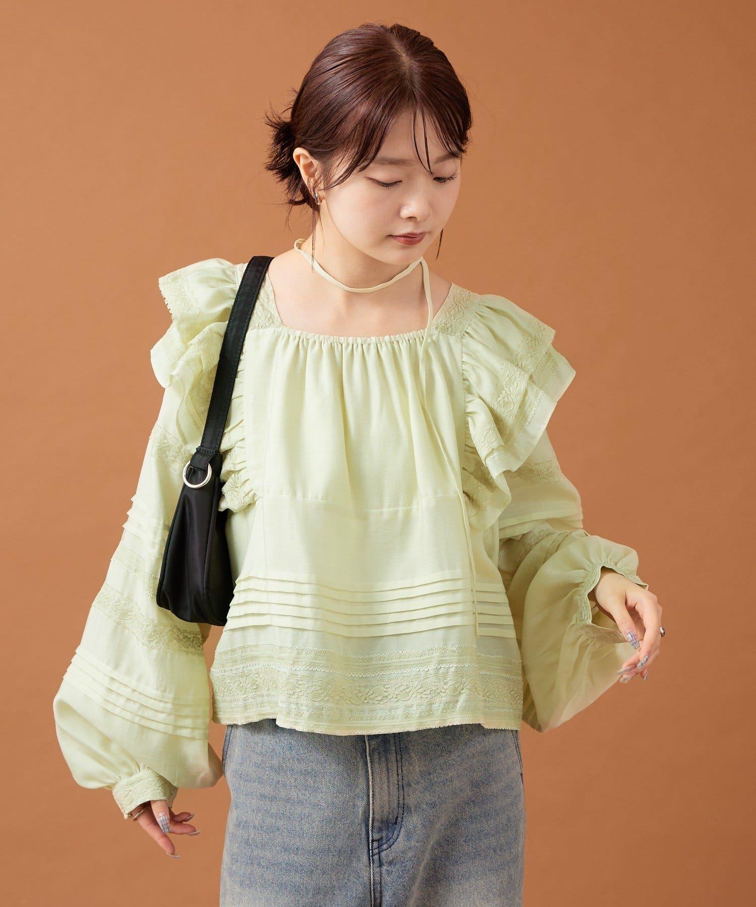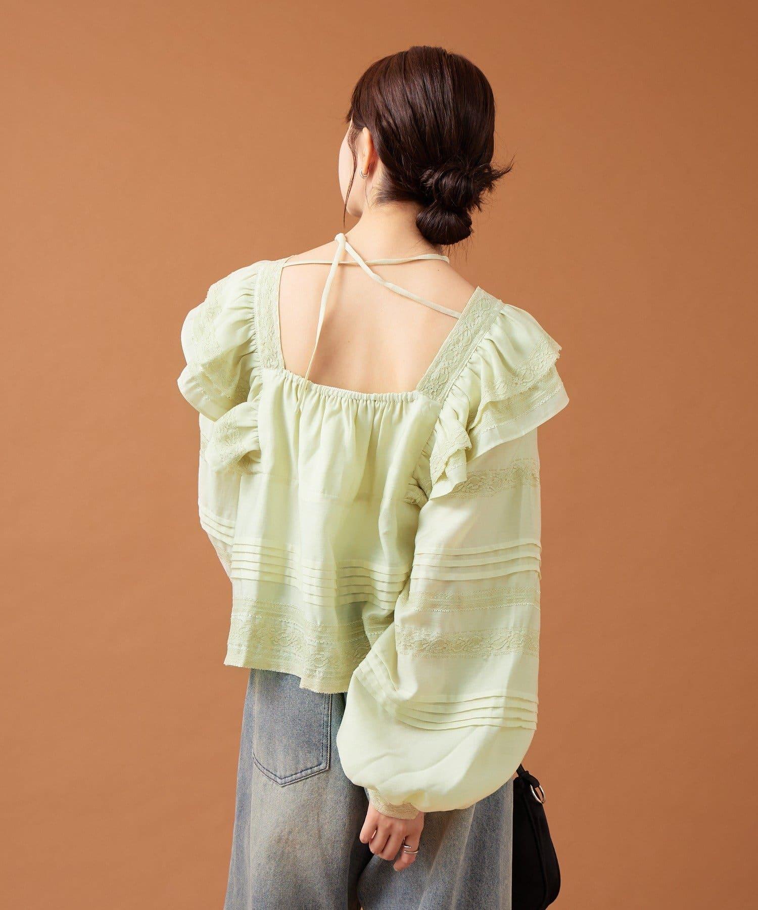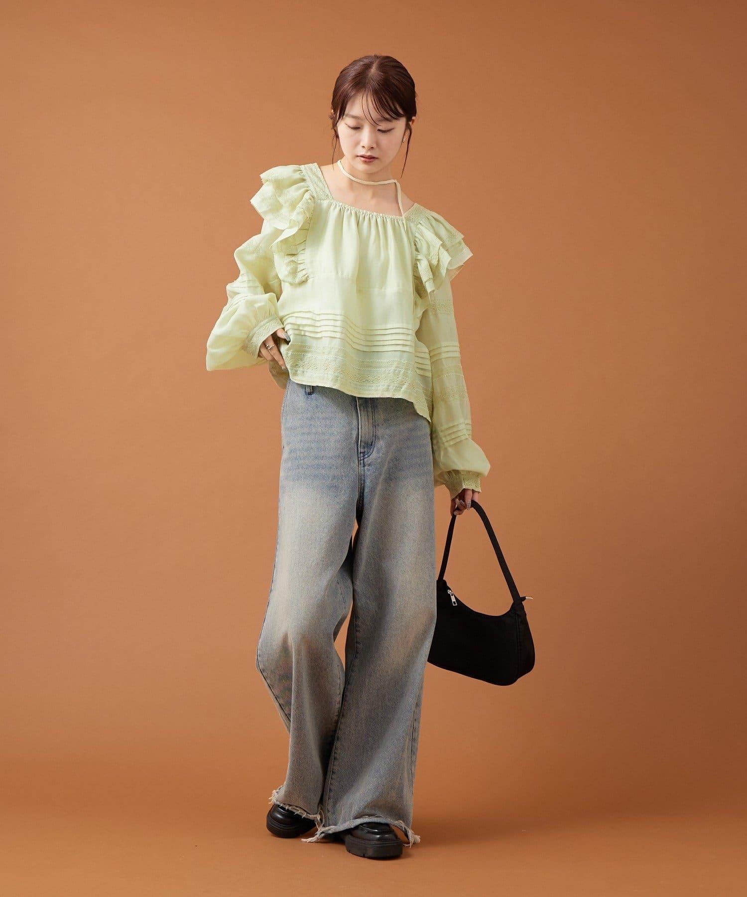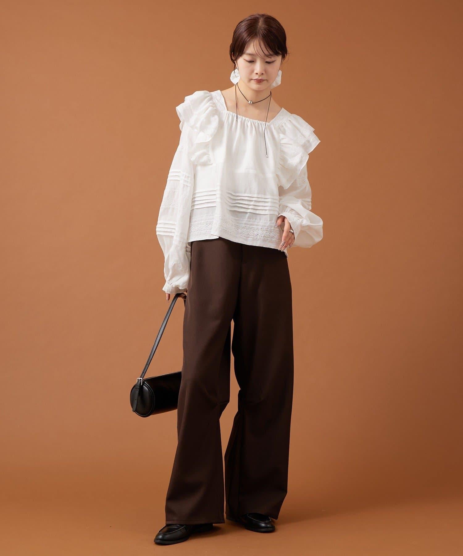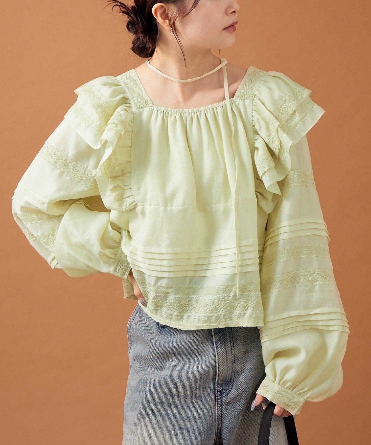 【mystic】荷葉邊肩部襯衫