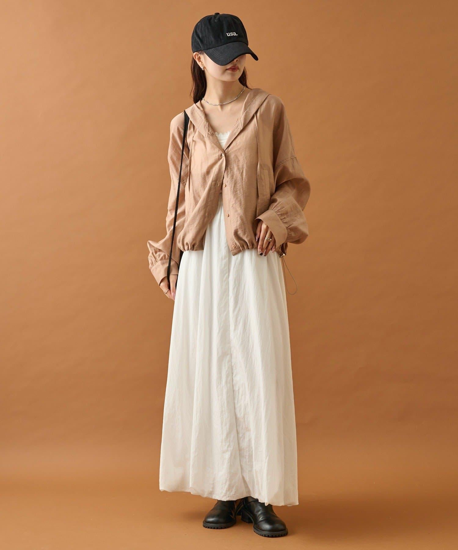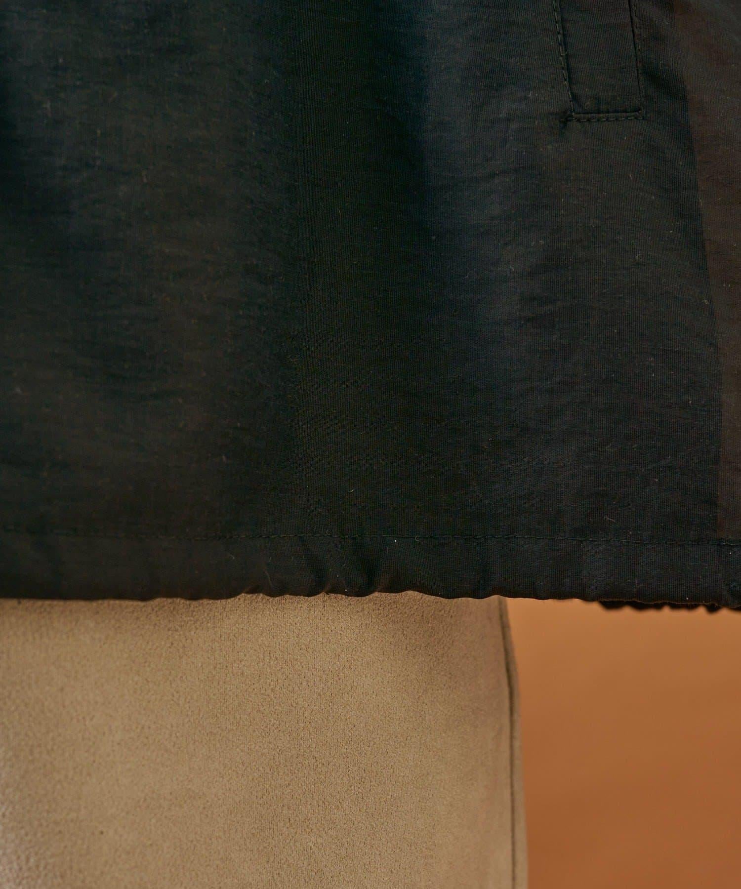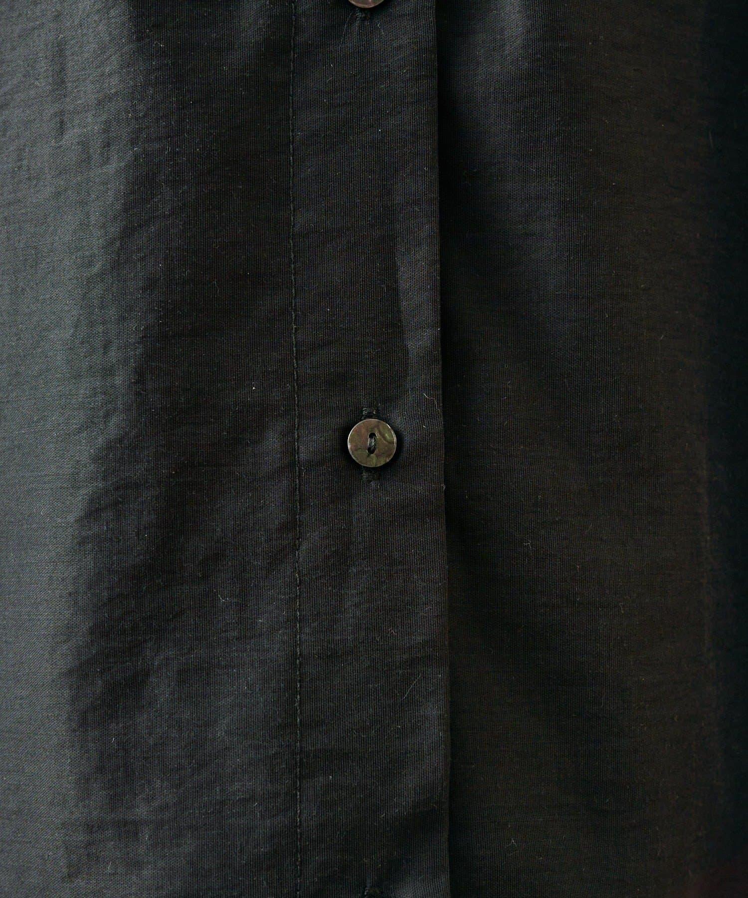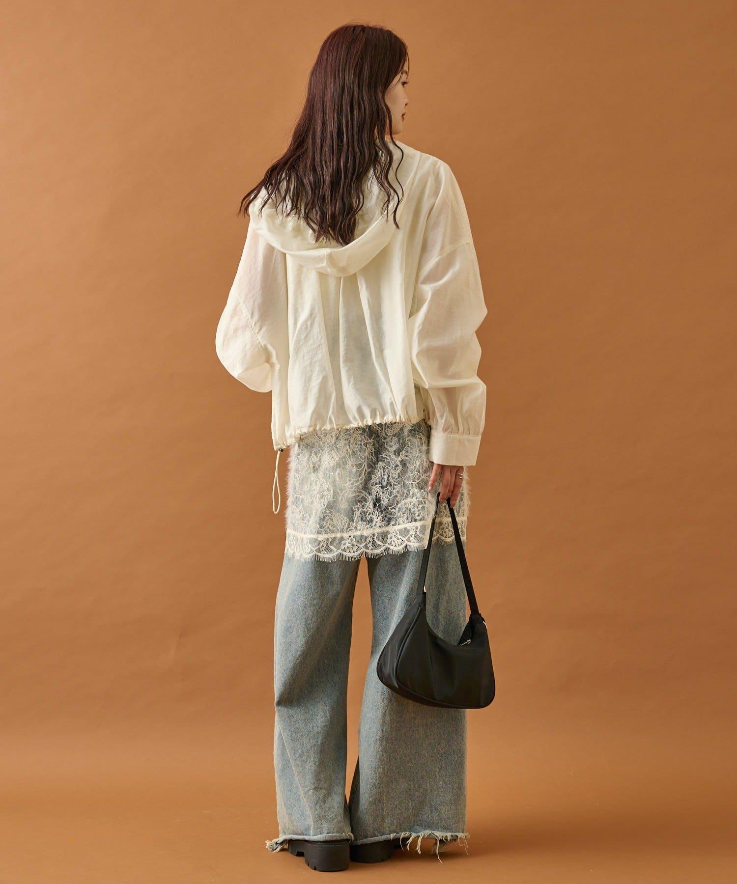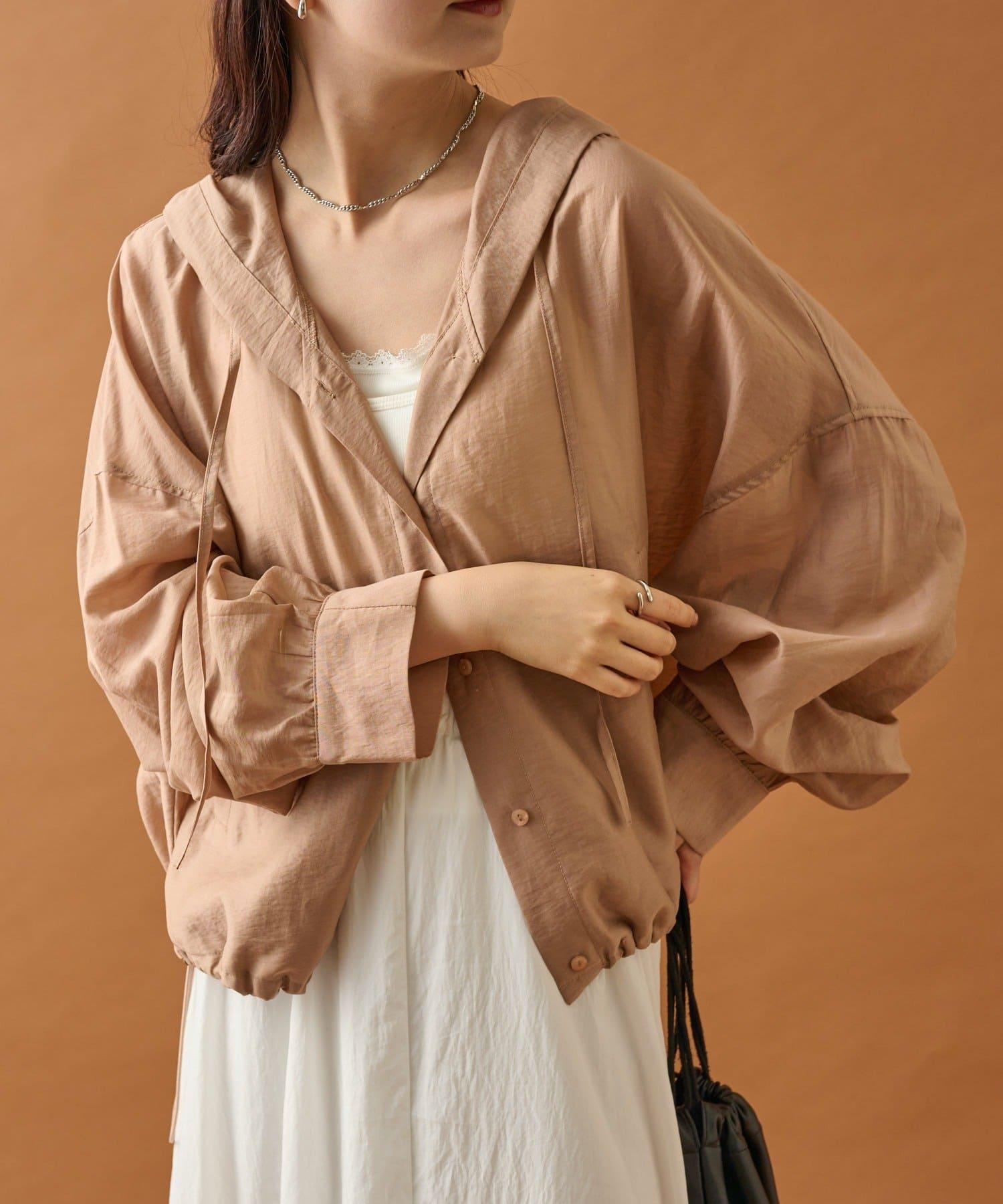 由輕微透明的薄紗面料製成的連帽型襯衫。透視面料微微透明,使襯衫看起來略帶透明感。