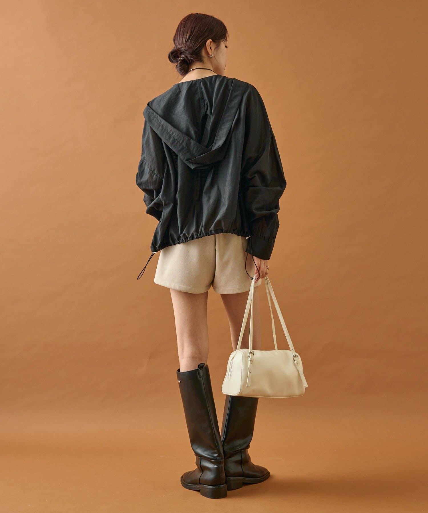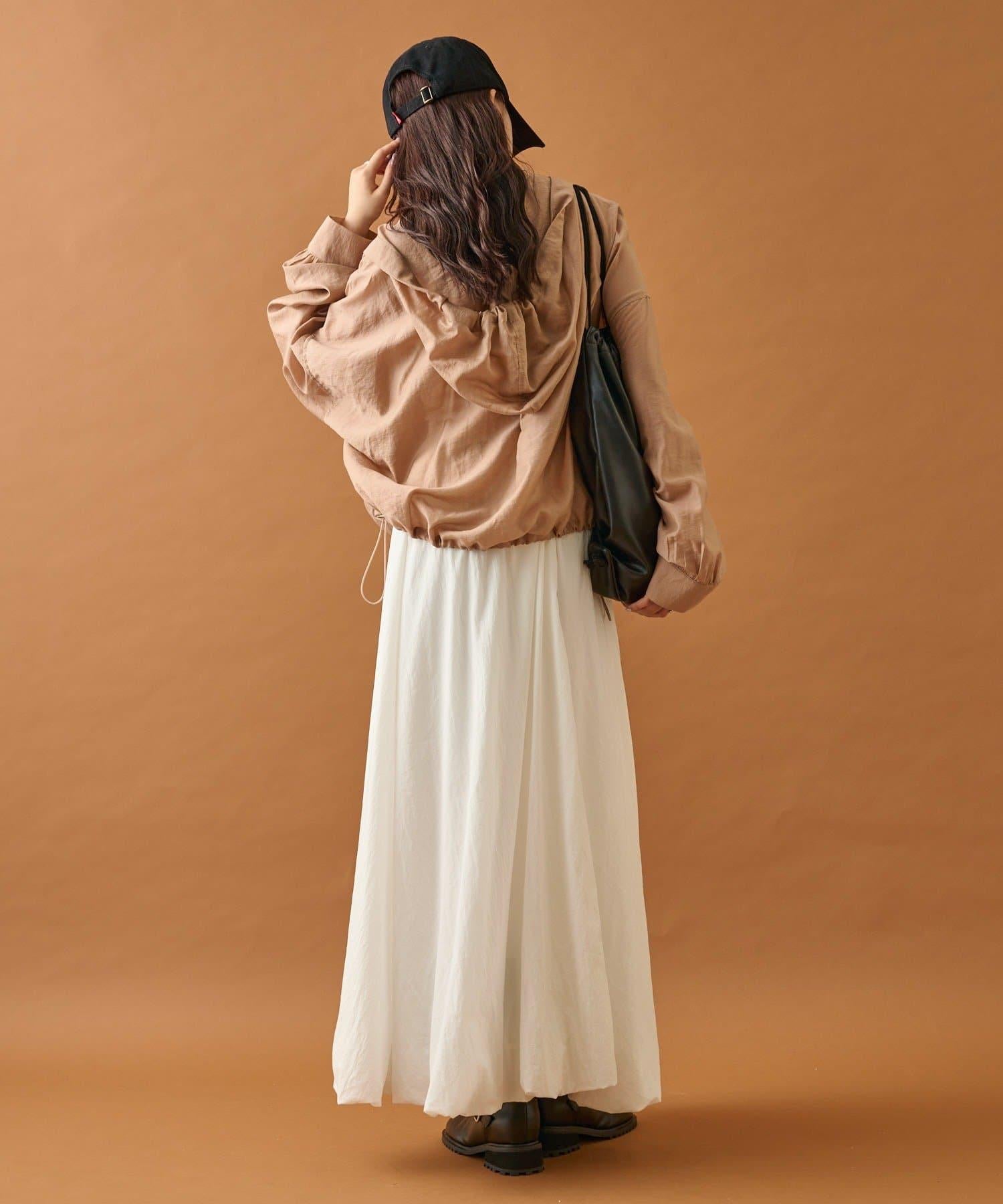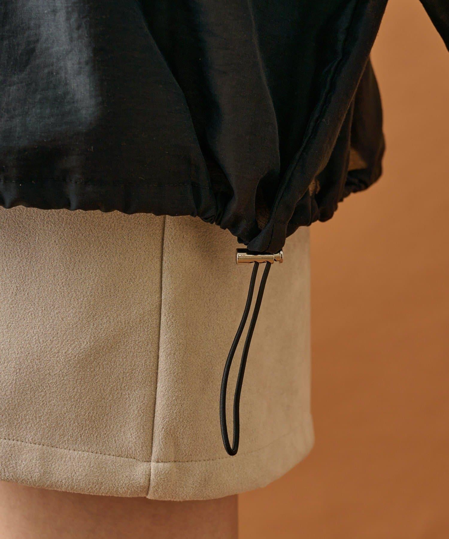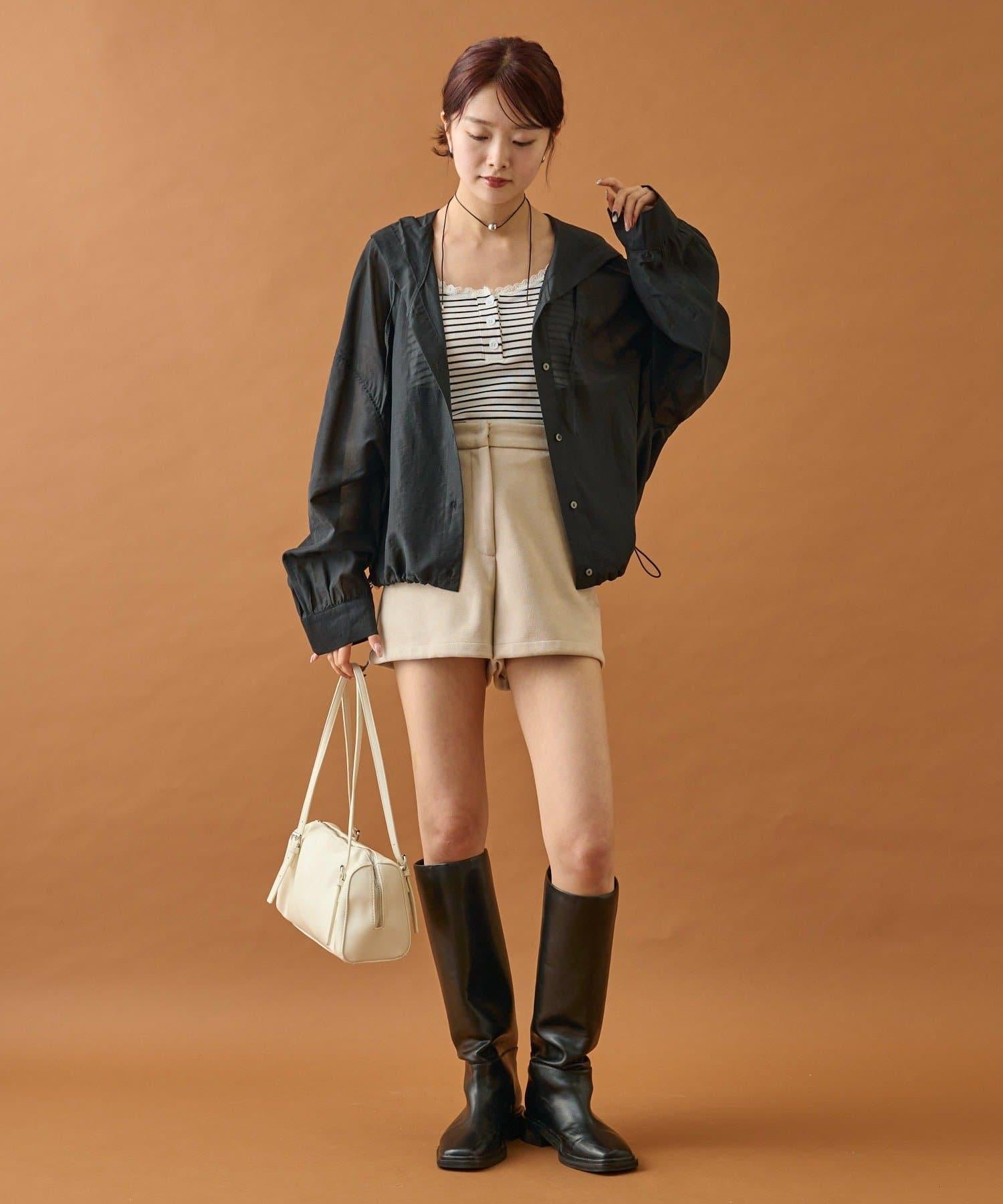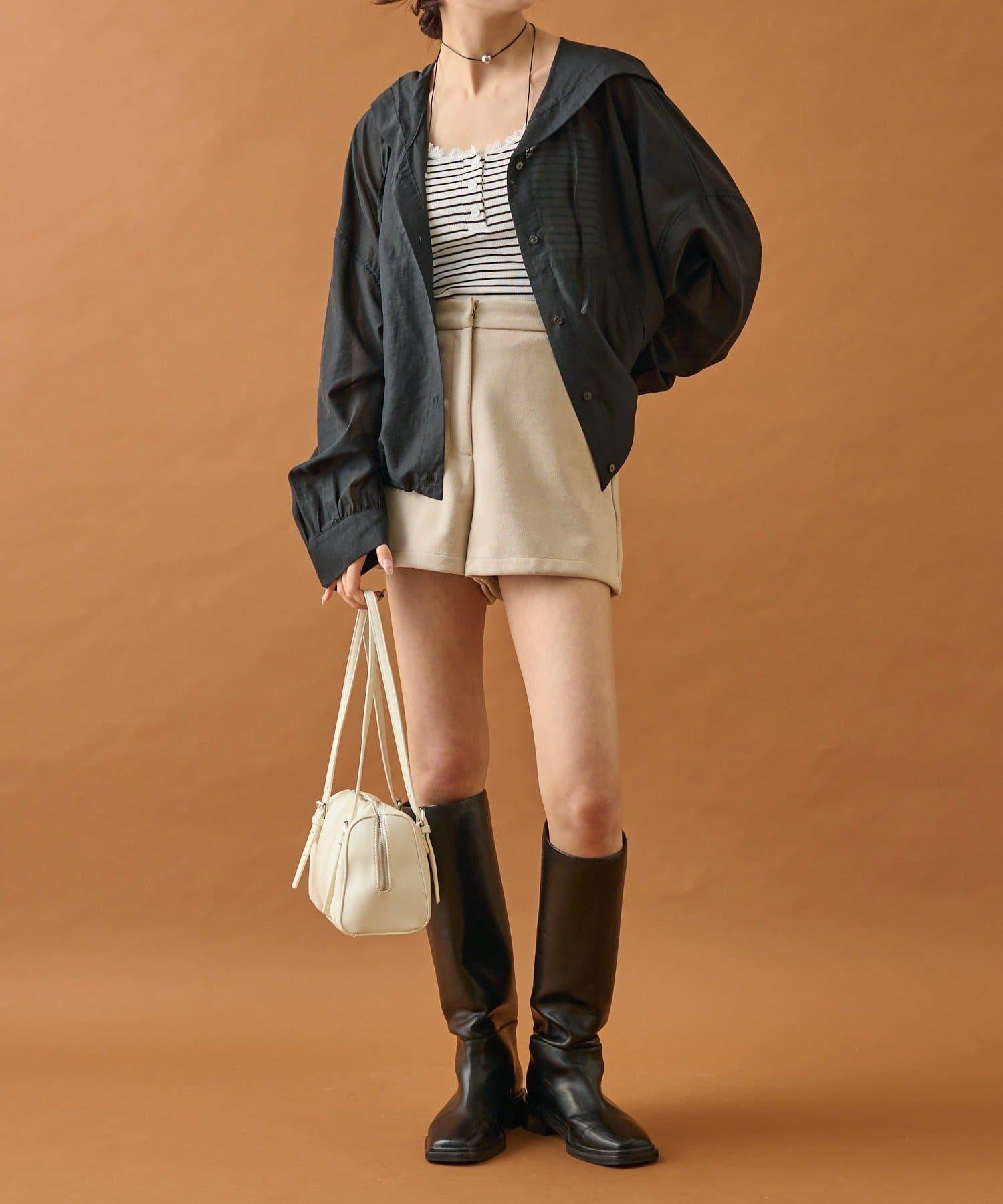 由輕微透明的薄紗面料製成的連帽型襯衫。透視面料微微透明,使襯衫看起來略帶透明感。