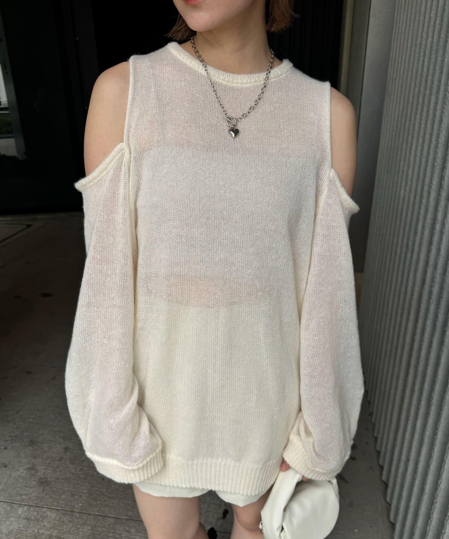 這款時尚針織衫採用開肩設計,具有今年非常典型的透視感。