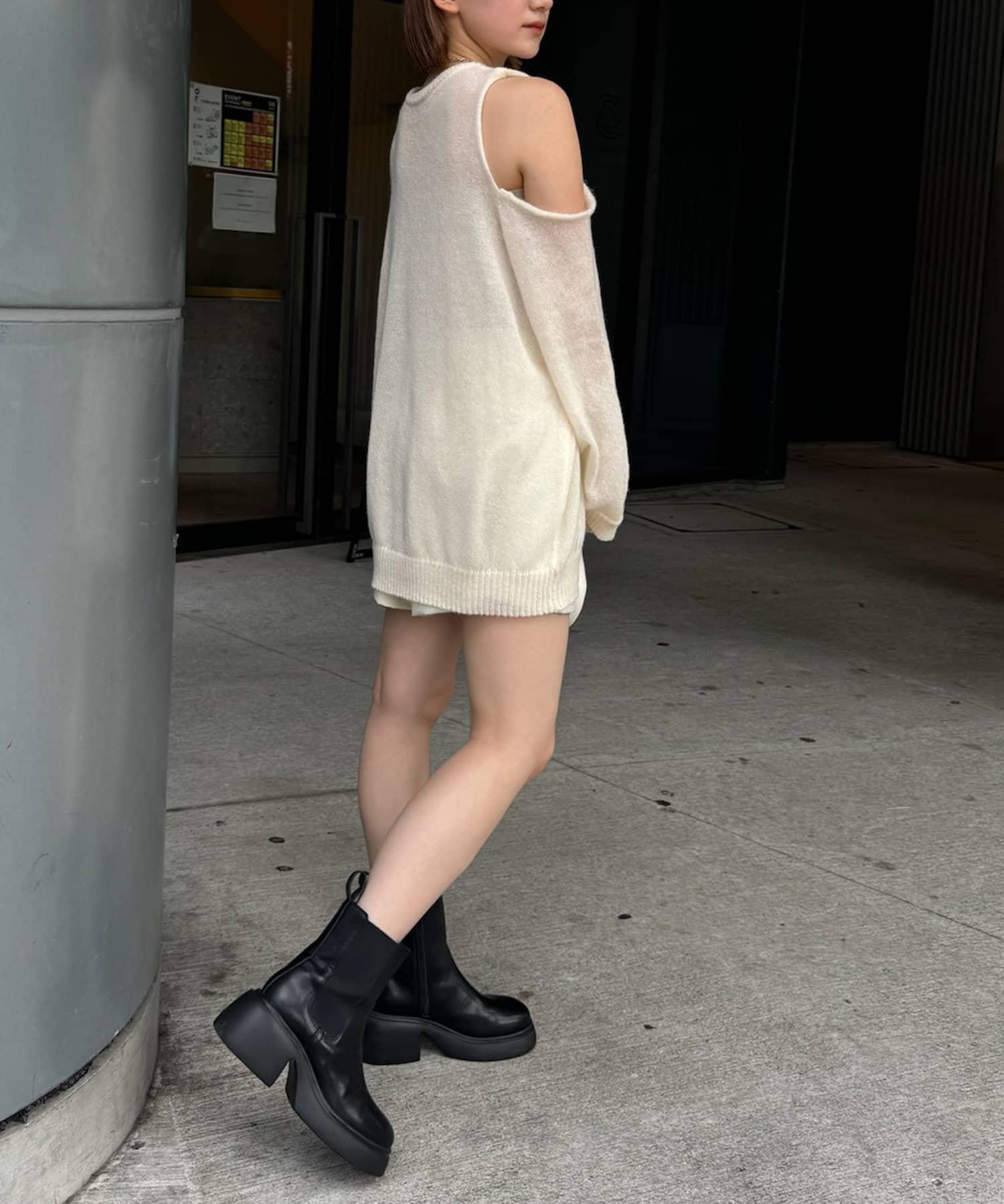 這款針織衫採用開肩設計,光澤度恰到好處,令人心動不已!