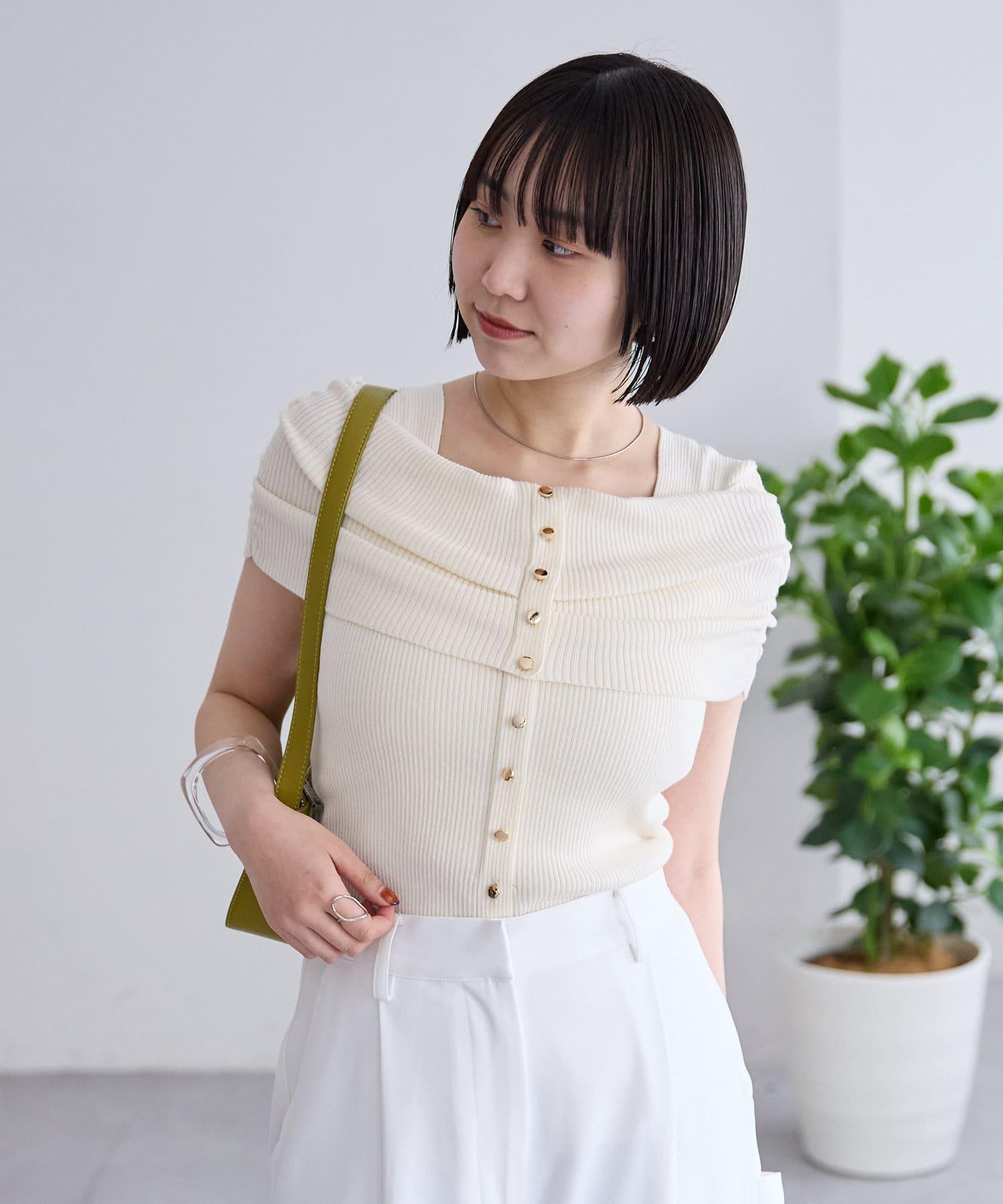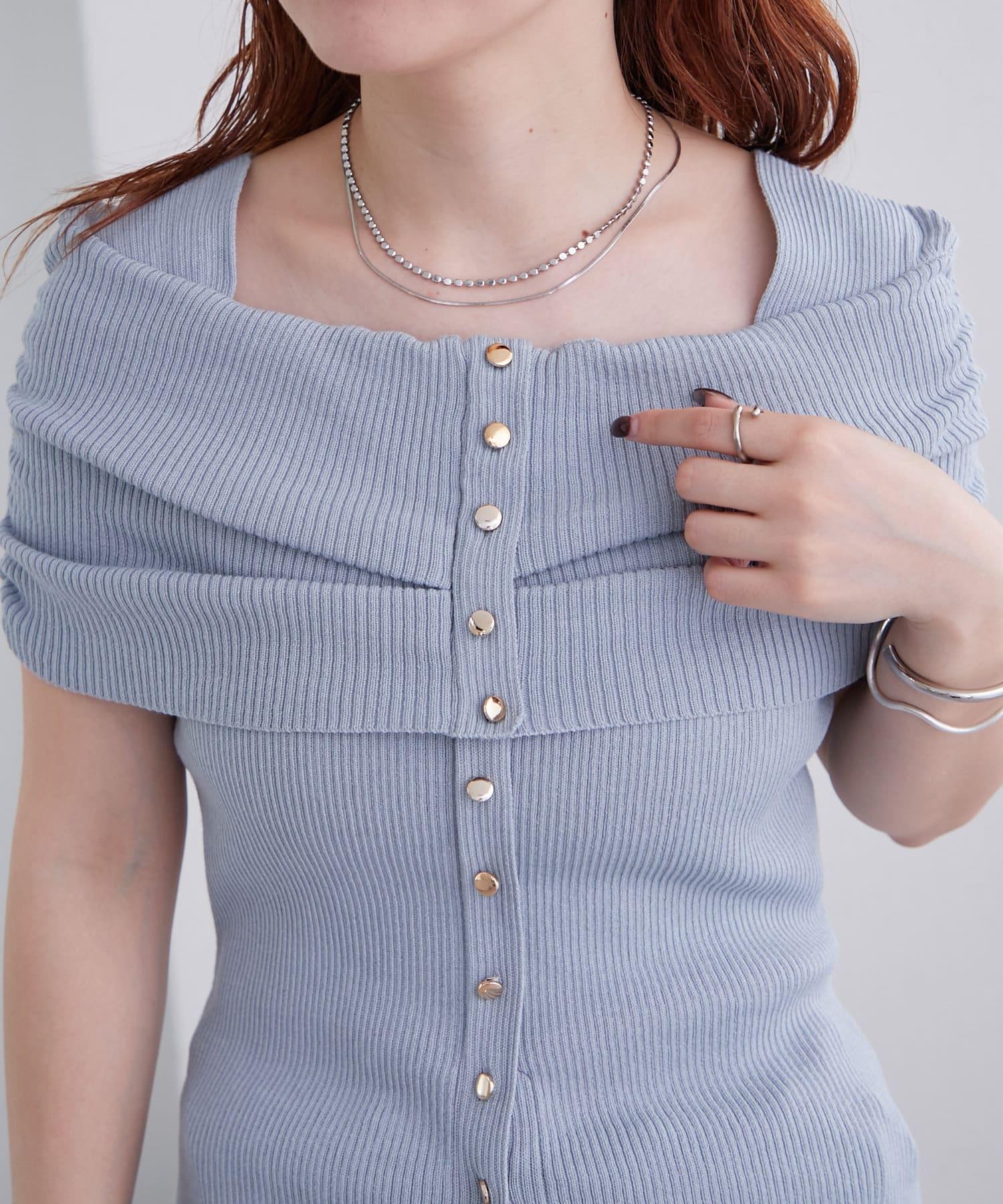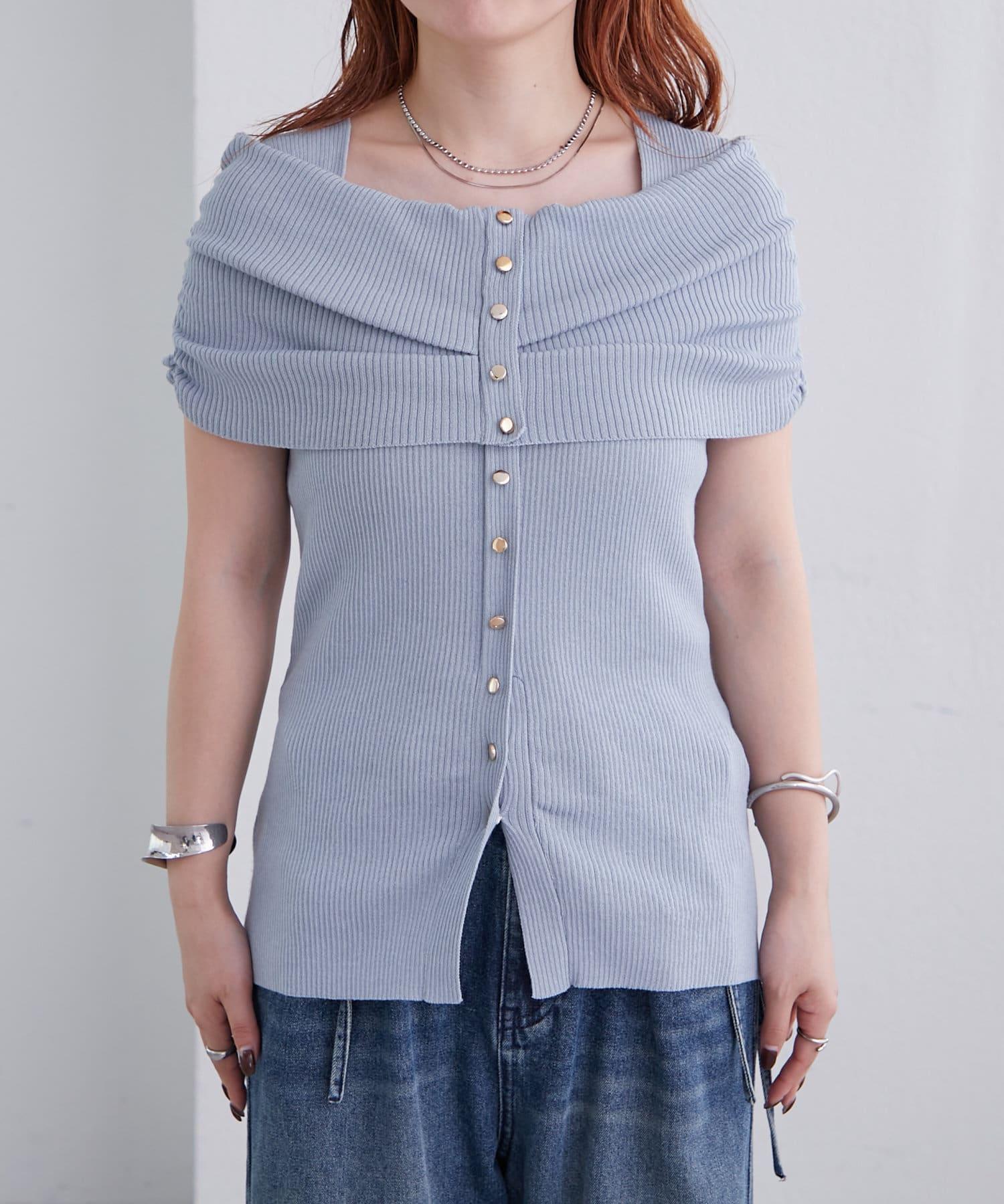 mystic 露肩設計 短袖針織上衣