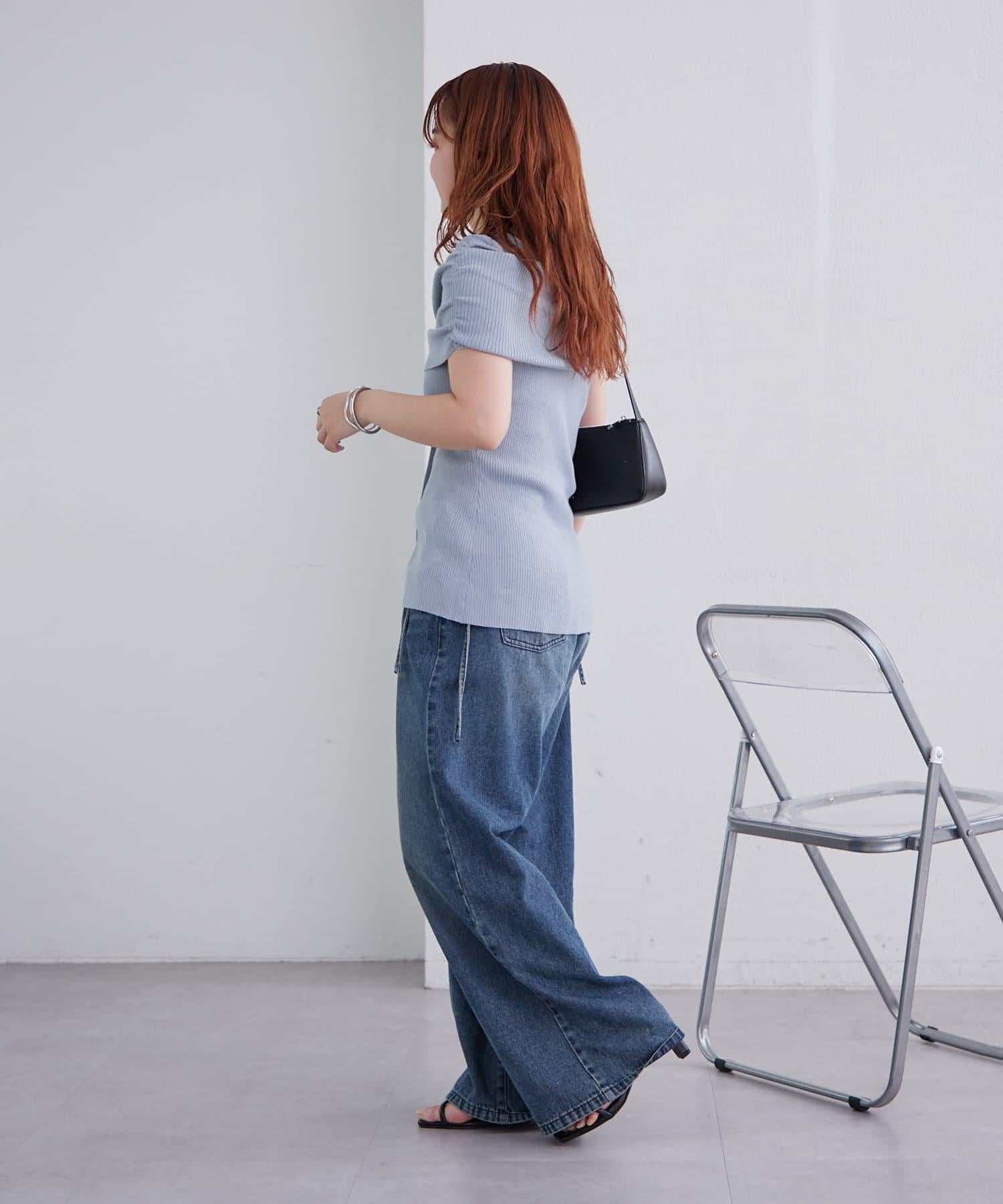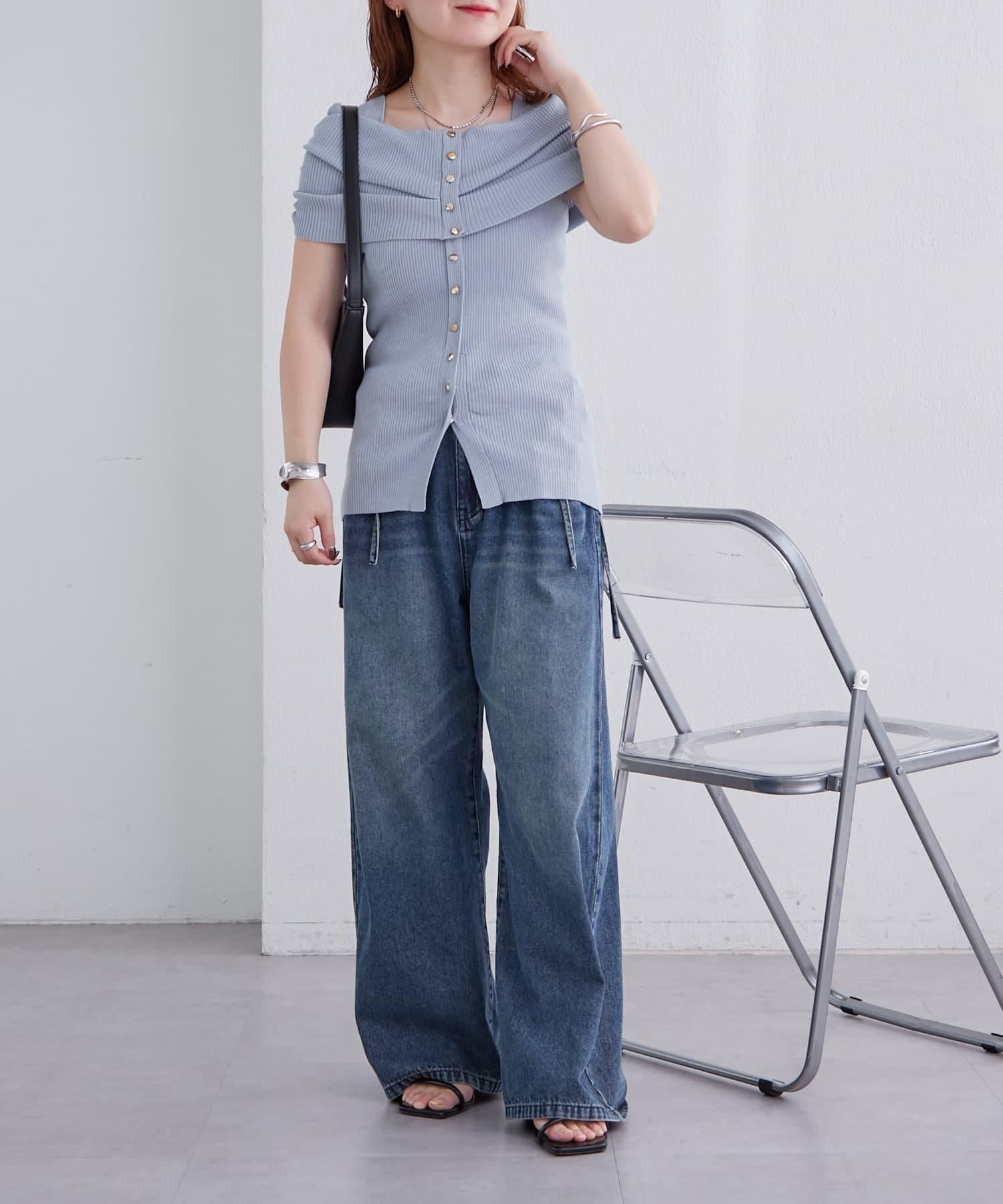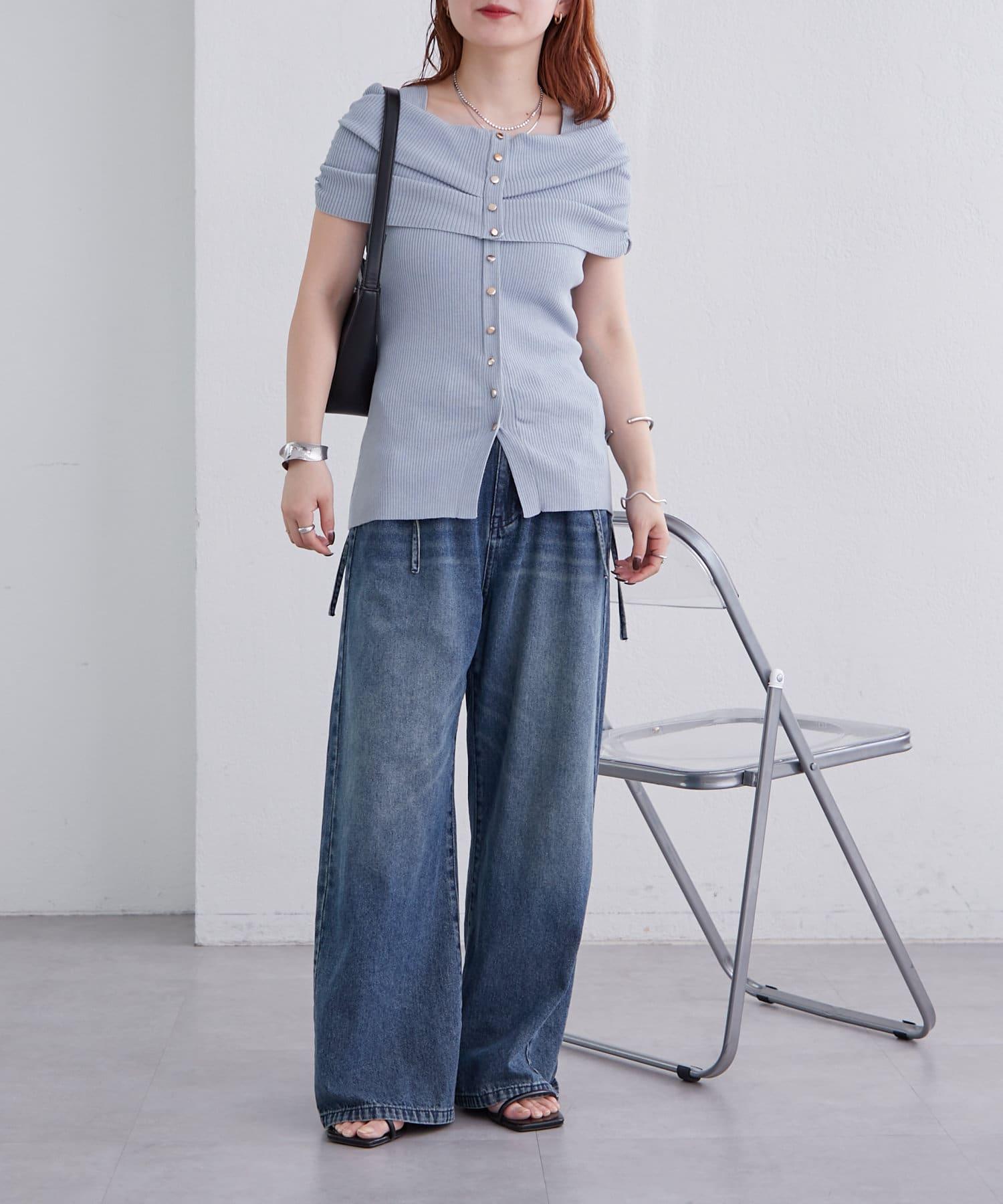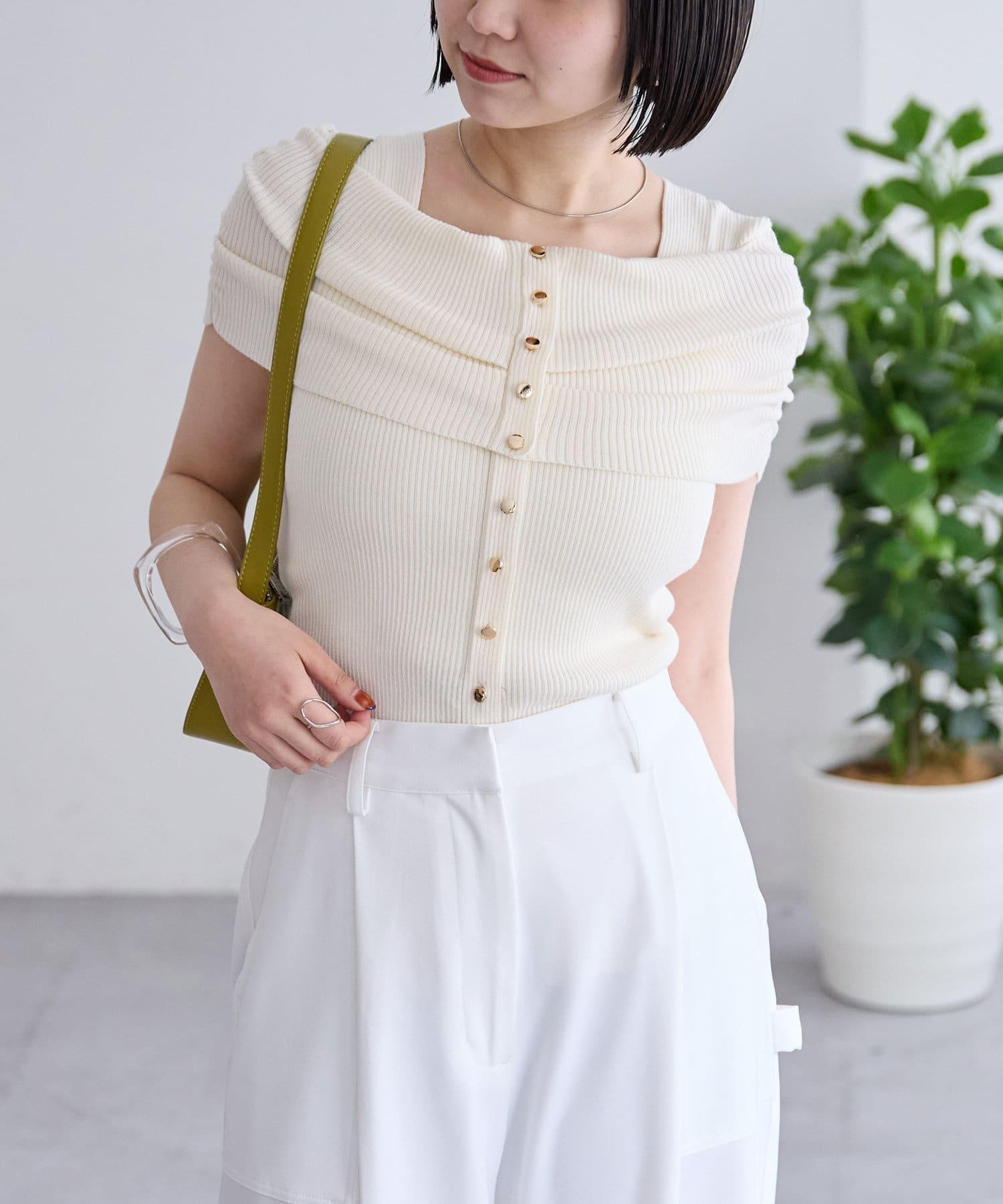 mystic 露肩設計 短袖針織上衣