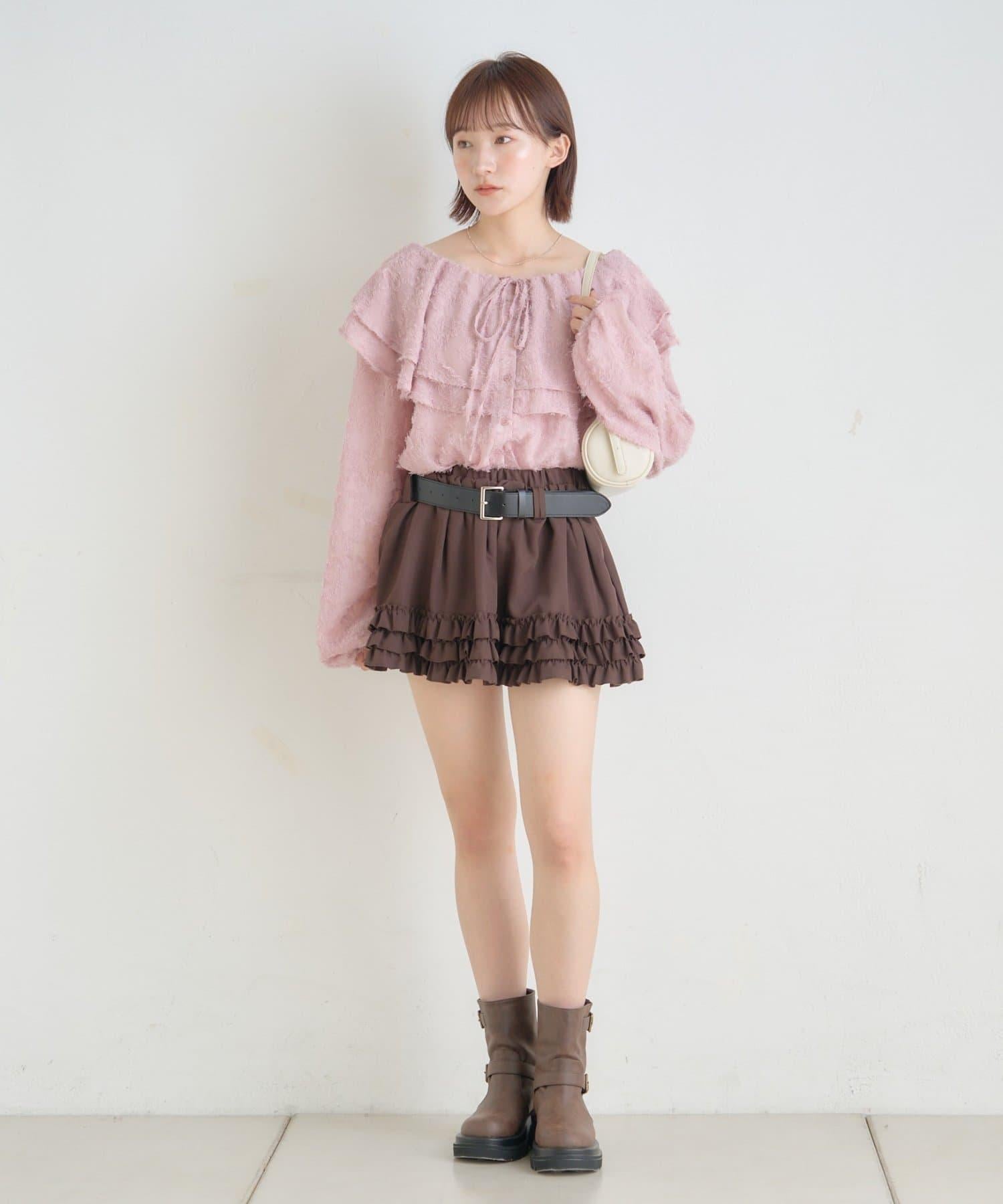 【mystic】[mline]荷葉邊褶皺雪紡襯衫