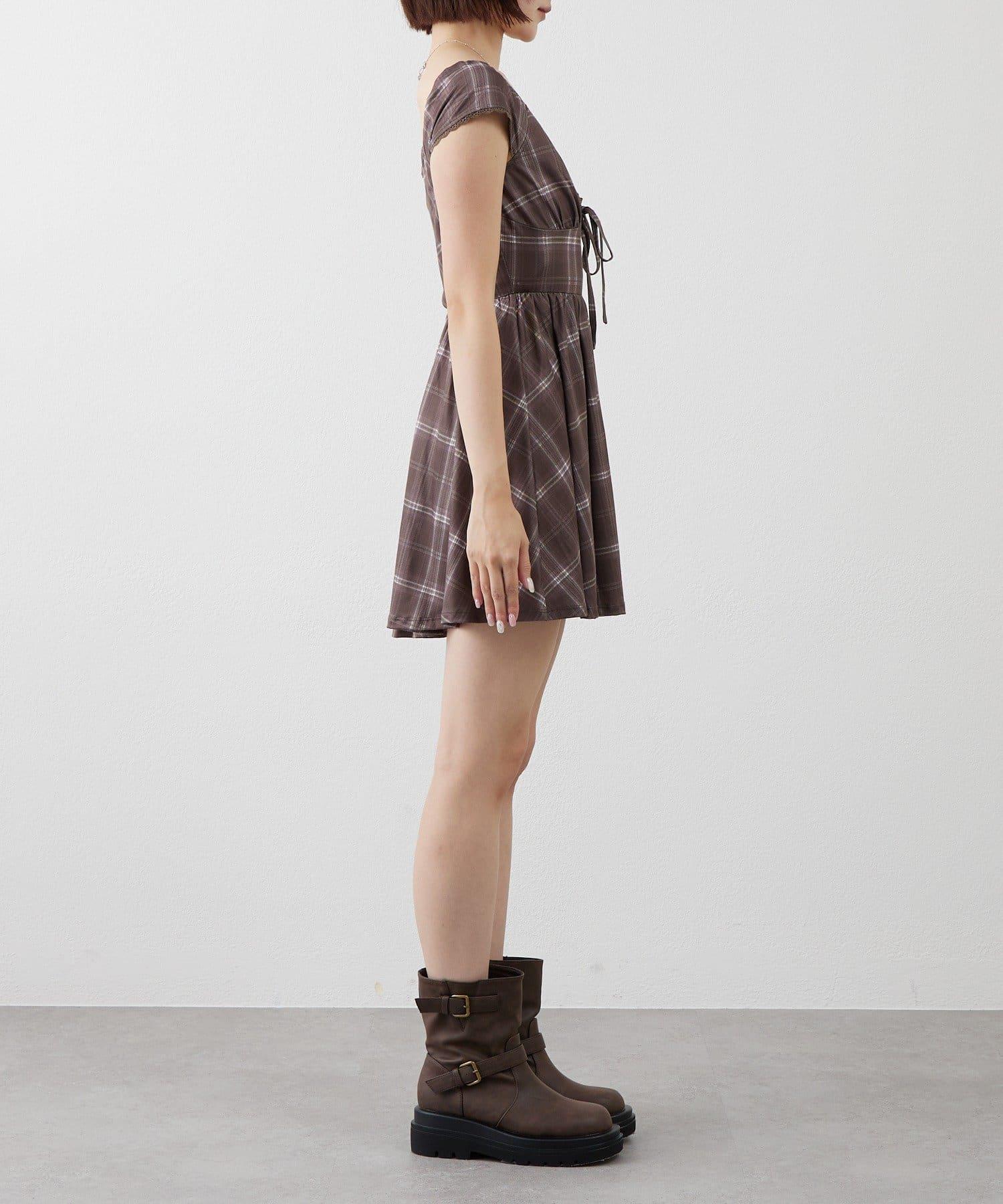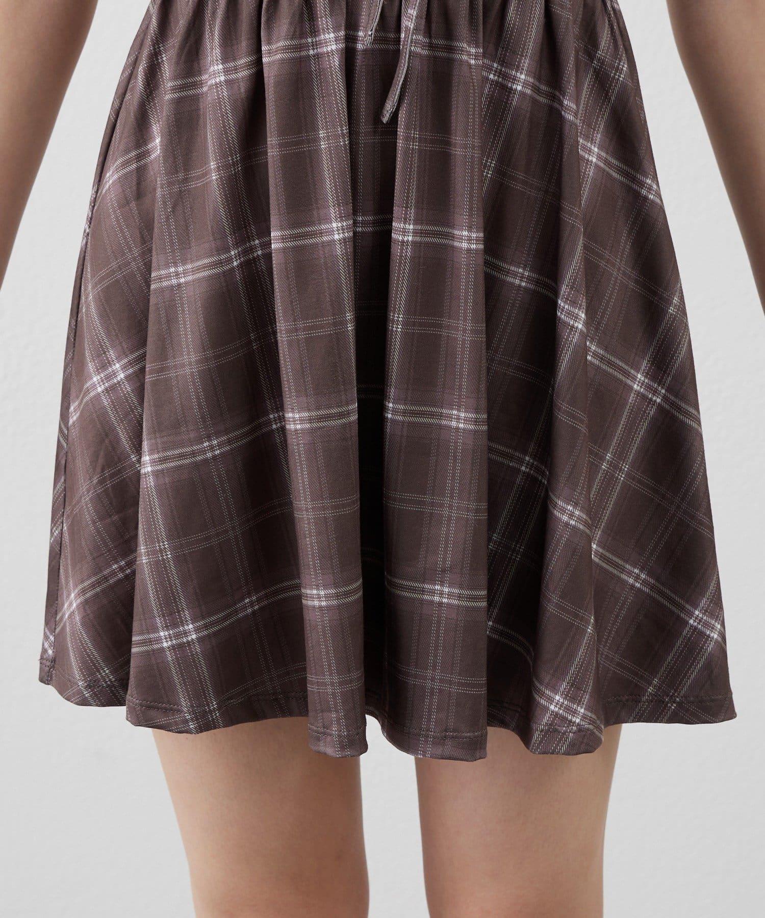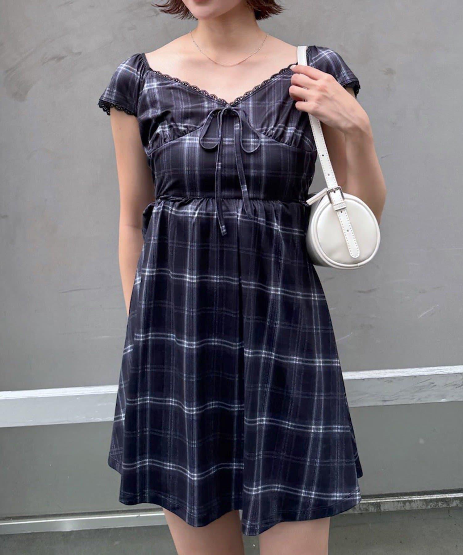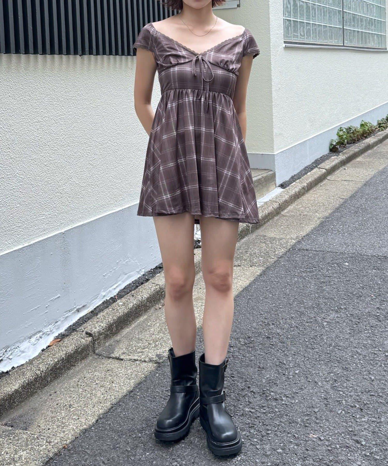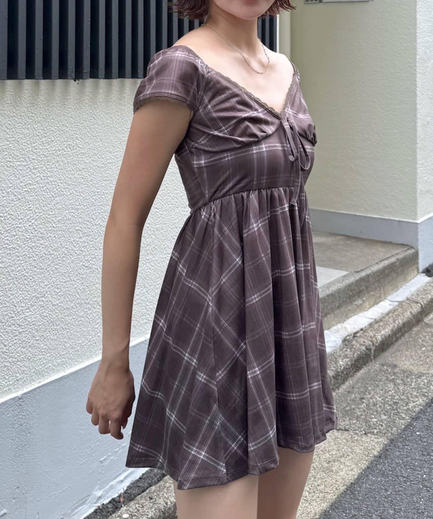 【mystic】[mline]透視格紋剪裁迷你連衣裙