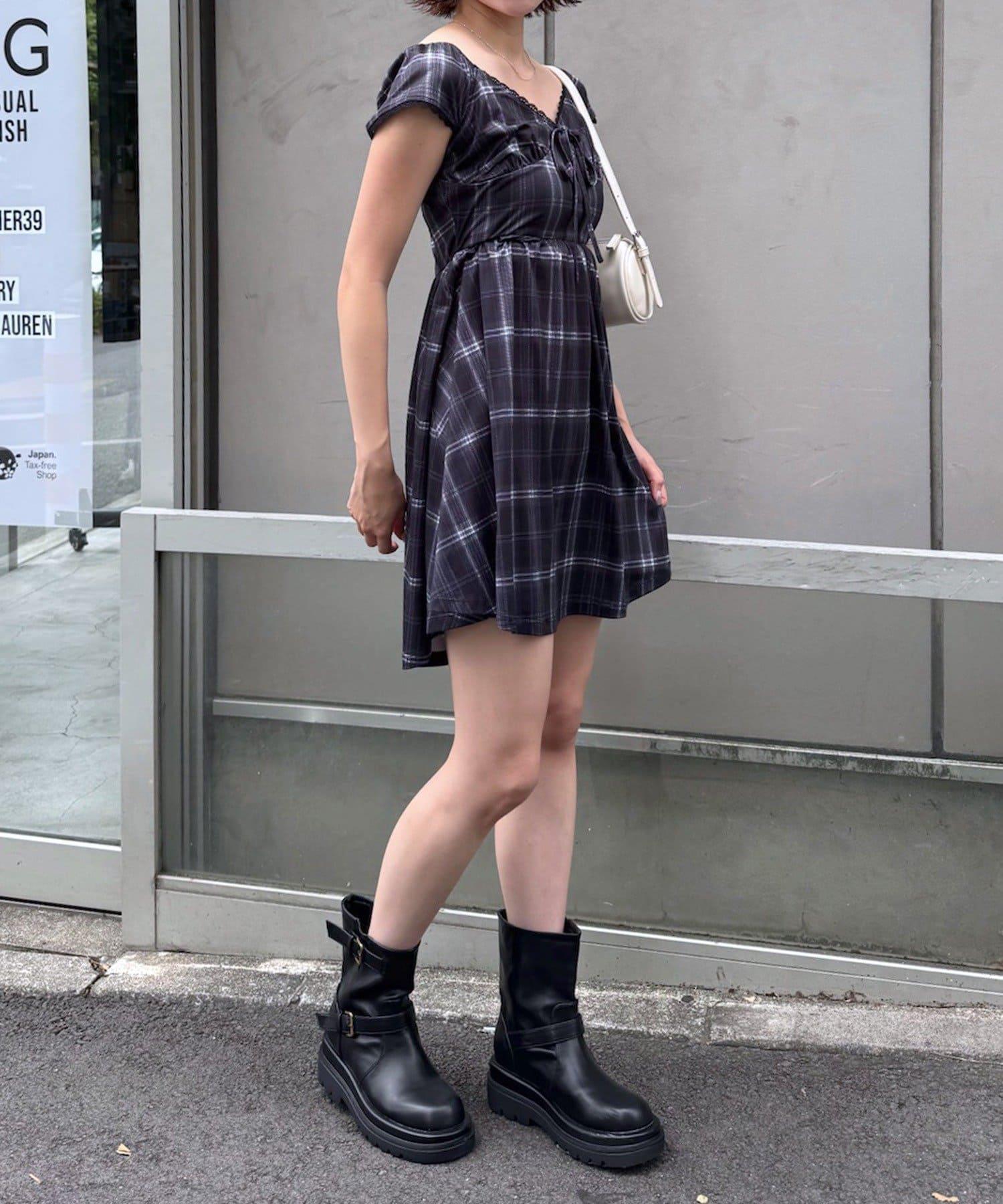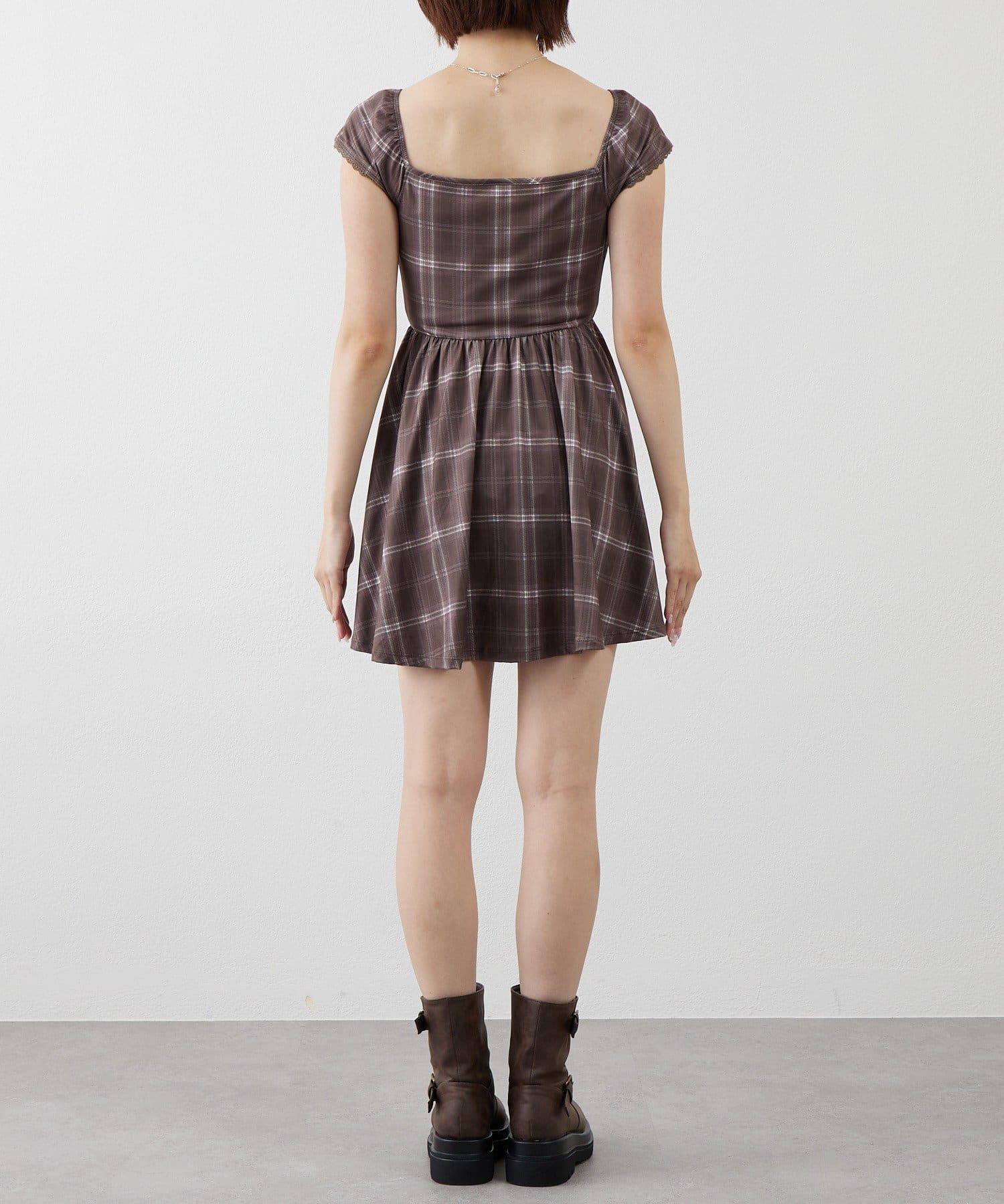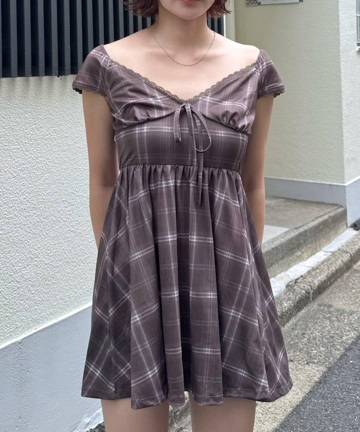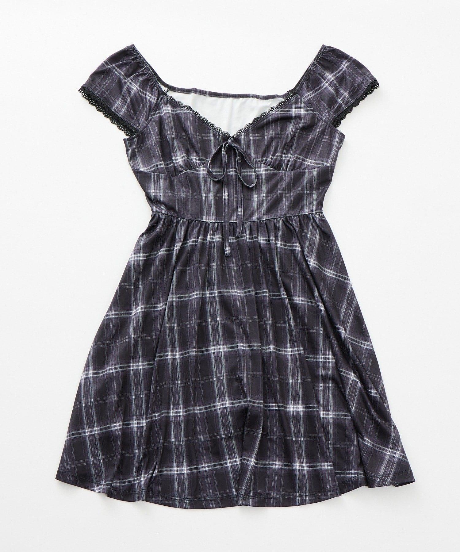 【mystic】[mline]透視格紋剪裁迷你連衣裙