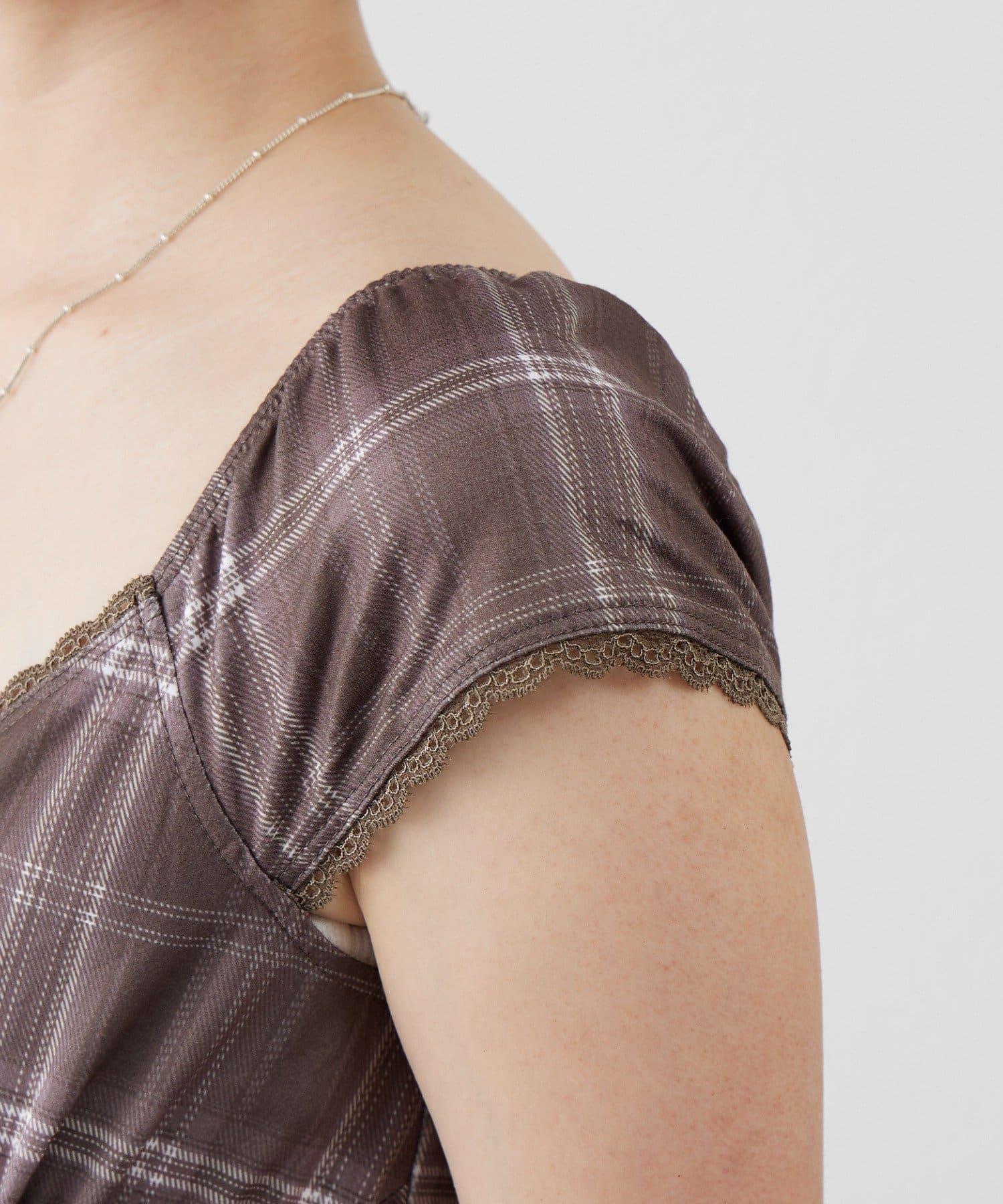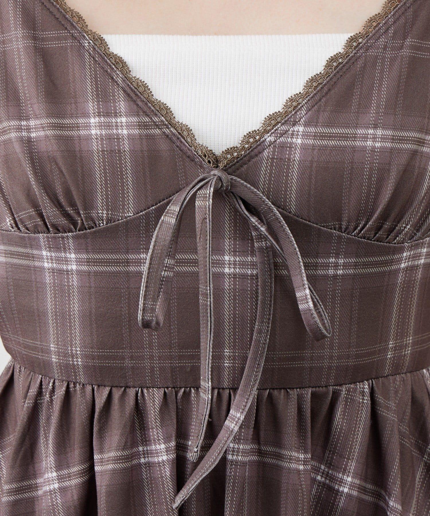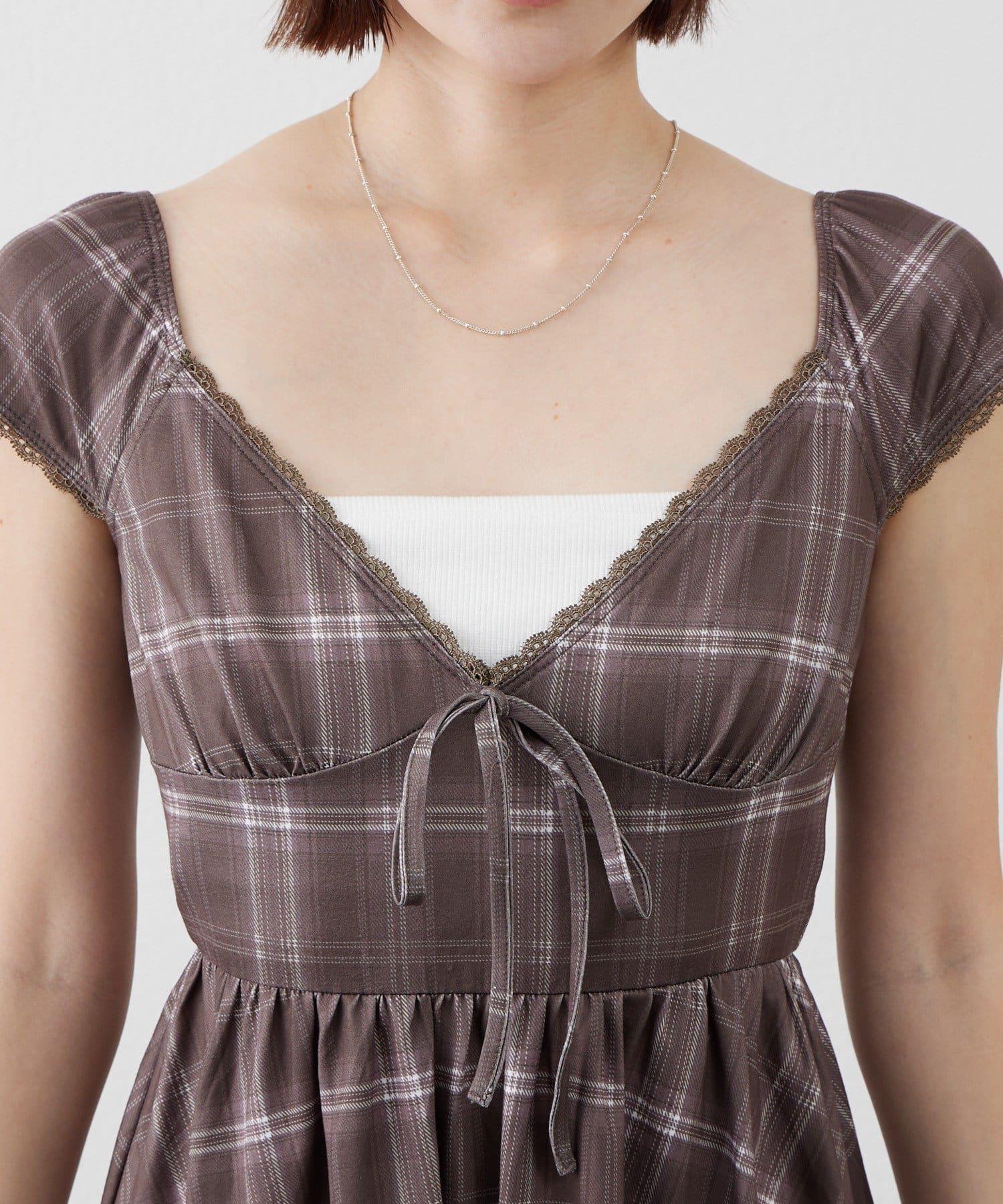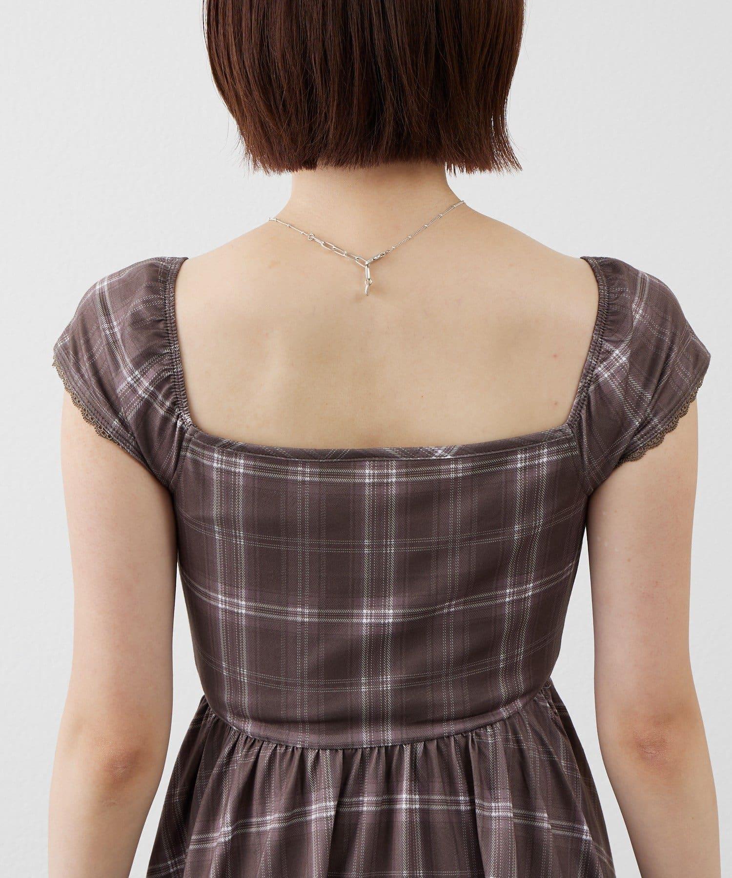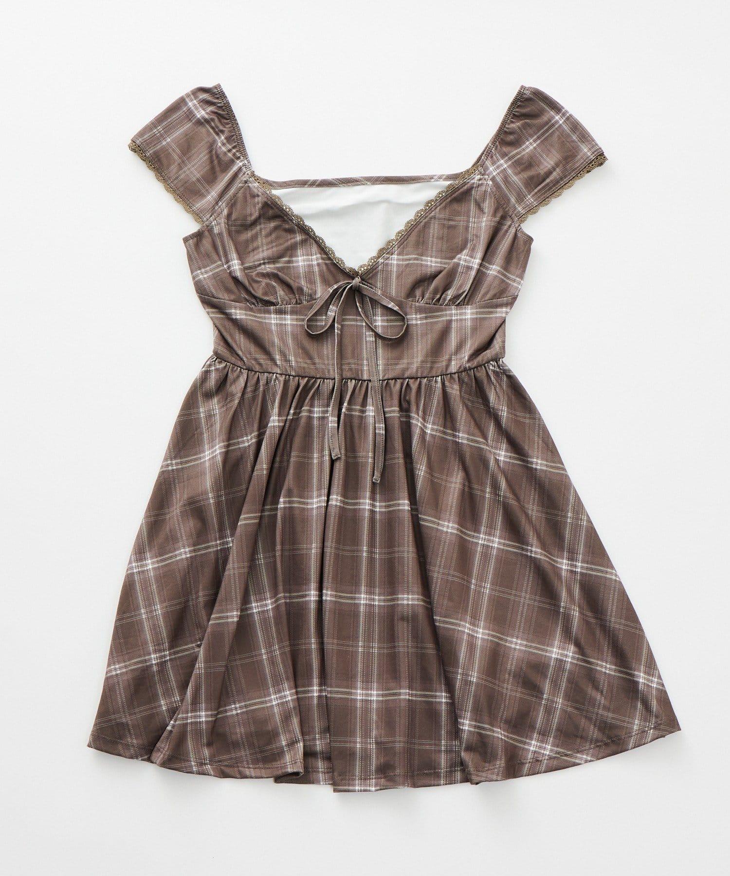 【mystic】[mline]透視格紋剪裁迷你連衣裙