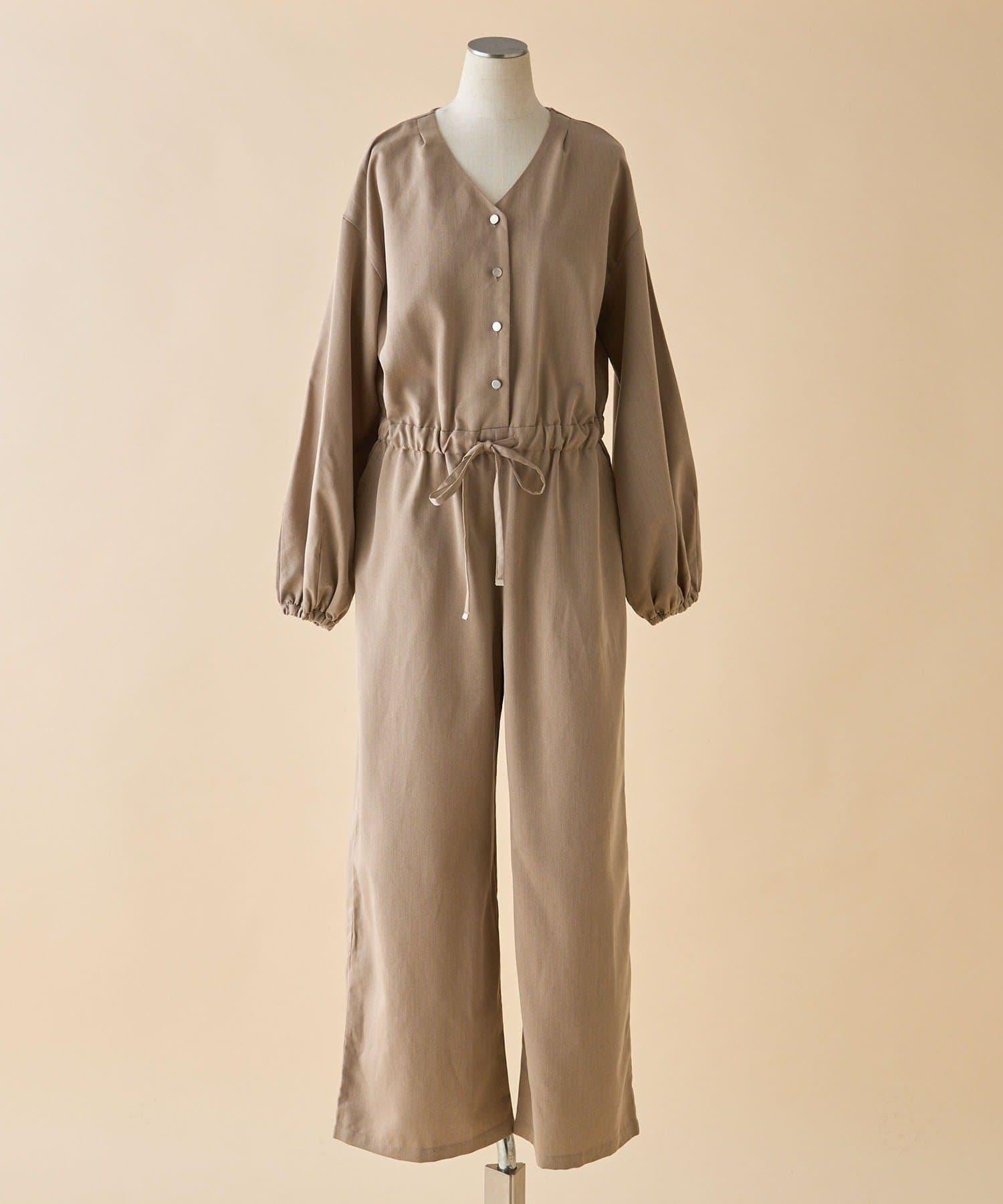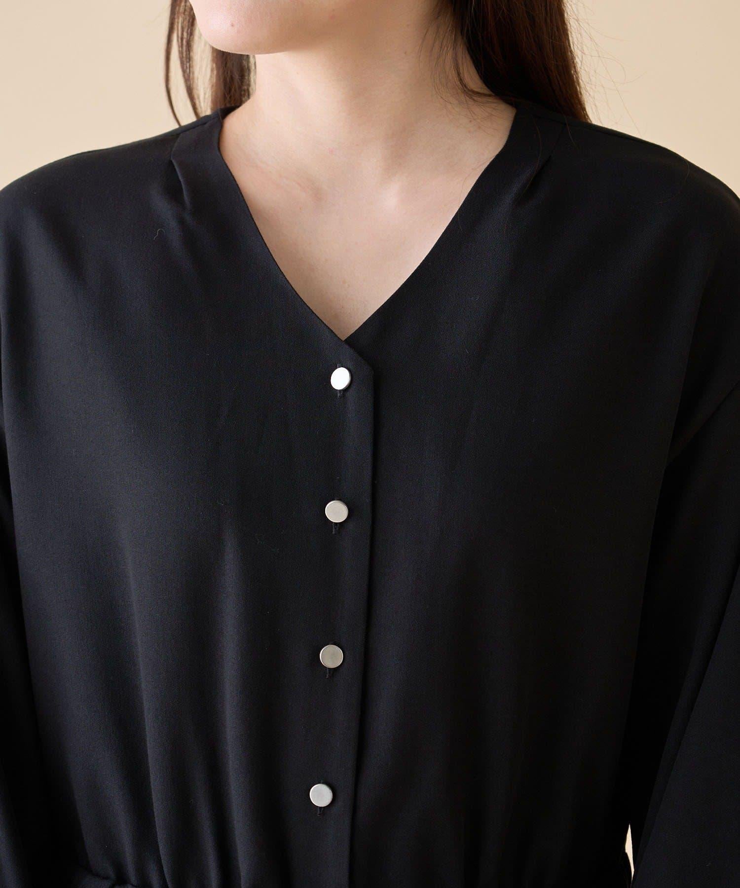 V 領的設計讓臉部看起來乾淨利落,粉金色的古董紐扣給人休閒而精緻的印象。