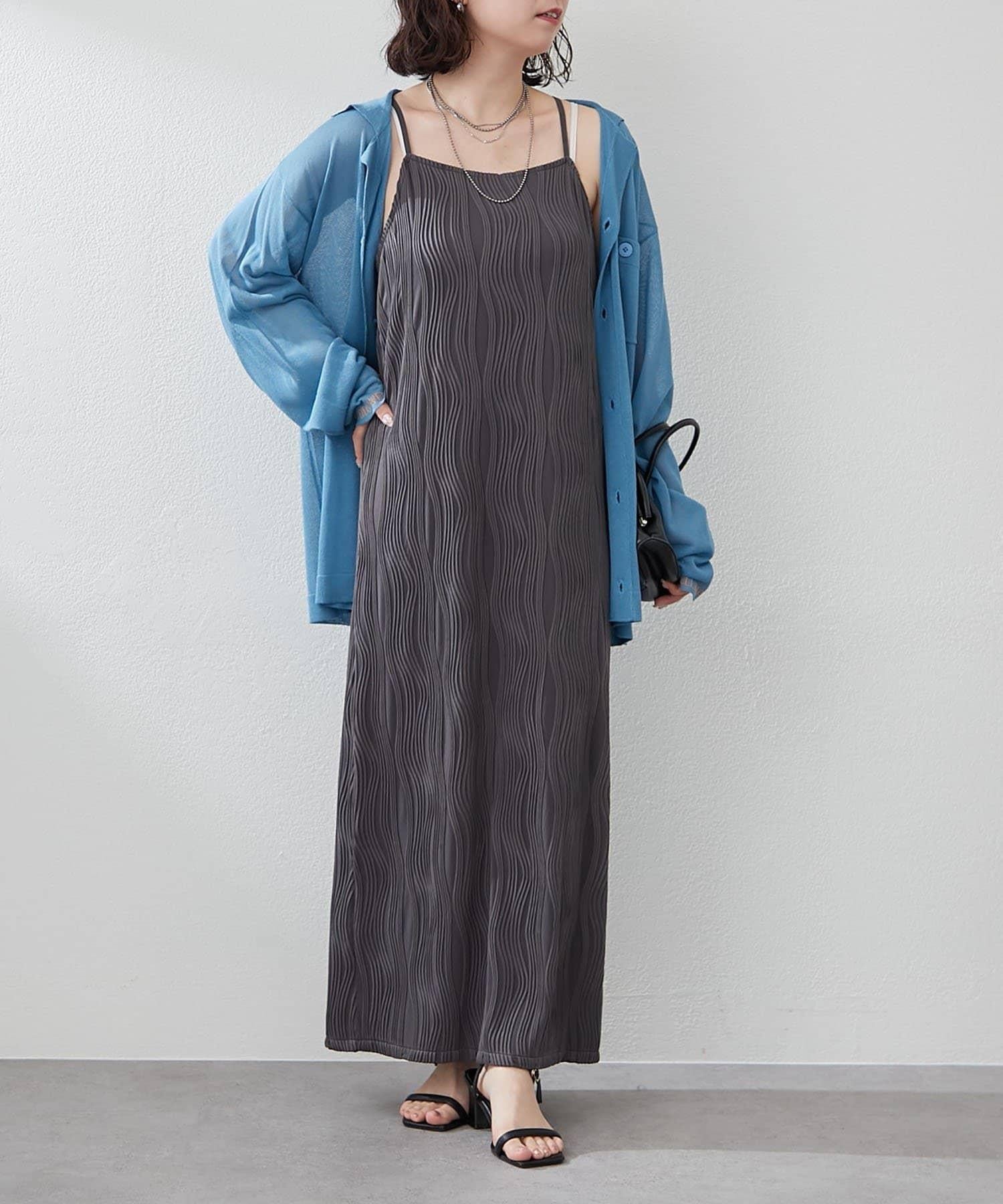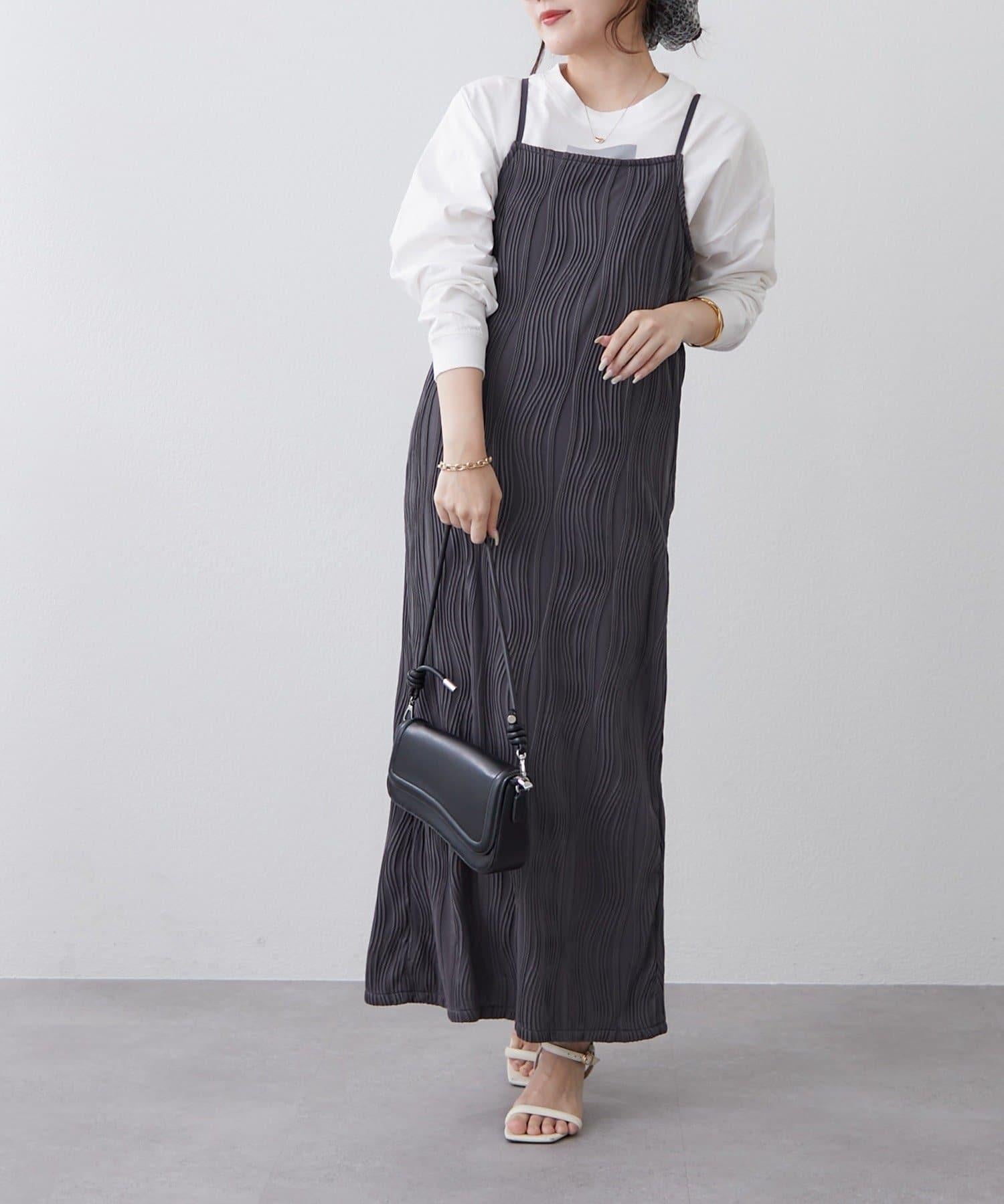 nane 波浪提花圖案吊帶連衣裙