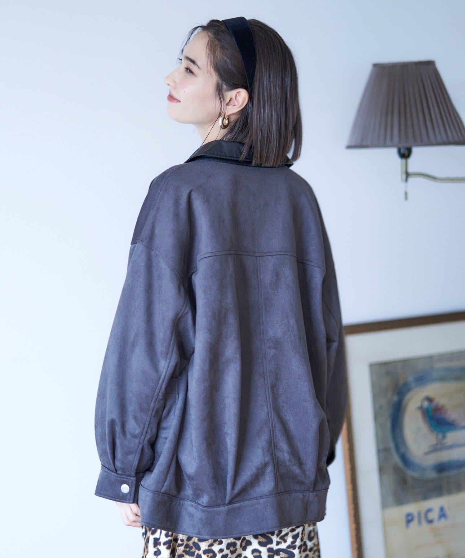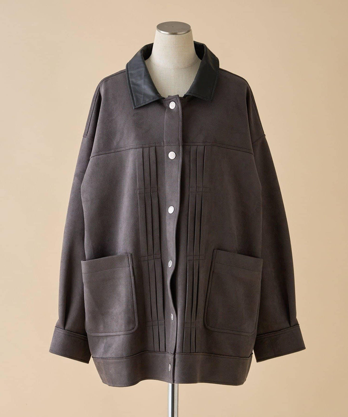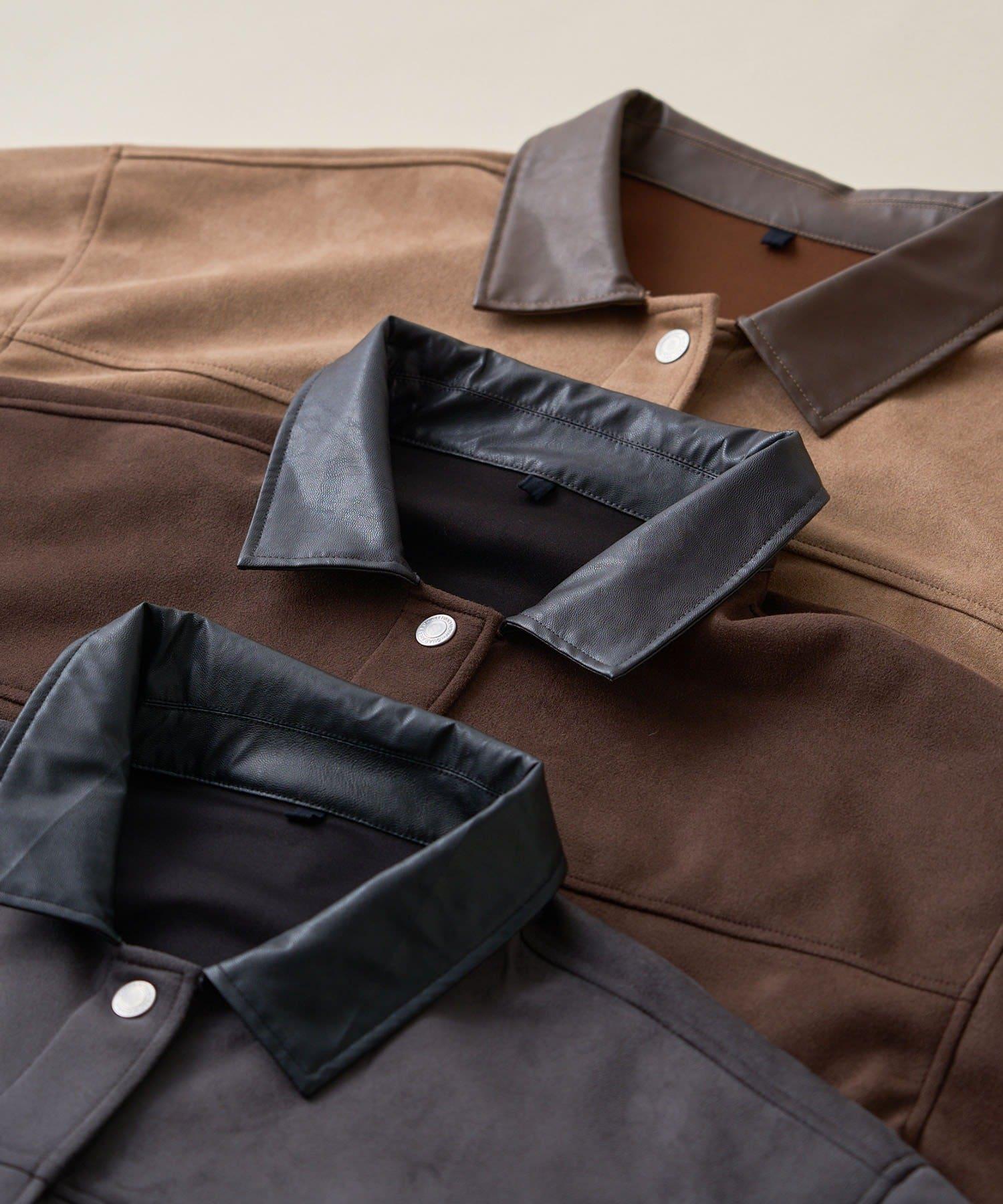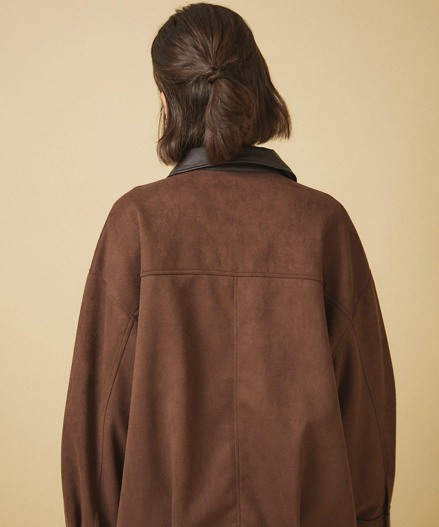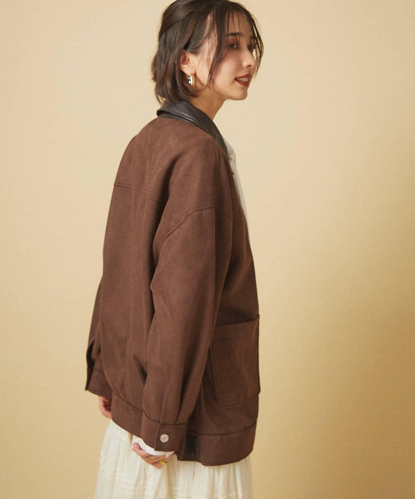 採用本季流行關鍵詞 "麂皮絨 "的連身夾克。