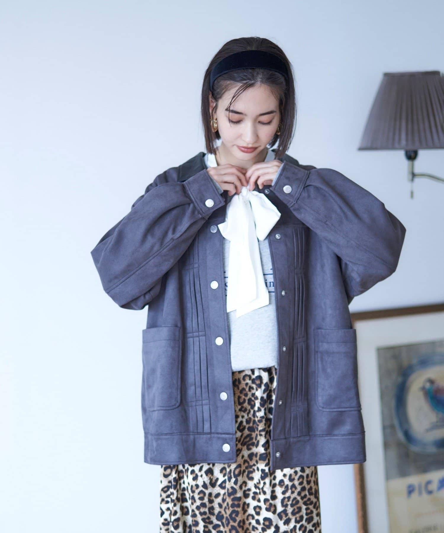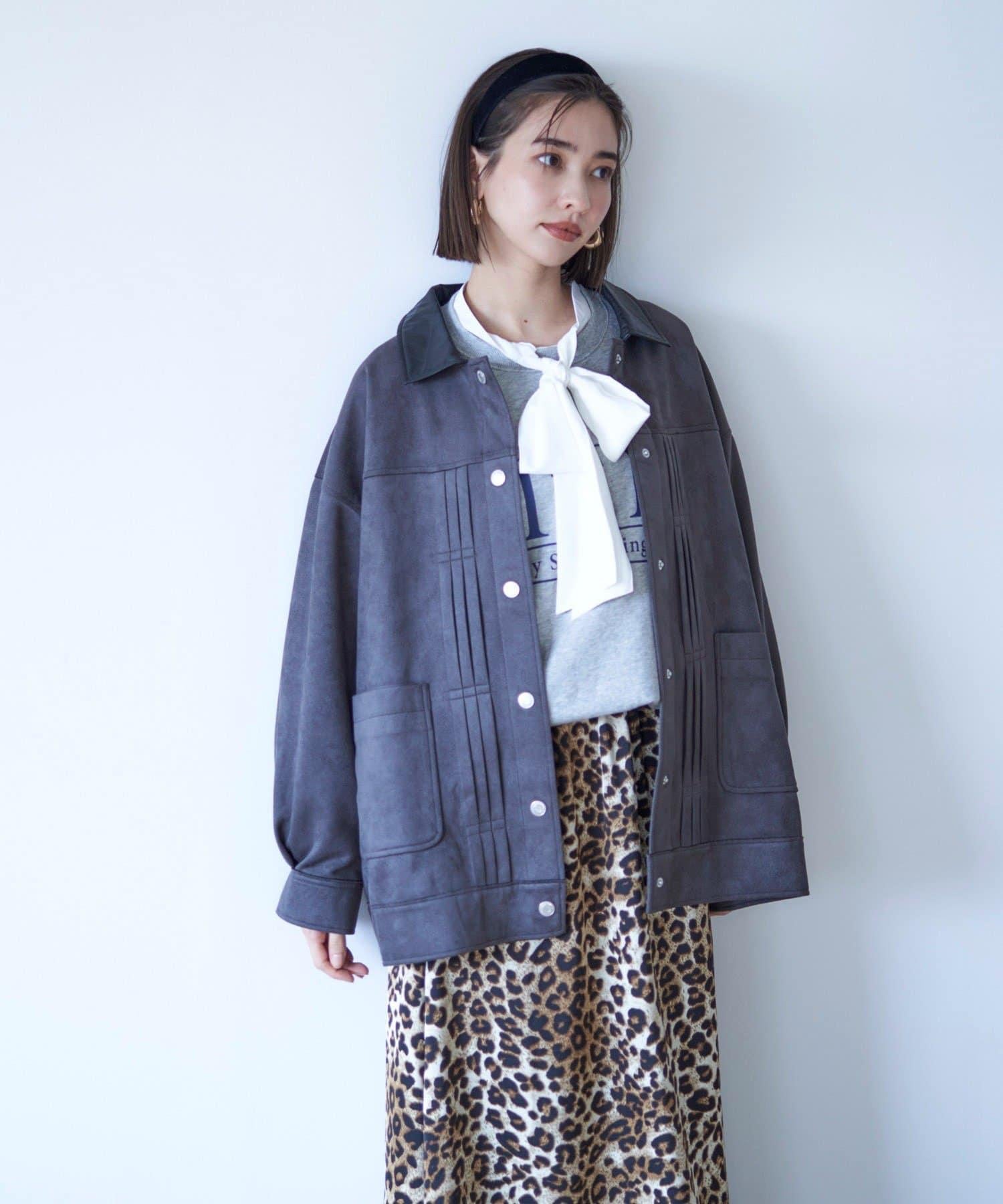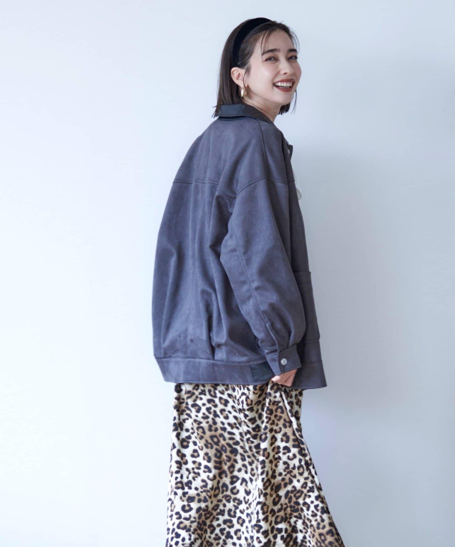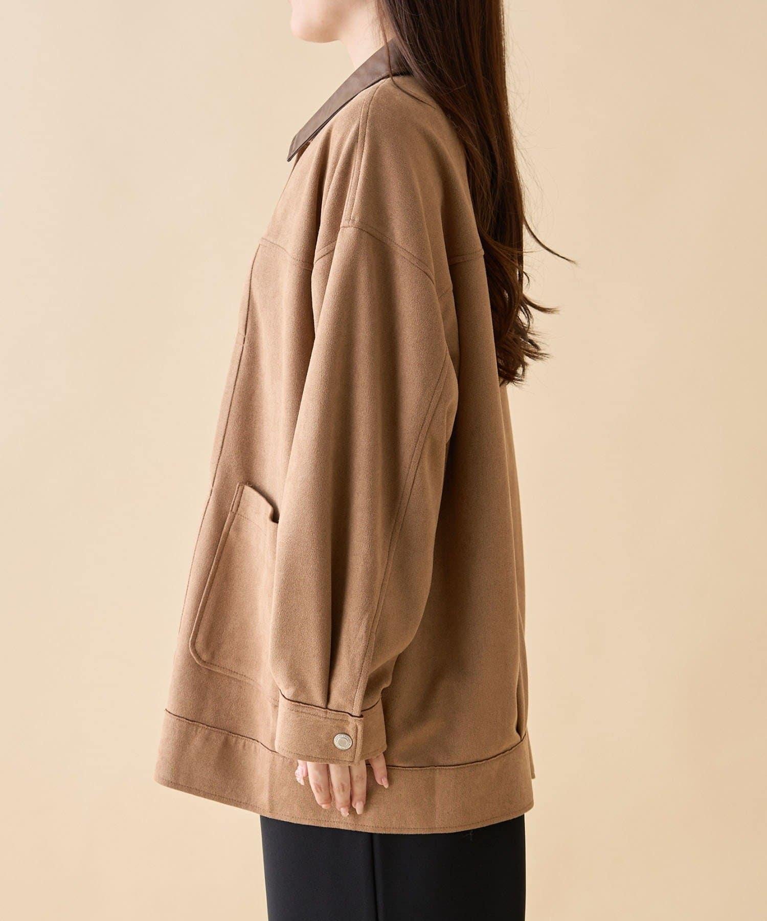 採用本季流行關鍵詞 "麂皮絨 "的連身夾克。