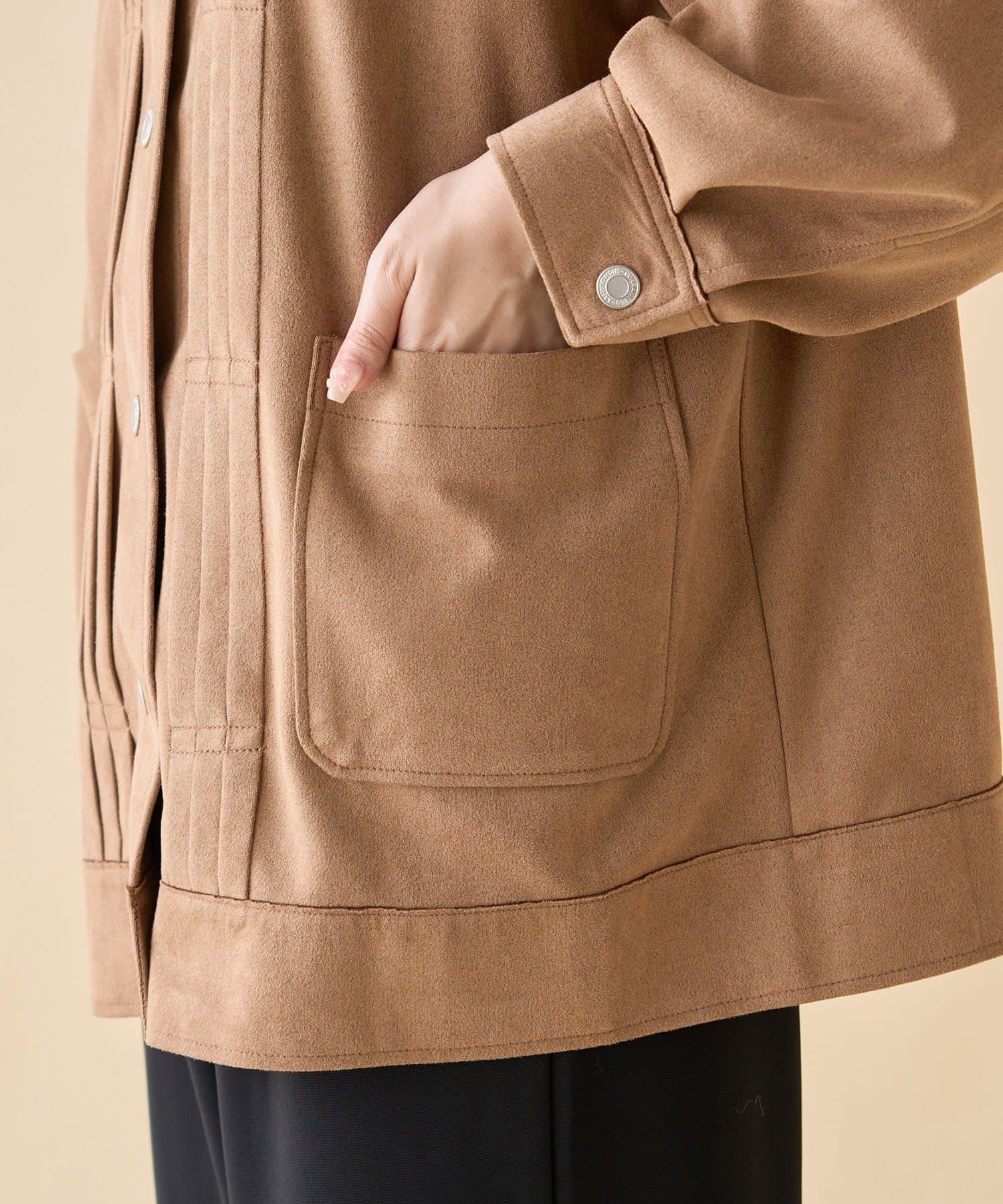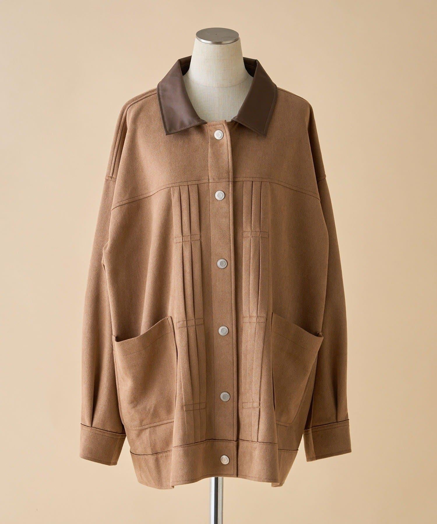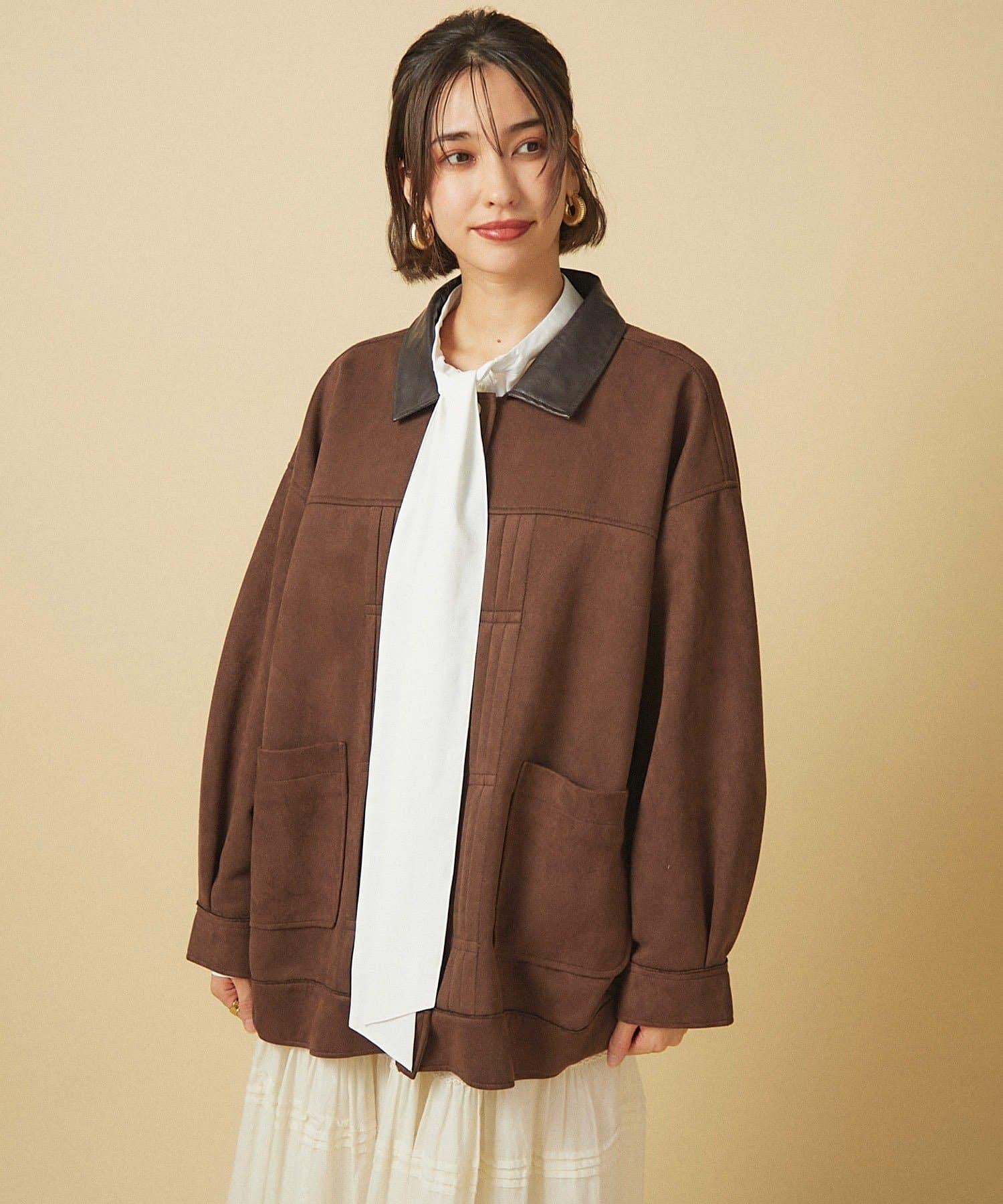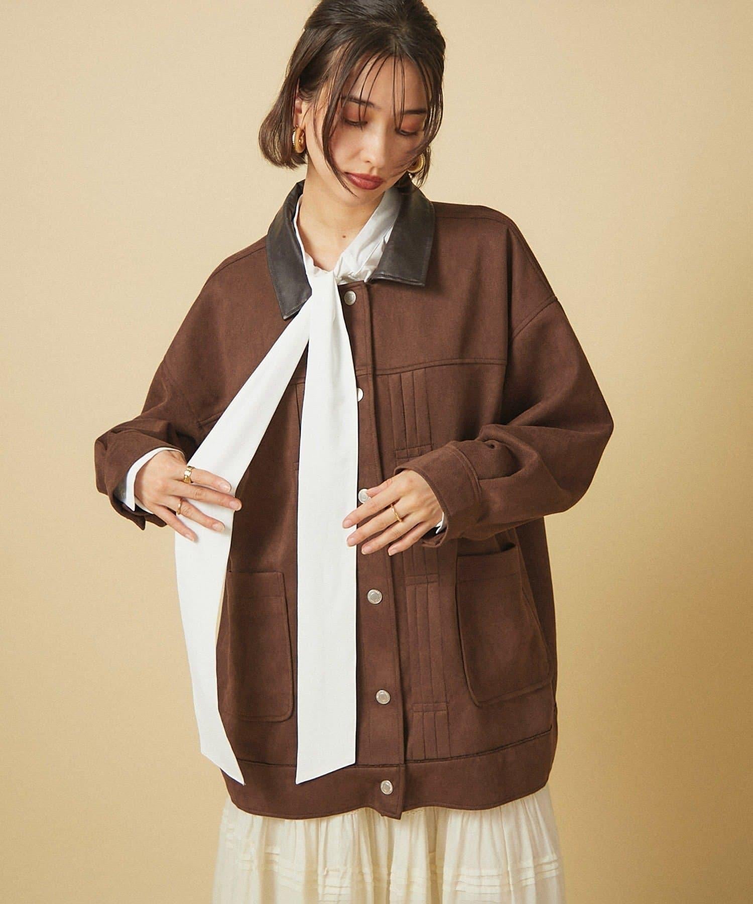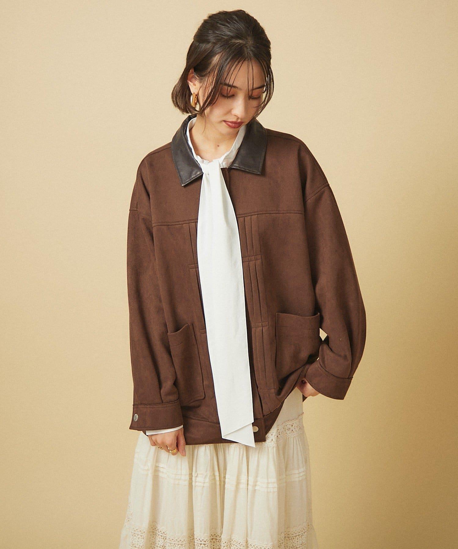 採用本季流行關鍵詞 "麂皮絨 "的連身夾克。