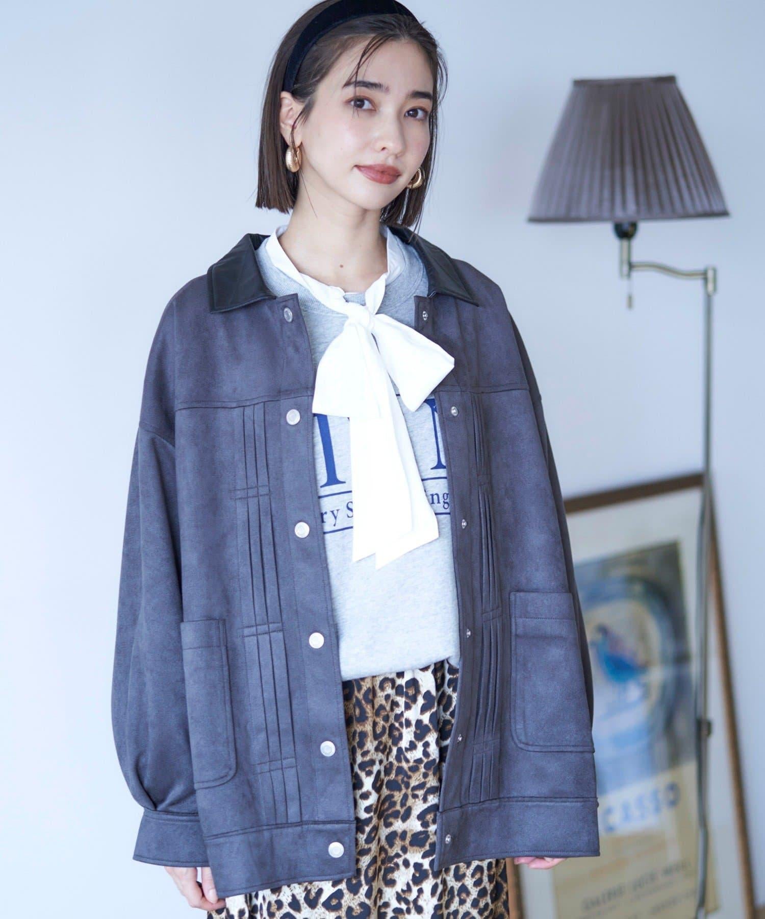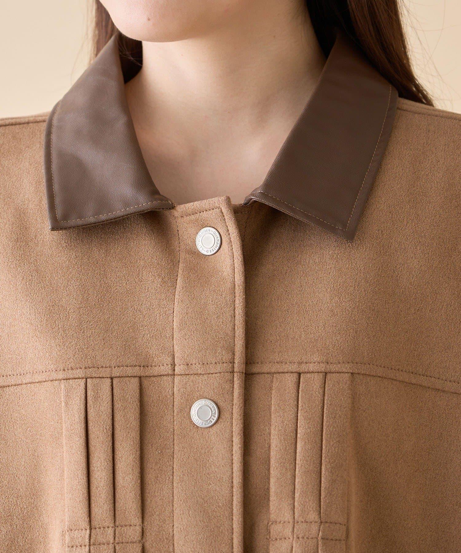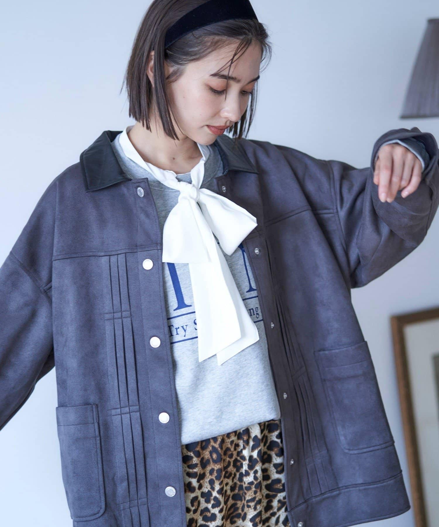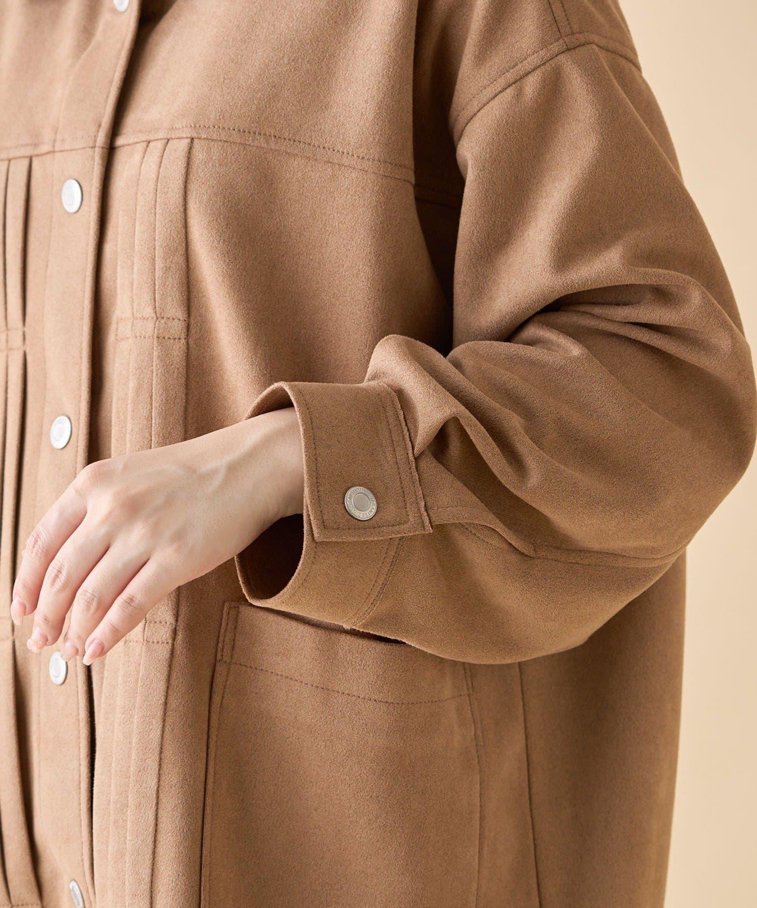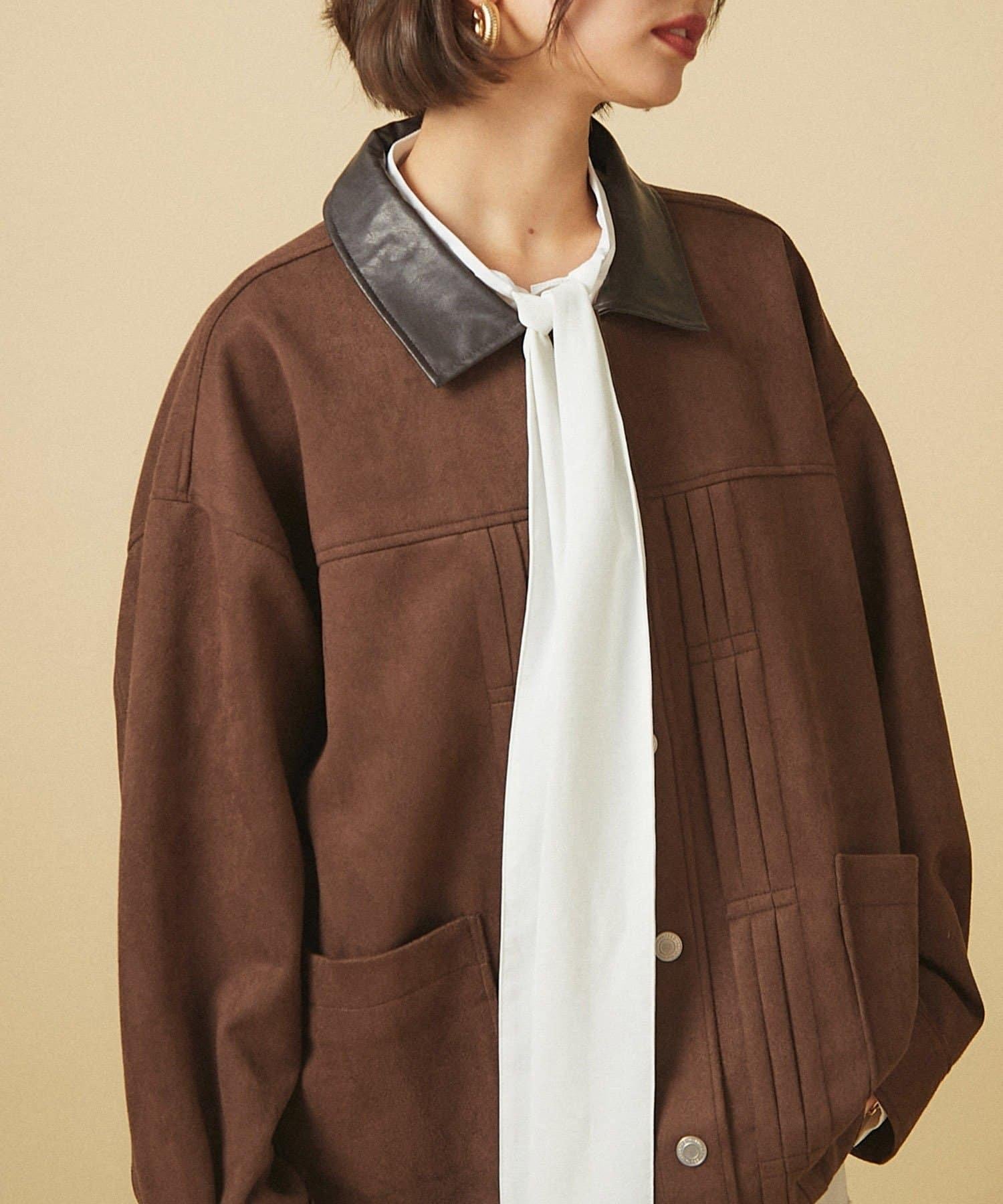 採用本季流行關鍵詞 "麂皮絨 "的連身夾克。