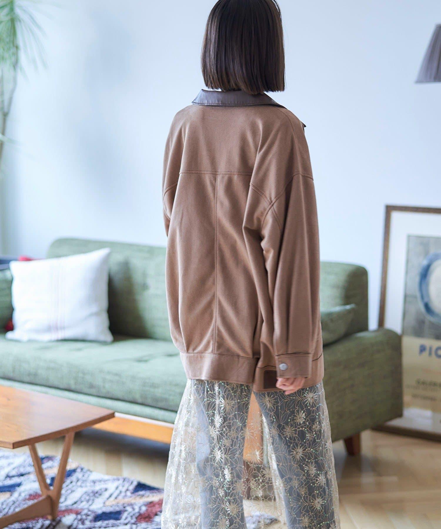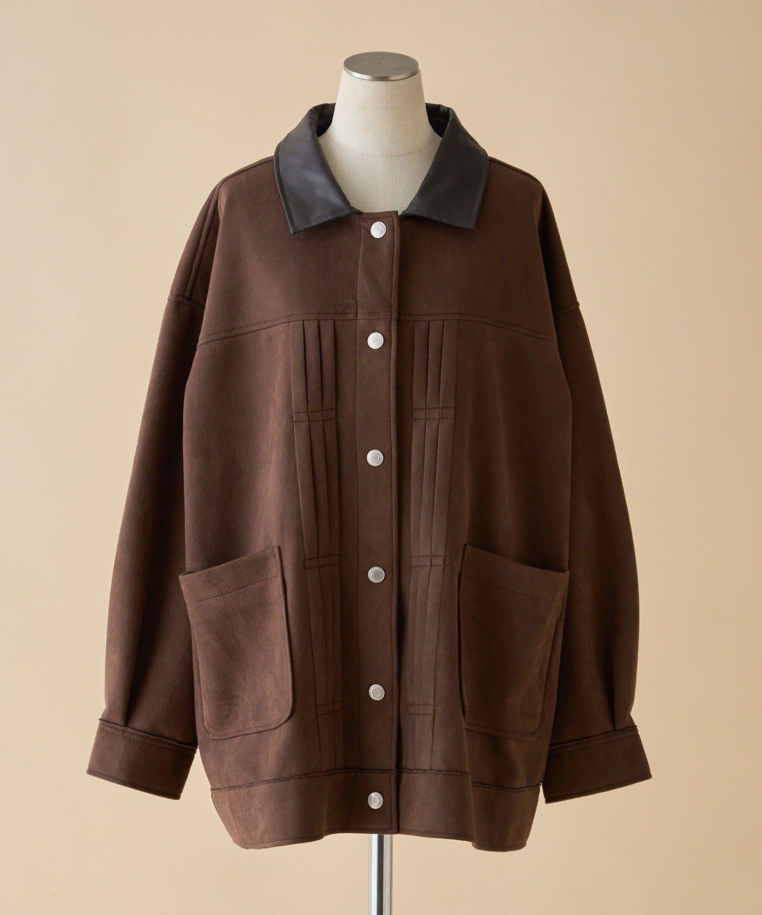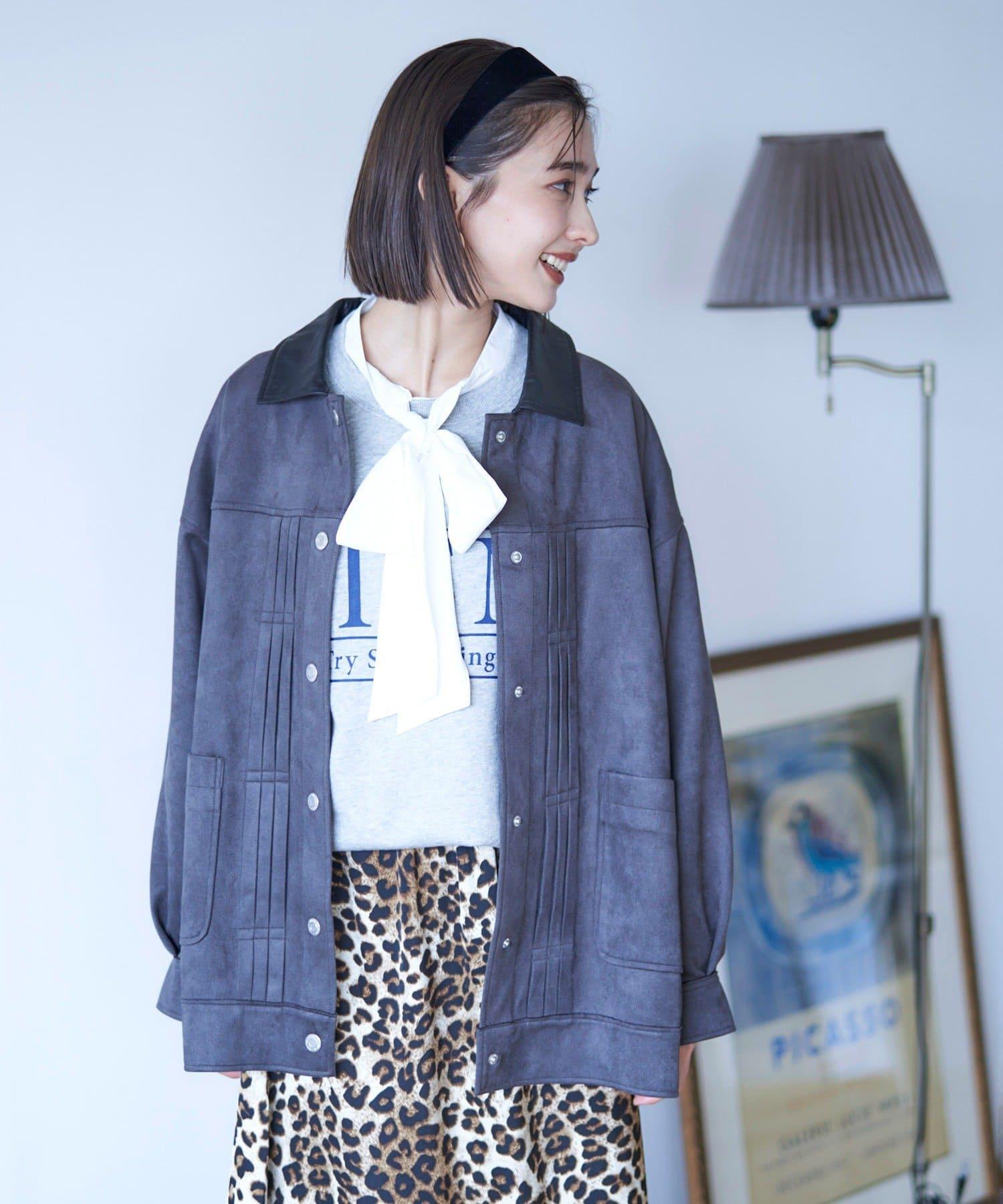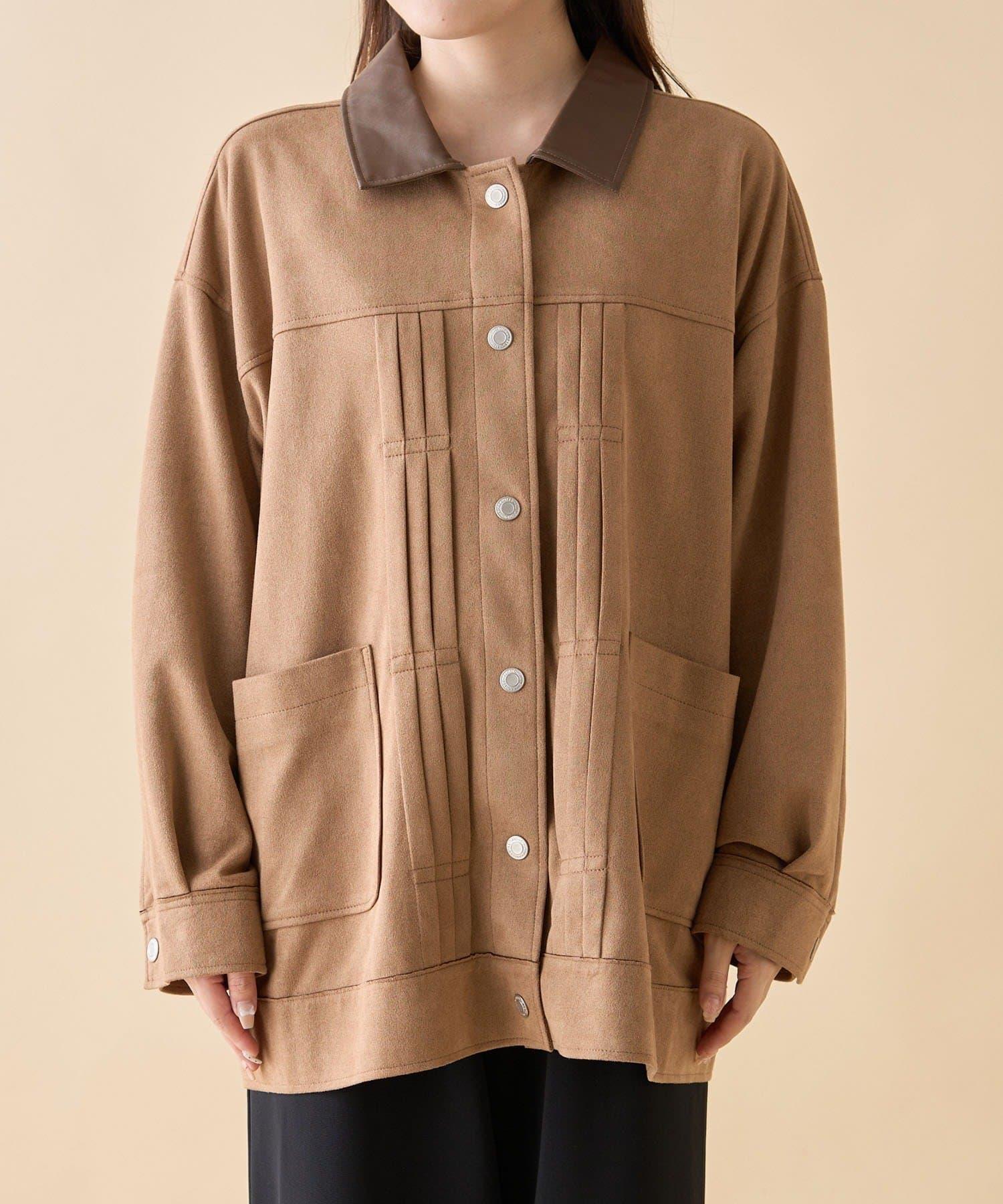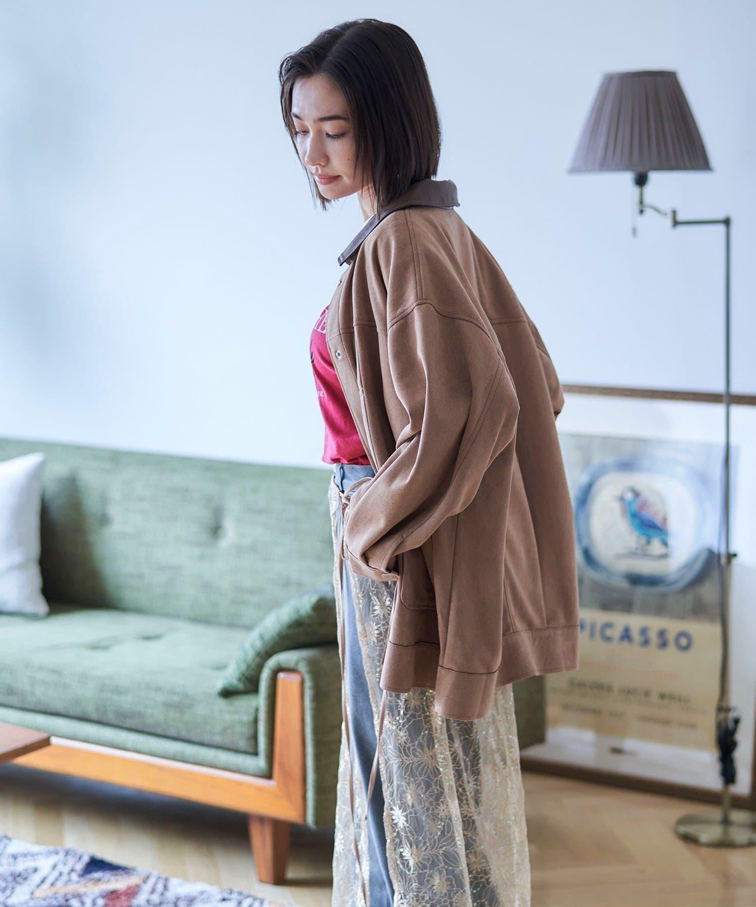 採用本季流行關鍵詞 "麂皮絨 "的連身夾克。