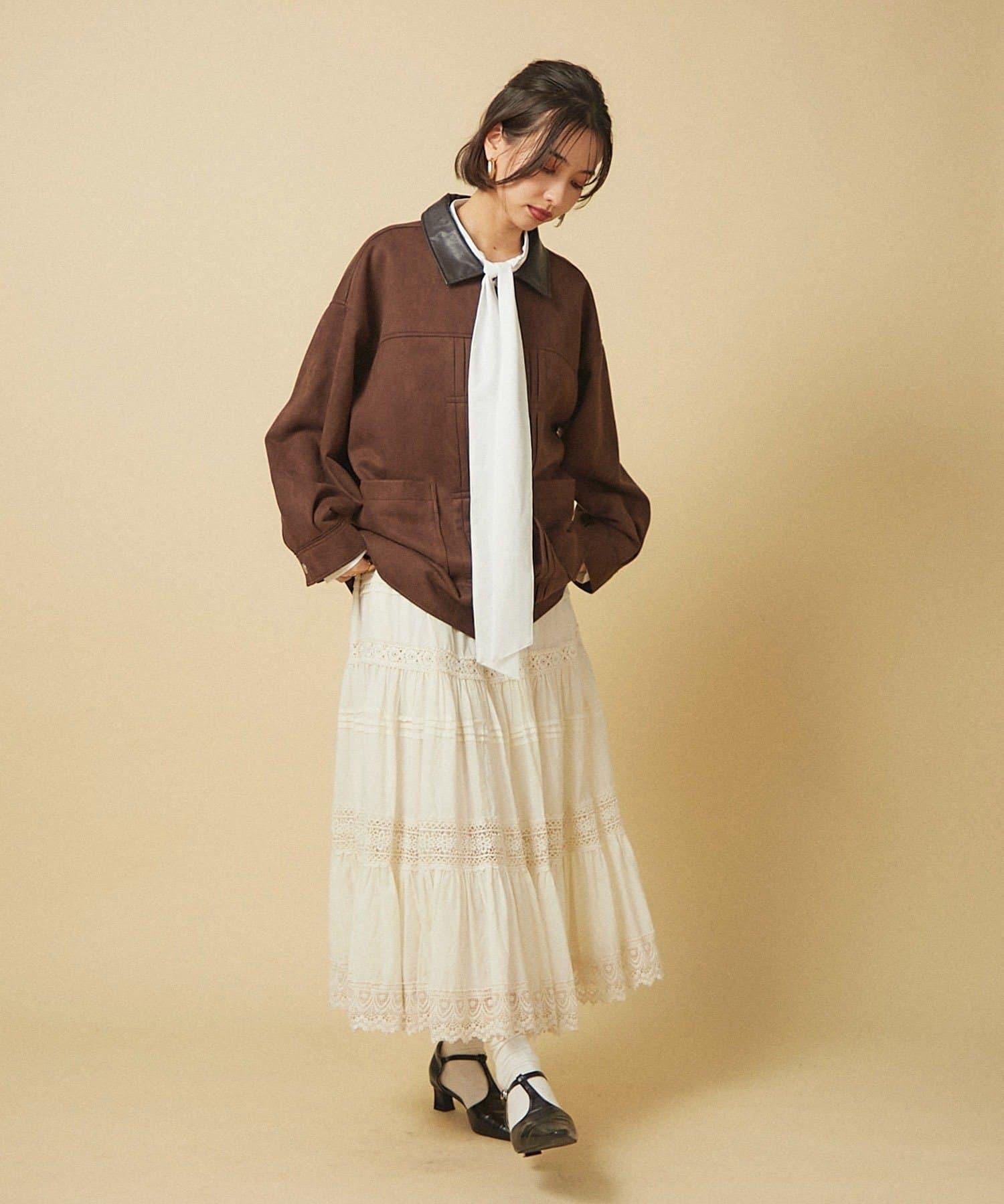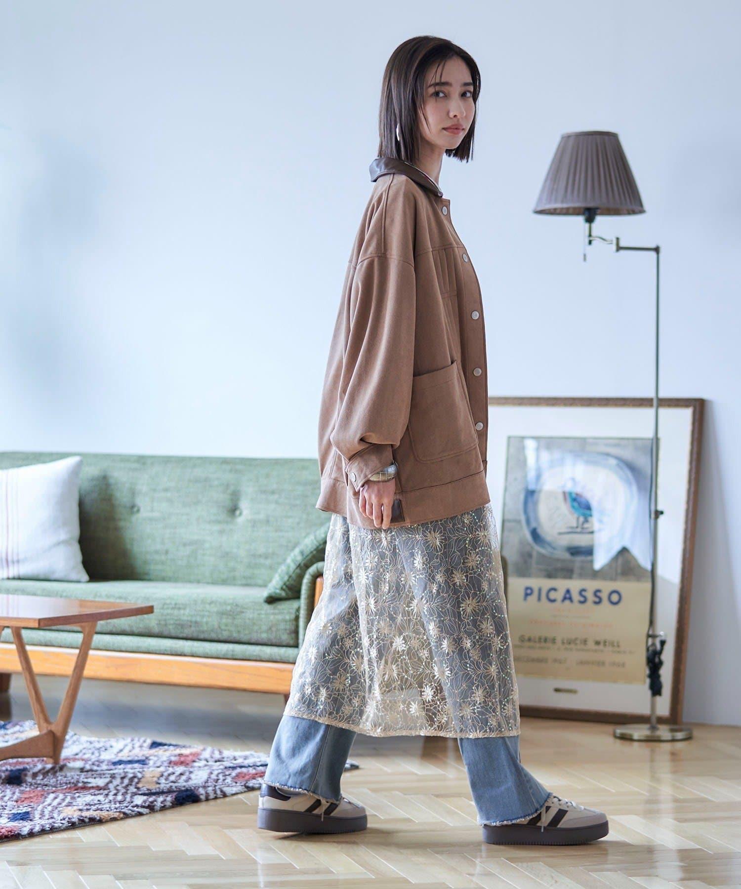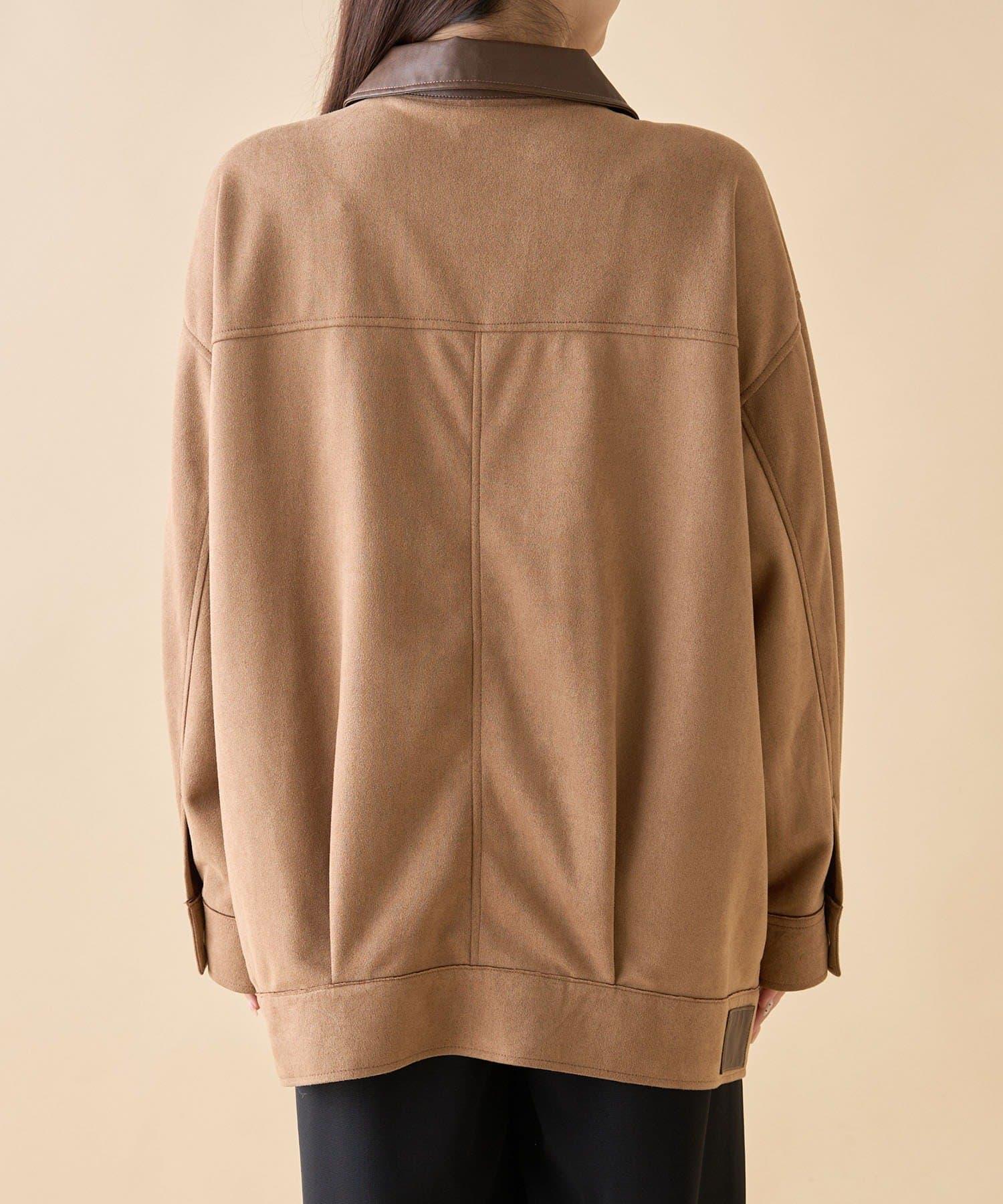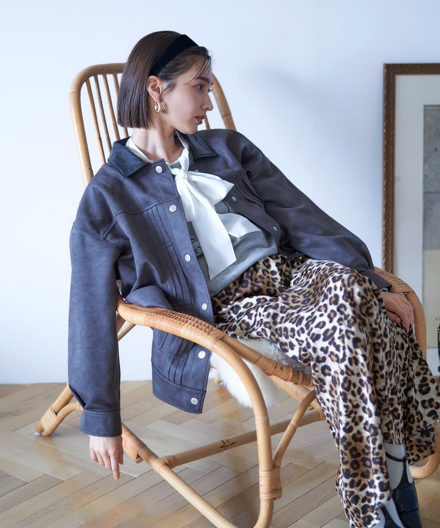 採用本季流行關鍵詞 "麂皮絨 "的連身夾克。