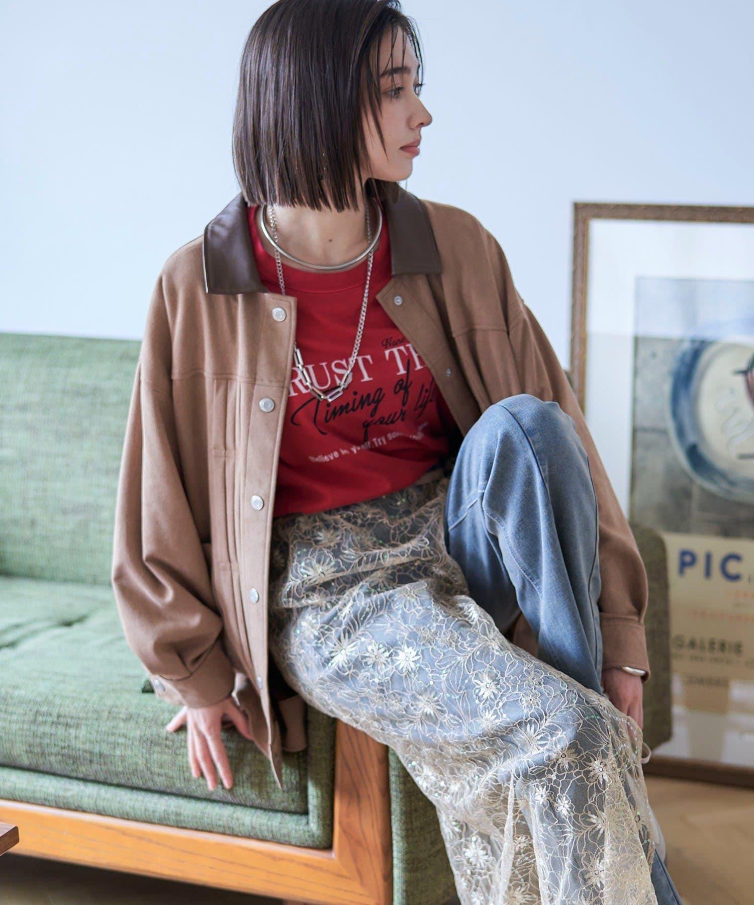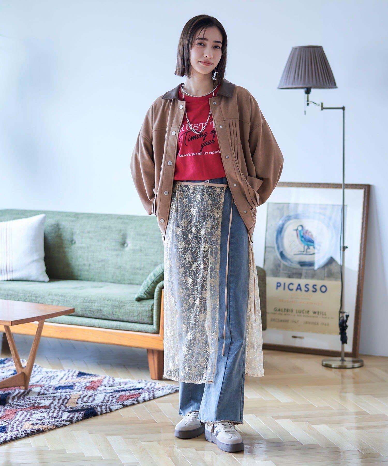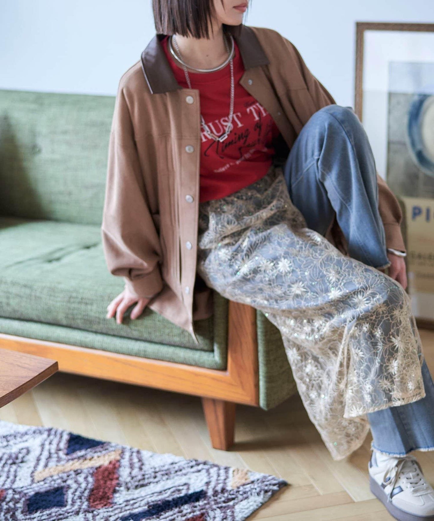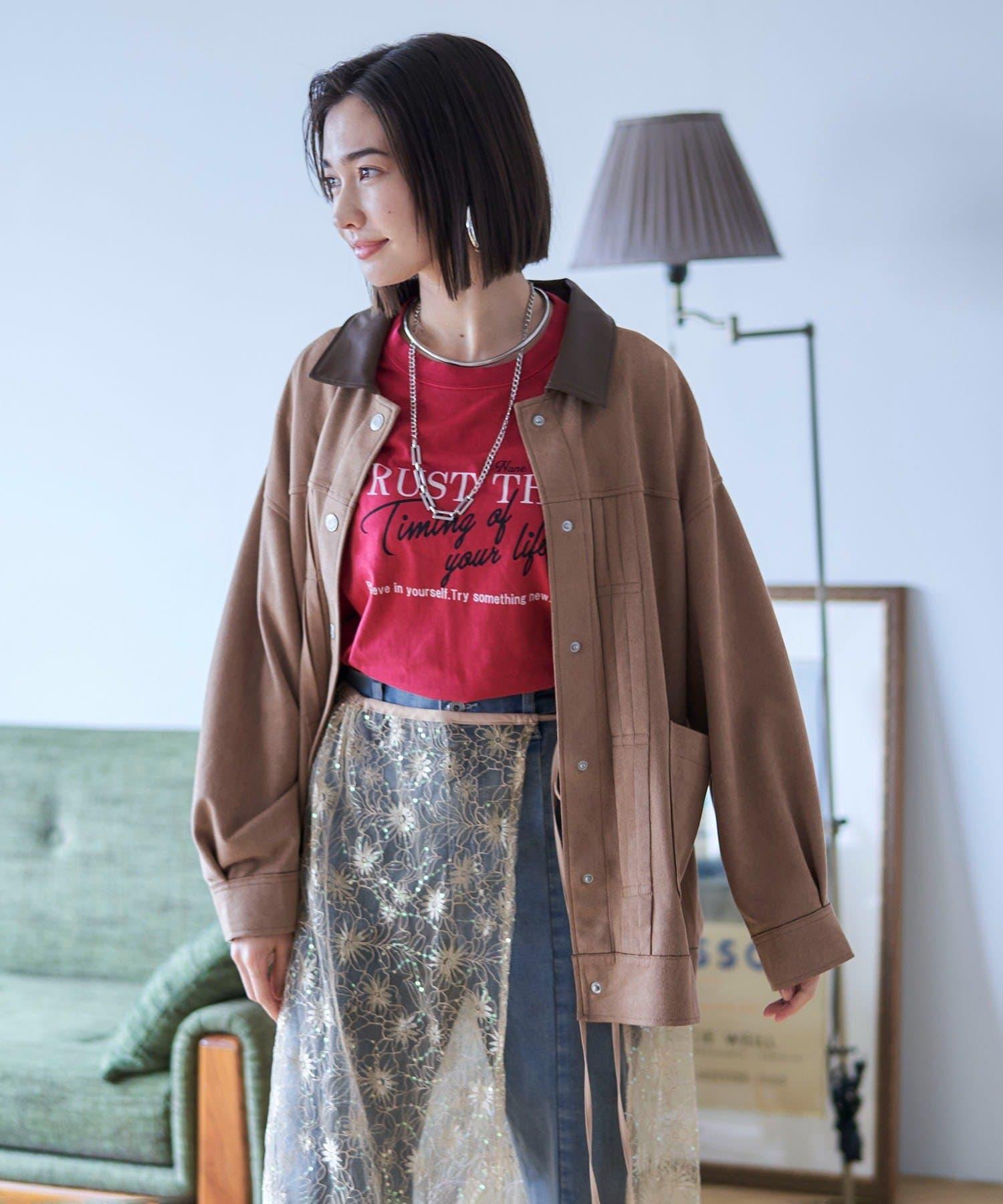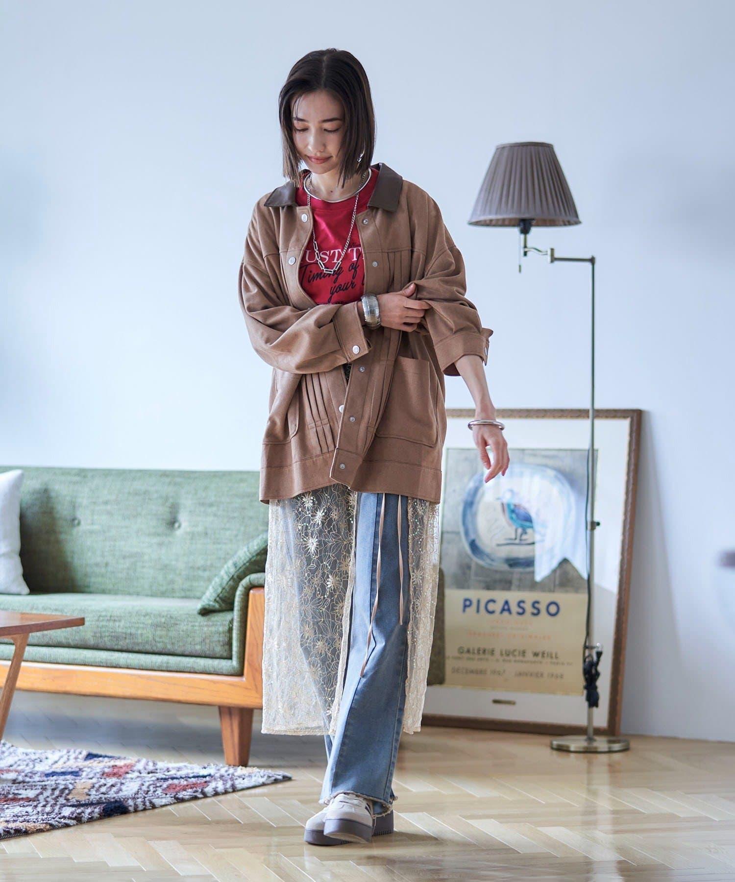 採用本季流行關鍵詞 "麂皮絨 "的連身夾克。