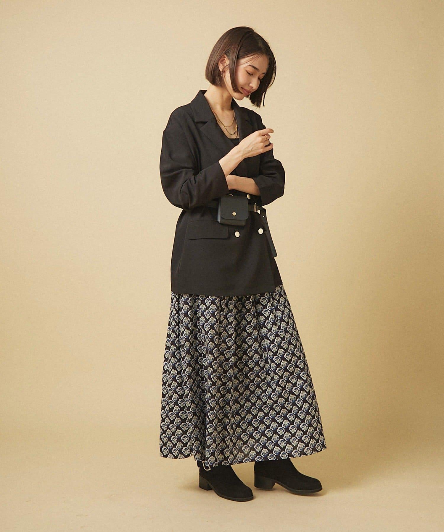 這款裙子與 [nane] 顏料徽標 T 恤 (5052180230) 和 [nane] 復古工藝汗衫套頭衫 (5052180220) 等休閒單品非常相配,建議搭配簡潔的搭配。